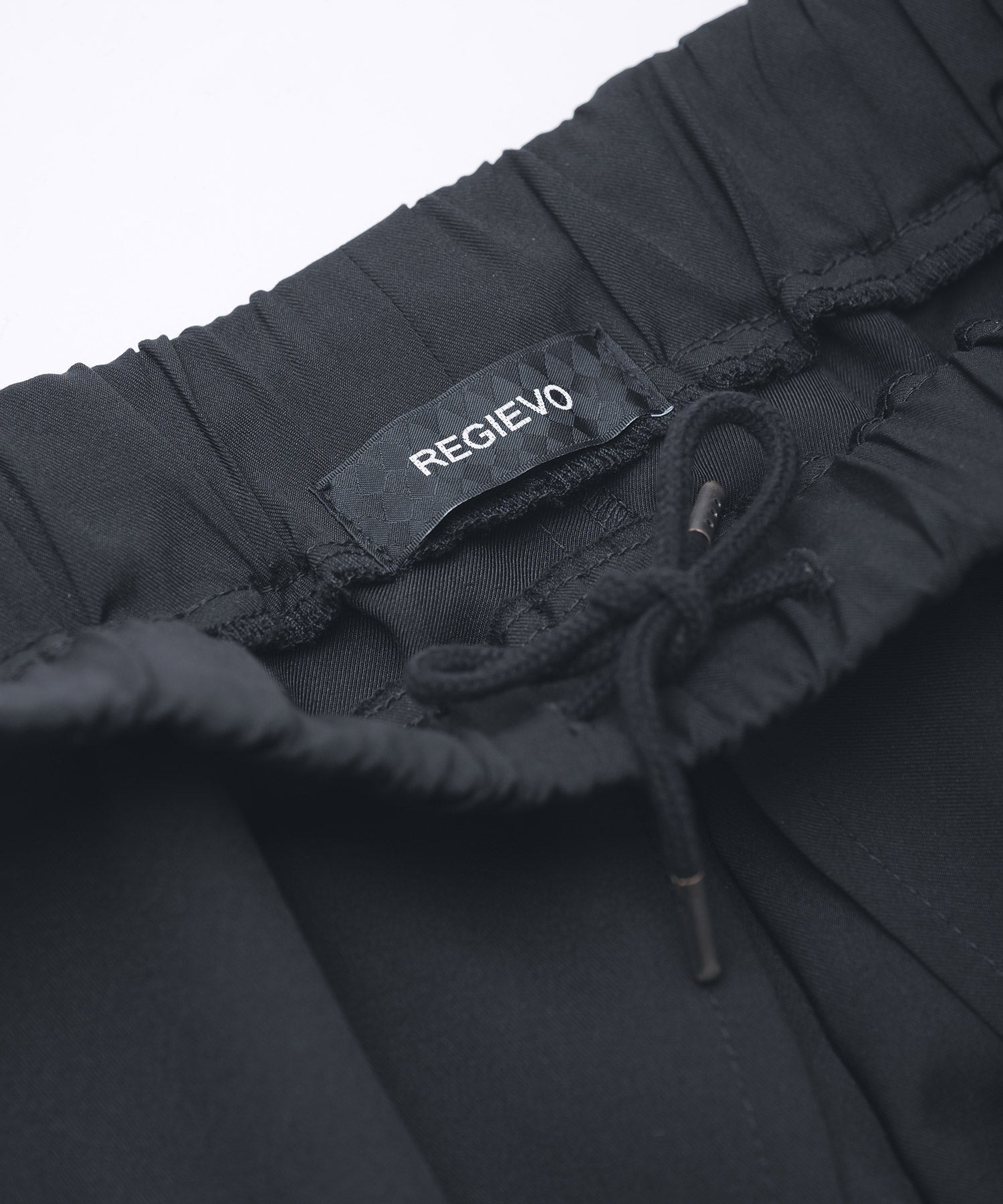 ストレッチ性のあるポリエステル生地で動きやすく、リラックスして穿け、イージーケアなアイテムです。