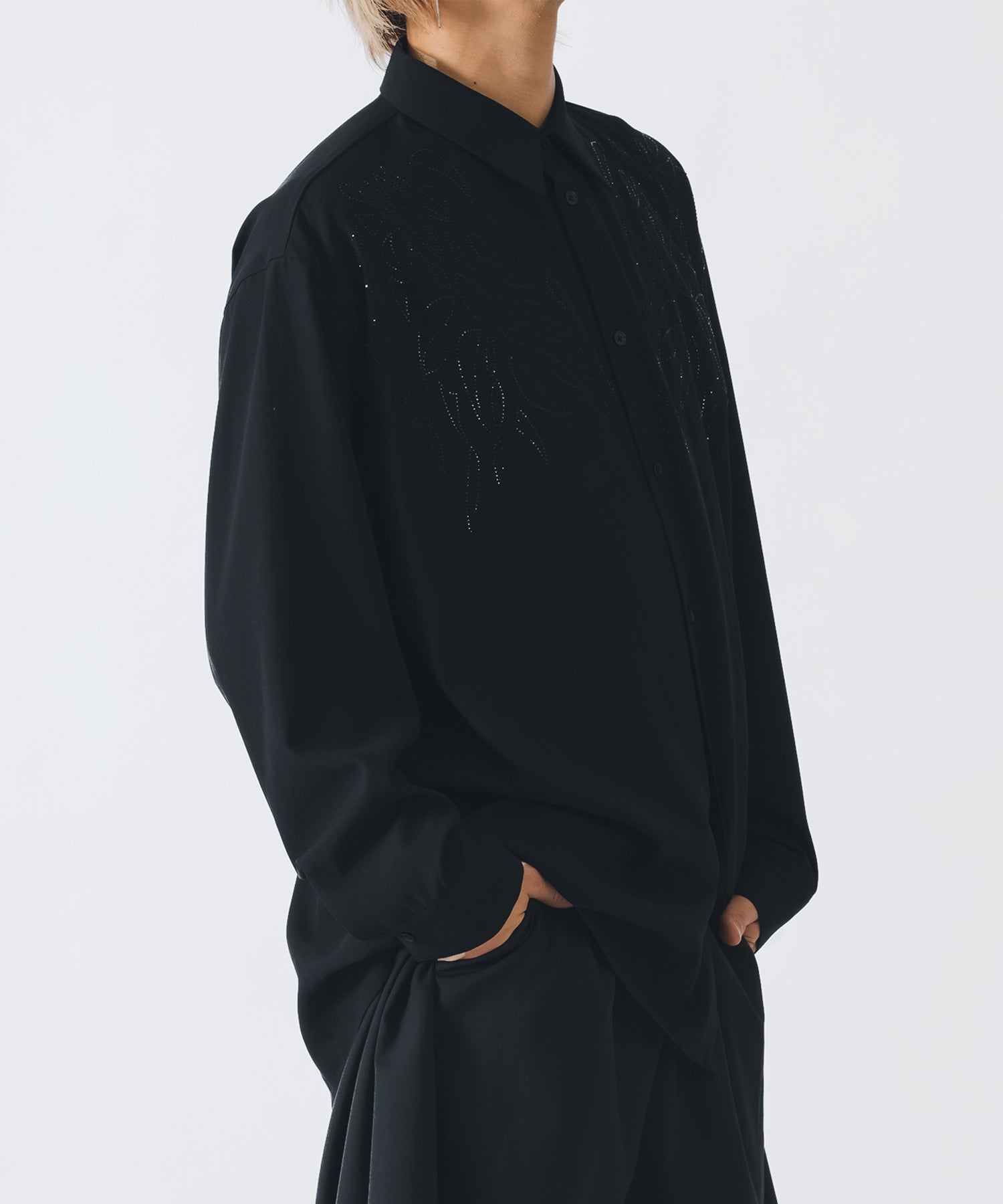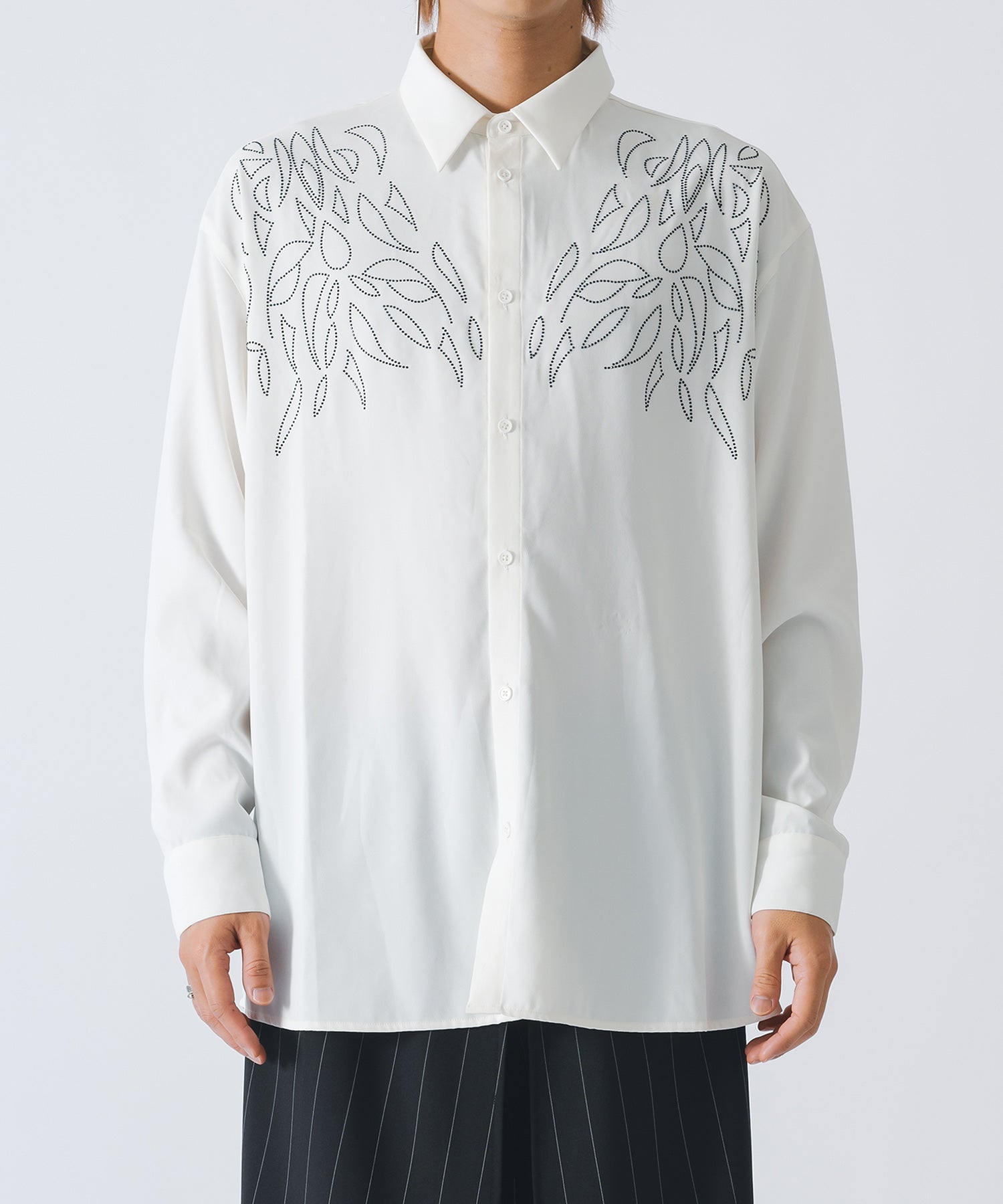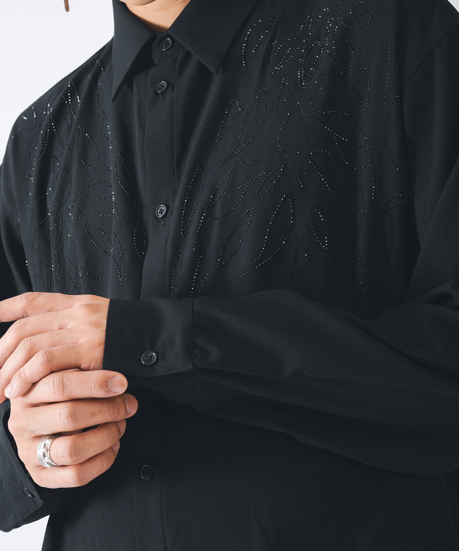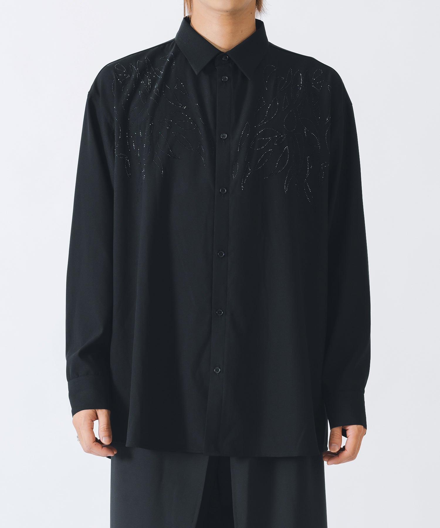 ラインストーンで柄を象った長袖のモードなシャツです。
