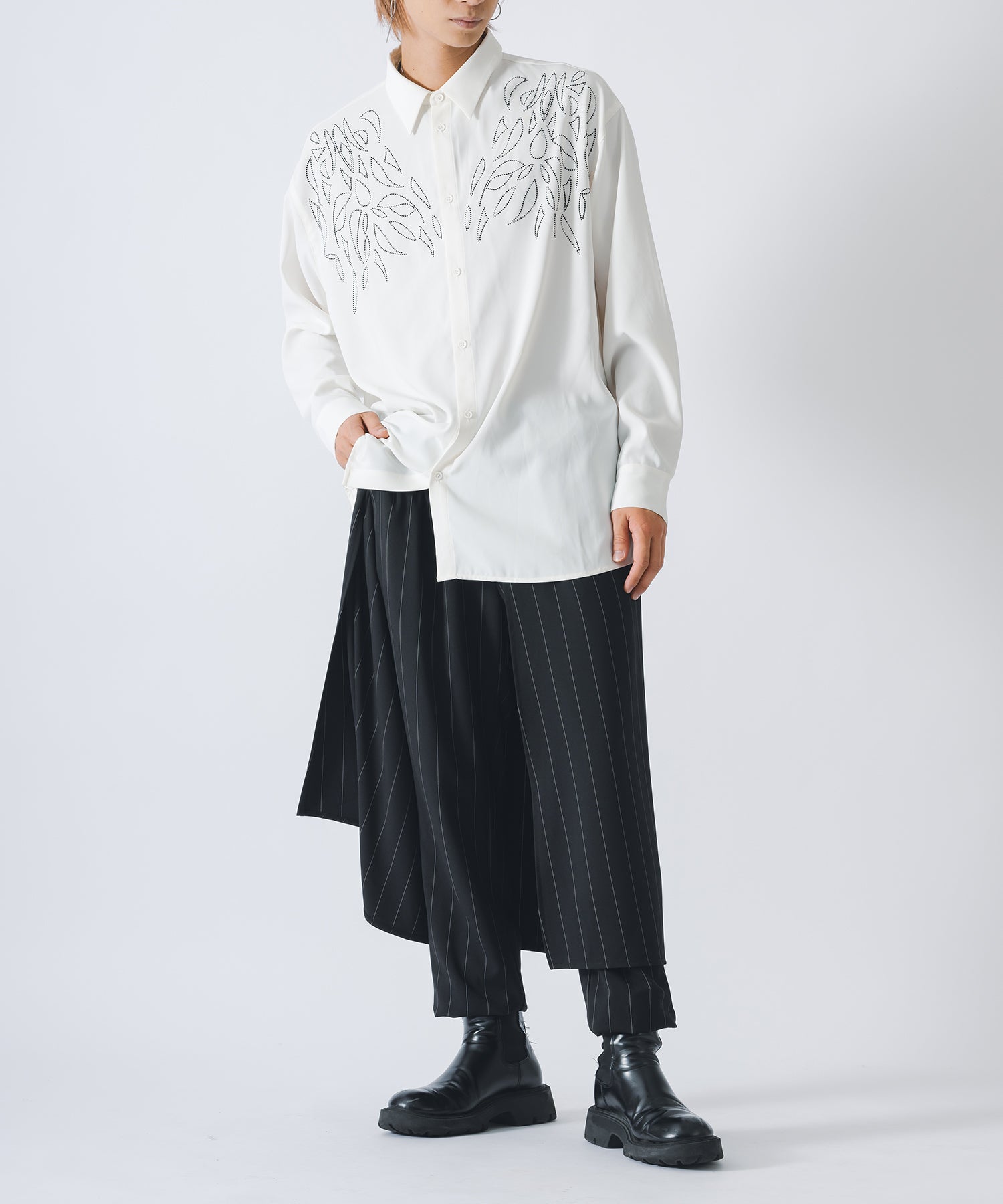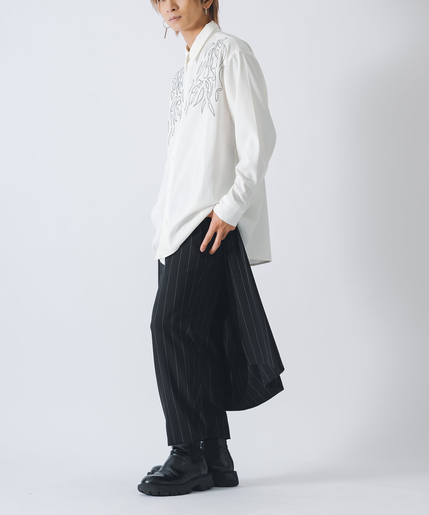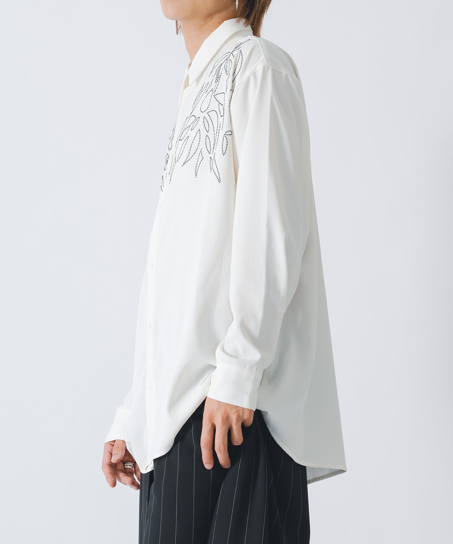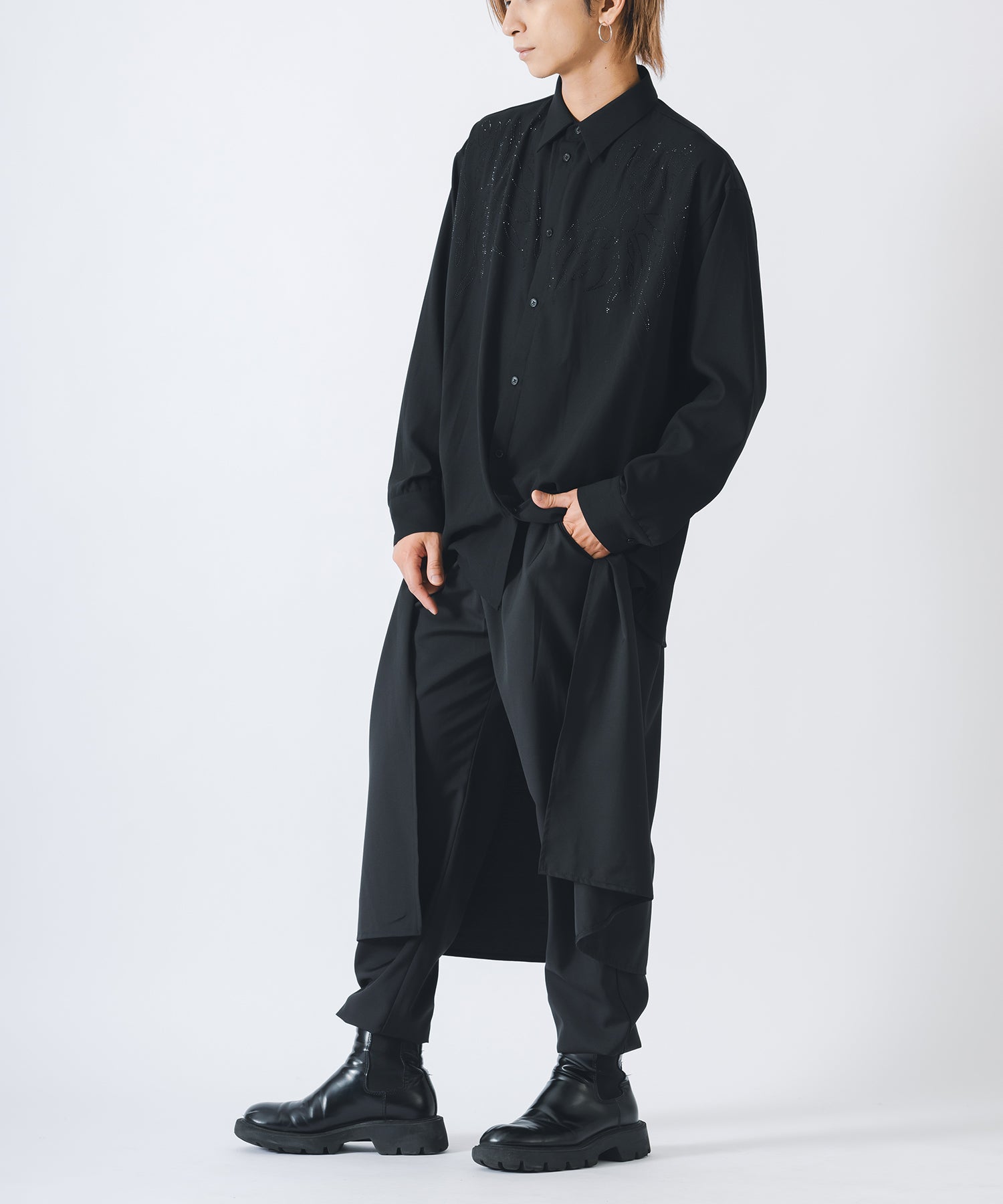 ラインストーンで柄を象った長袖のモードなシャツです。