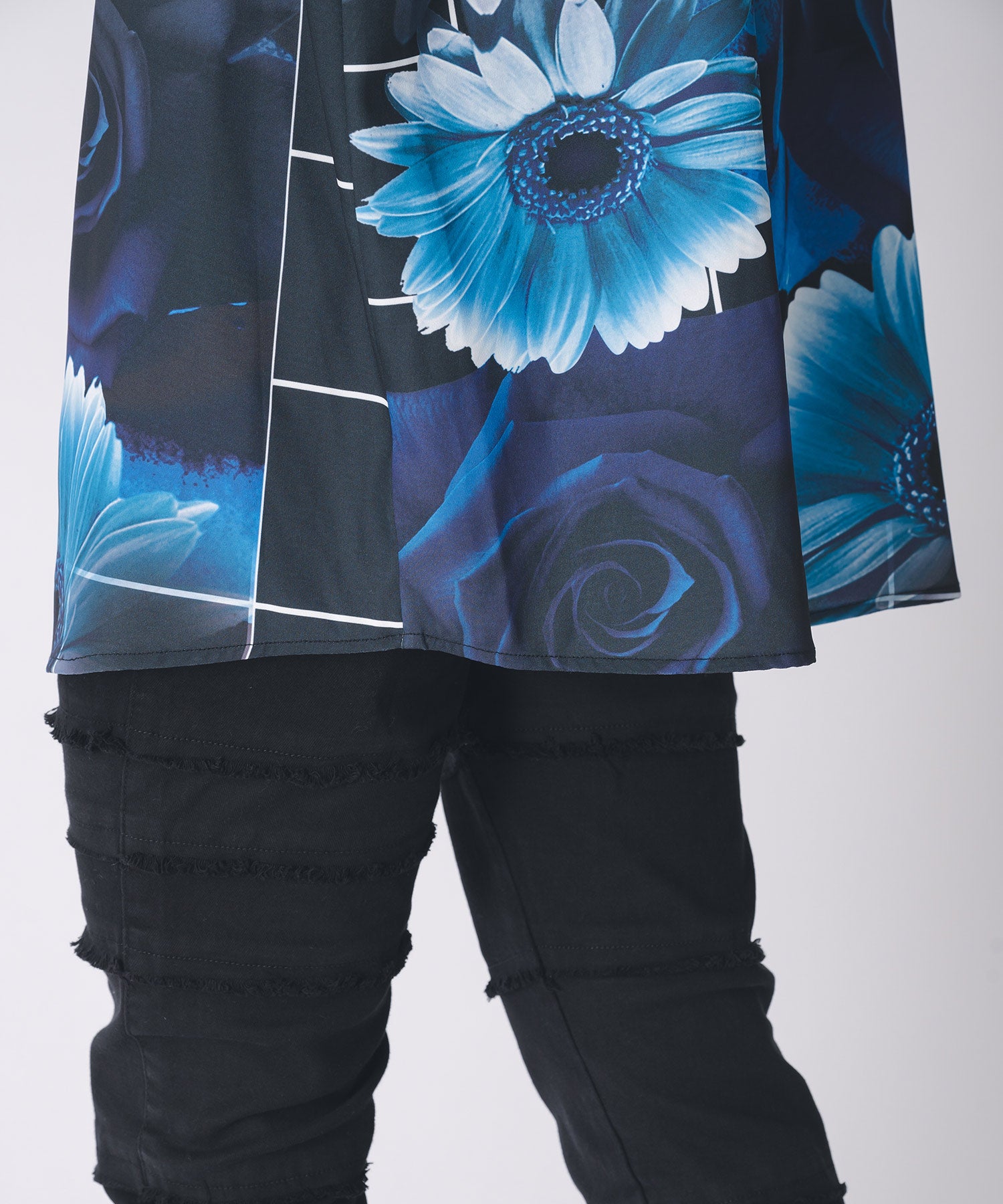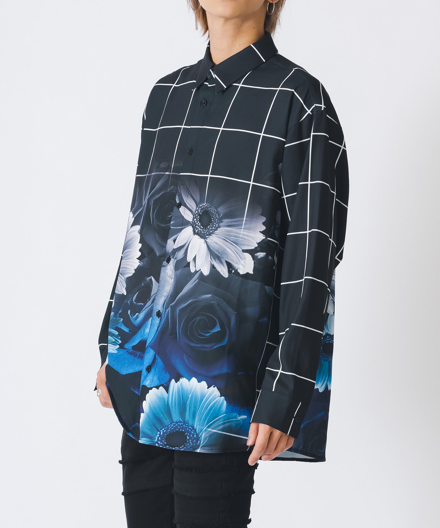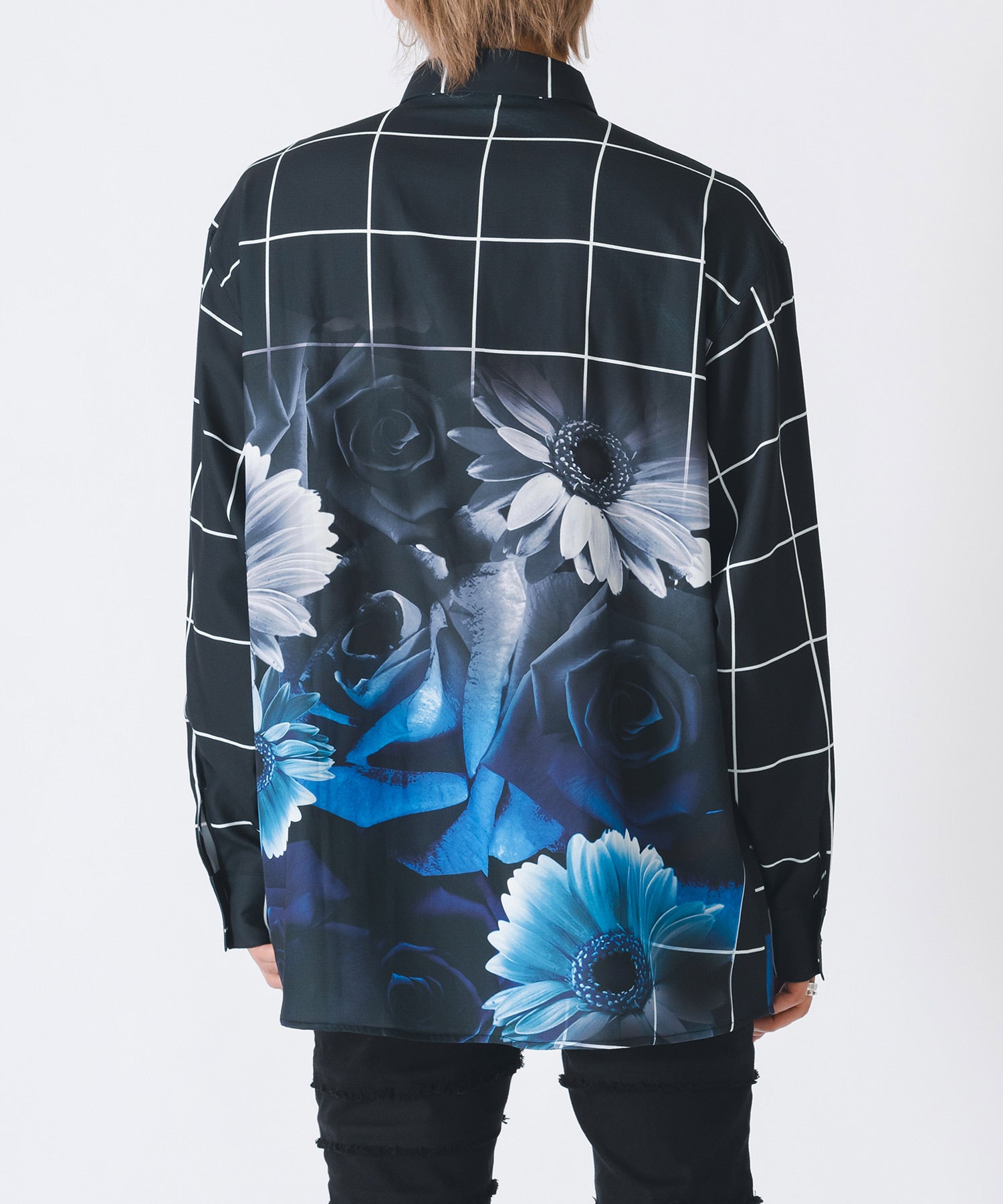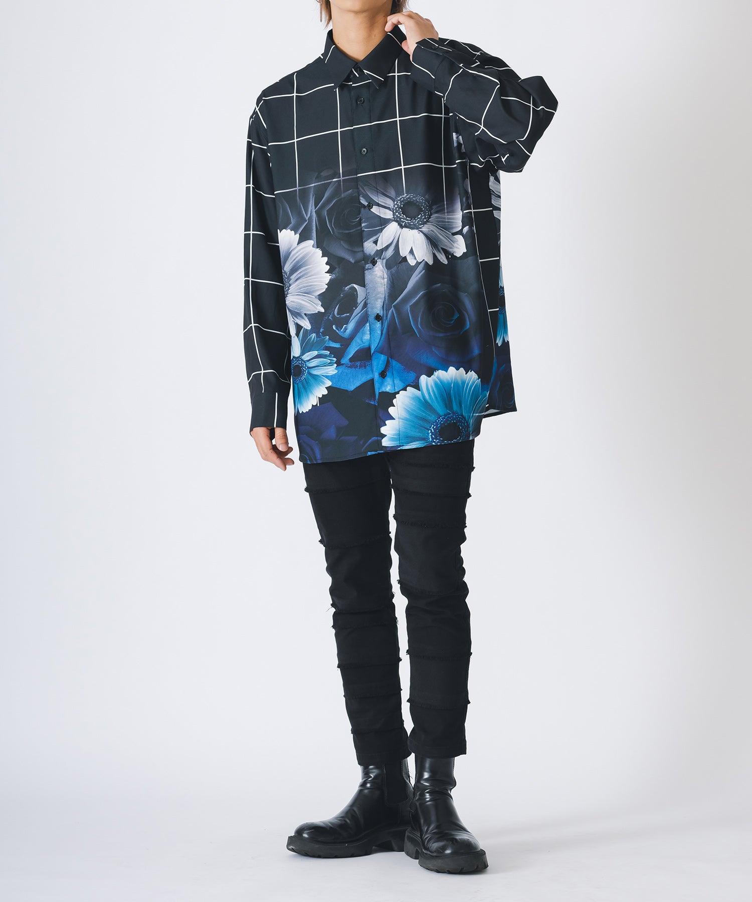 チェック柄にバラのプリントをしたモードなシャツです。