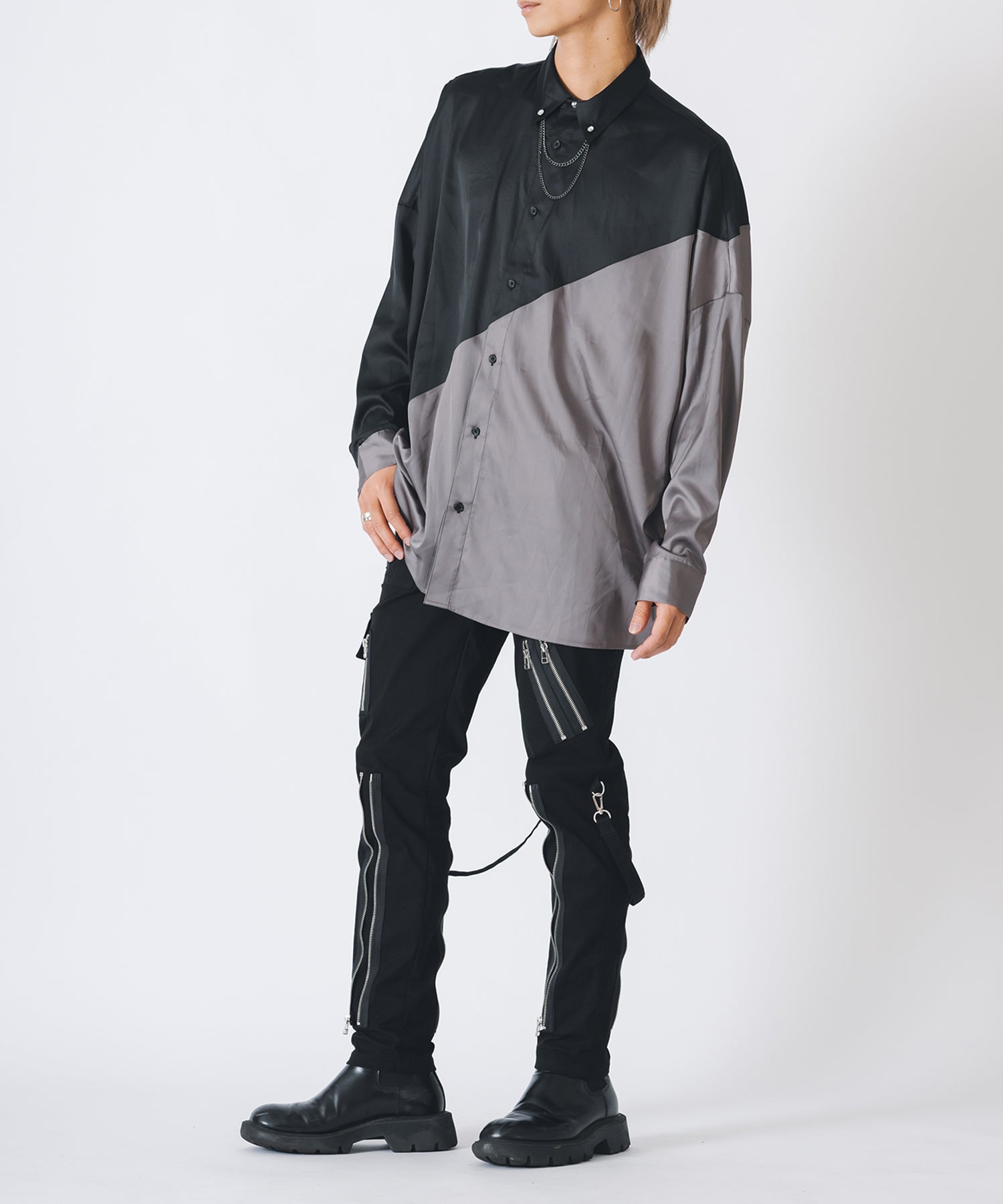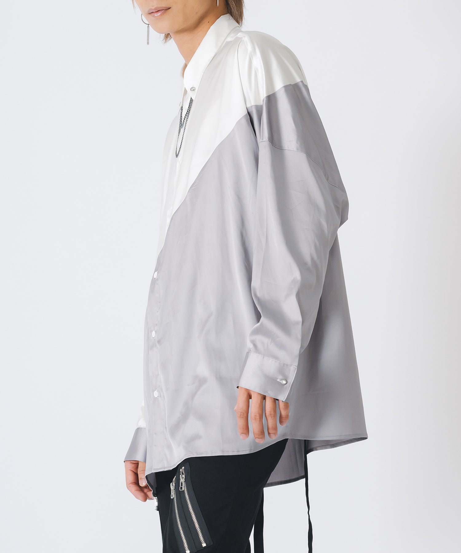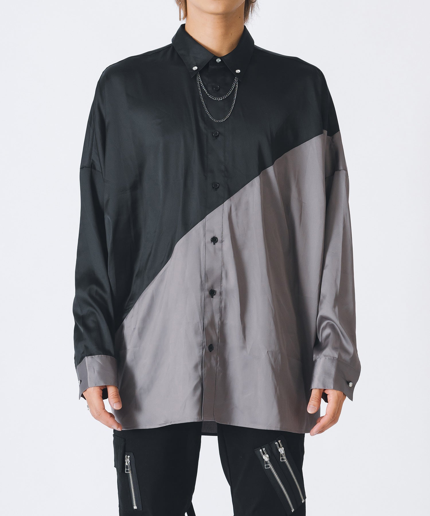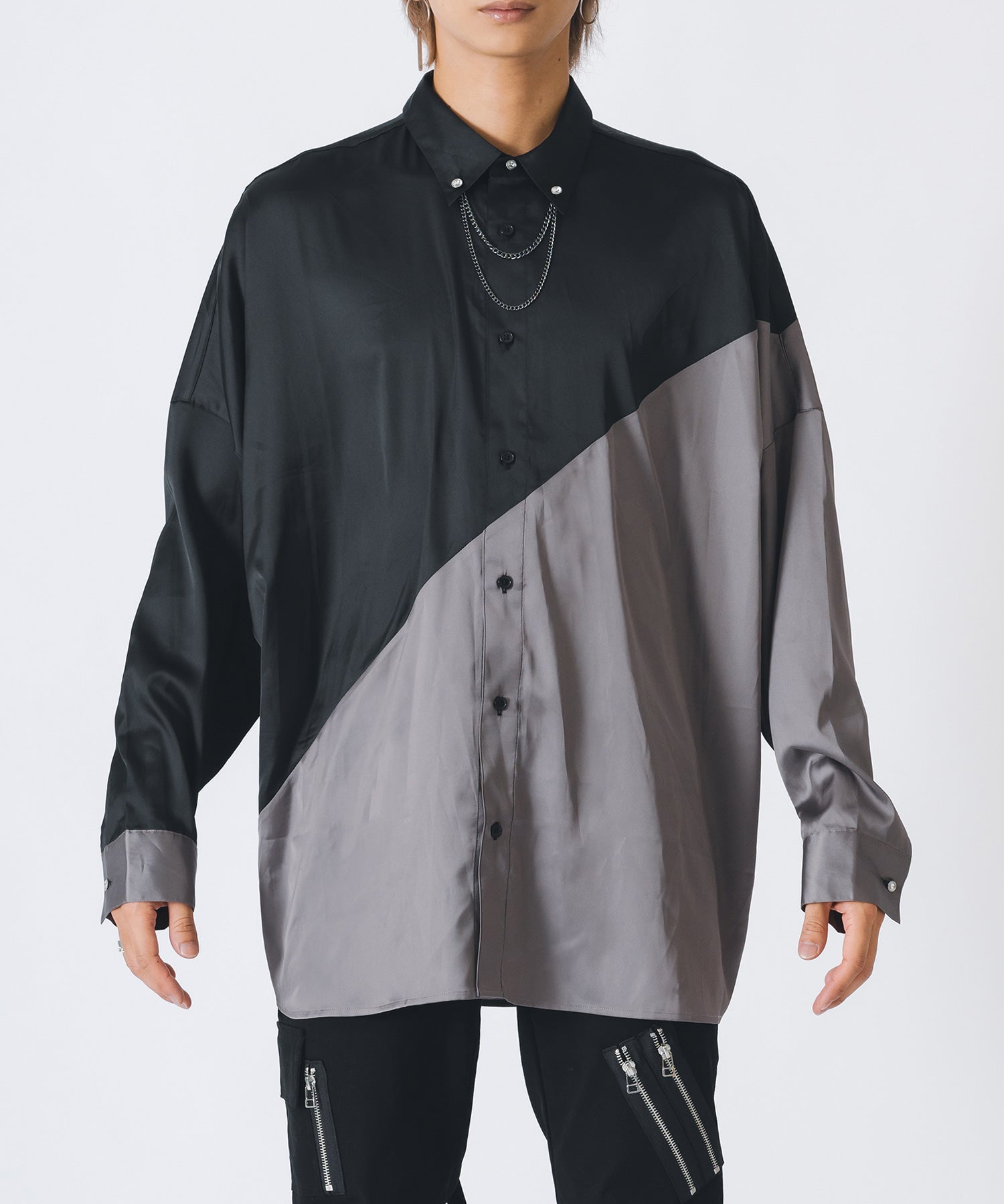 バイアスに切り替えたドルマンスリーブのチェーン付きシャツです。