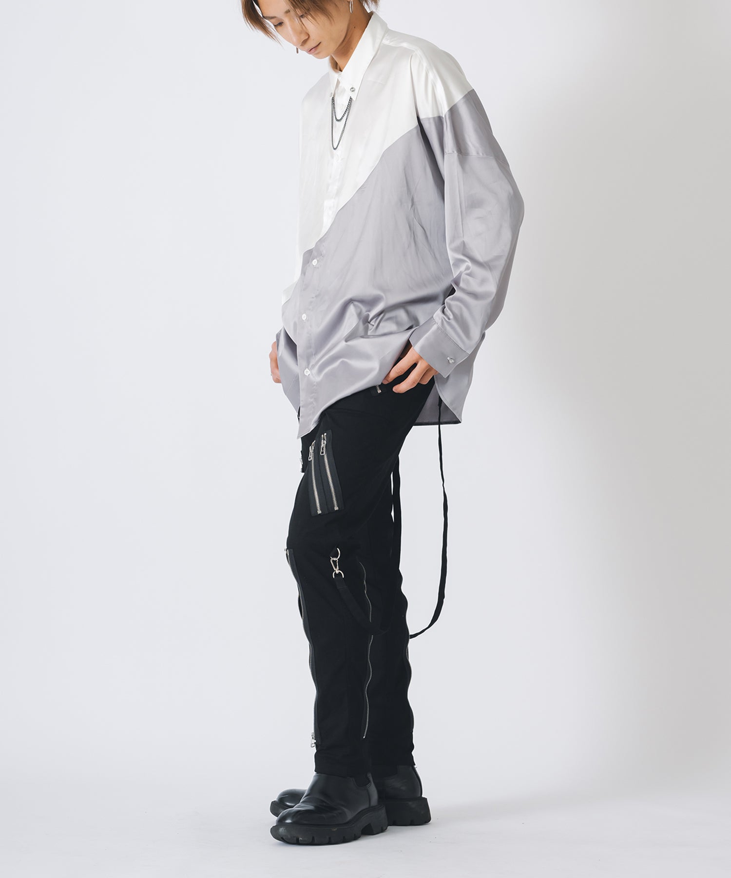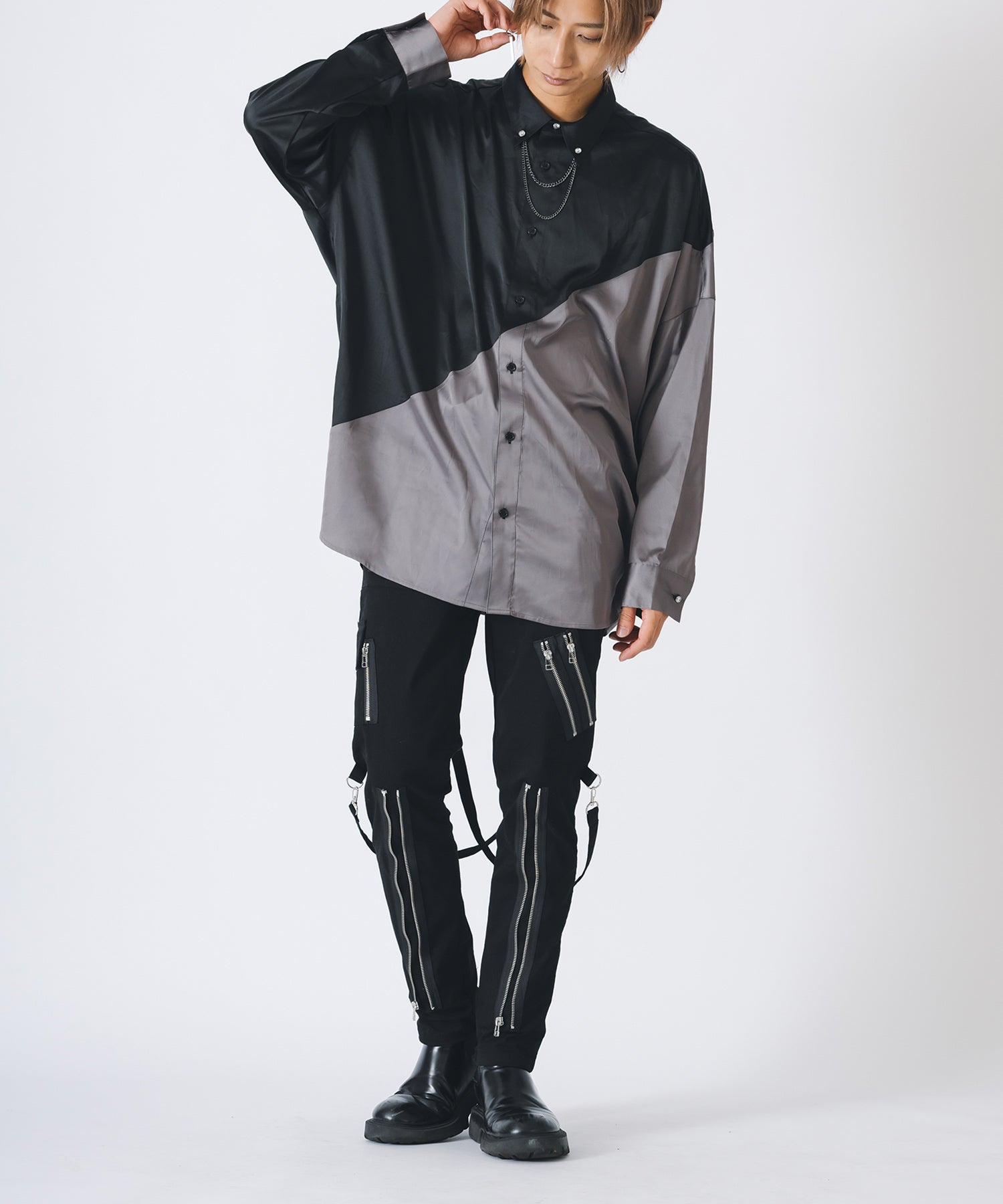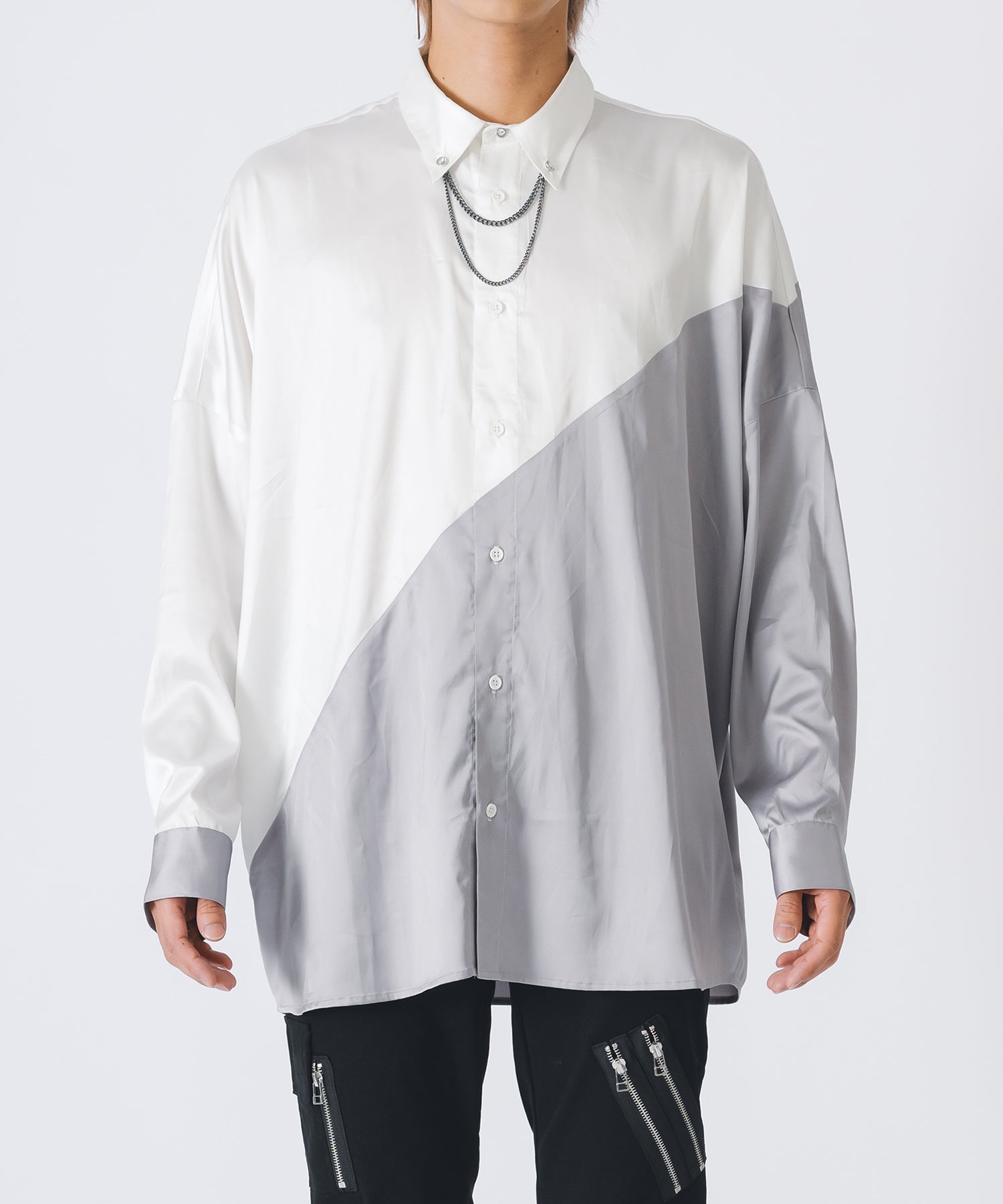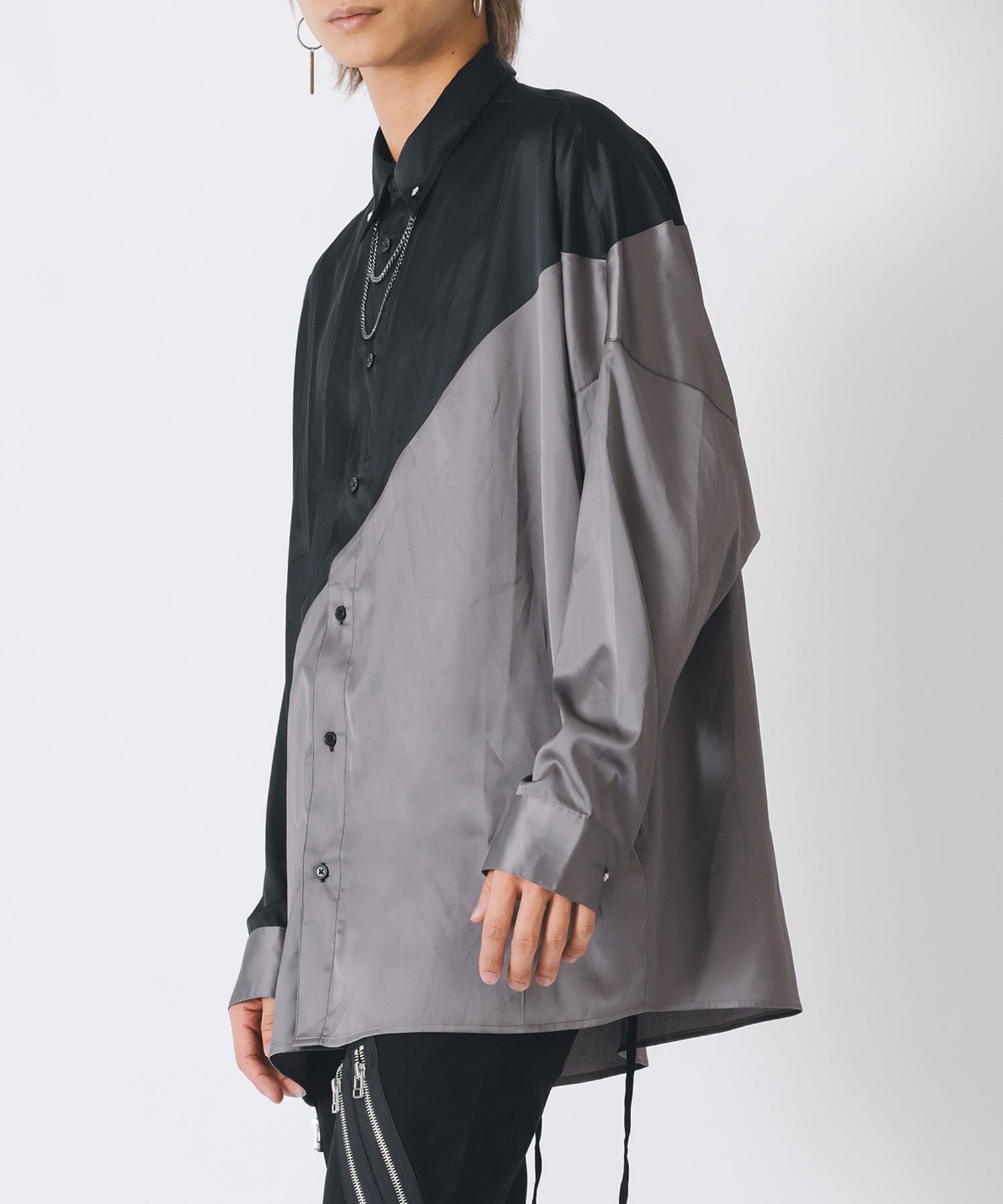 バイアスに切り替えたドルマンスリーブのチェーン付きシャツです。