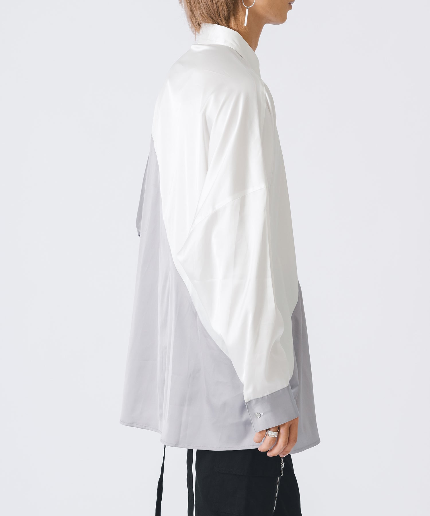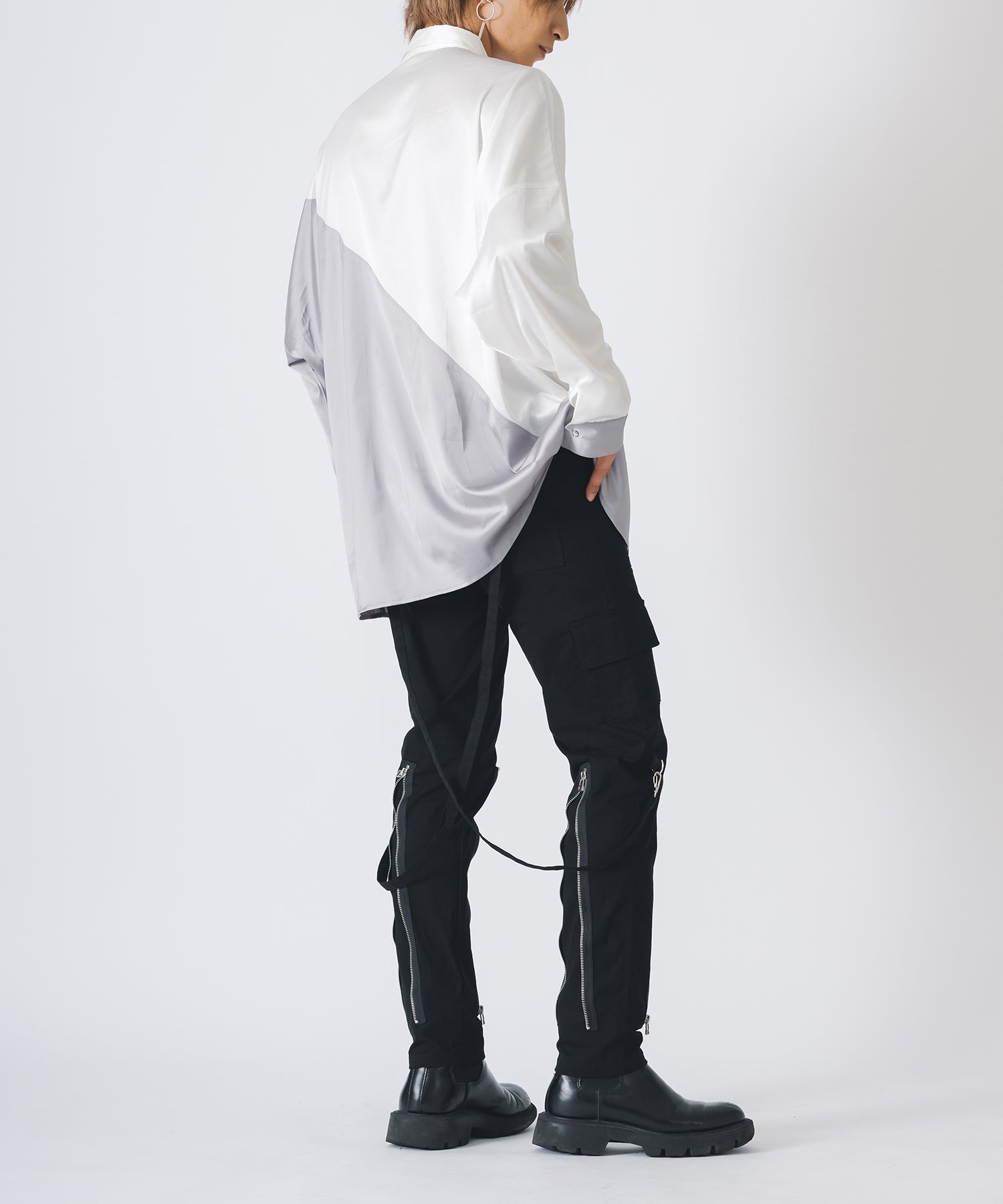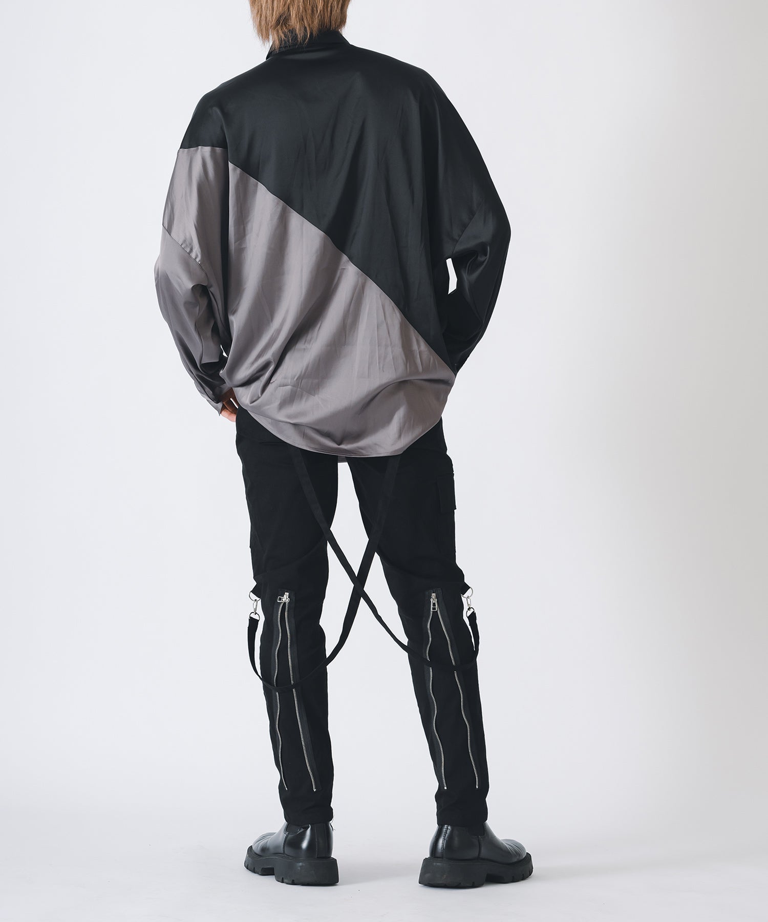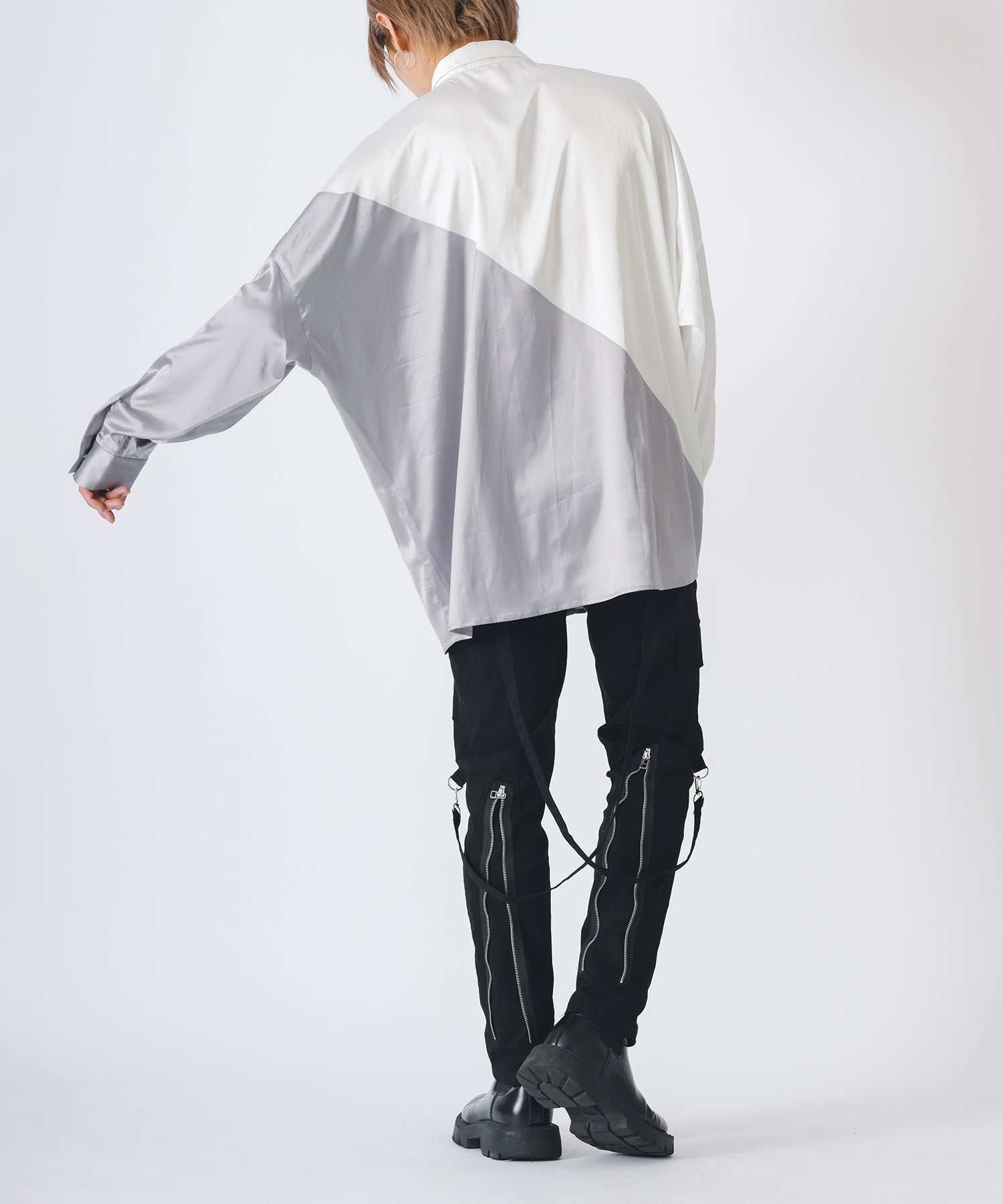 バイアスに切り替えたドルマンスリーブのチェーン付きシャツです。