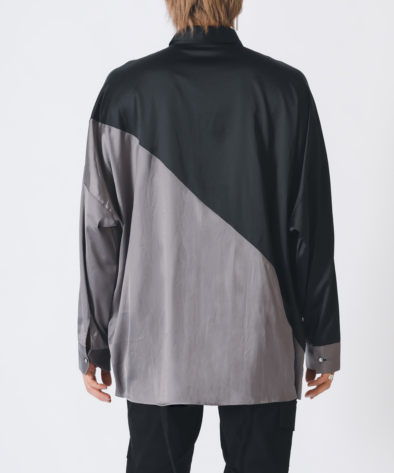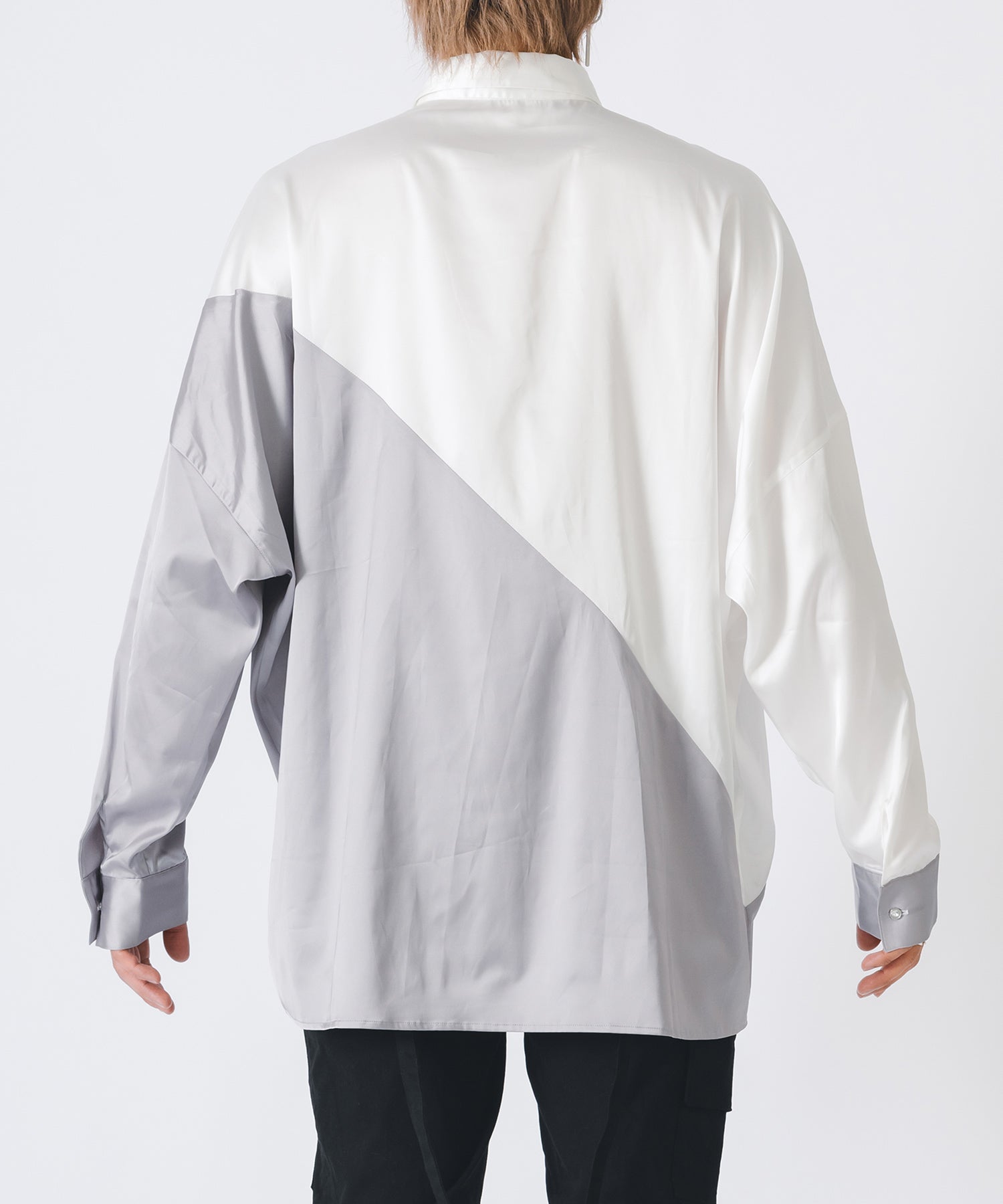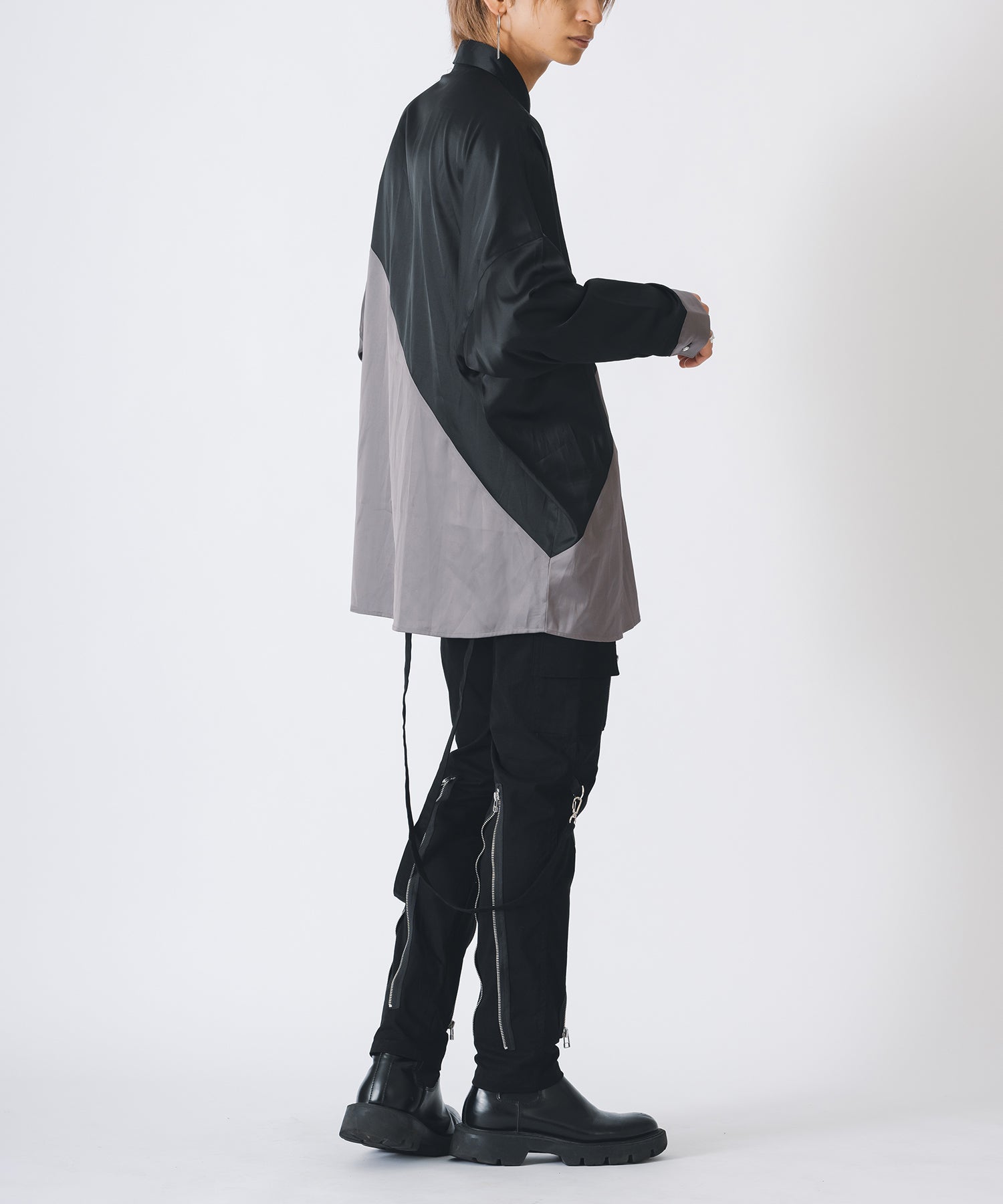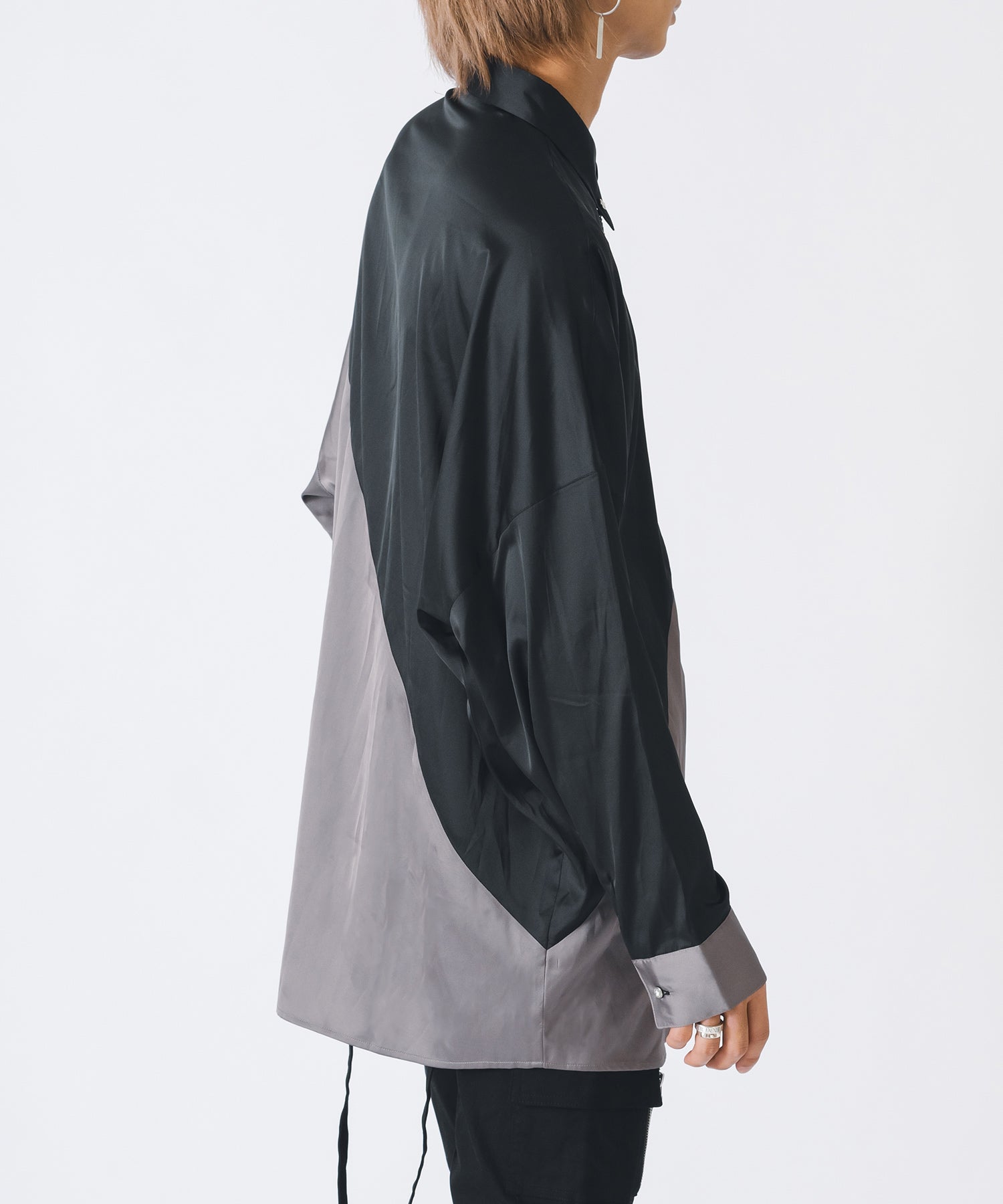 バイアスに切り替えたドルマンスリーブのチェーン付きシャツです。
