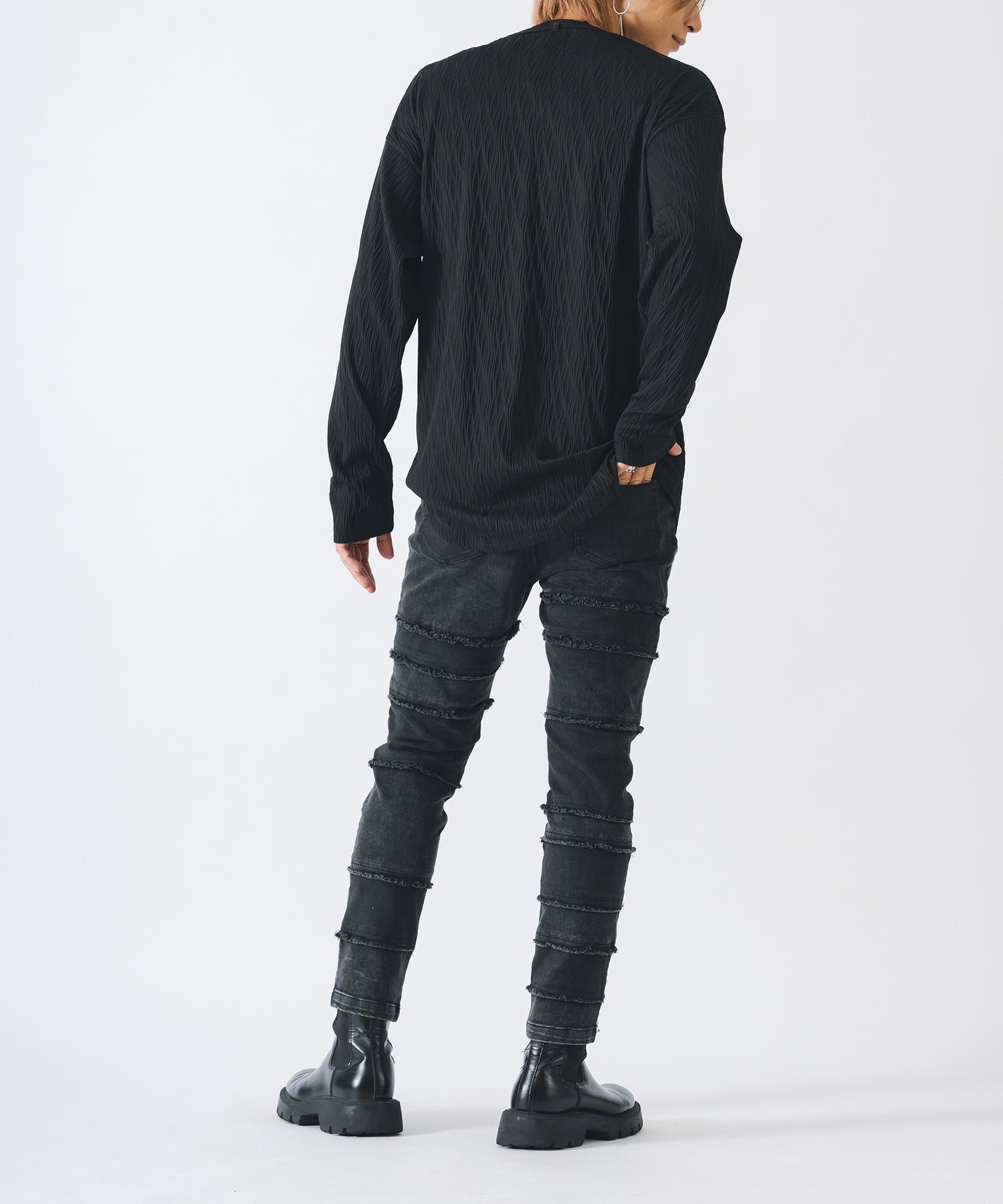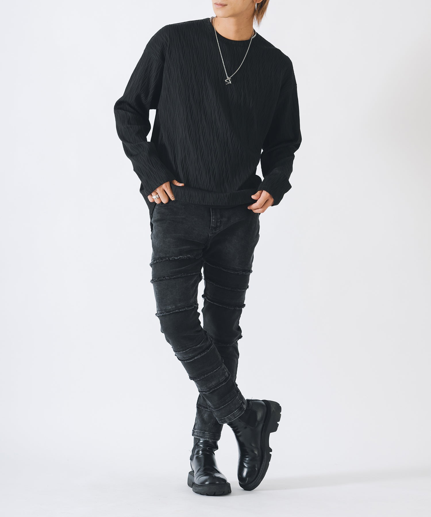 表面はウェーブ状の織り柄が特徴的で、ストレッチ性もあって着やすく、なんと言ってもそのソフトな肌触りが最高に気持ちいいです。