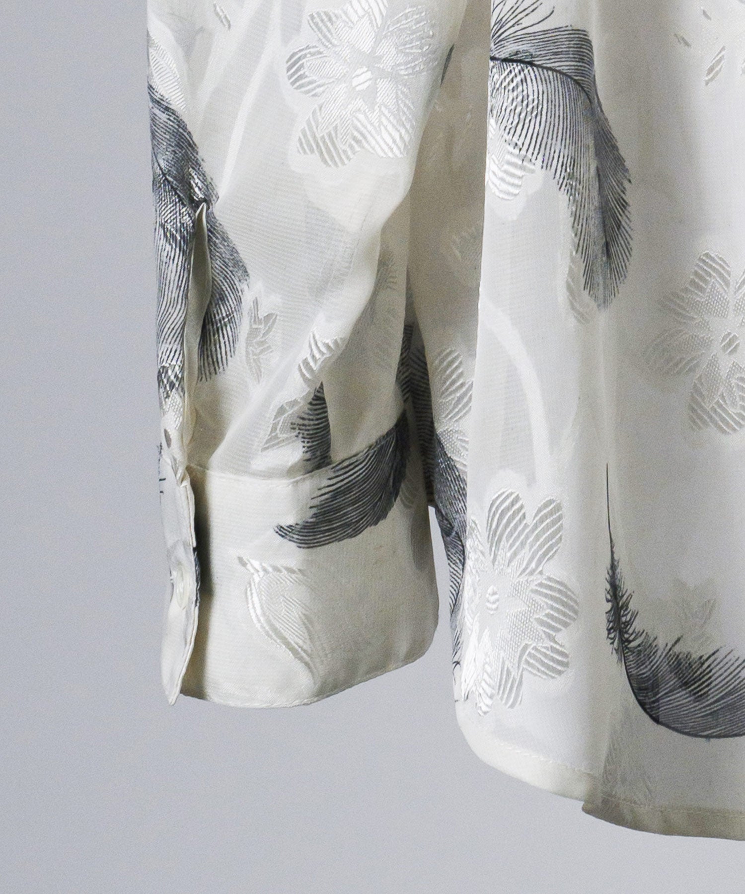 ジャカードで織られたフェザー柄は光沢もあってエレガントな印象を高めます。