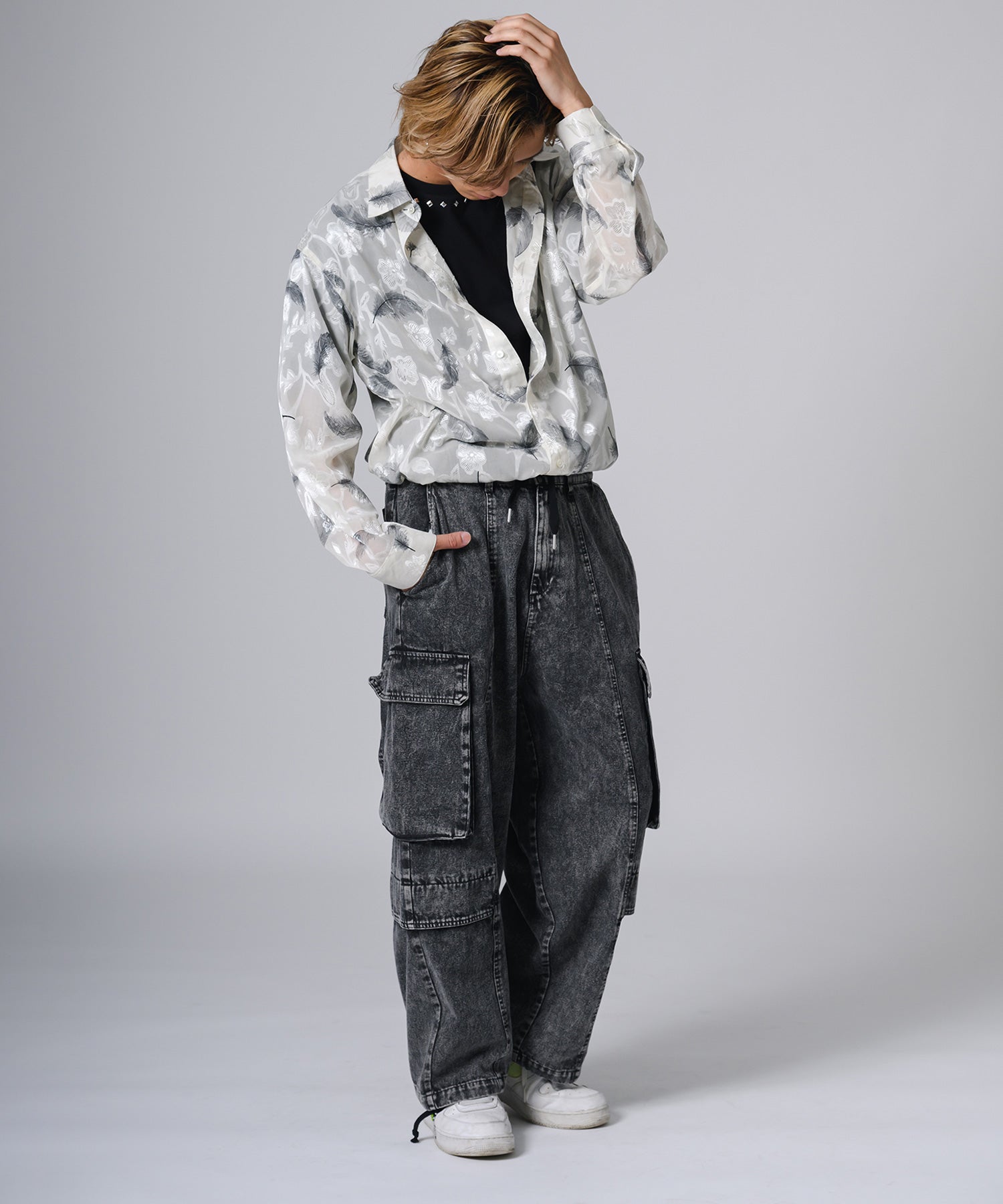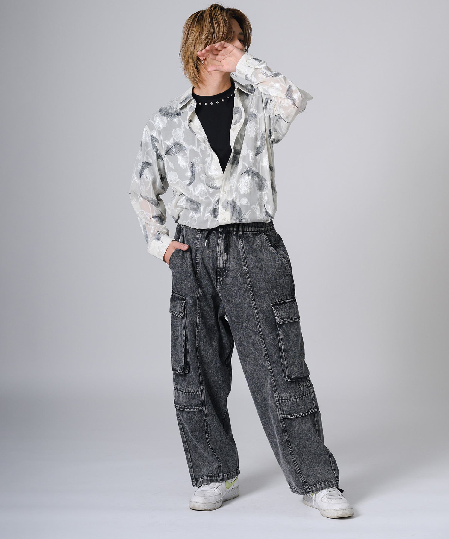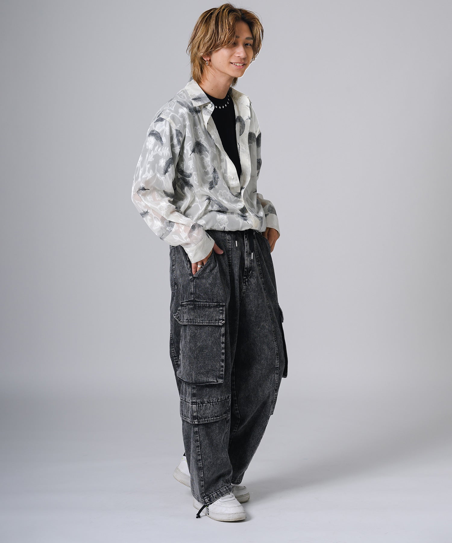ややゆったりとしたオーバーサイズなシルエットが今風で、ラフな印象も演出します。