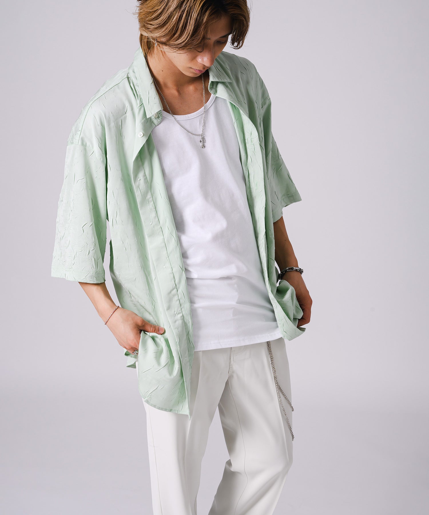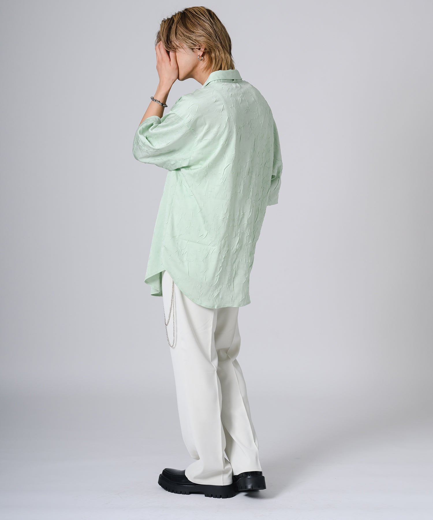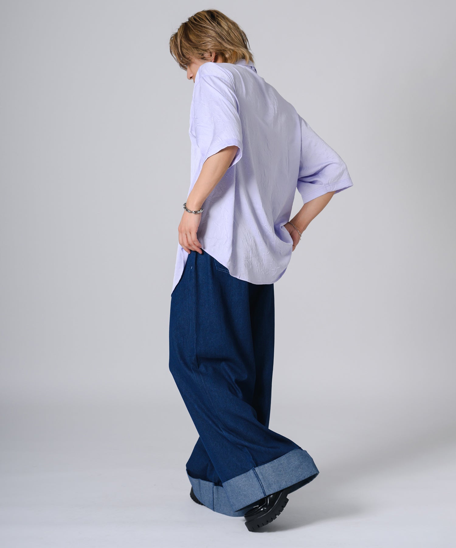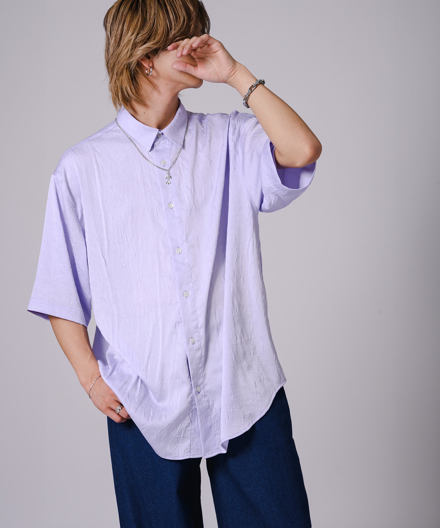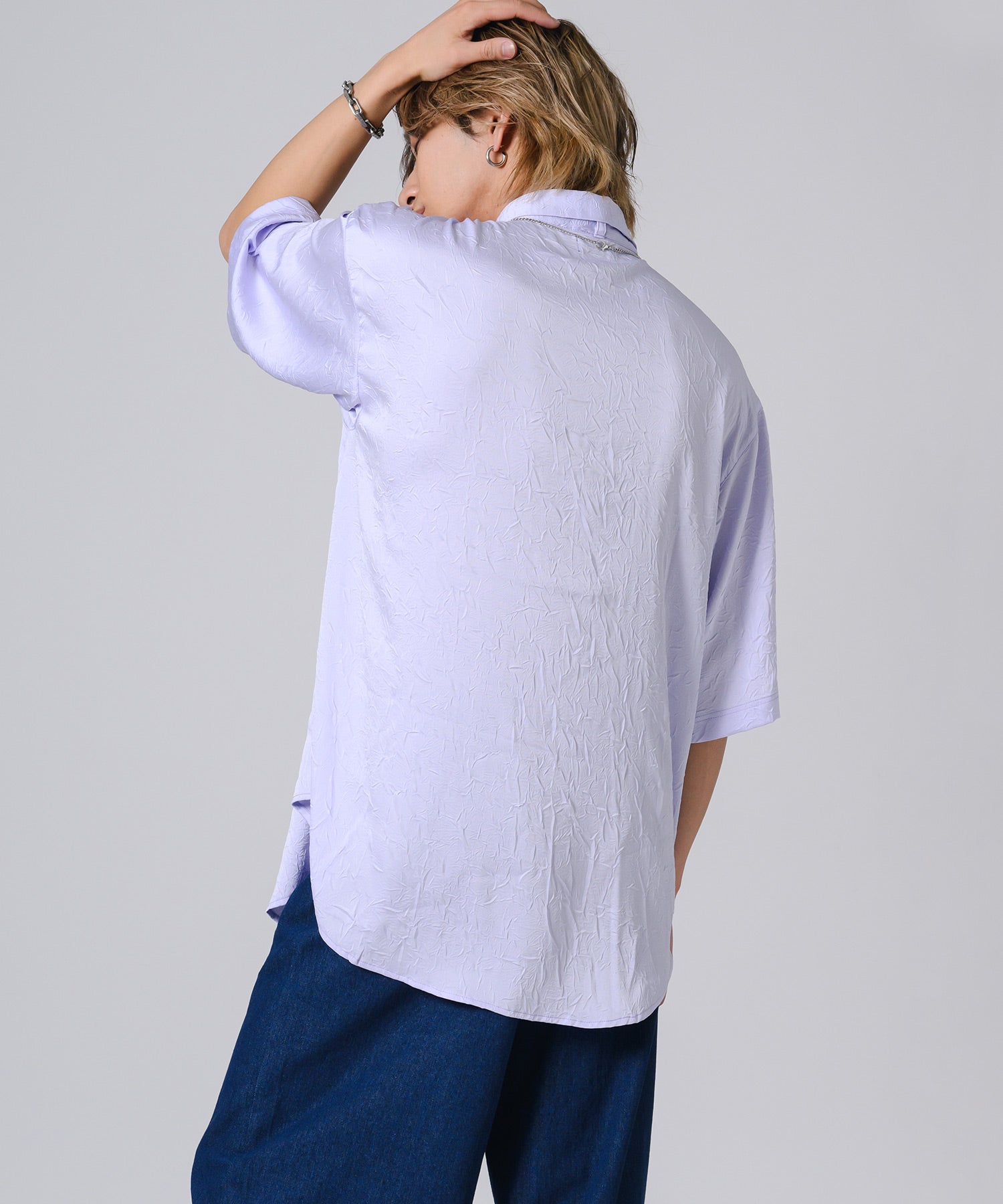 胸ポケットを省いたミニマルなデザインで、適度なゆとりのシルエットです。