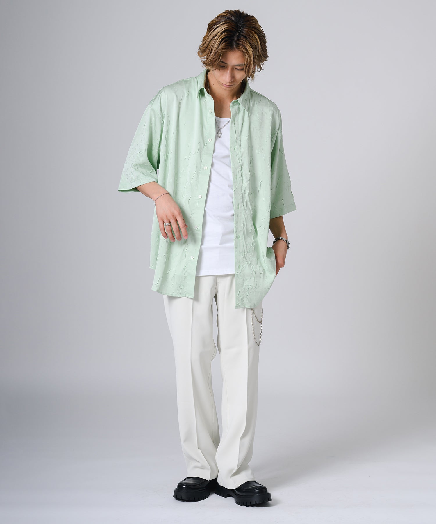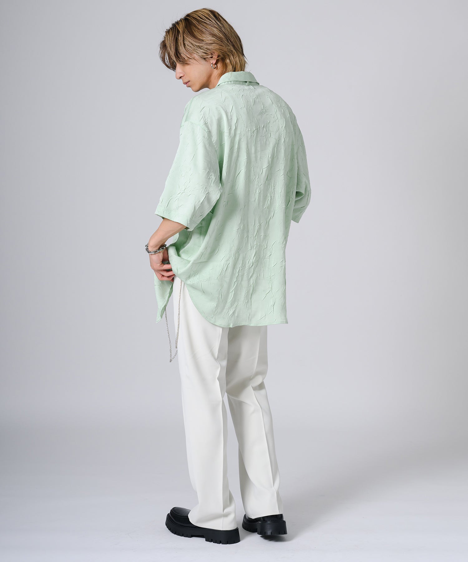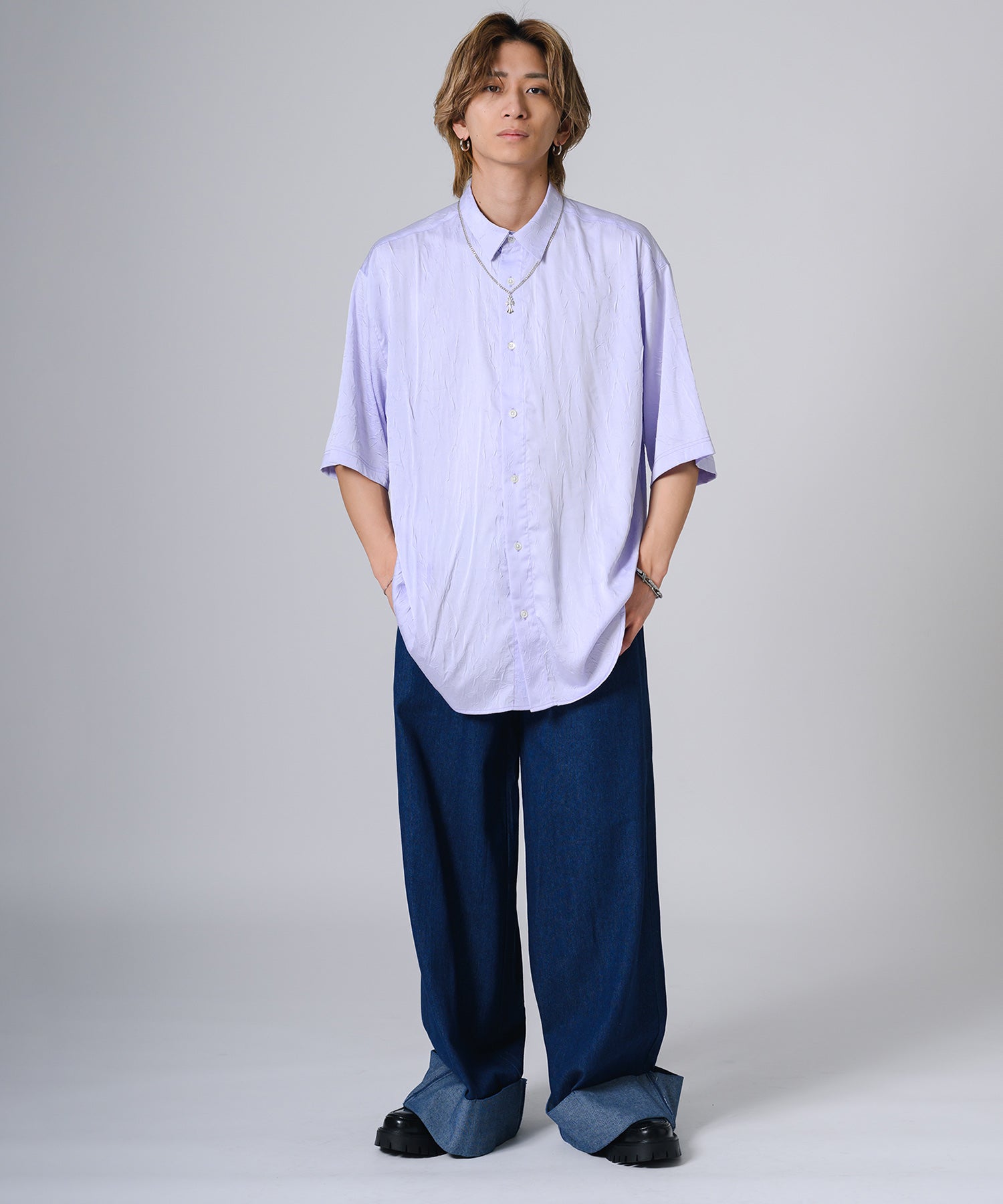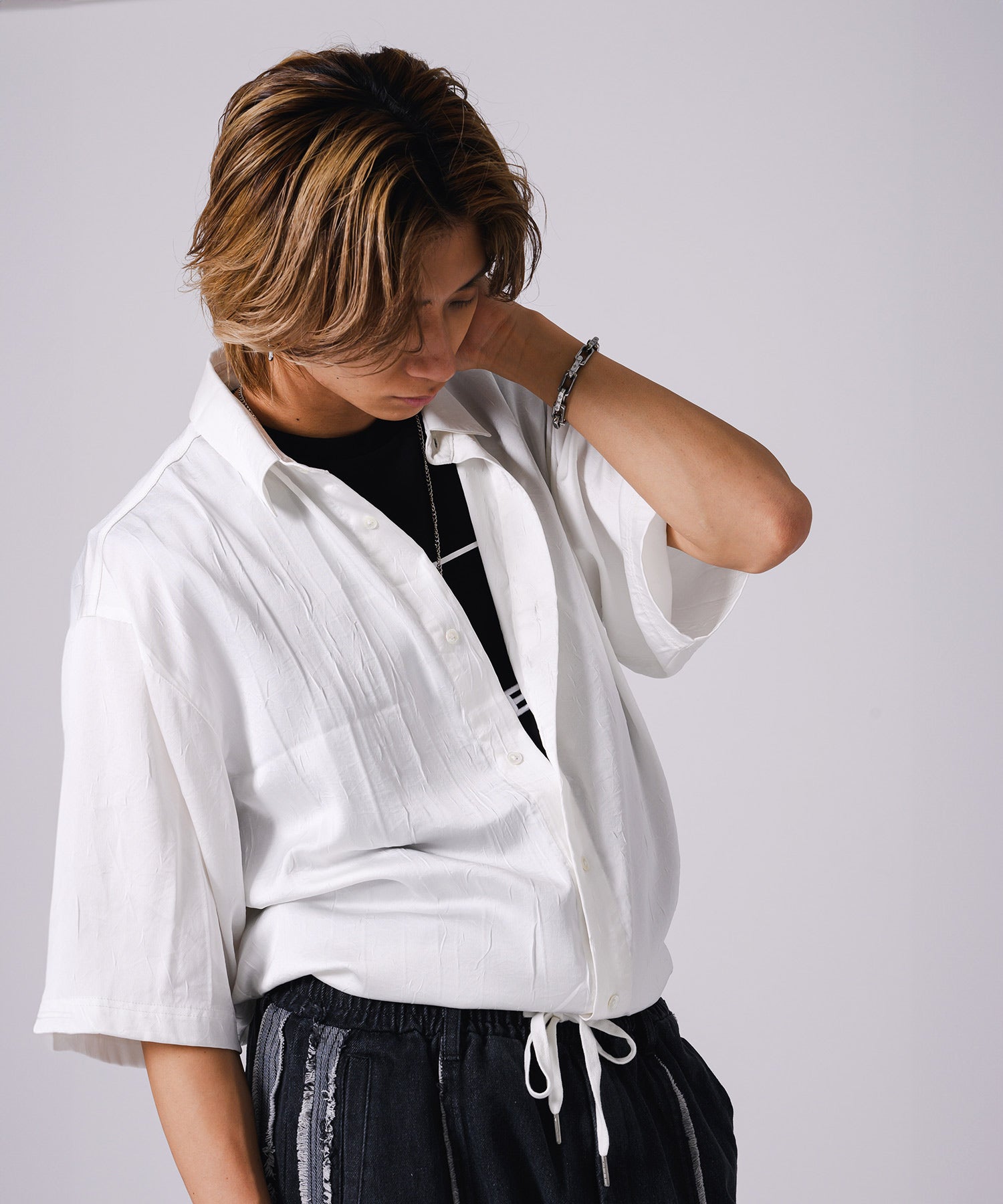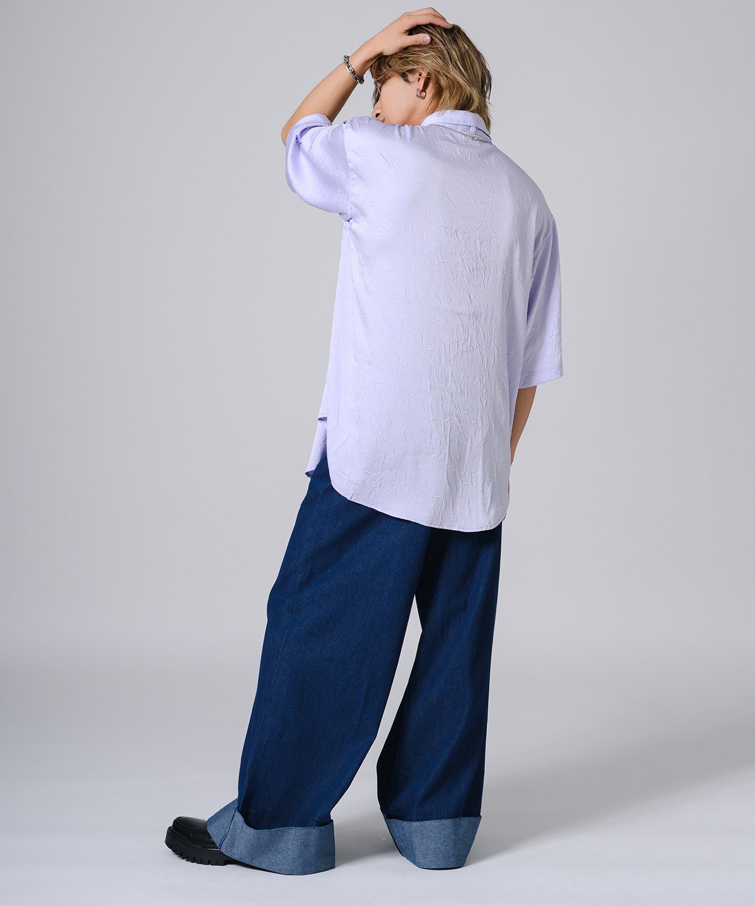胸ポケットを省いたミニマルなデザインで、適度なゆとりのシルエットです。