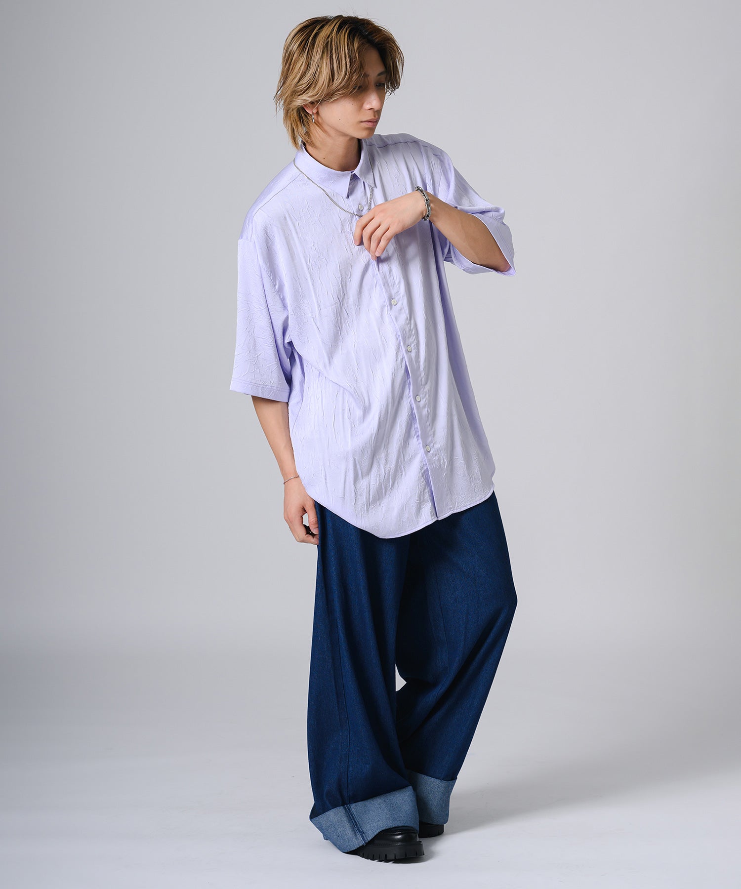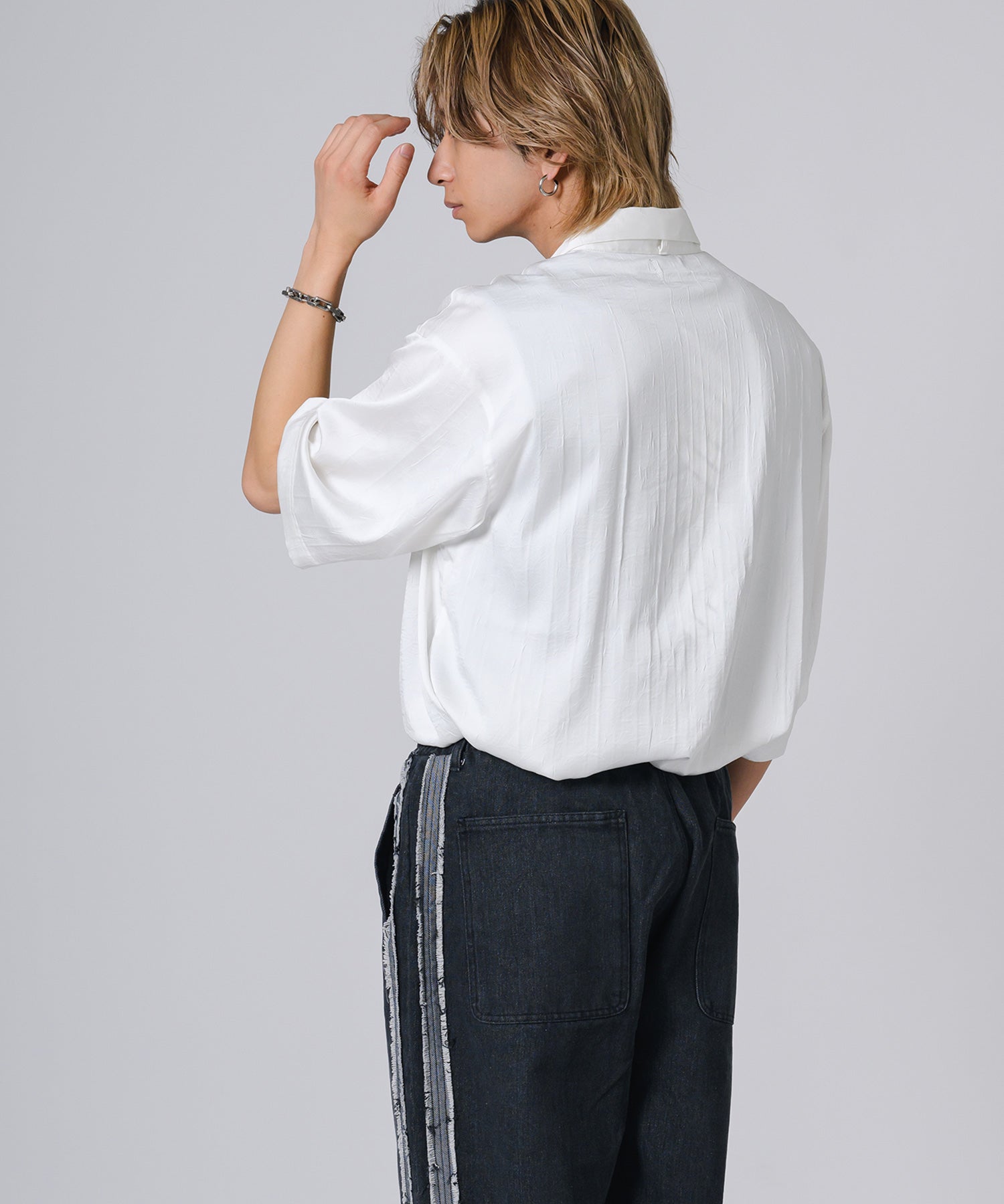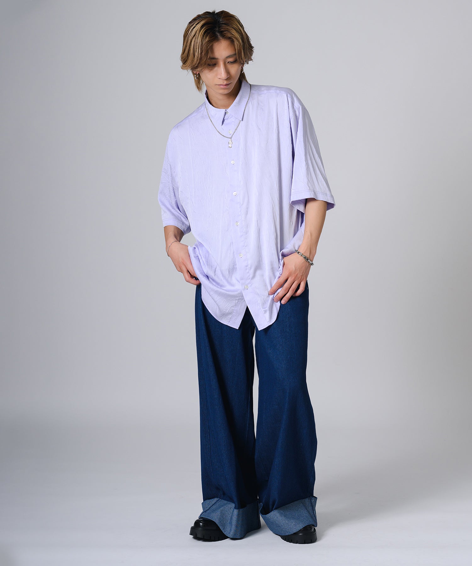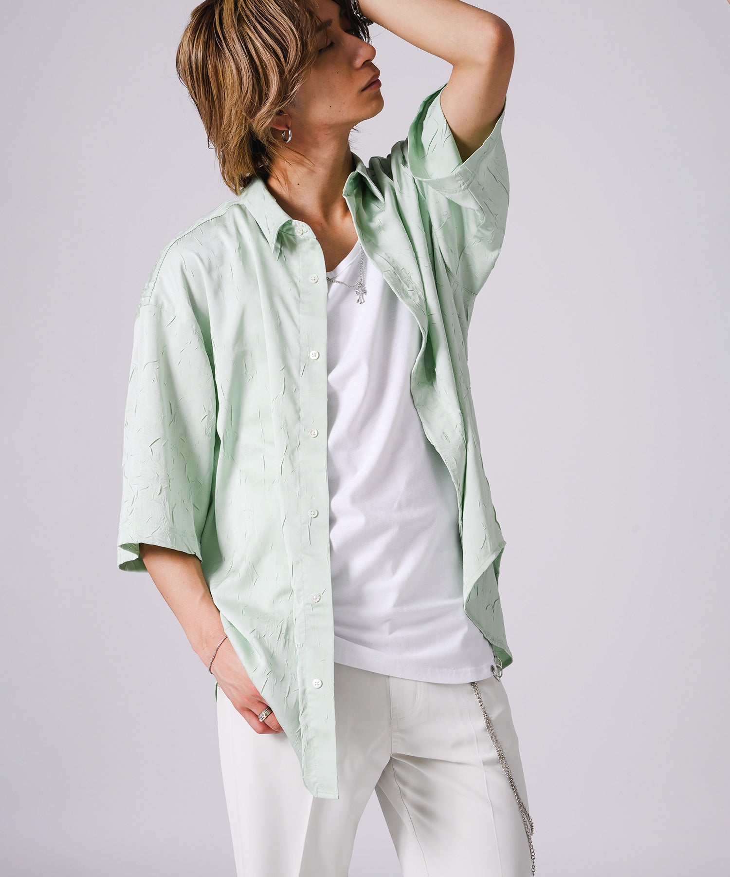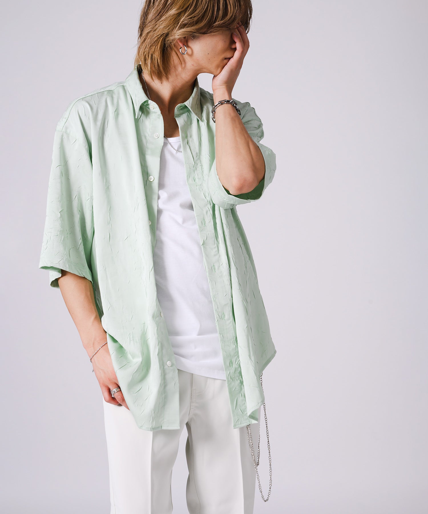 胸ポケットを省いたミニマルなデザインで、適度なゆとりのシルエットです。