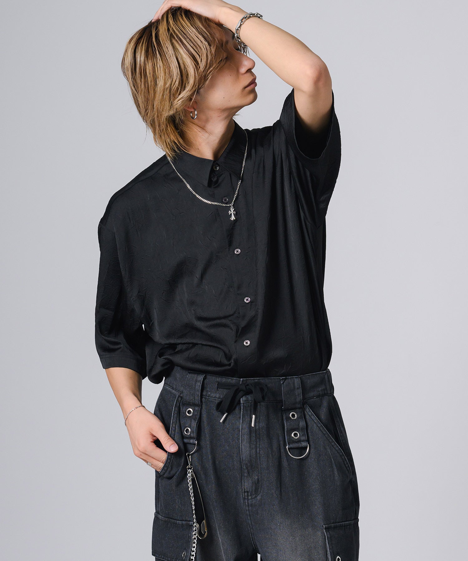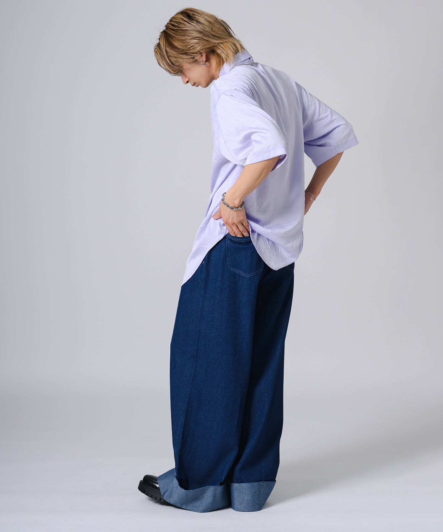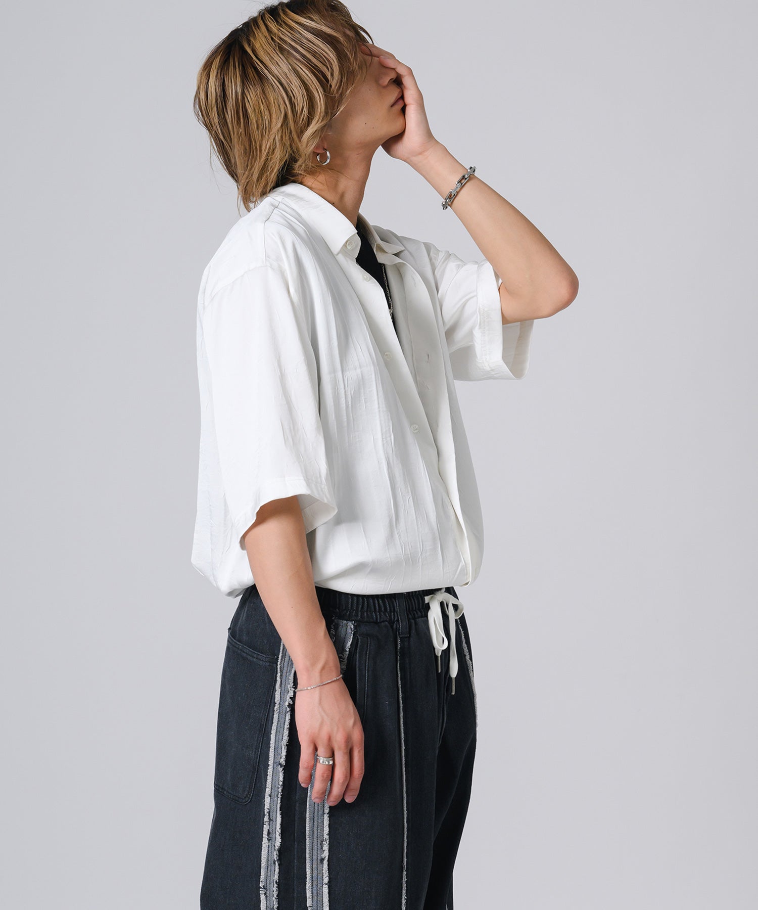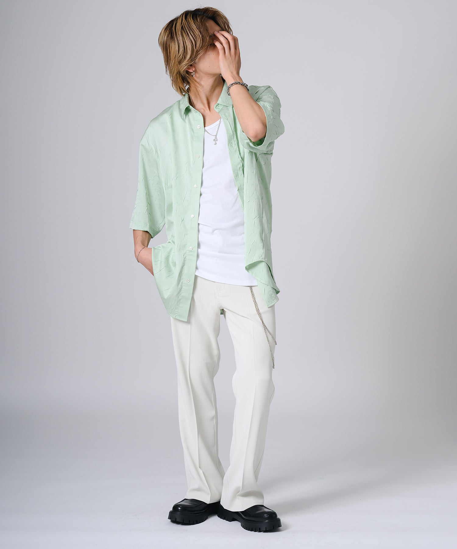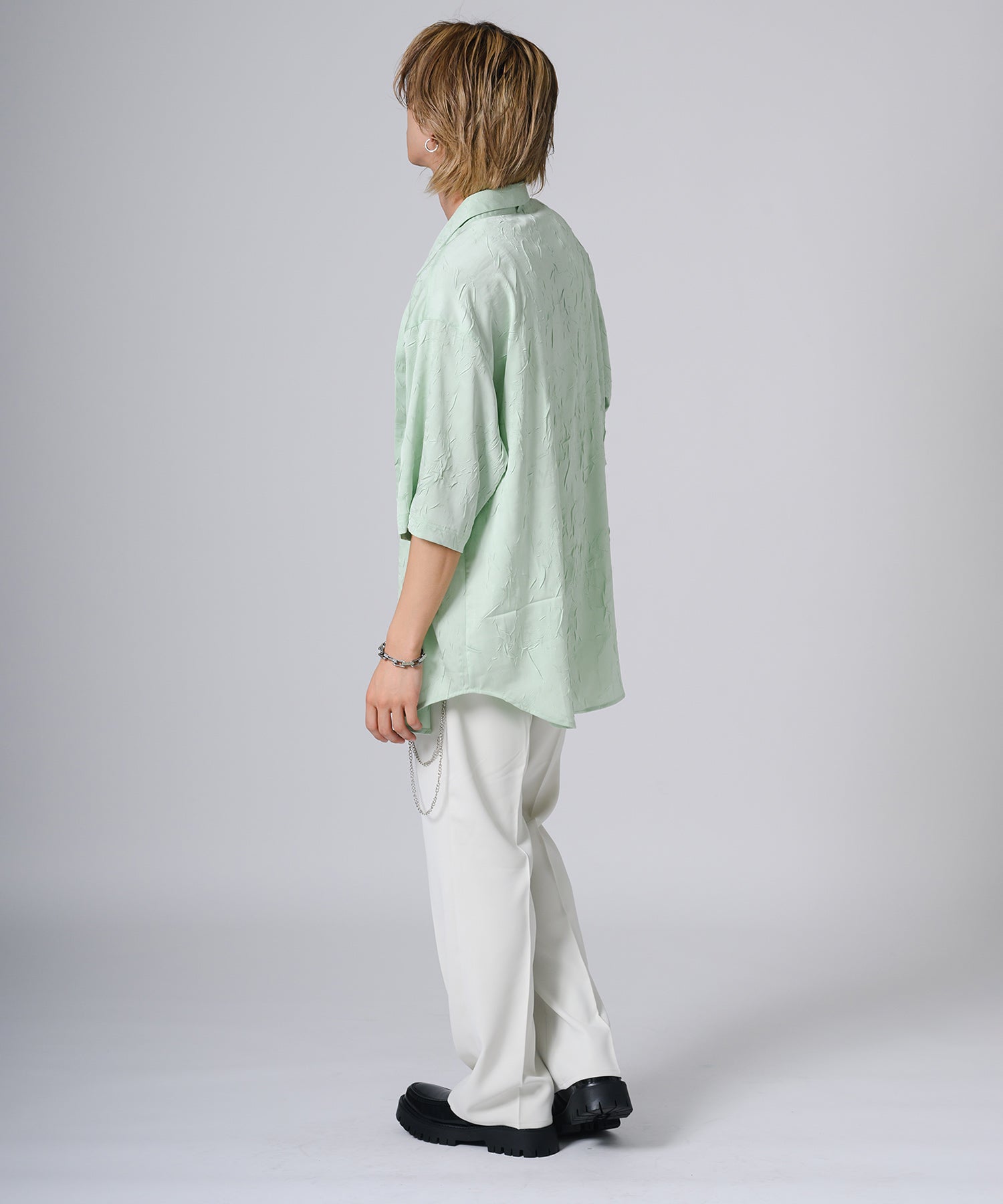 胸ポケットを省いたミニマルなデザインで、適度なゆとりのシルエットです。