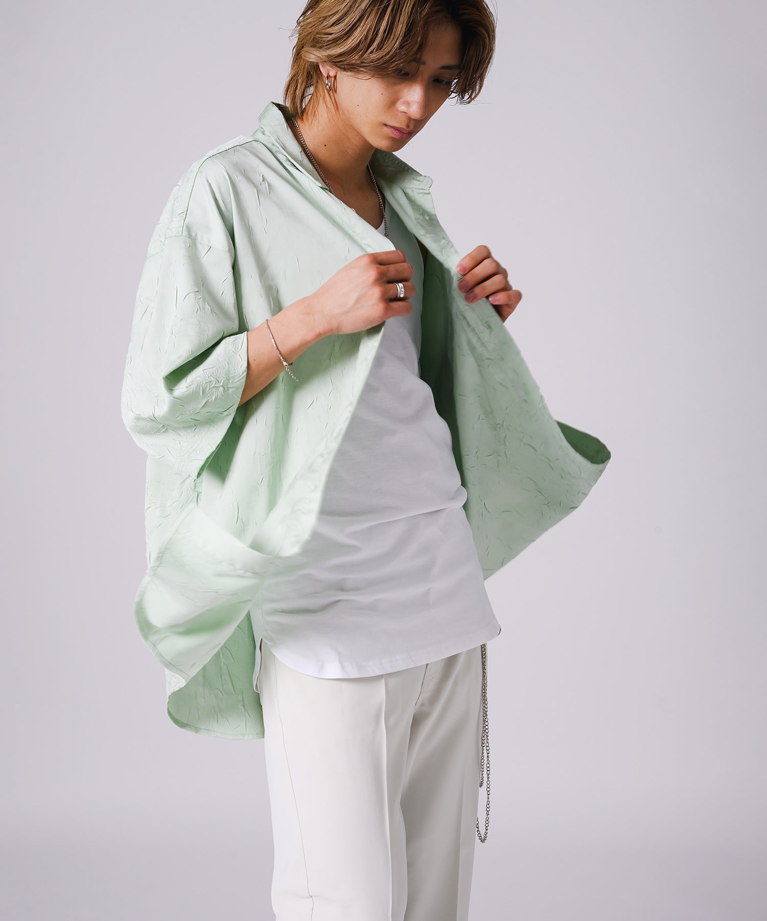 表面にシワを表現したワッシャー加工を施し、上品な中にもカジュアルな着こなしができます。