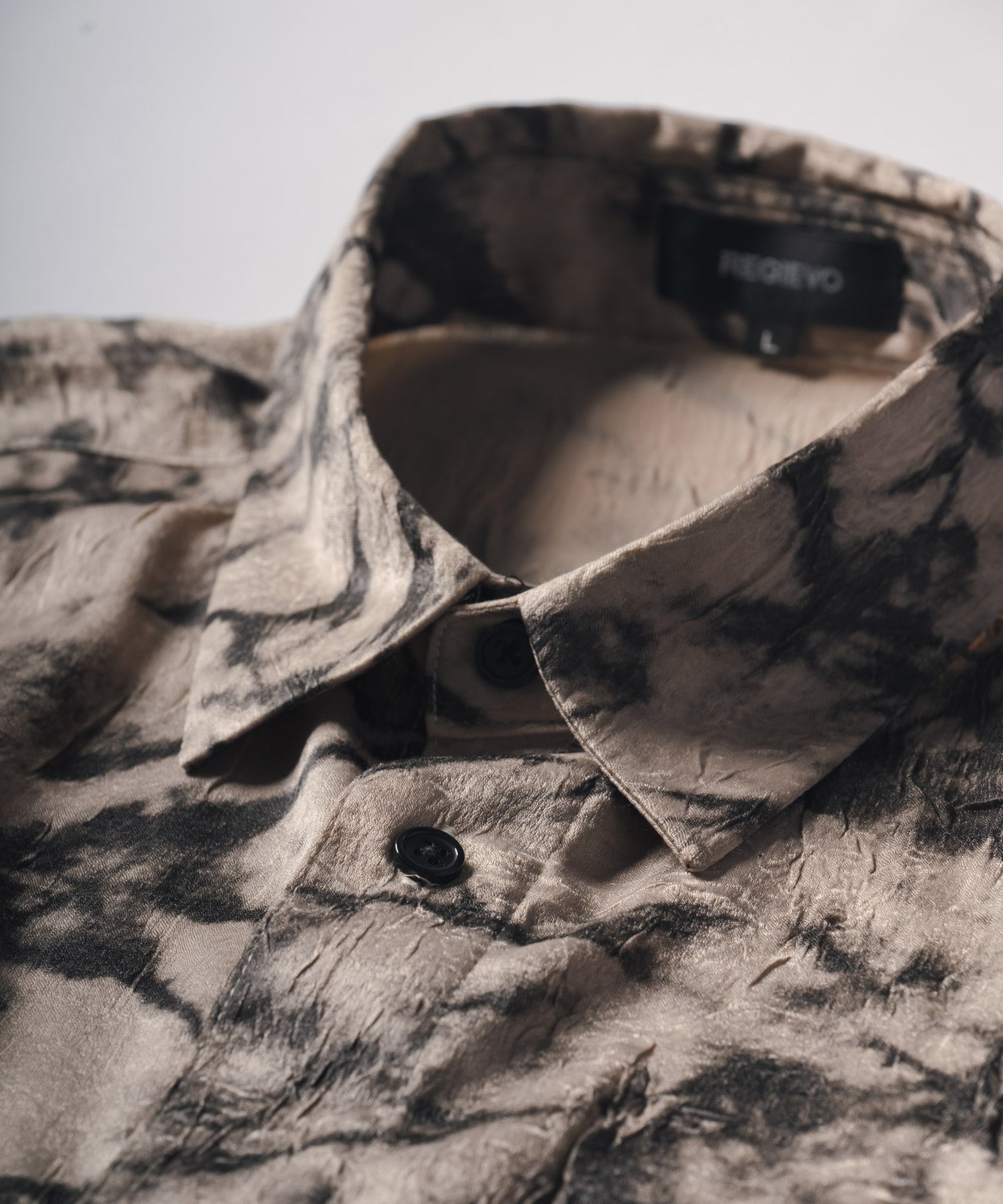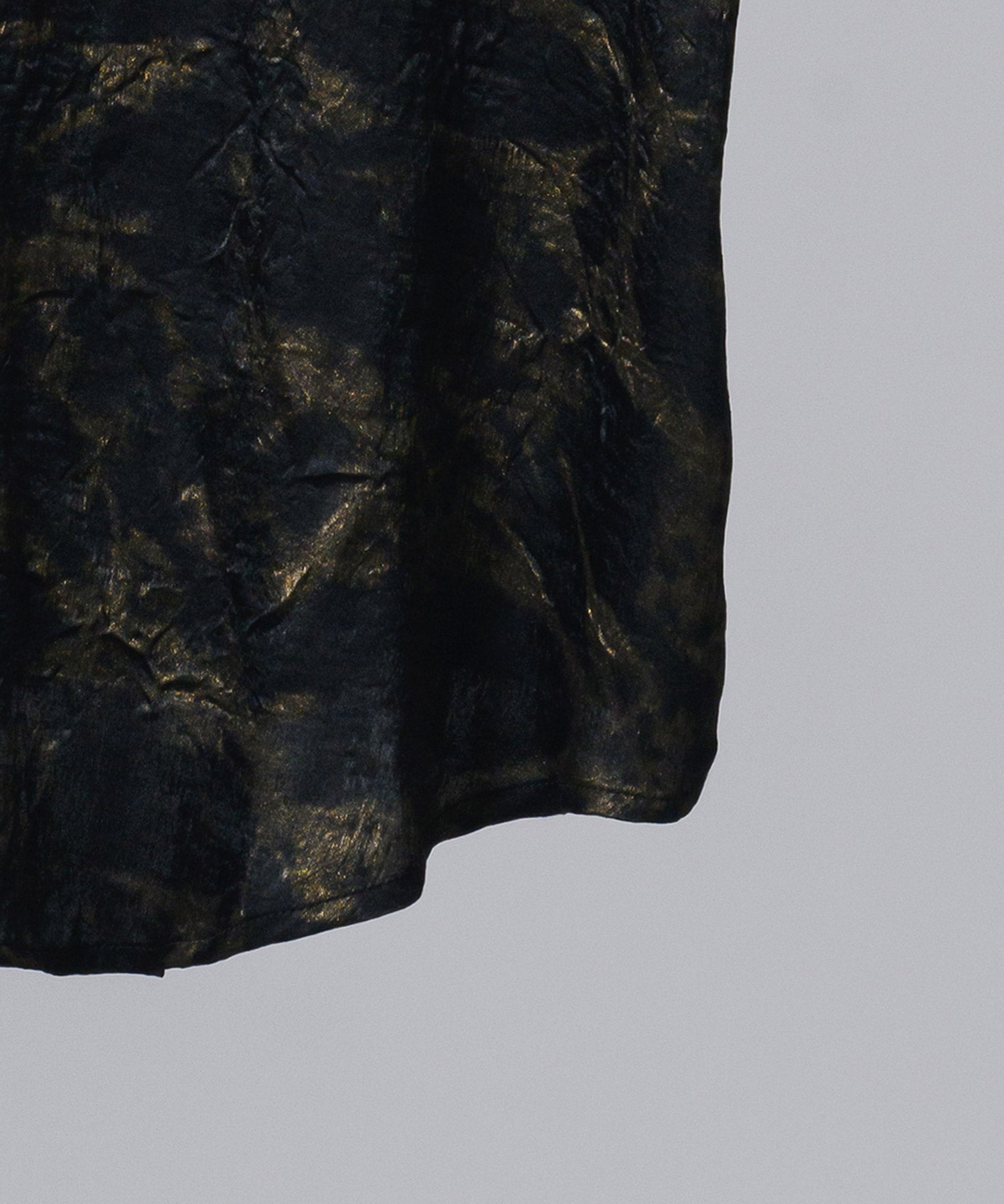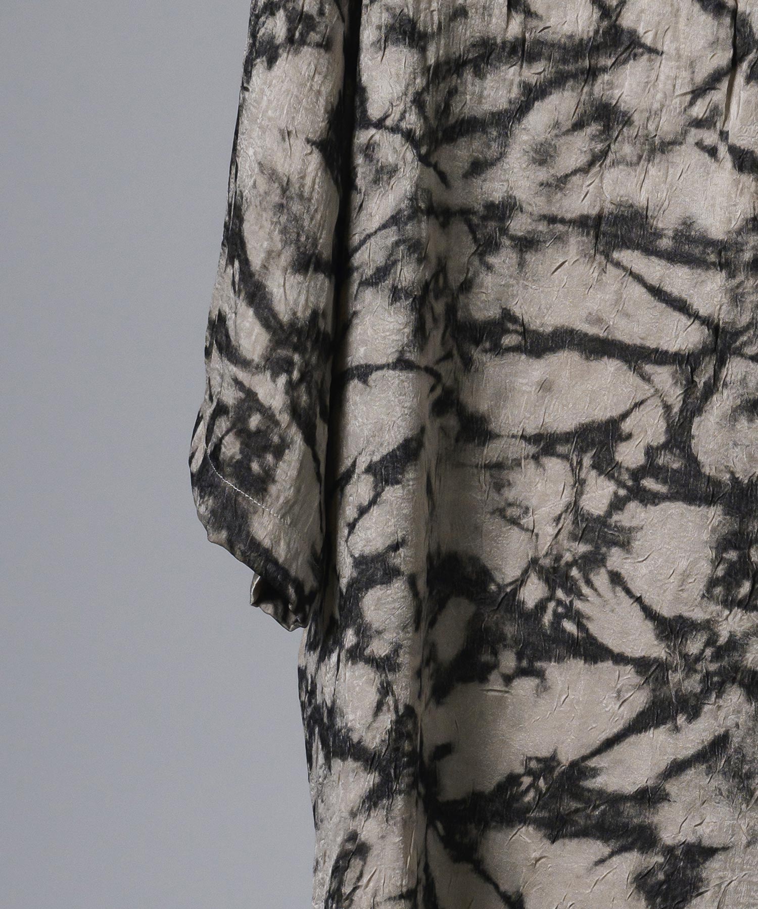 非常に軽くてサテン状の素材が程よい艶を放ち、予め加工されたシワ感がカジュアルな印象とサラッとした肌触りを実現しています。