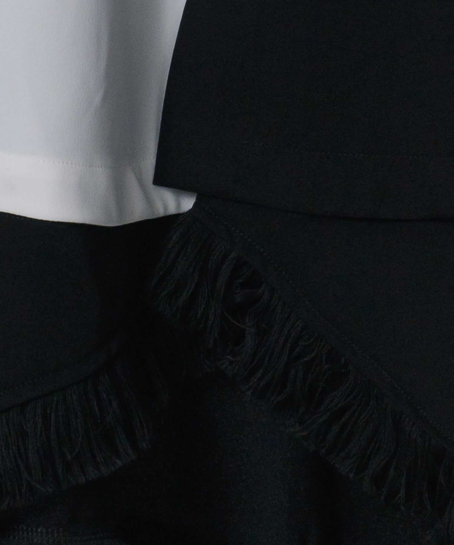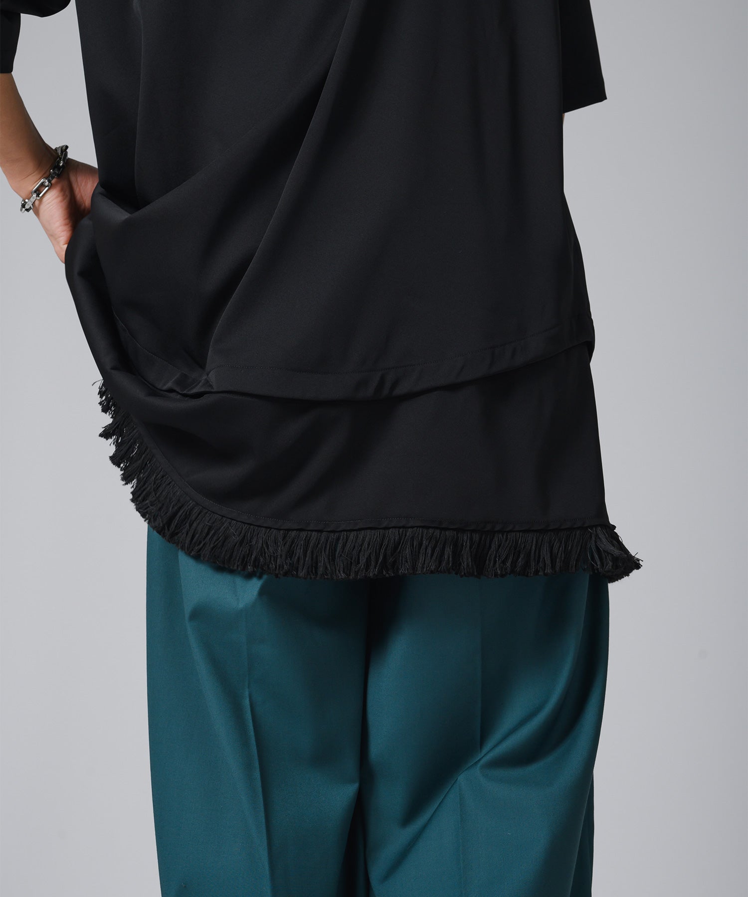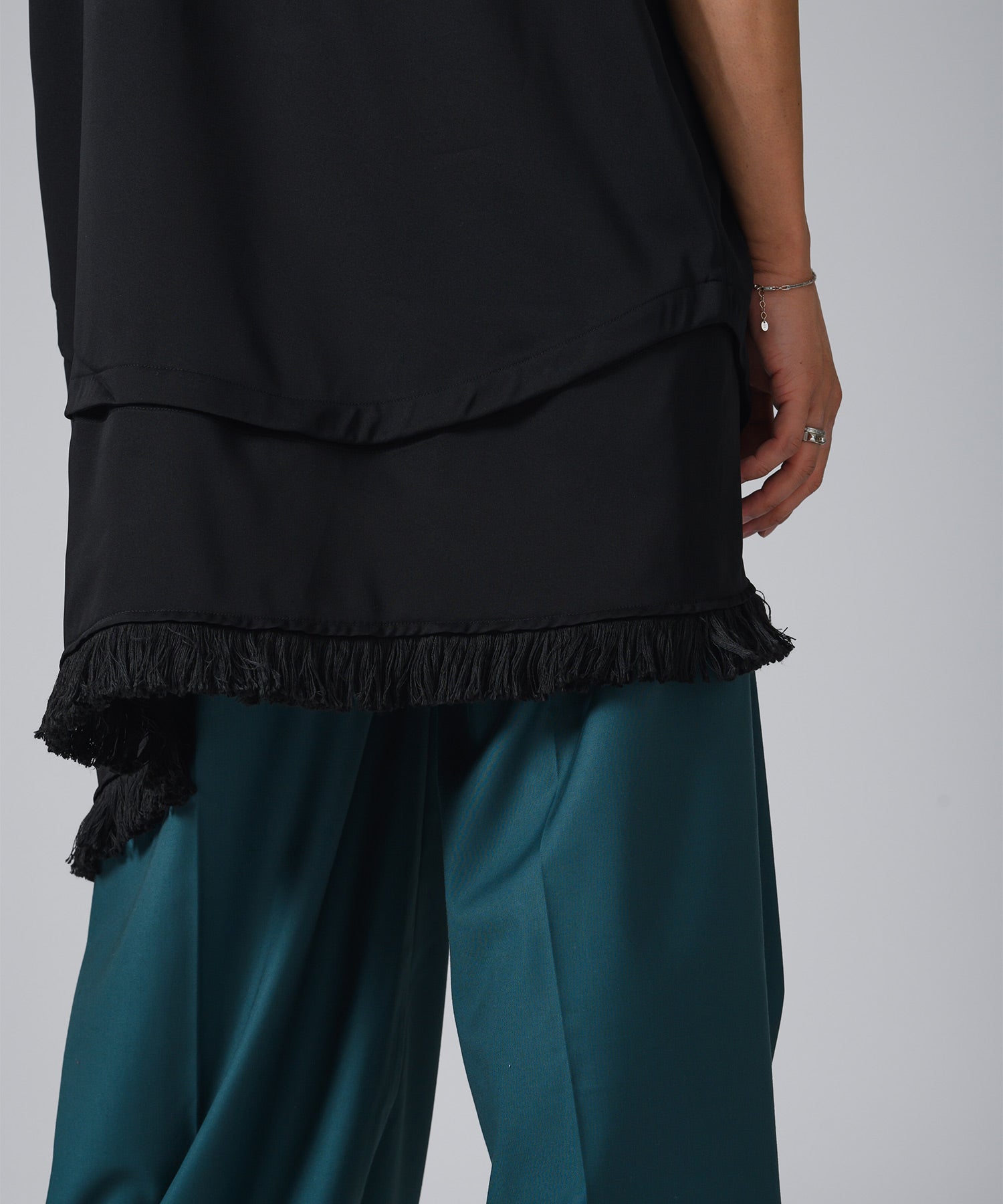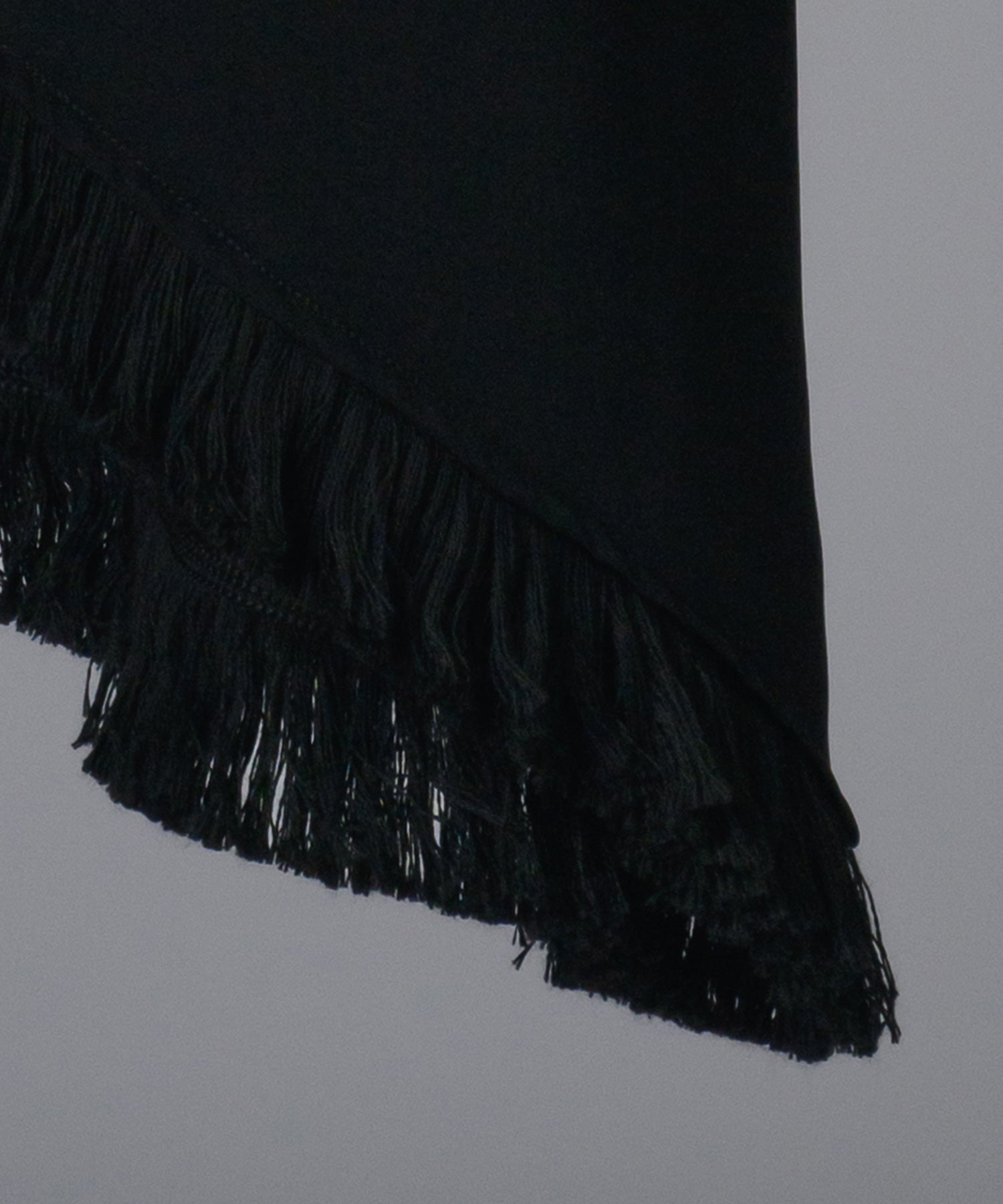 ロング丈の裾は左右の長さが違うアシンメトリーなデザインで、今人気のフリンジ状の仕上げなのでT.P.O.に合わせた着回しや楽しめます。