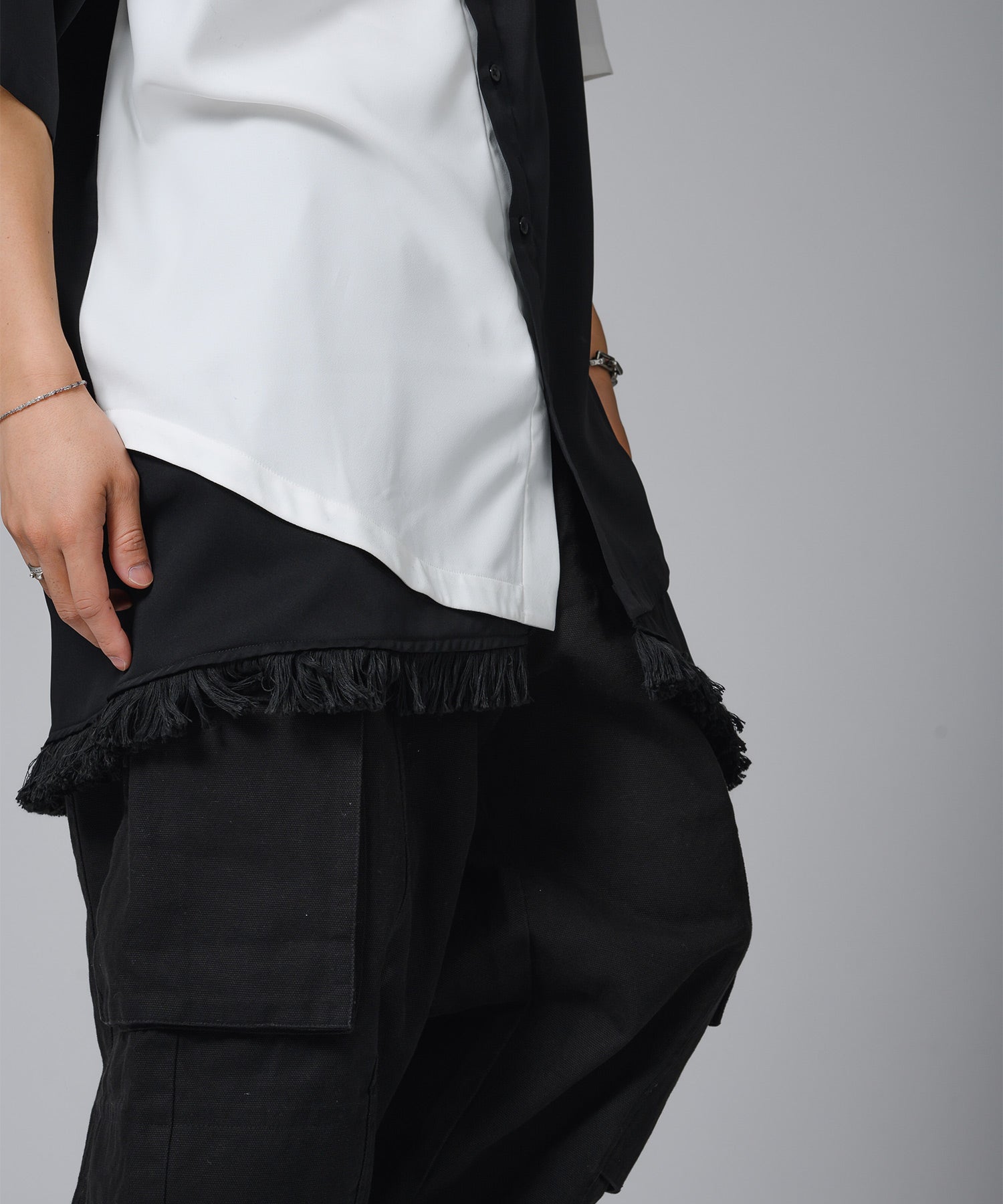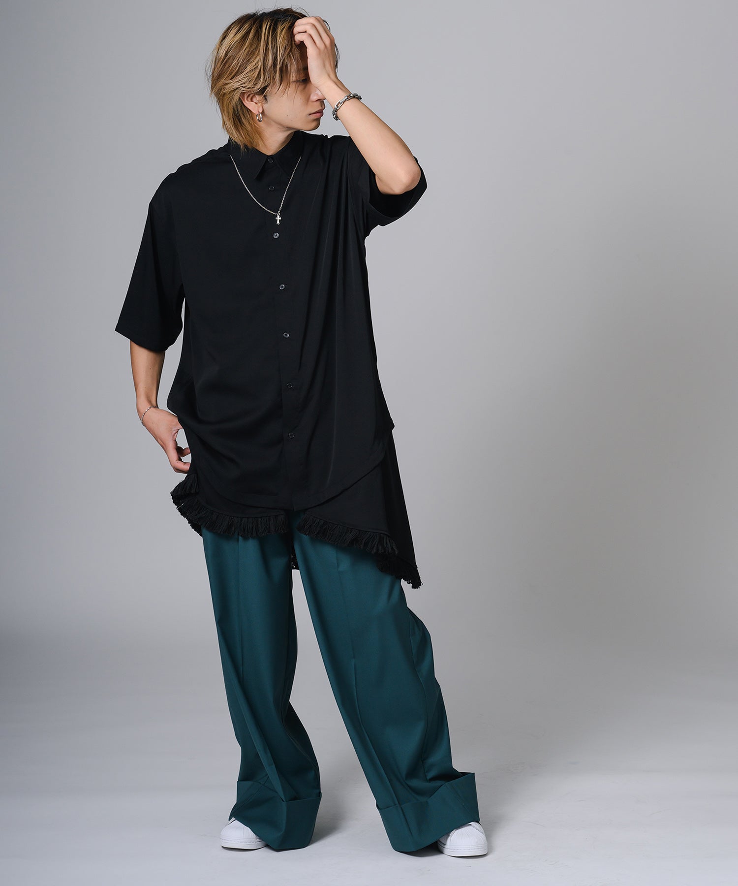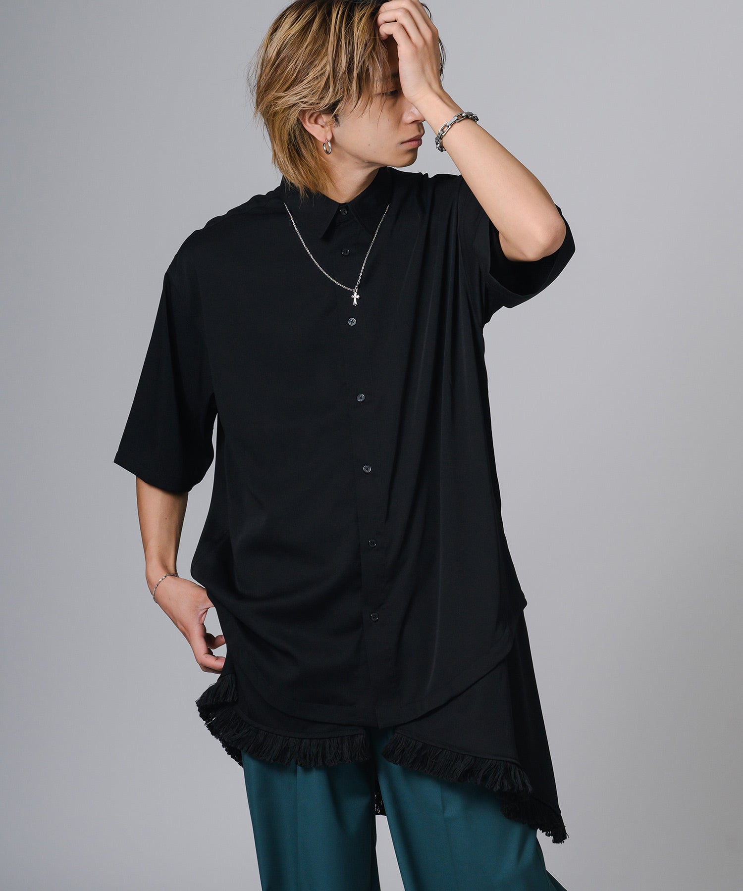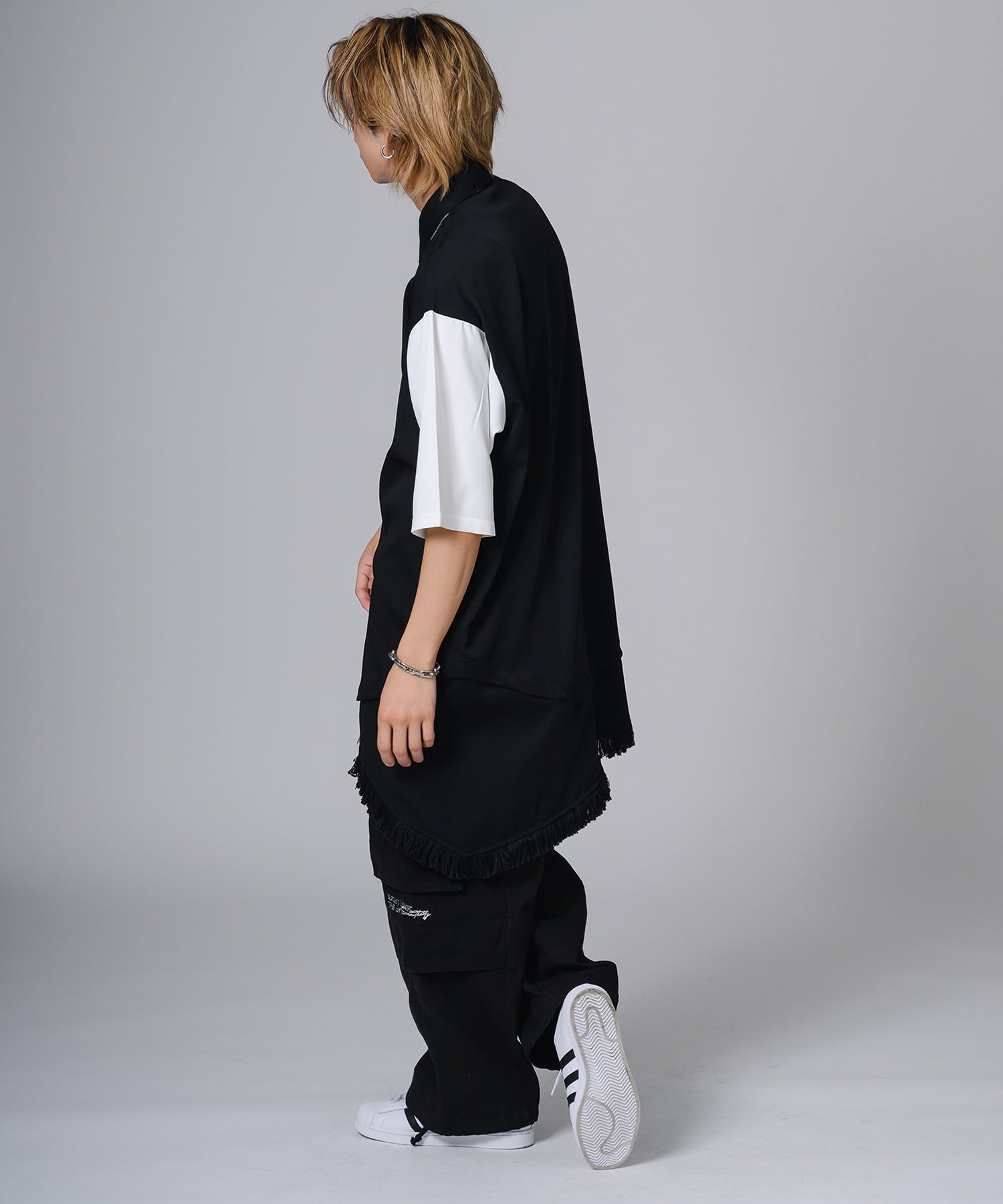 ロング丈の裾は左右の長さが違うアシンメトリーなデザインで、今人気のフリンジ状の仕上げなのでT.P.O.に合わせた着回しや楽しめます。