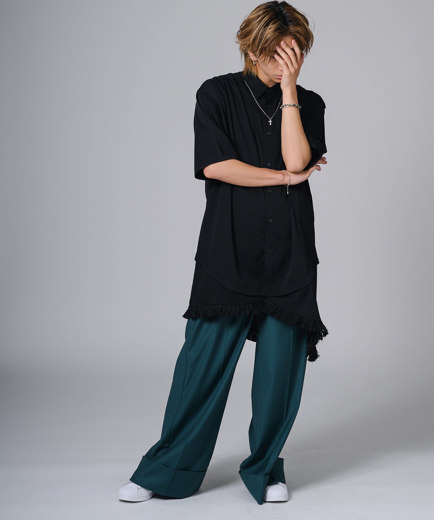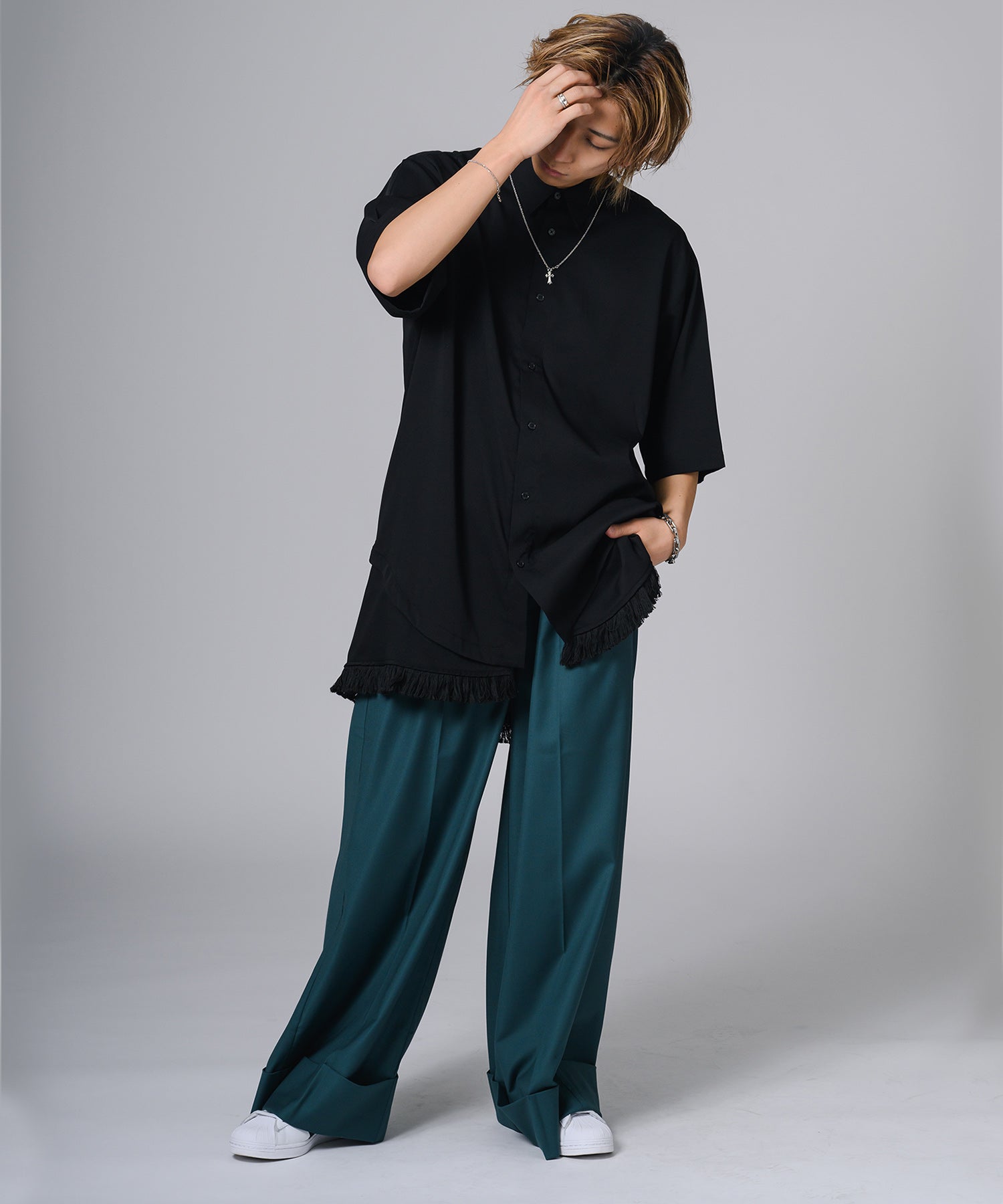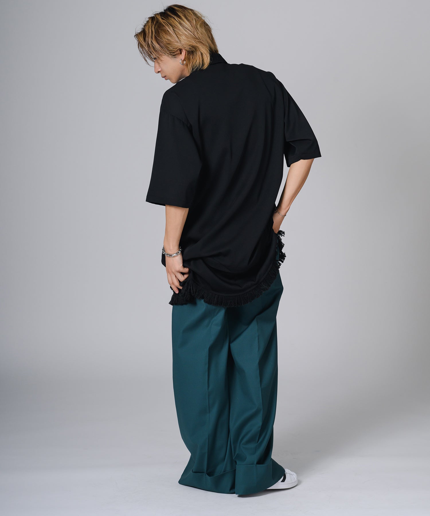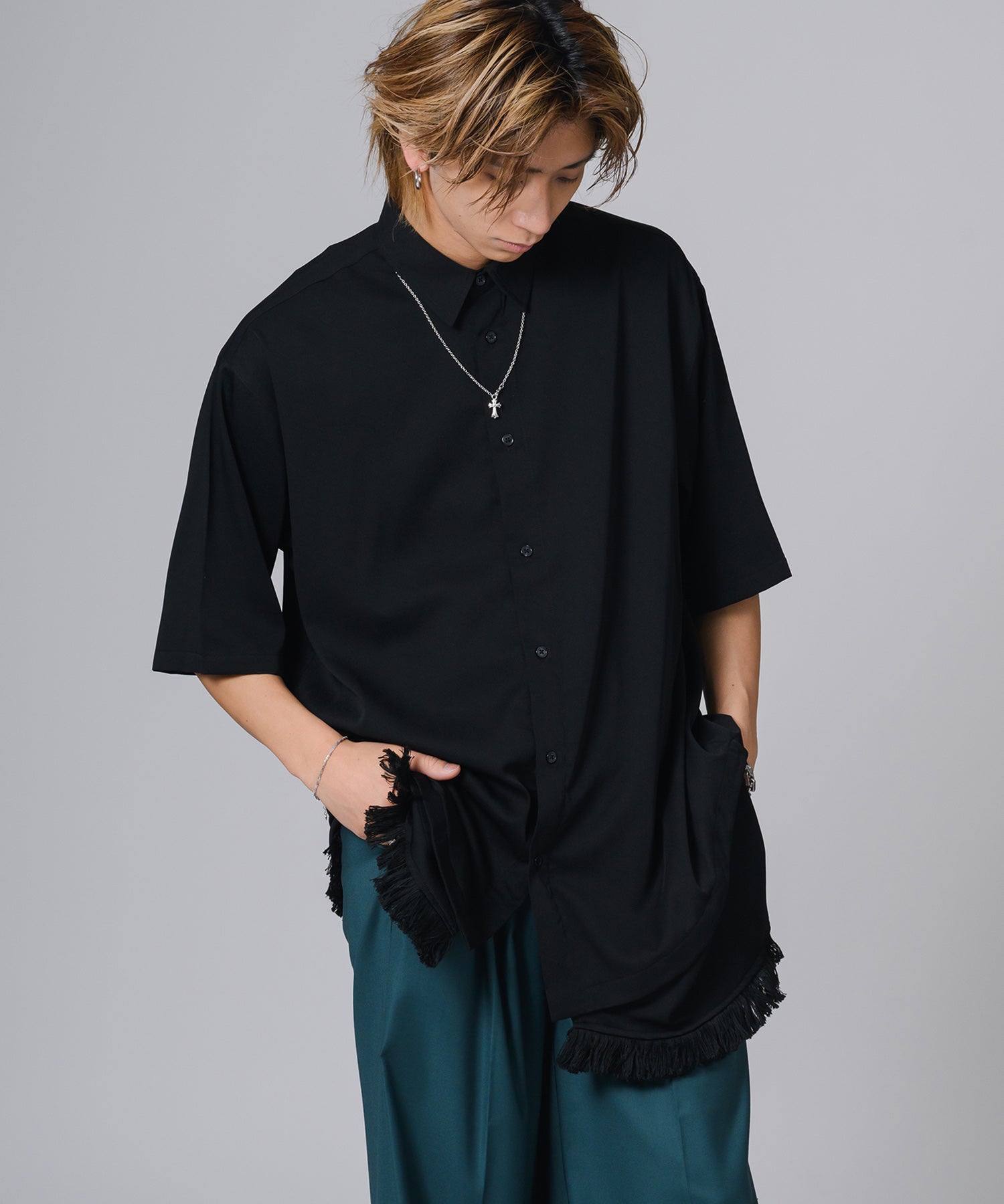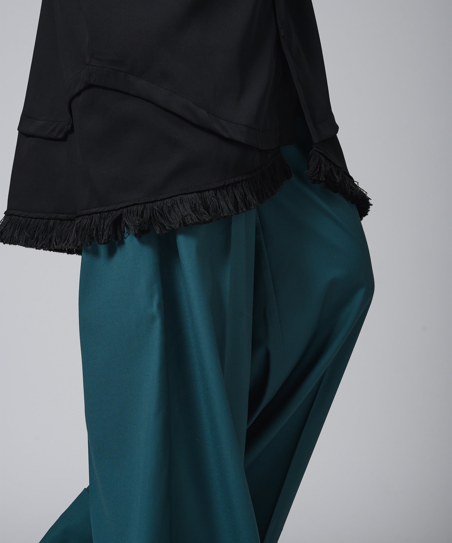 ロング丈の裾は左右の長さが違うアシンメトリーなデザインで、今人気のフリンジ状の仕上げなのでT.P.O.に合わせた着回しや楽しめます。