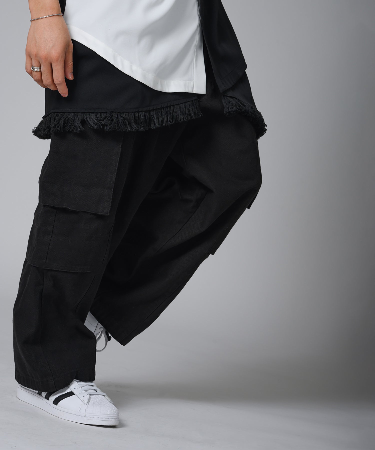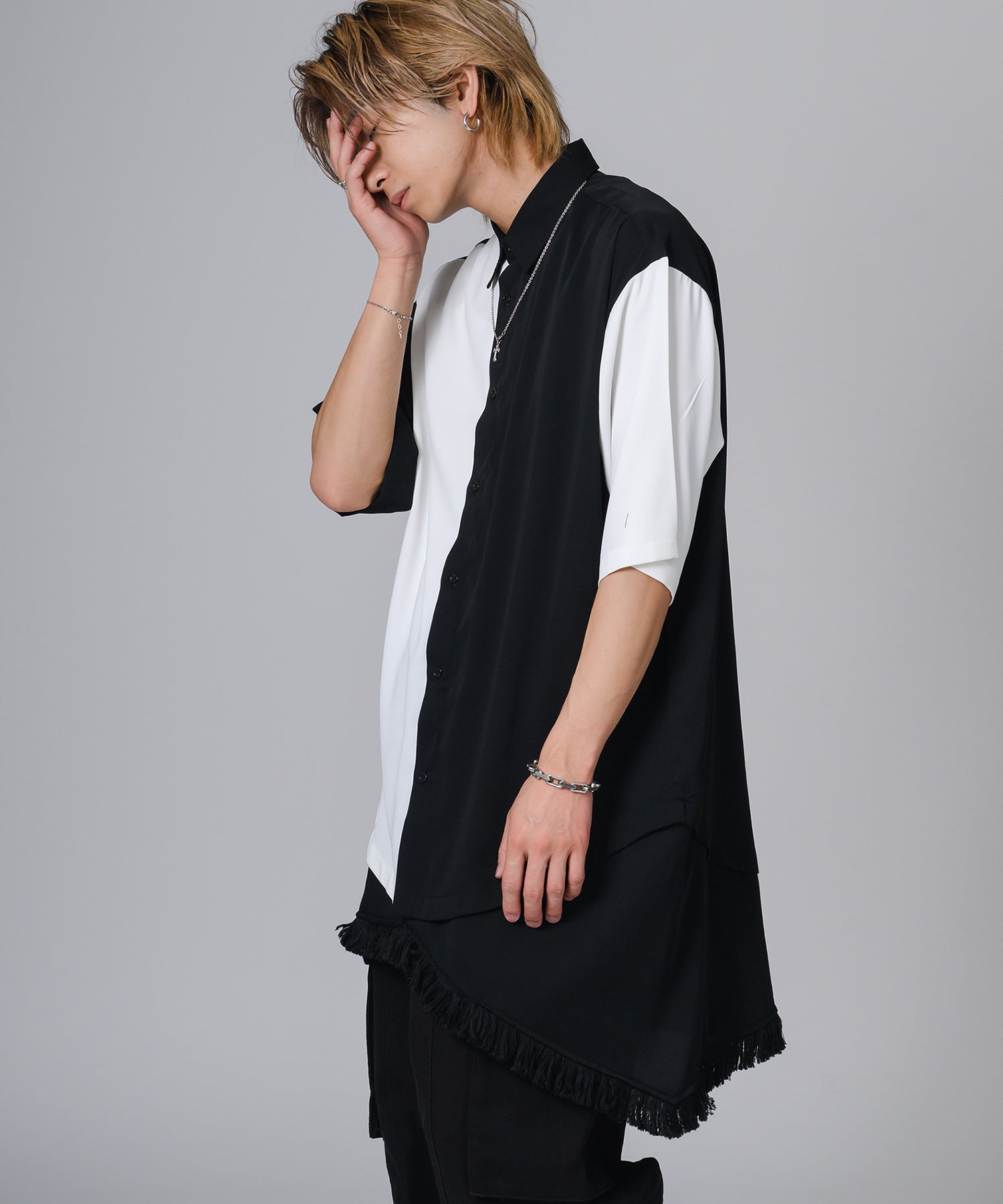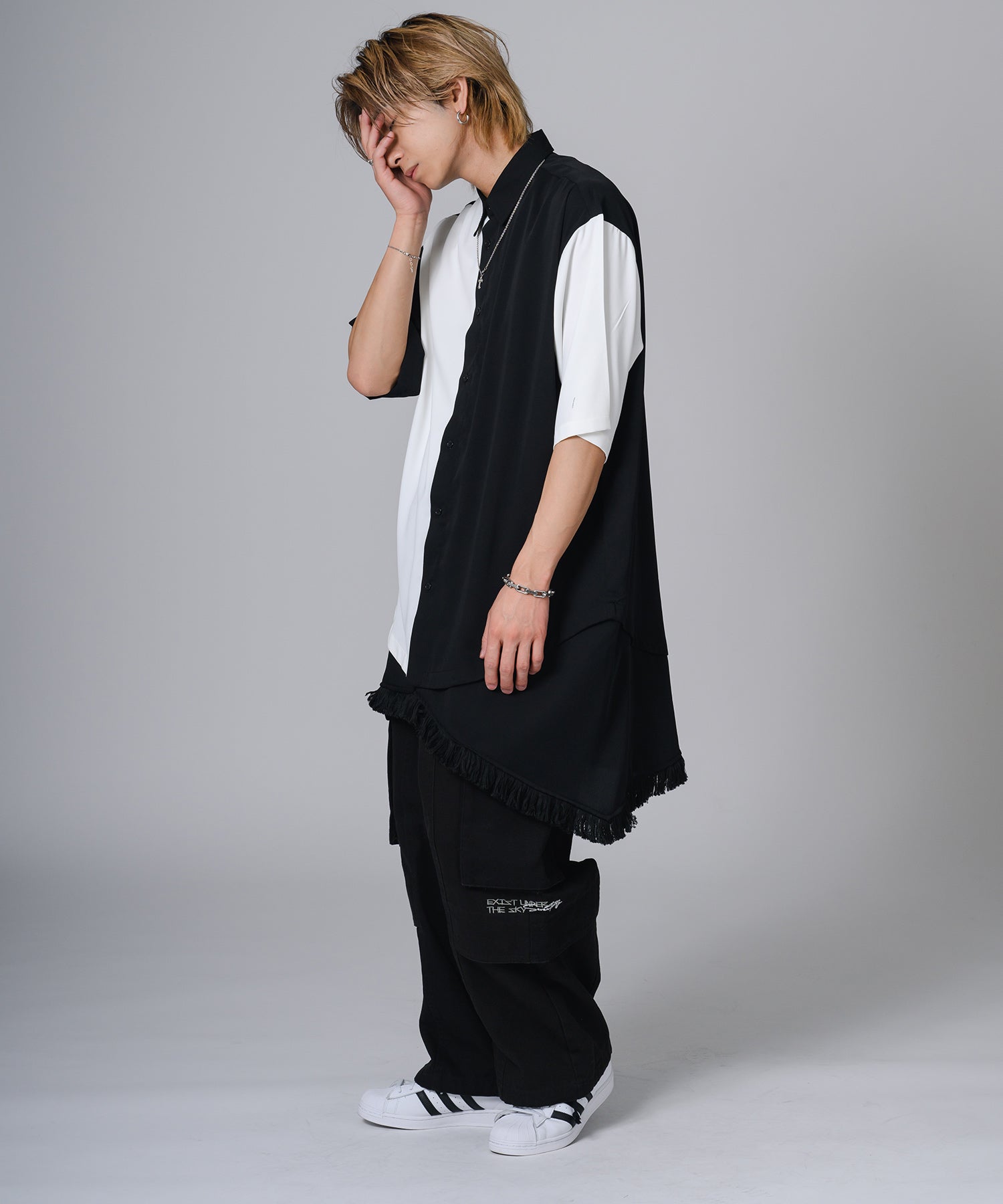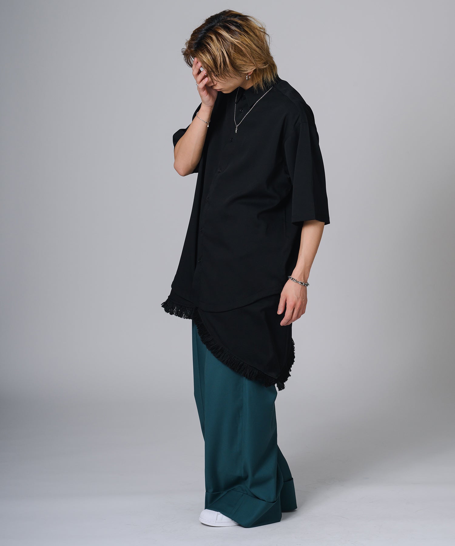 ロング丈の裾は左右の長さが違うアシンメトリーなデザインで、今人気のフリンジ状の仕上げなのでT.P.O.に合わせた着回しや楽しめます。