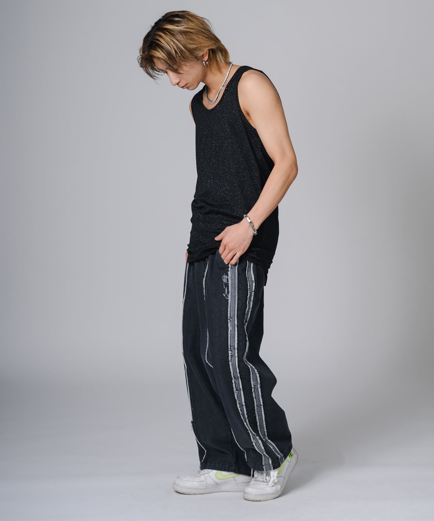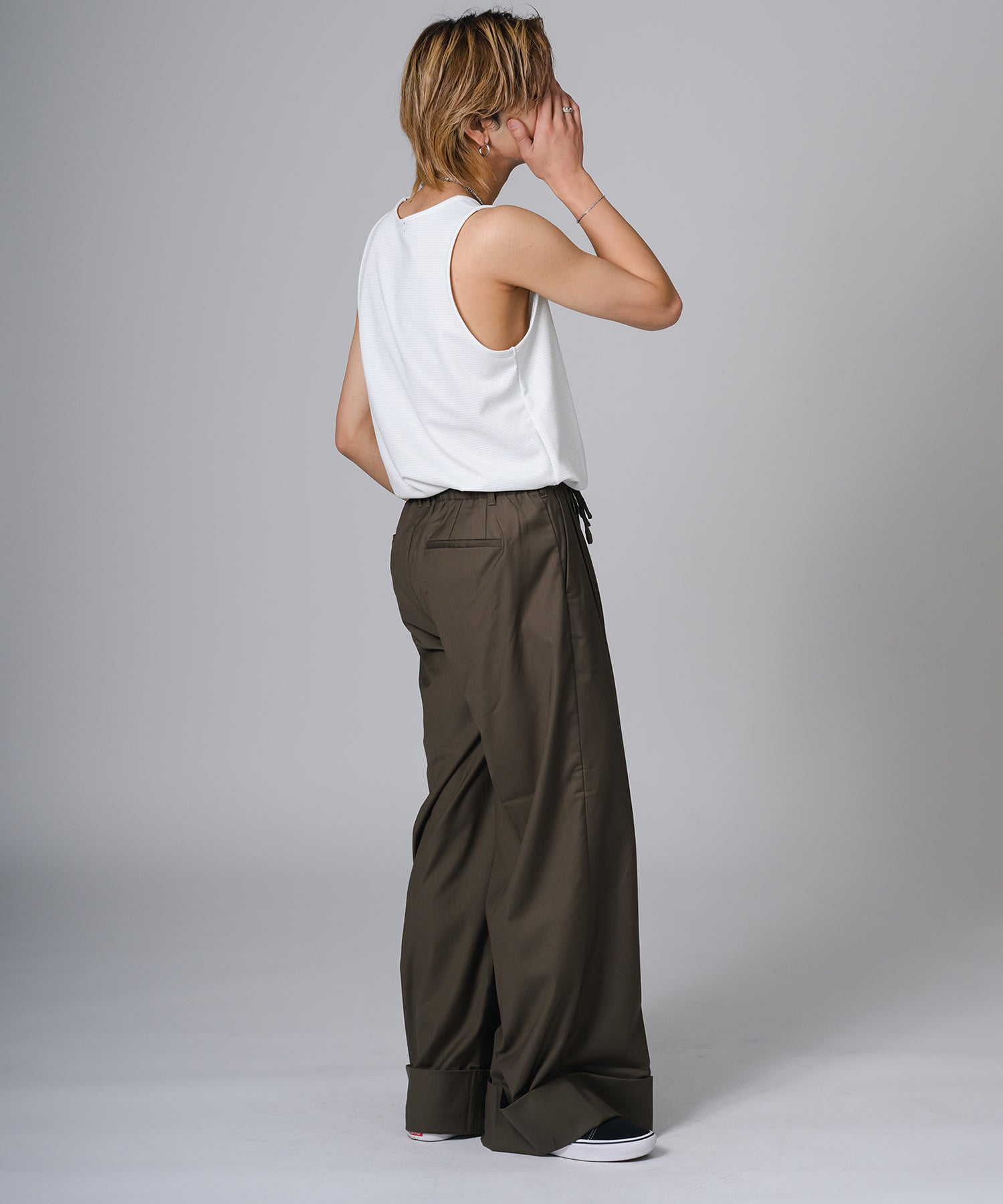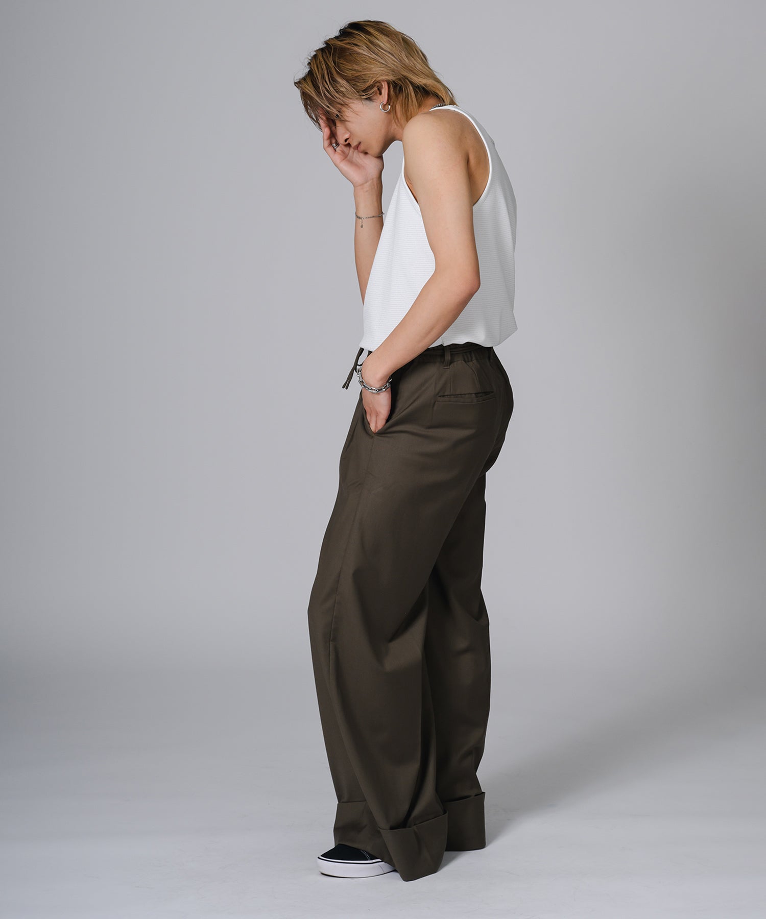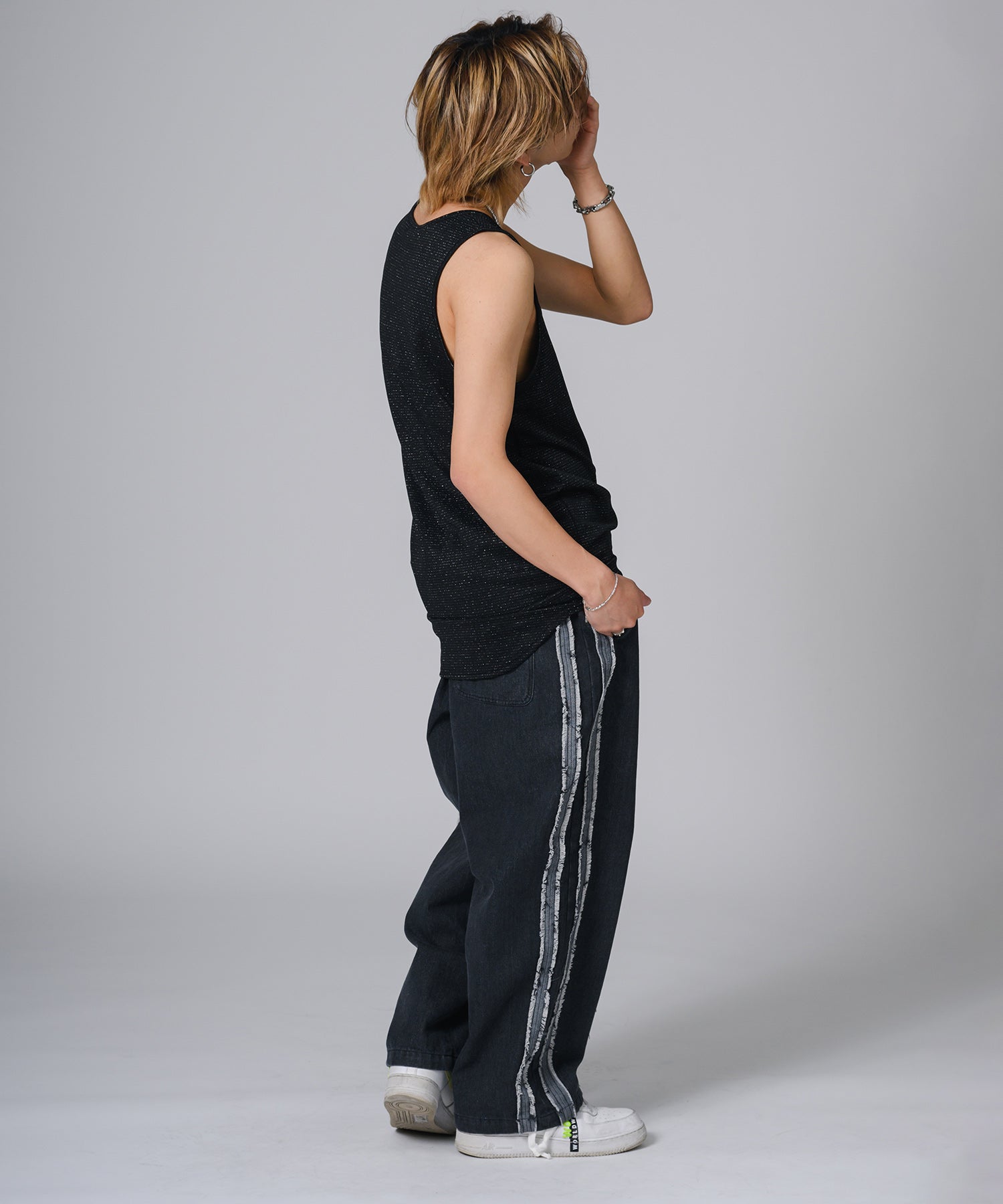 ロング丈のタンクトップは、オーバーサイズのTシャツのインナーとして合わせると裾がはみ出て丁度いいレイヤードができます。