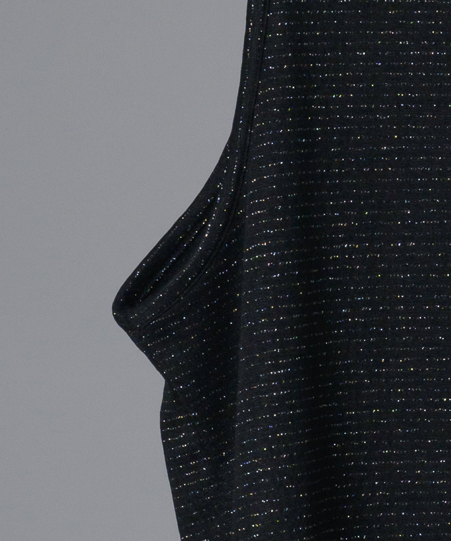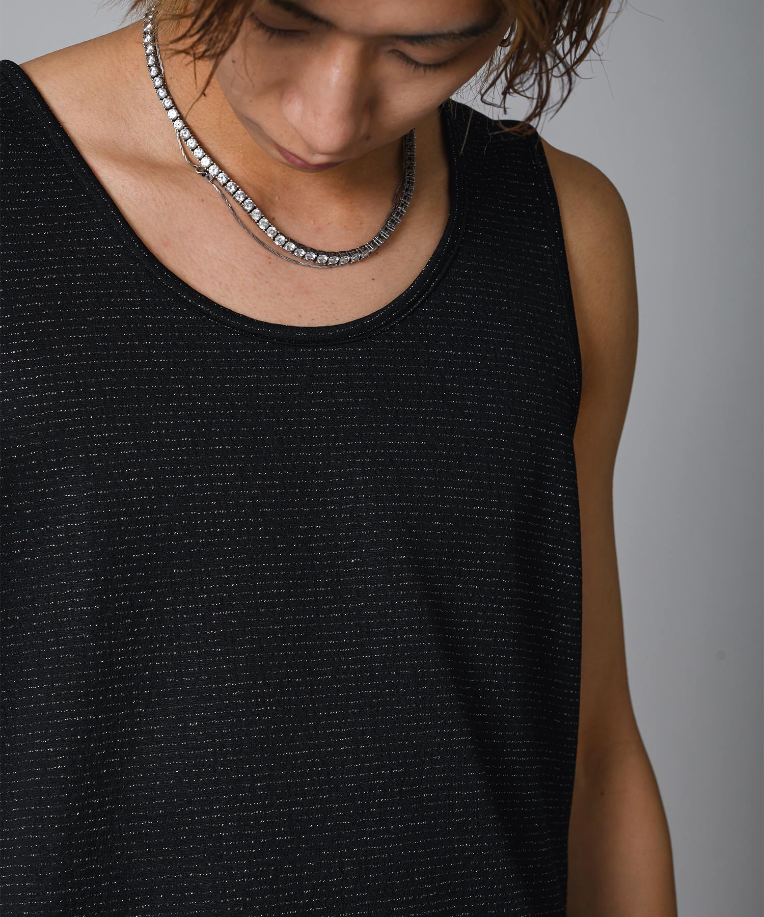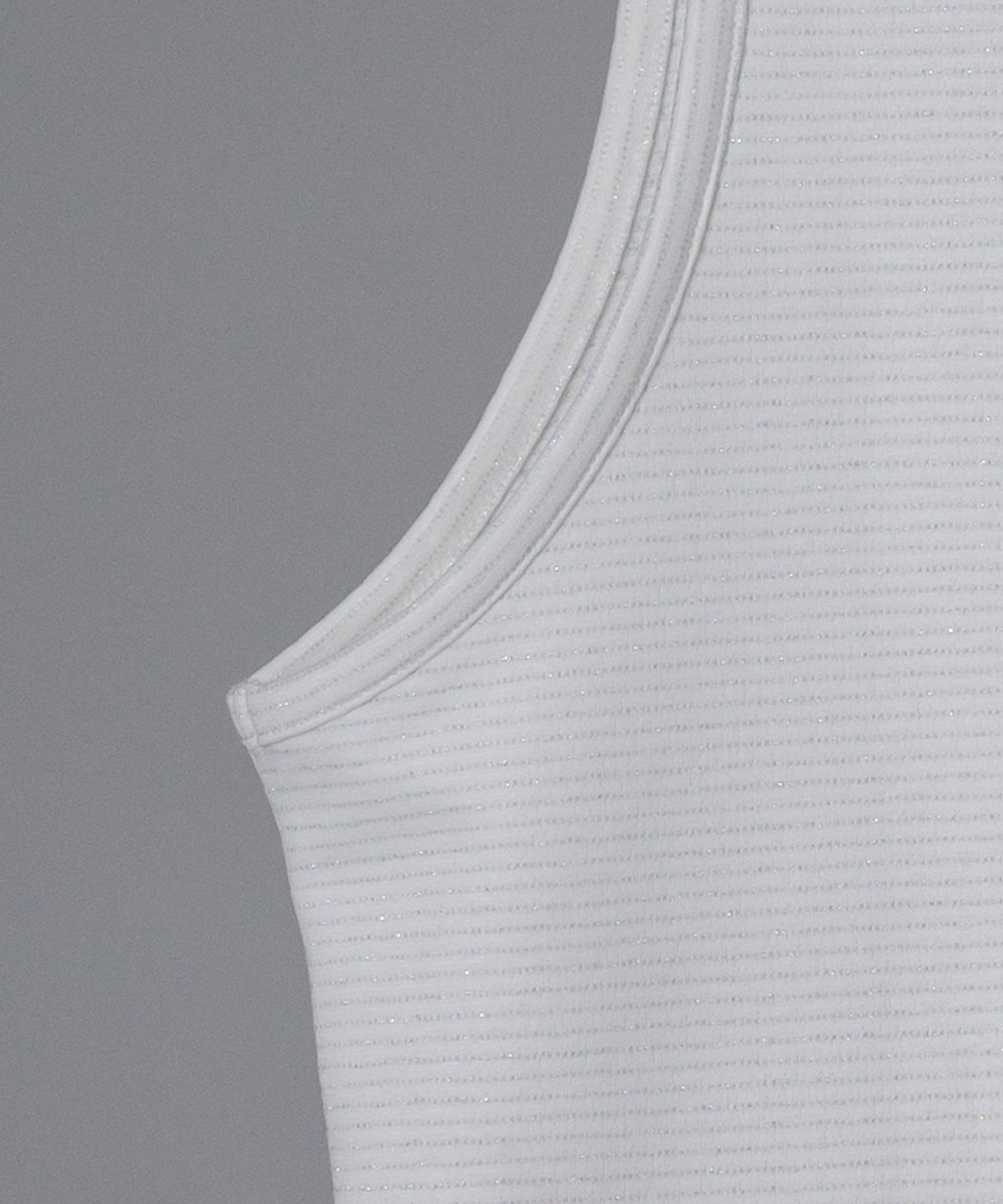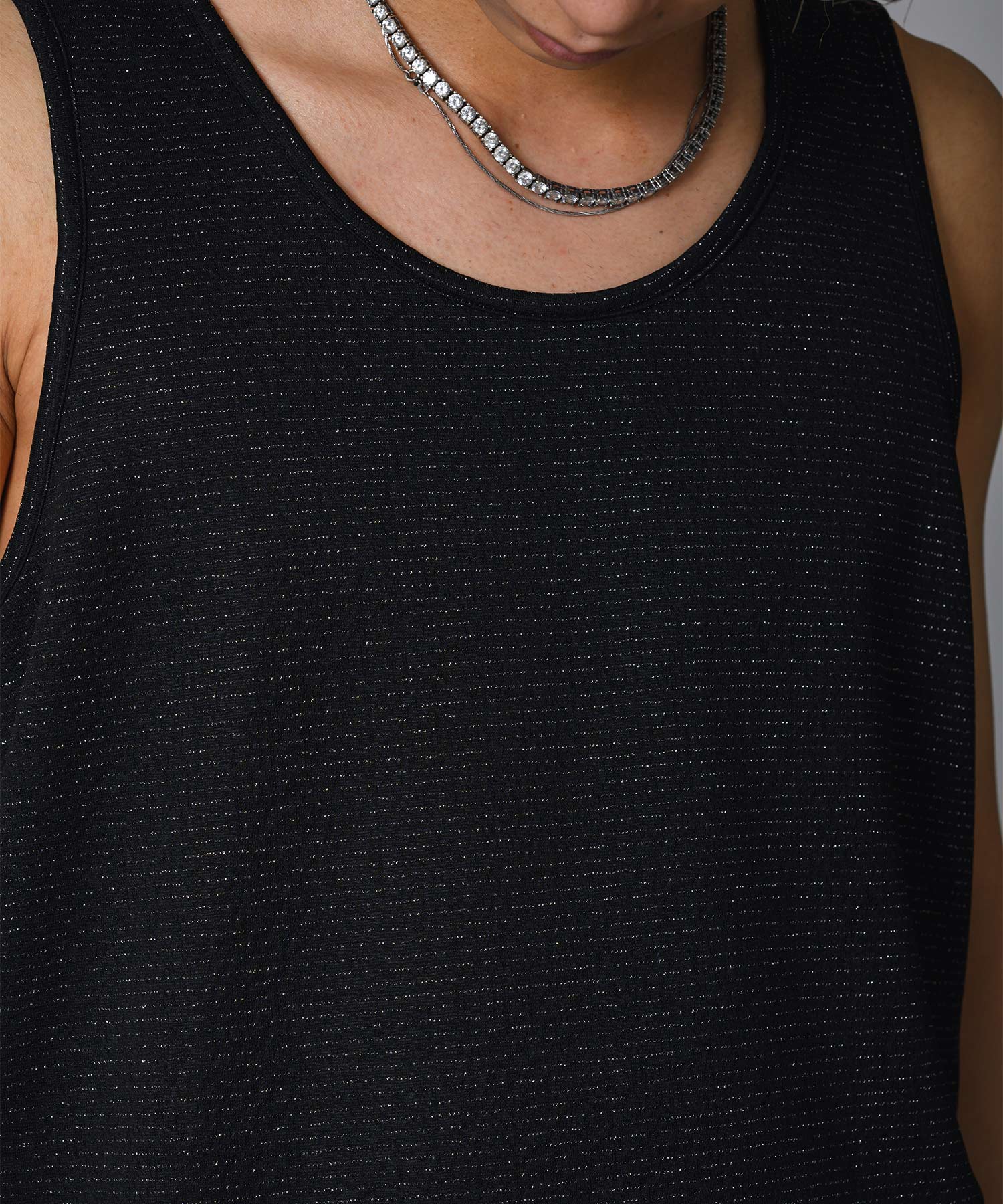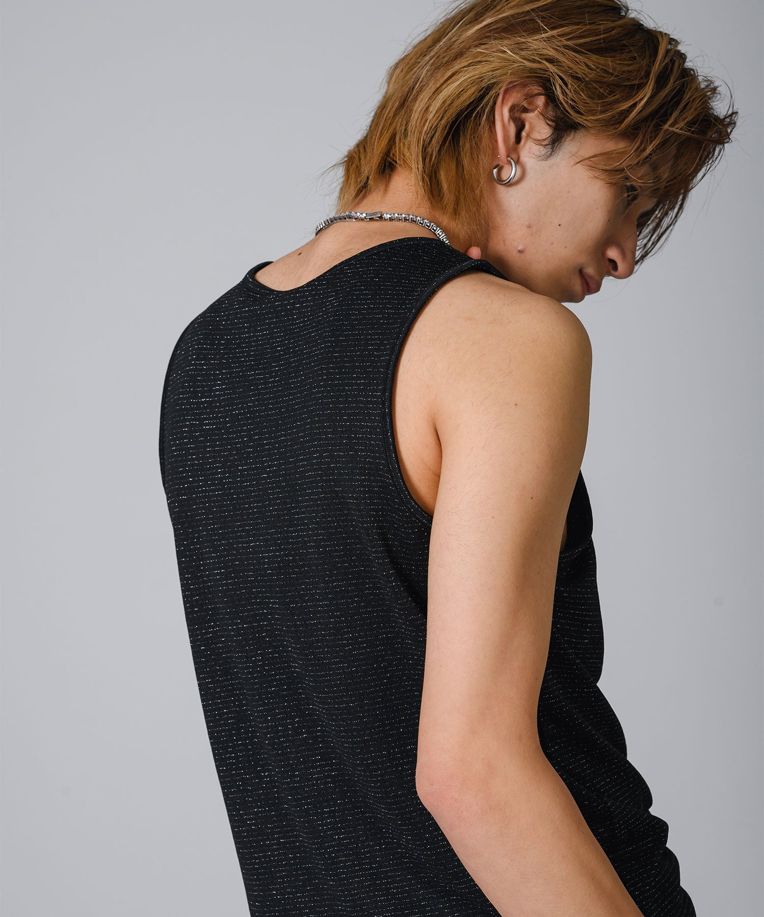 細いラメの糸をボーダー状に編み込んだタンクトップです。
