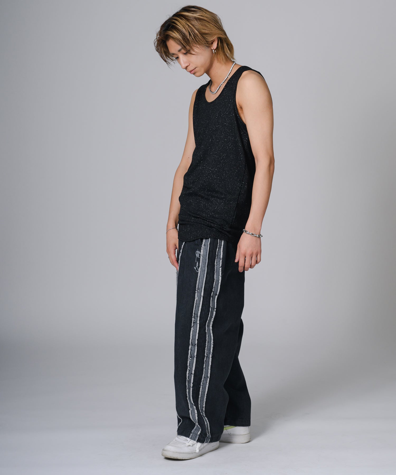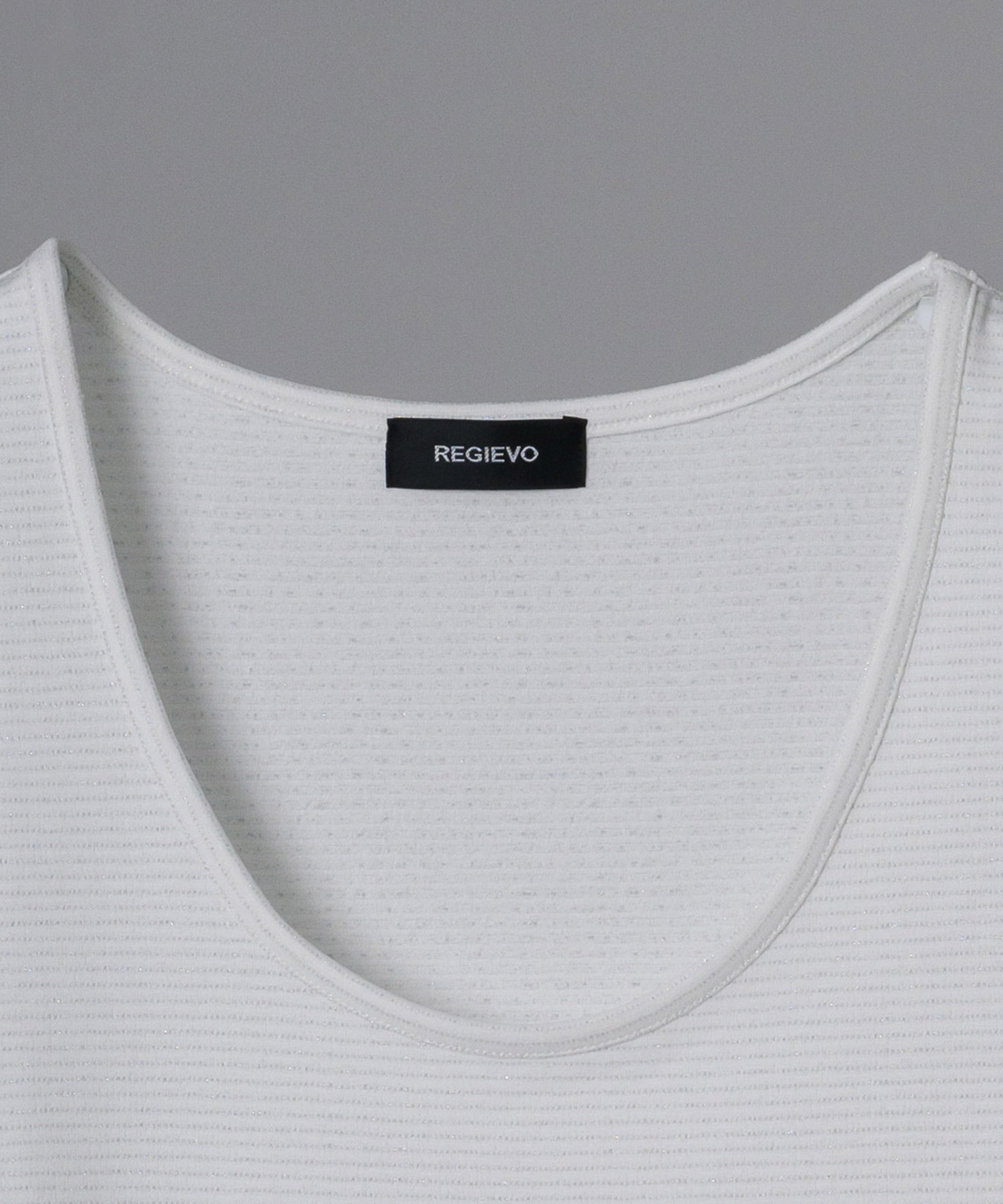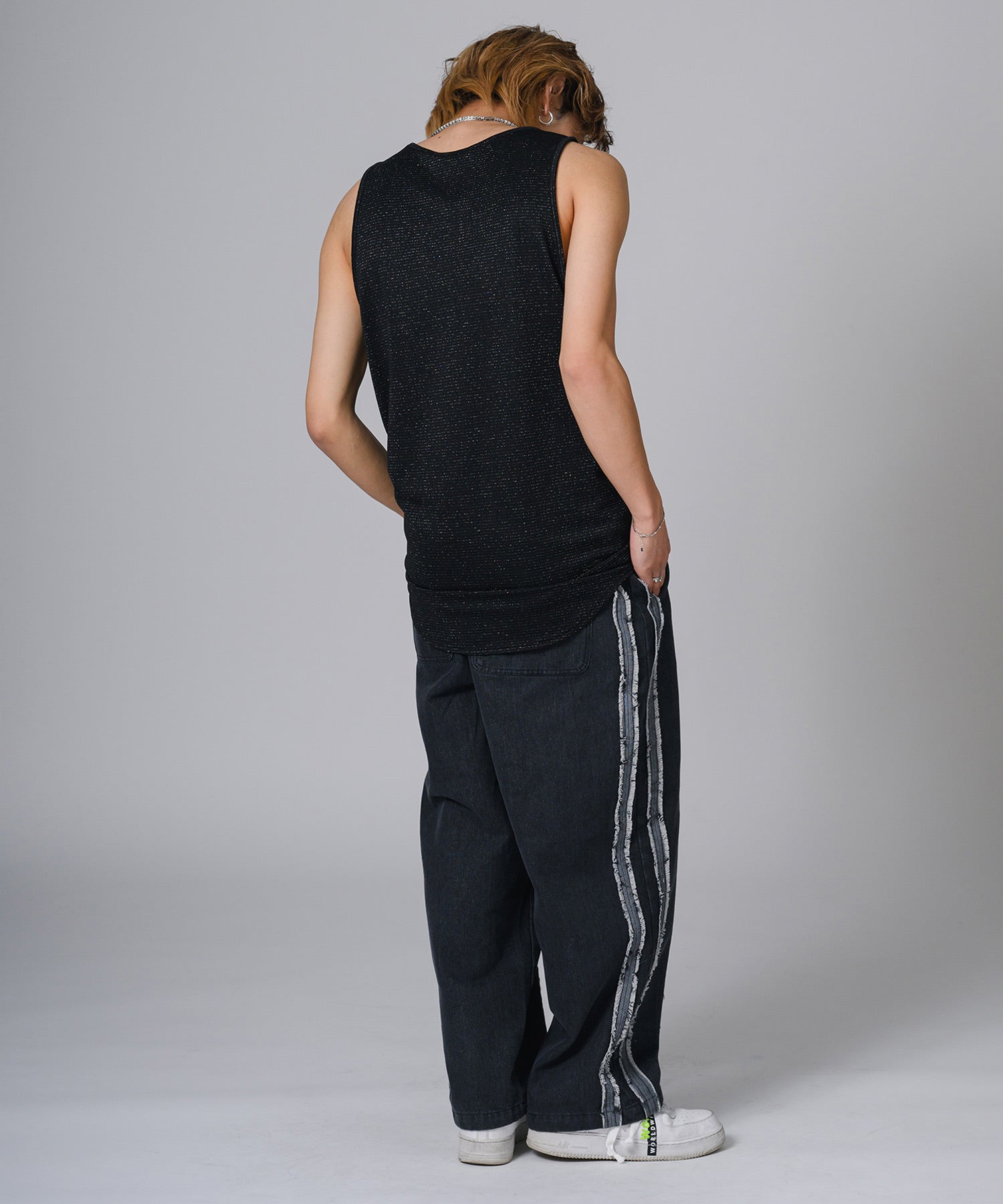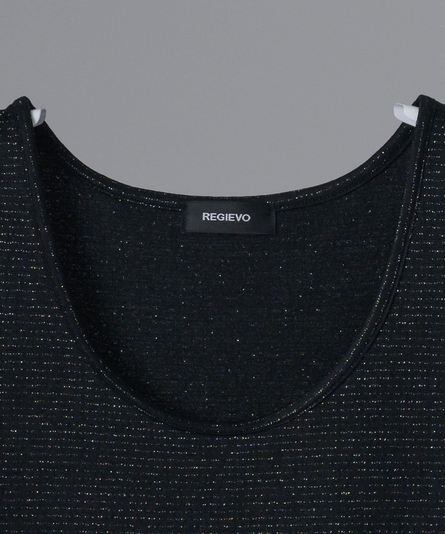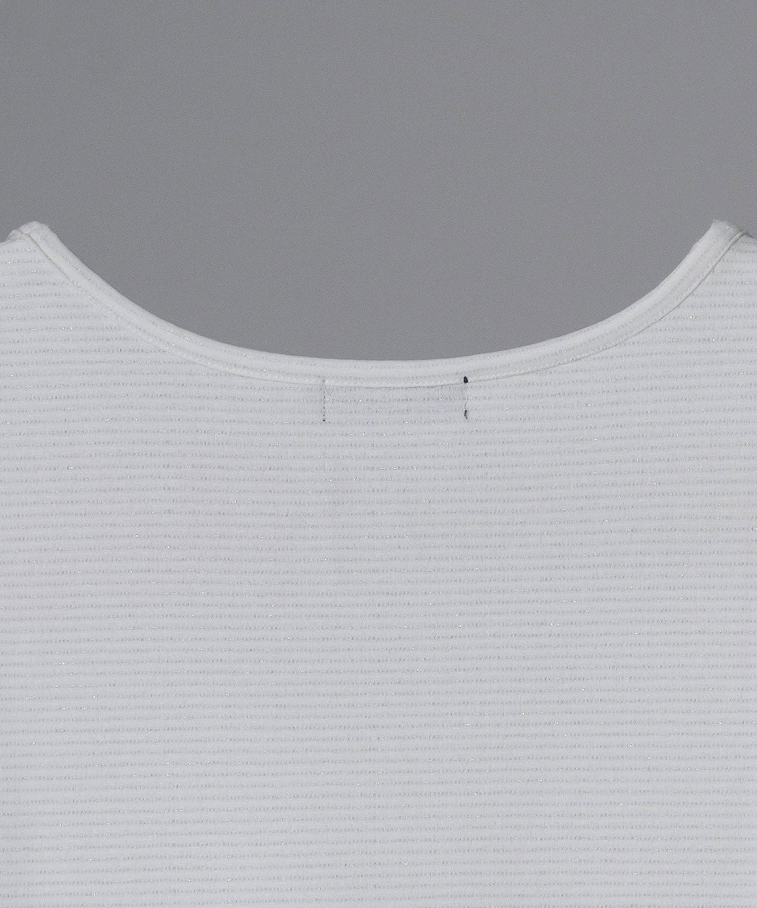 細いラメの糸をボーダー状に編み込んだタンクトップです。