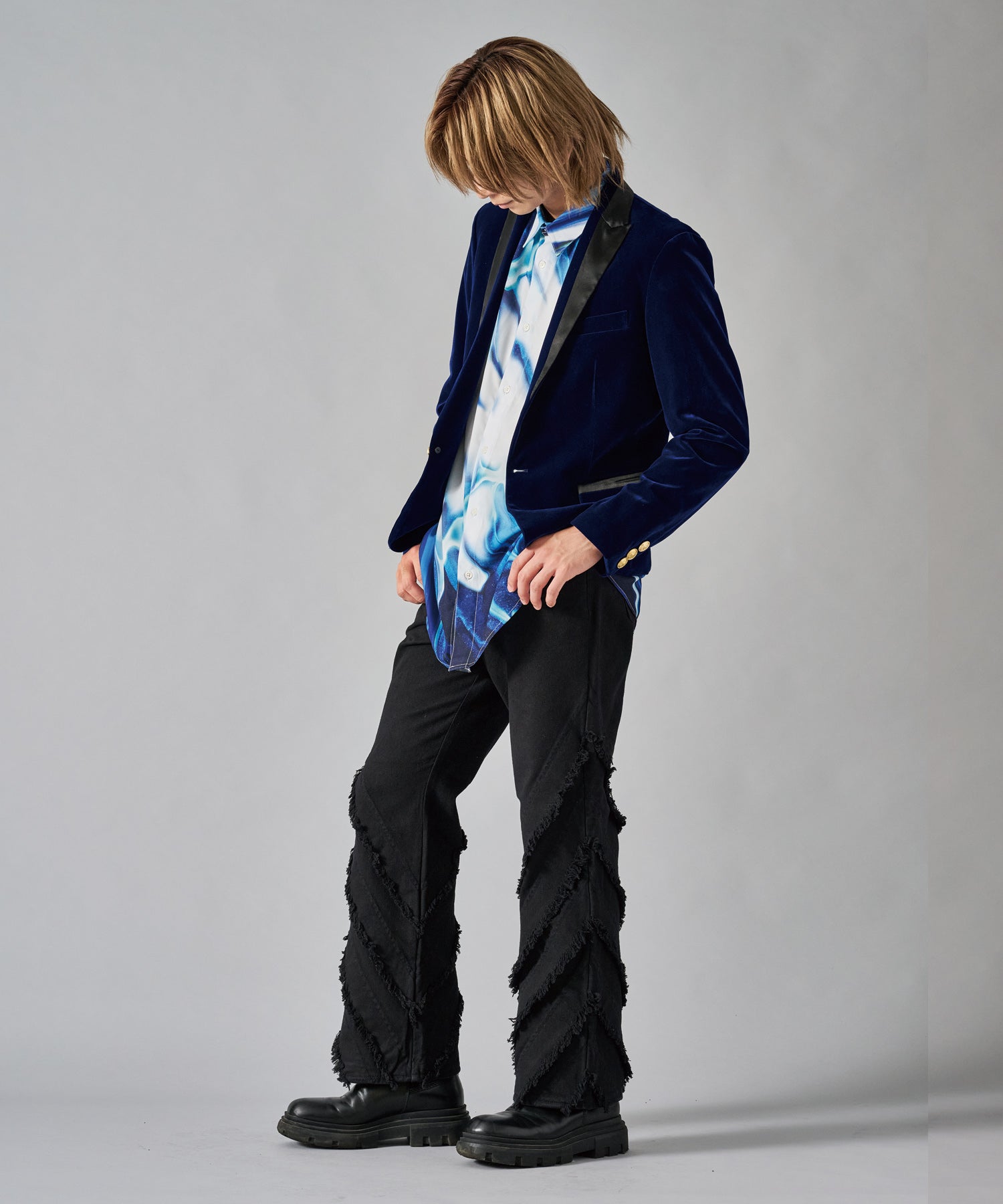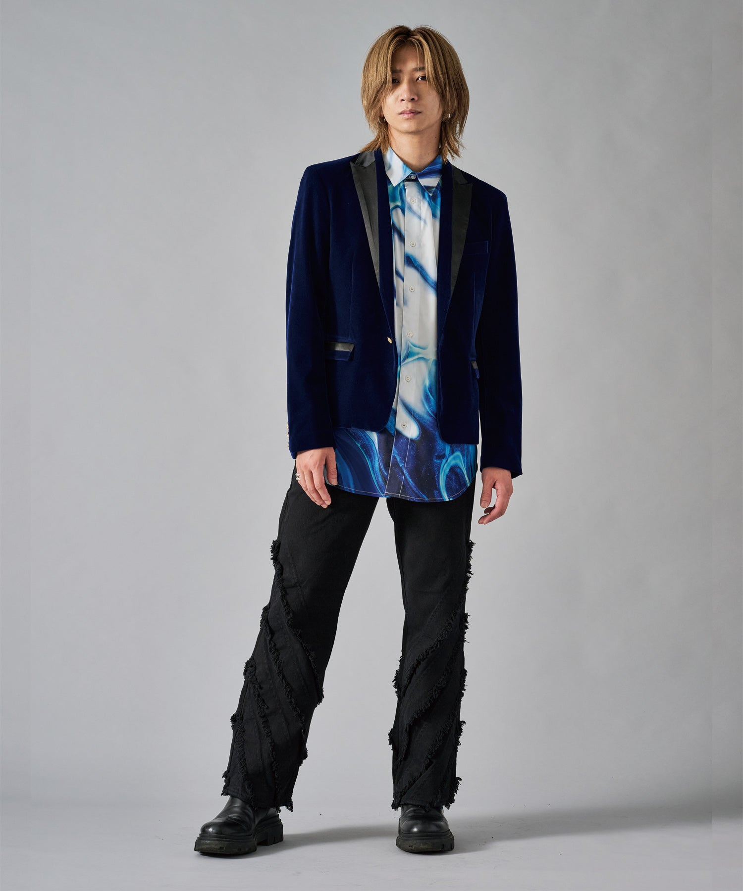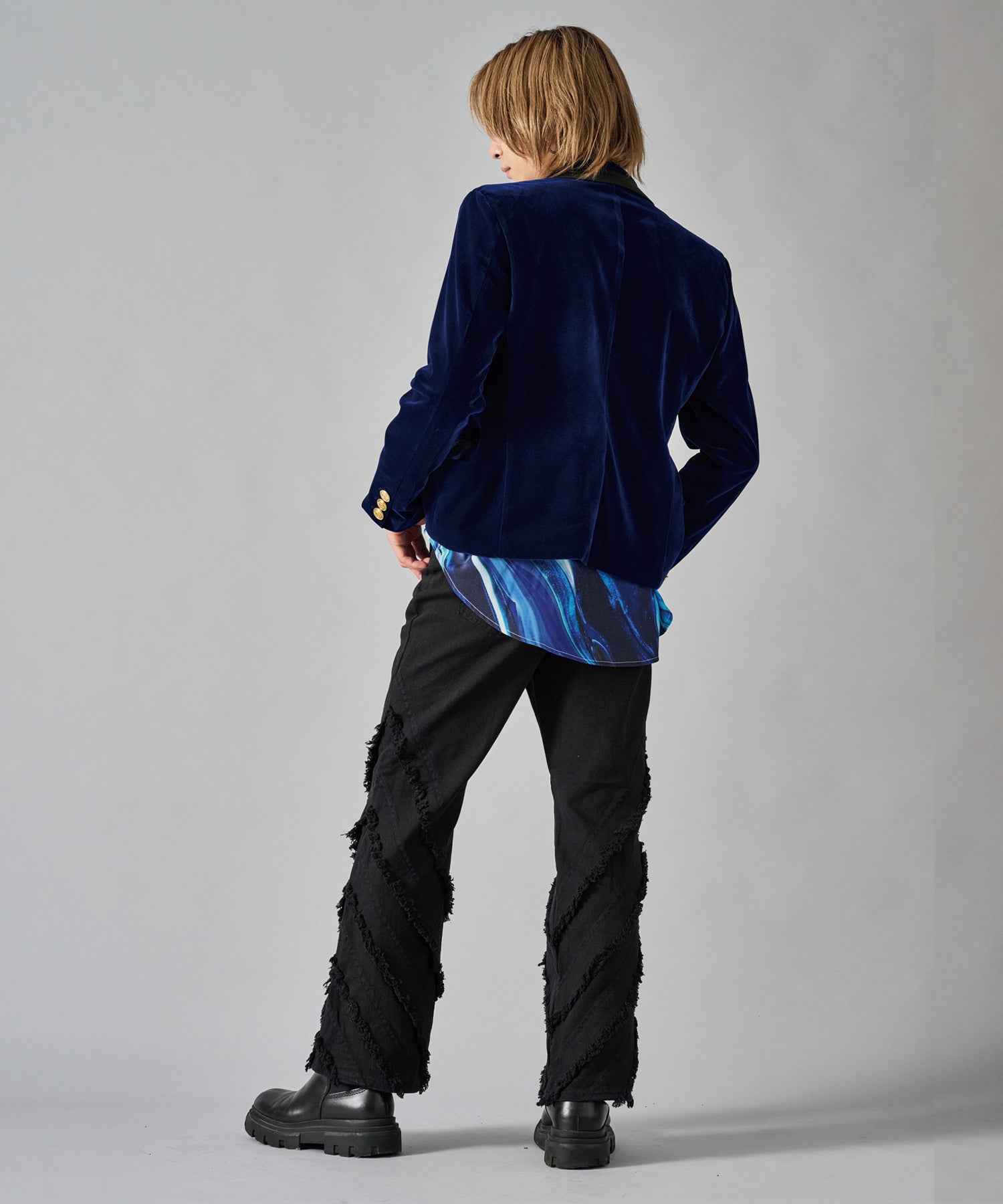 インナーの裾がはみ出るレイヤード感がクールな印象でもありつつ、一方でデニムなどと合わせて気軽に着崩すことができるテーラードジャケットです
