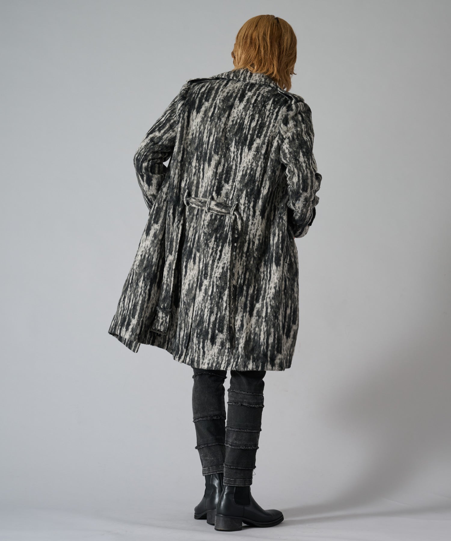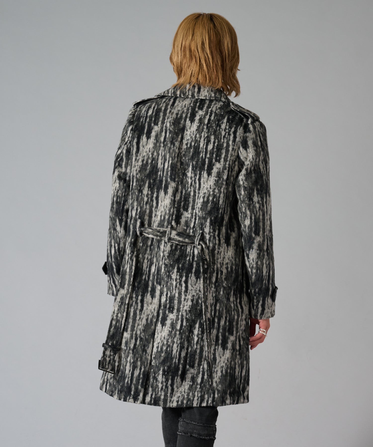 ダブルフロントで肩のエポーレット、ウエストのベルトを装備したオーセンティックなデザインです