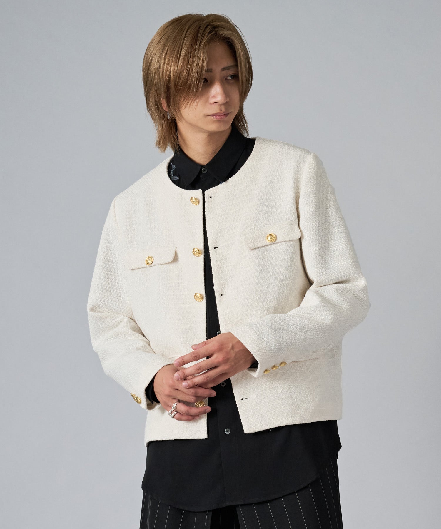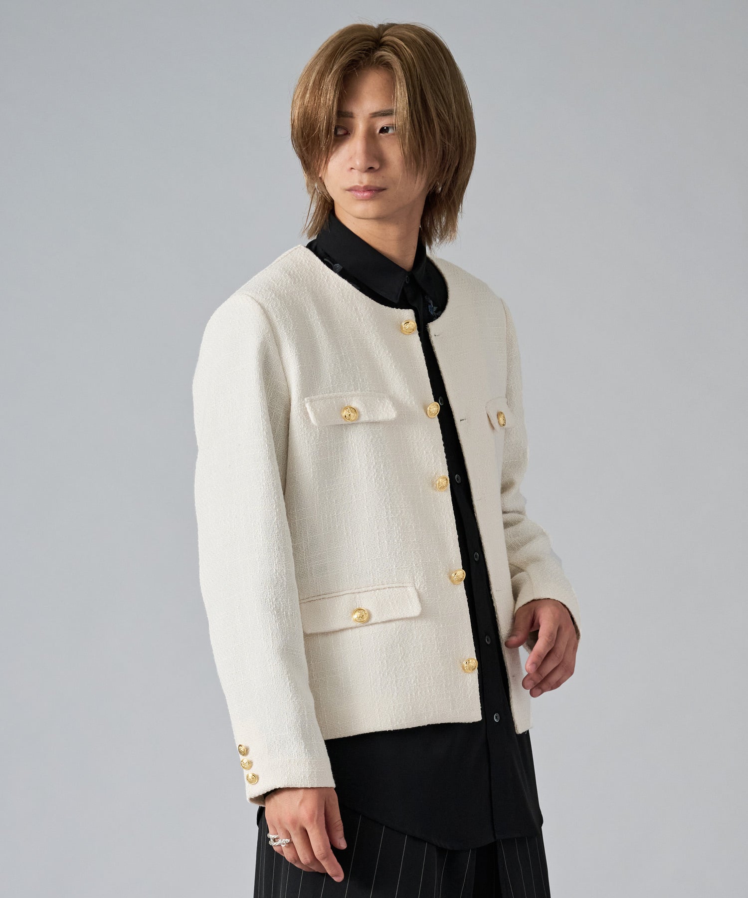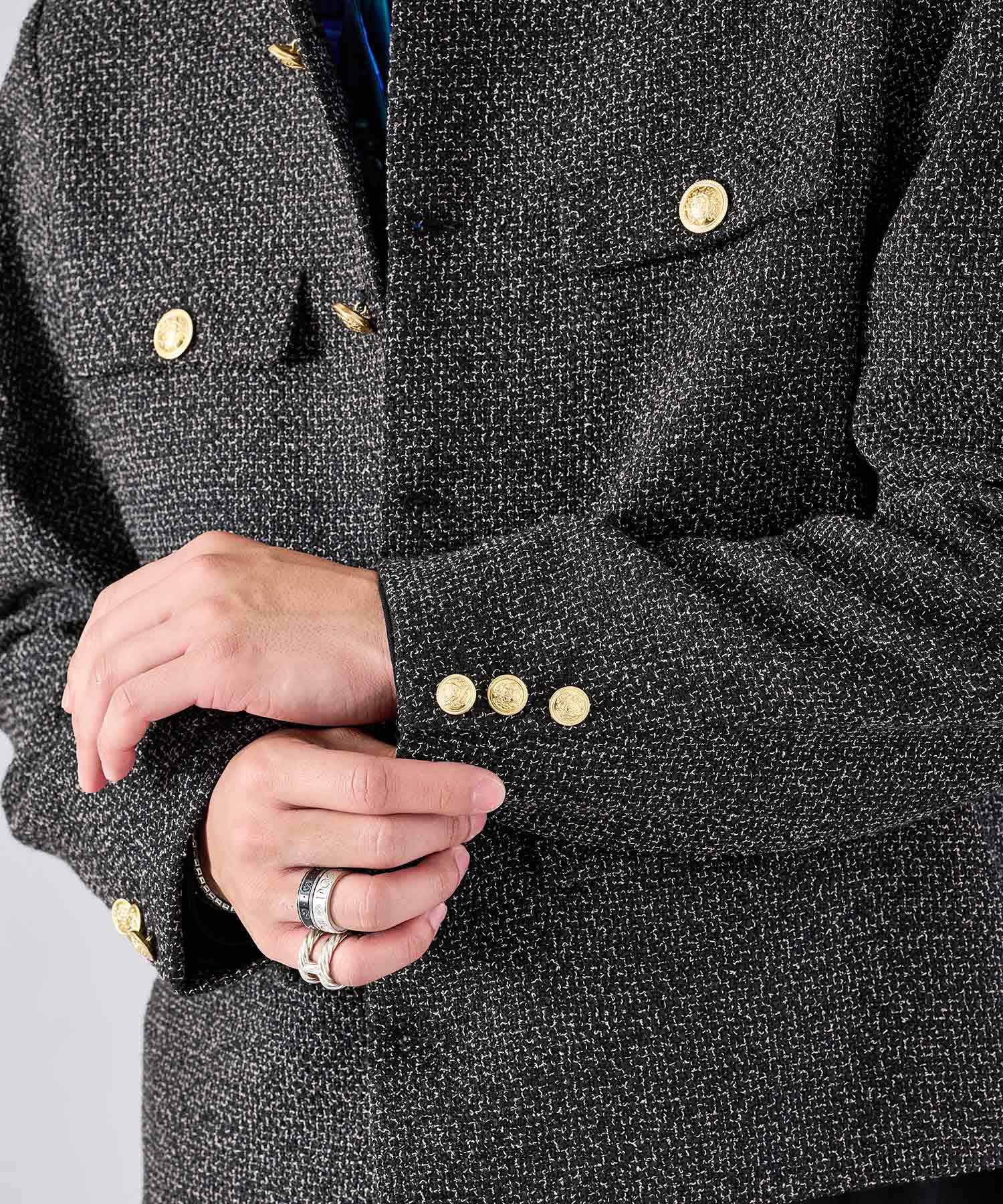 ツィード調の素材がオーセンティックでクラシカルな印象を醸し出しつつも軽くて着やすい素材です