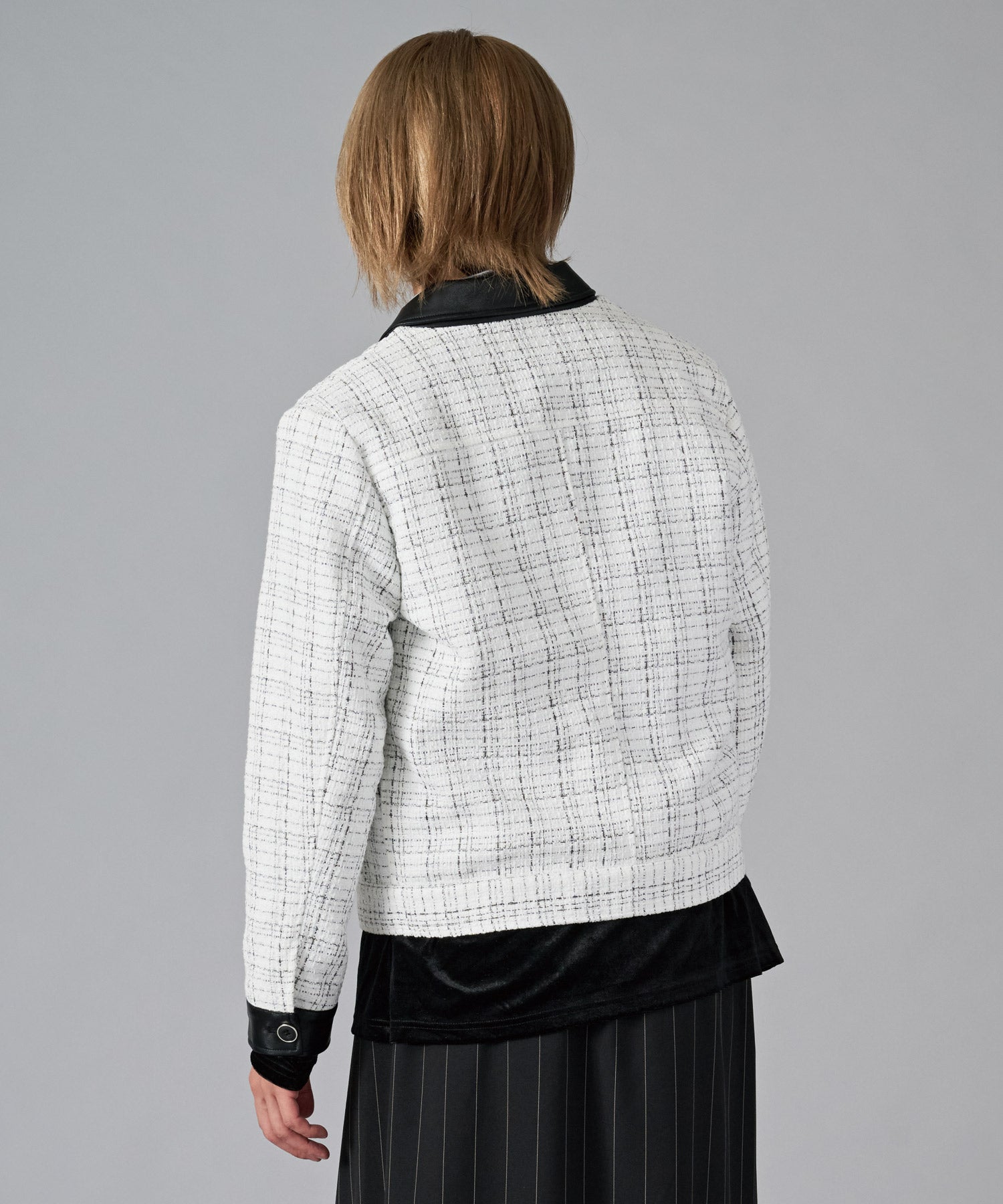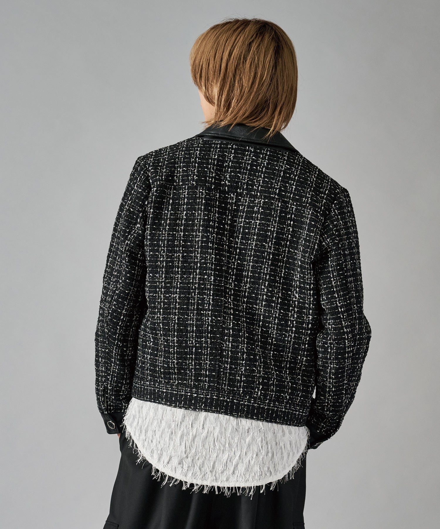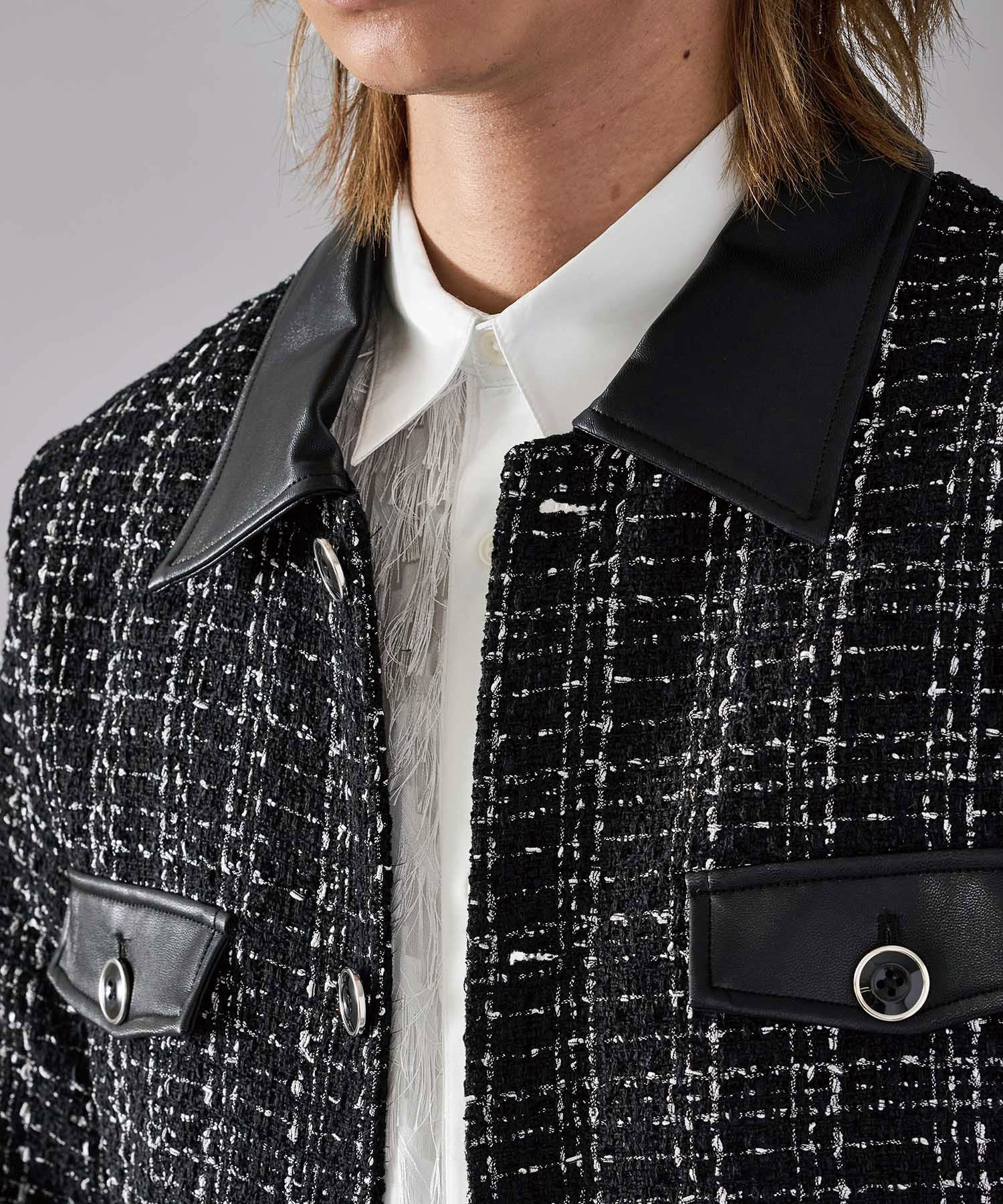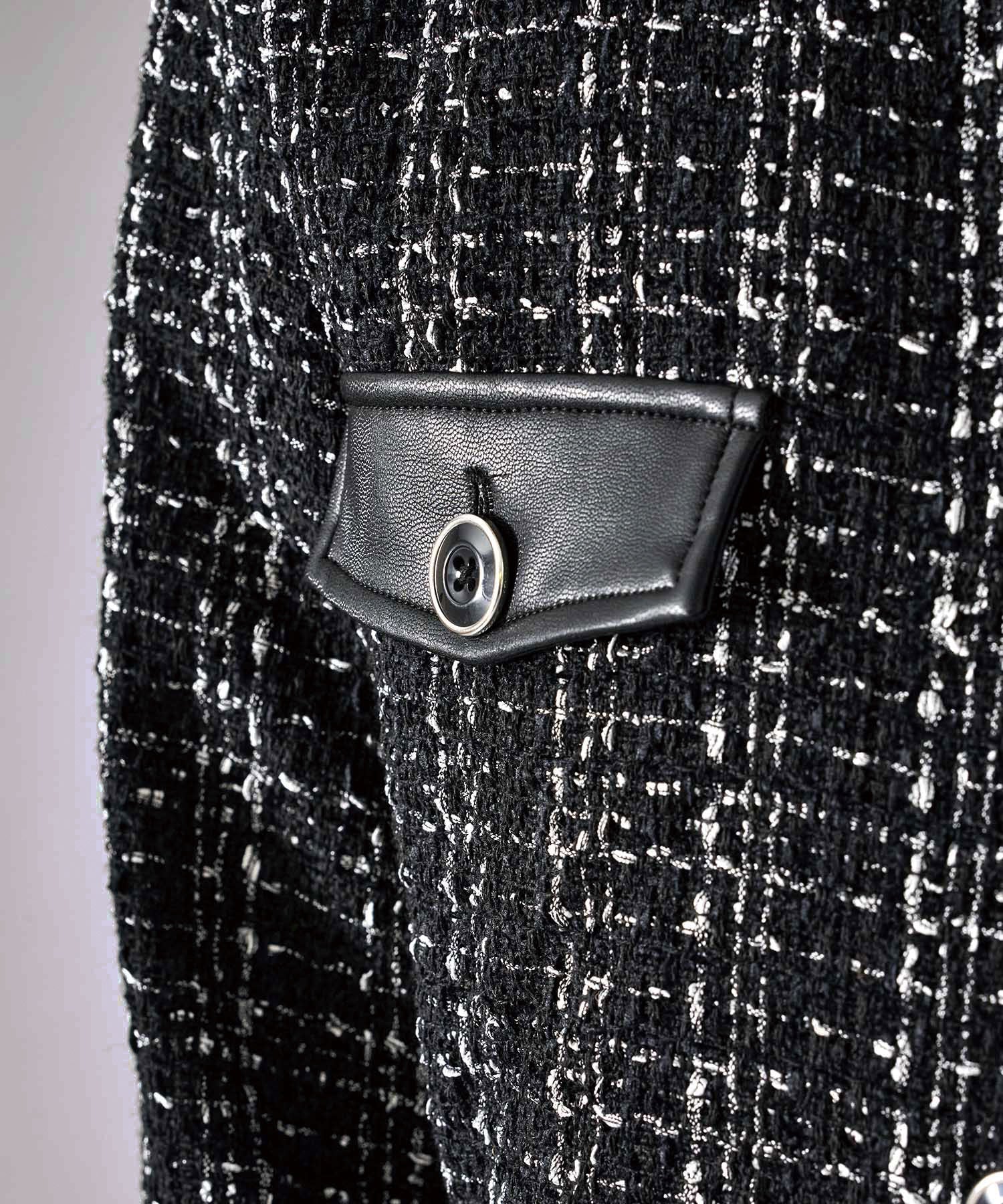 懐かしいエモさ感じるツィード生地でありながら、ポリエステル素材だから軽くて着やすい