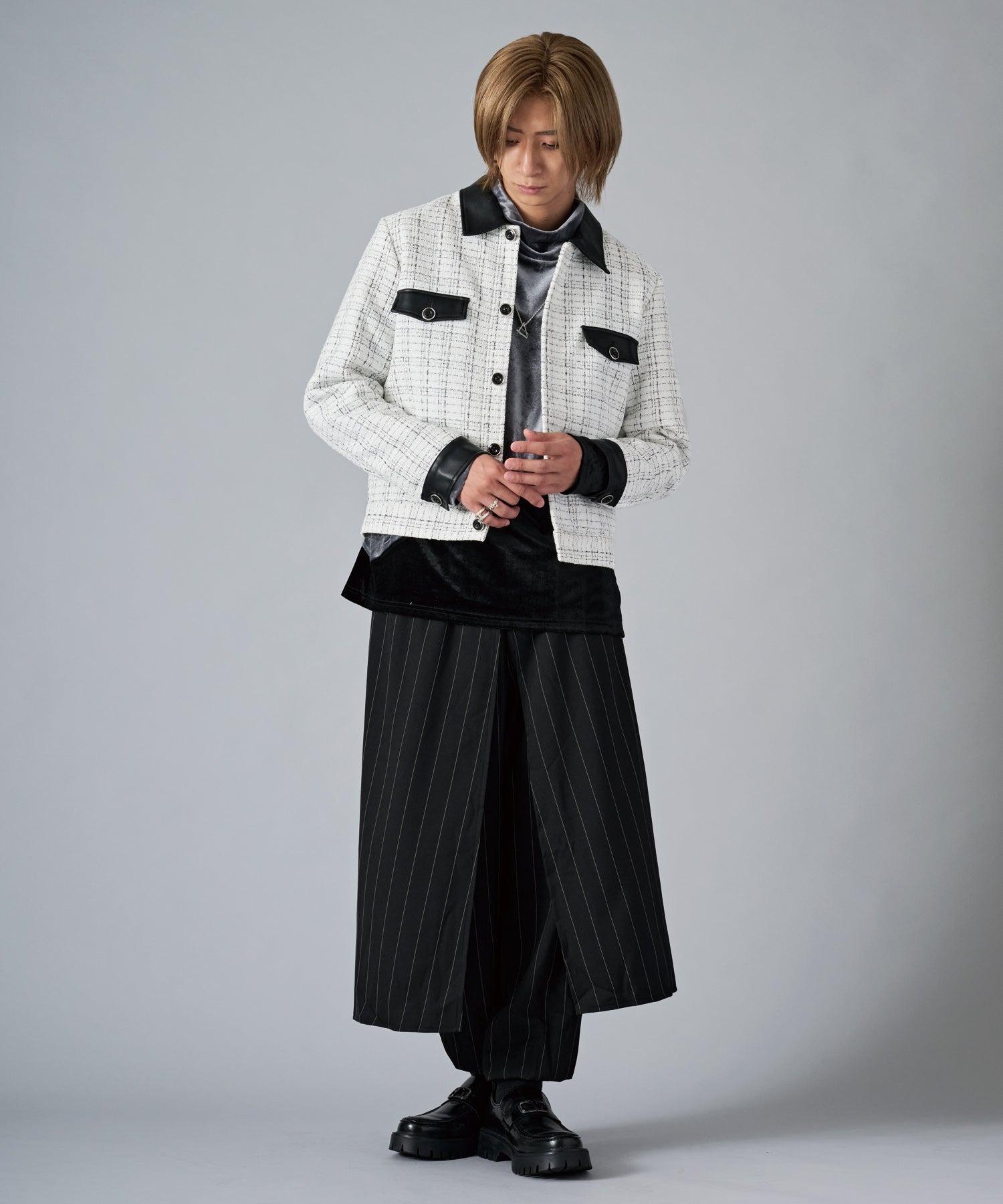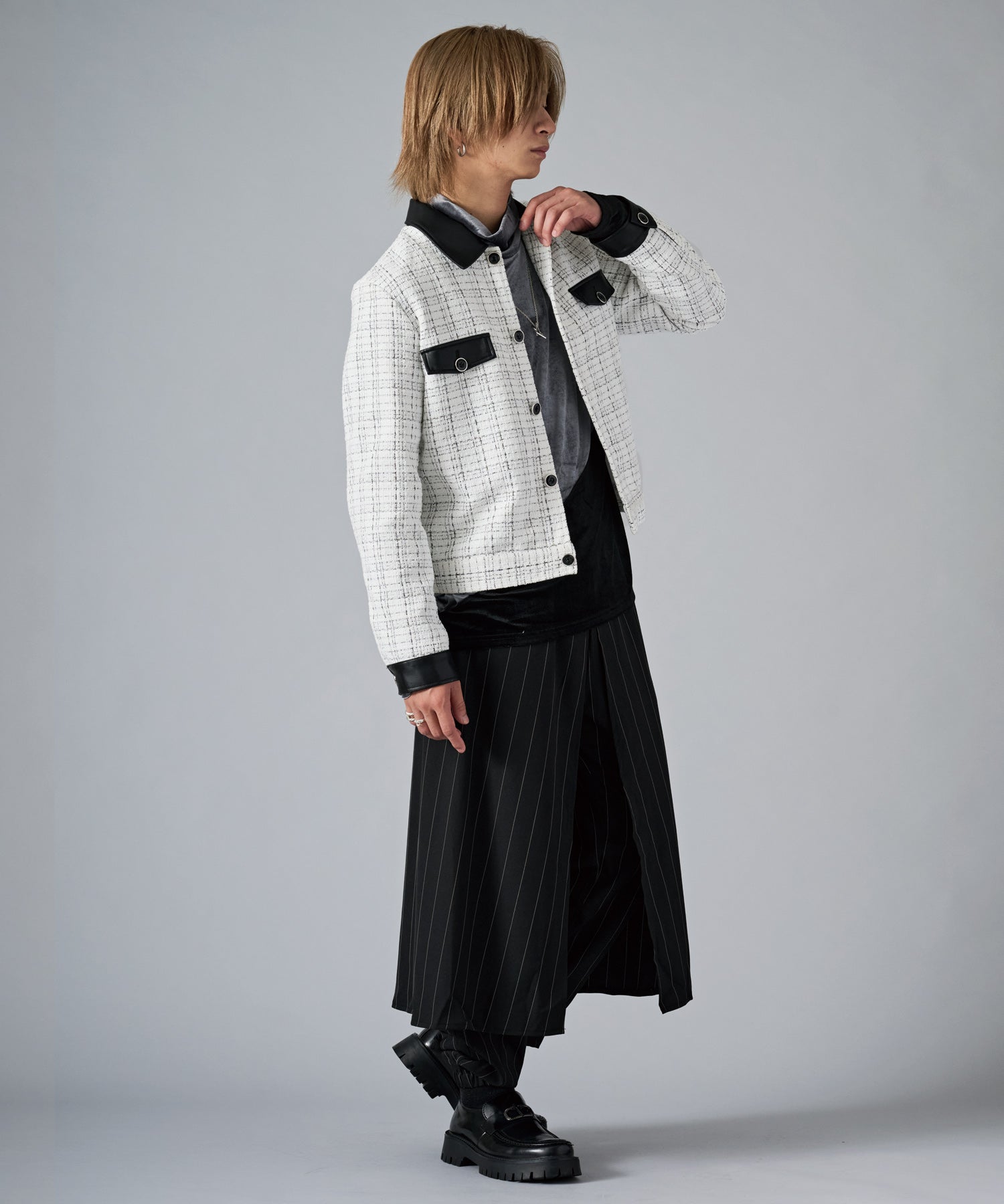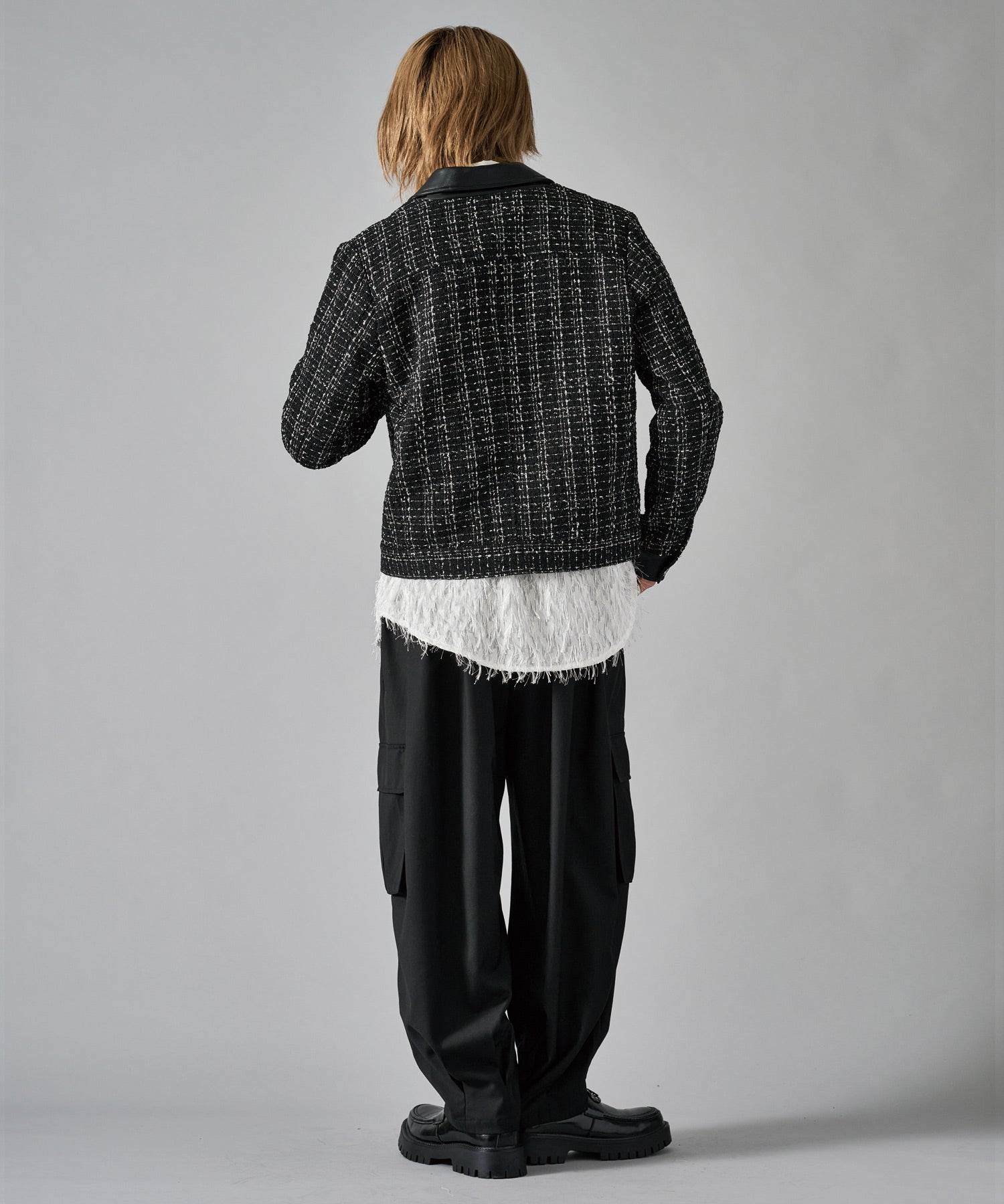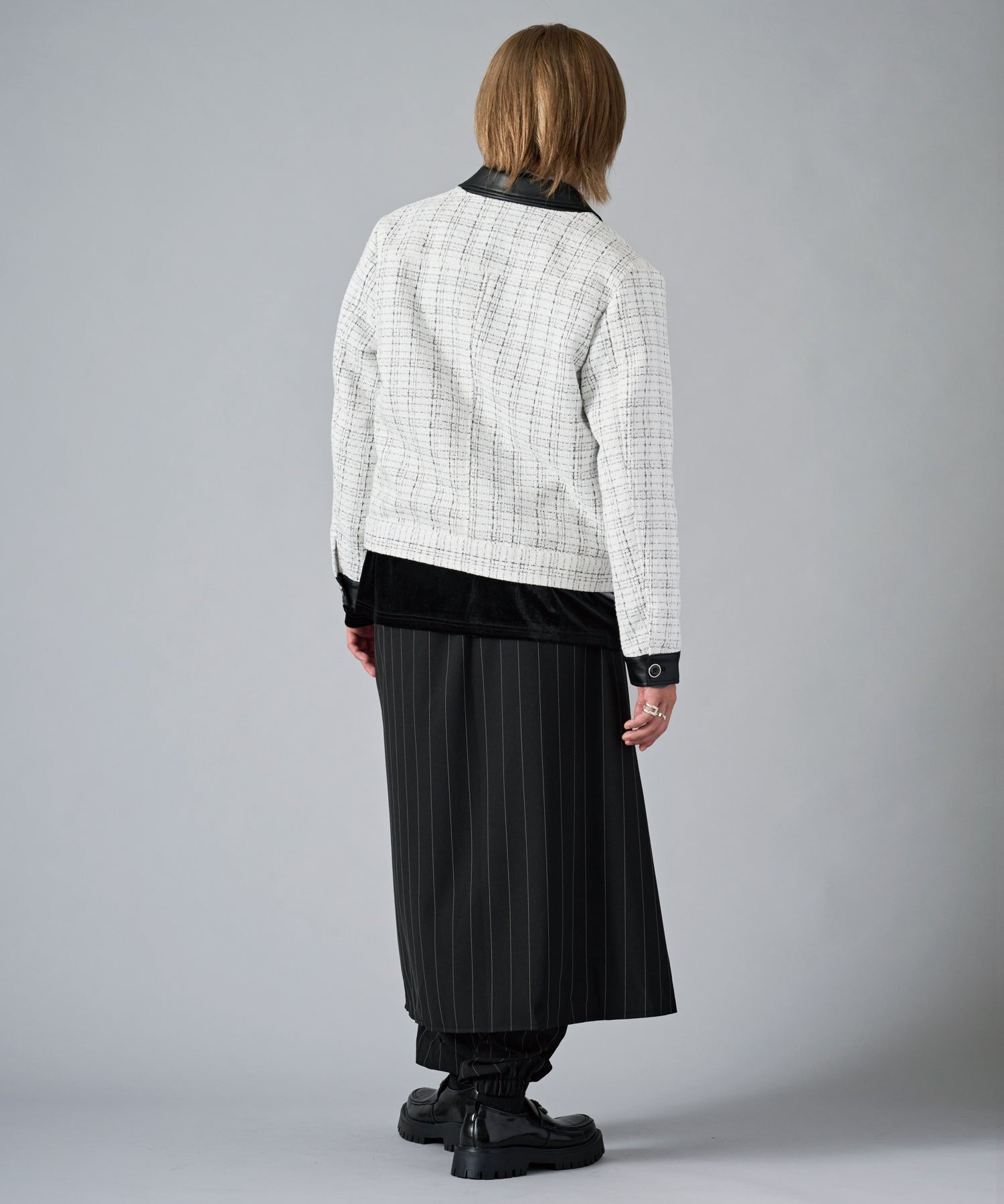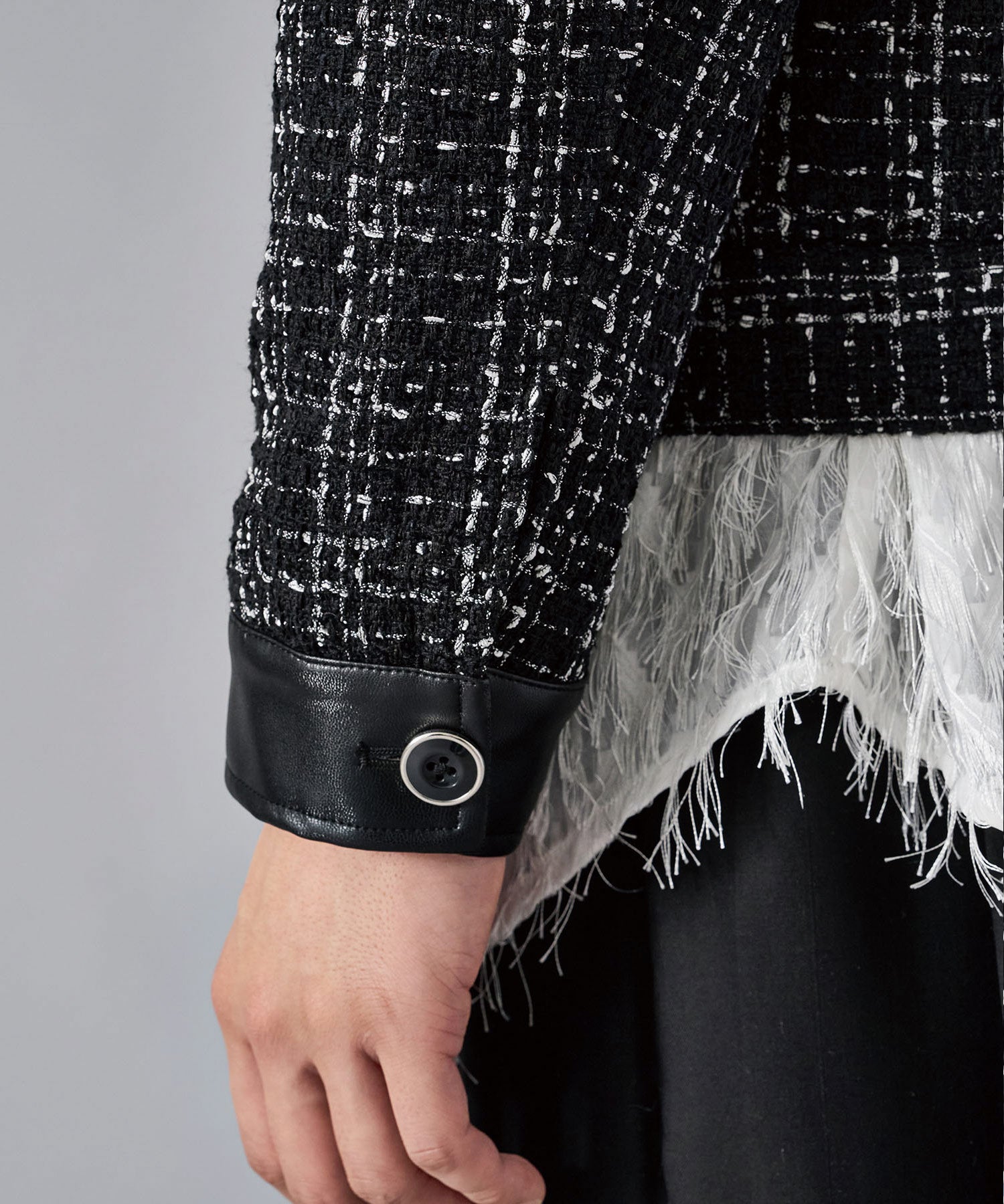 懐かしいエモさ感じるツィード生地でありながら、ポリエステル素材だから軽くて着やすい