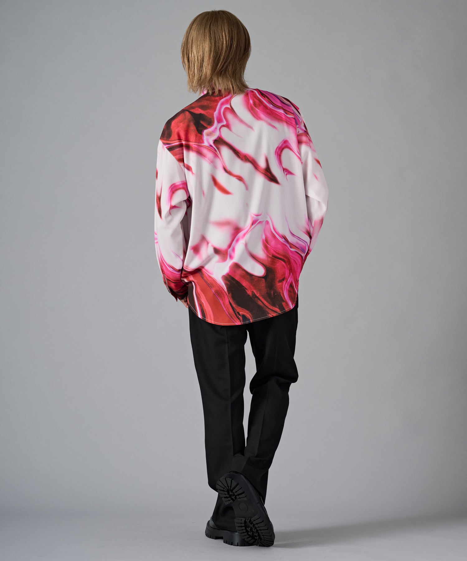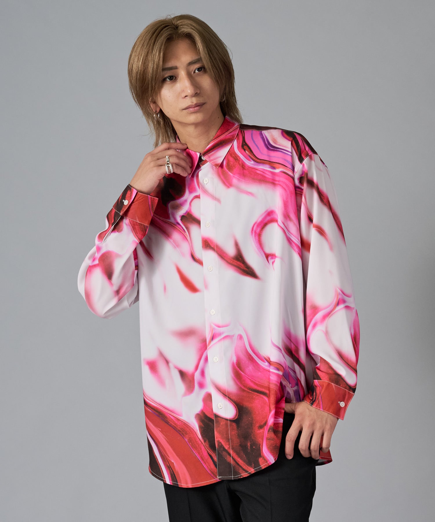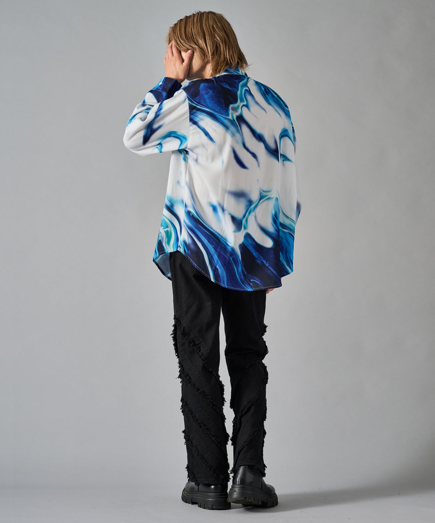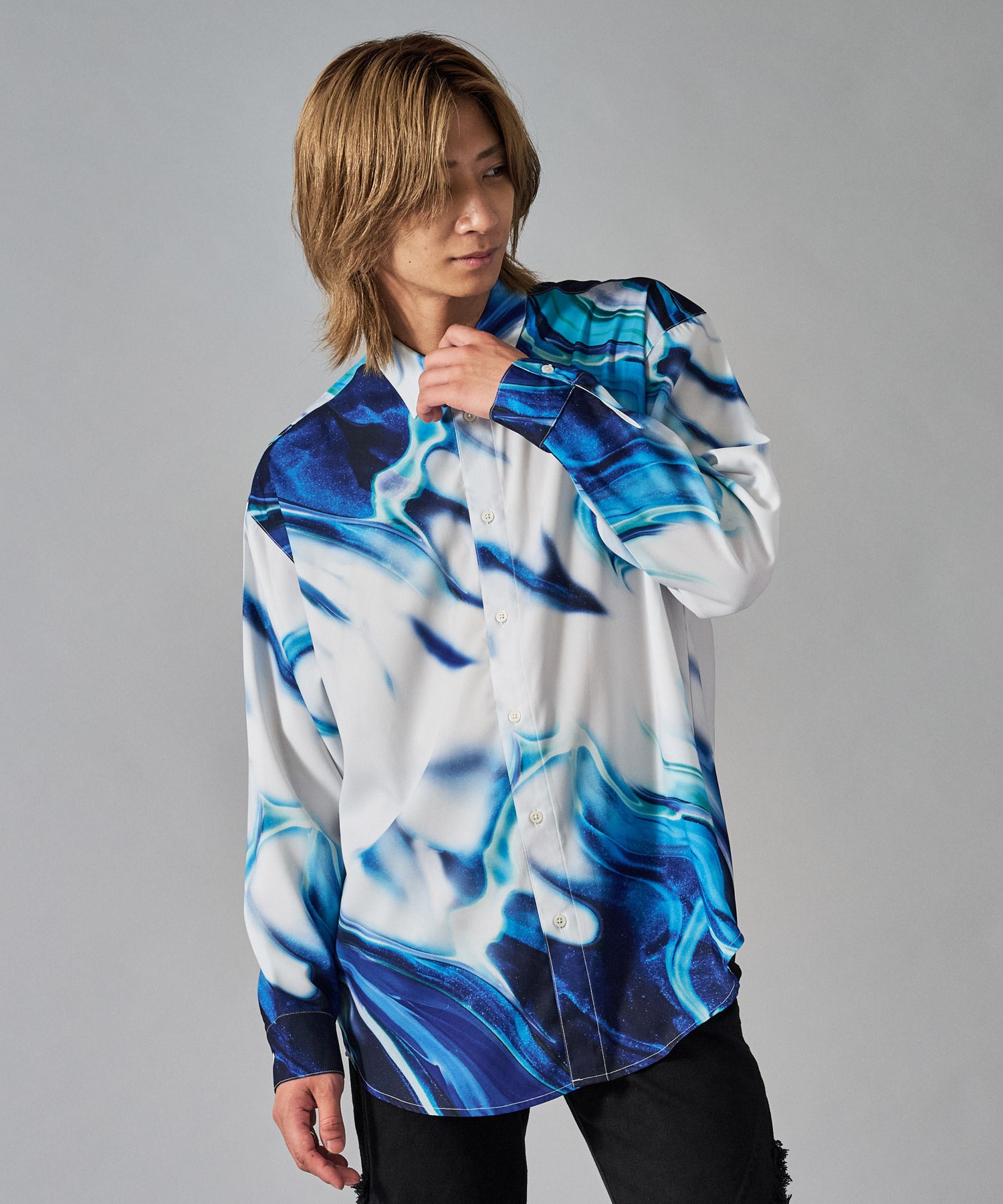 マーブル柄をプリントしたオーバーサイズの長袖シャツです