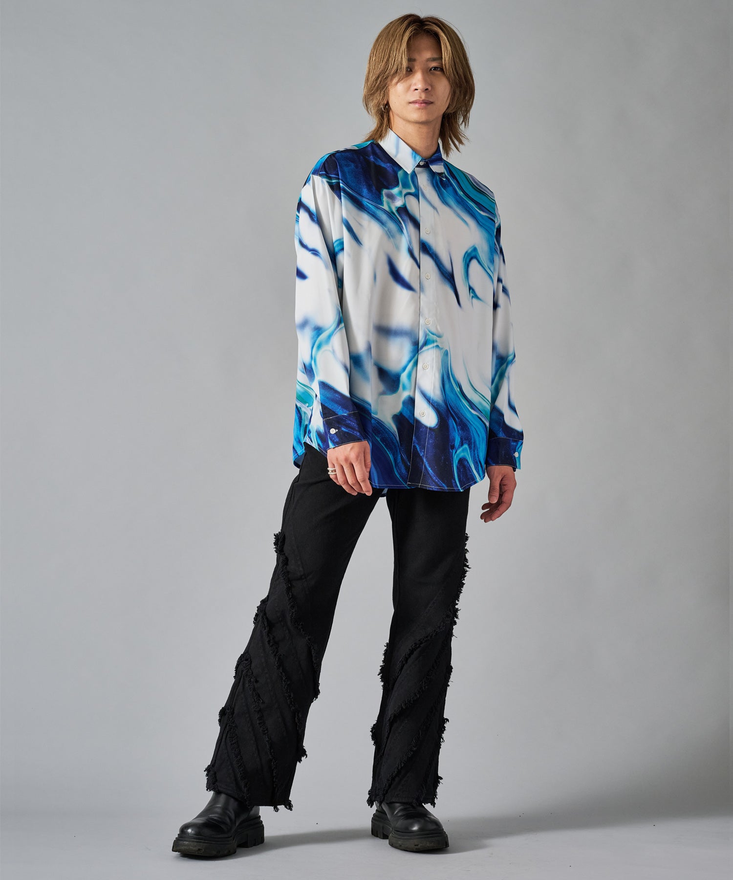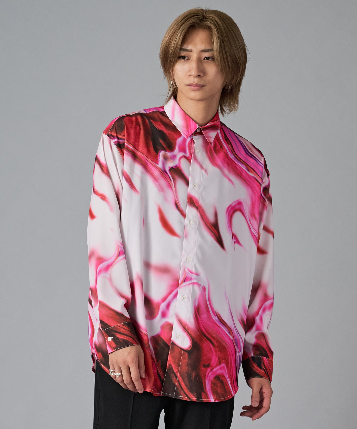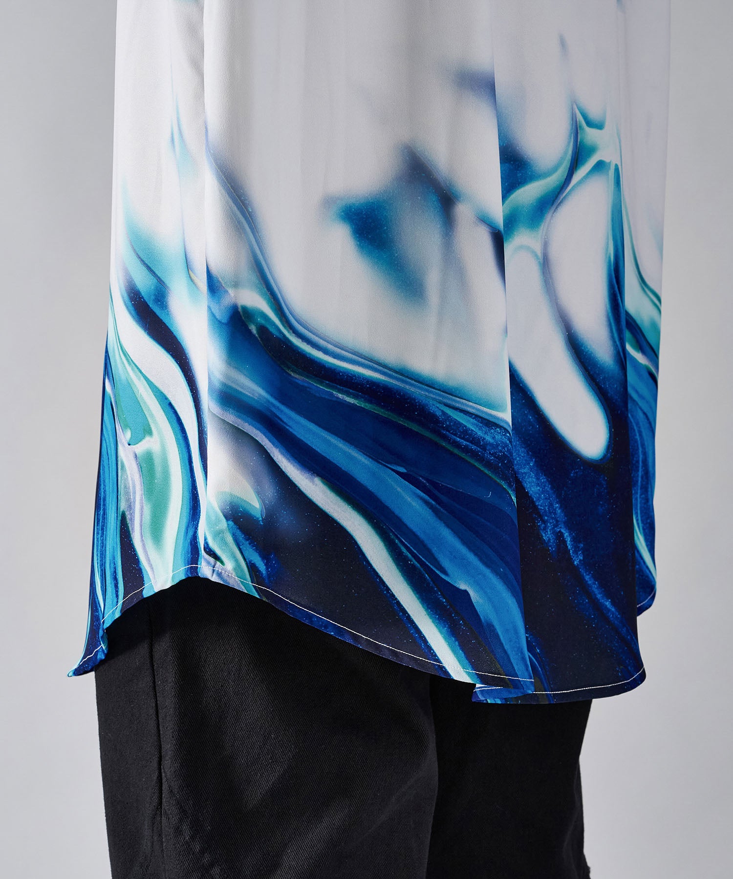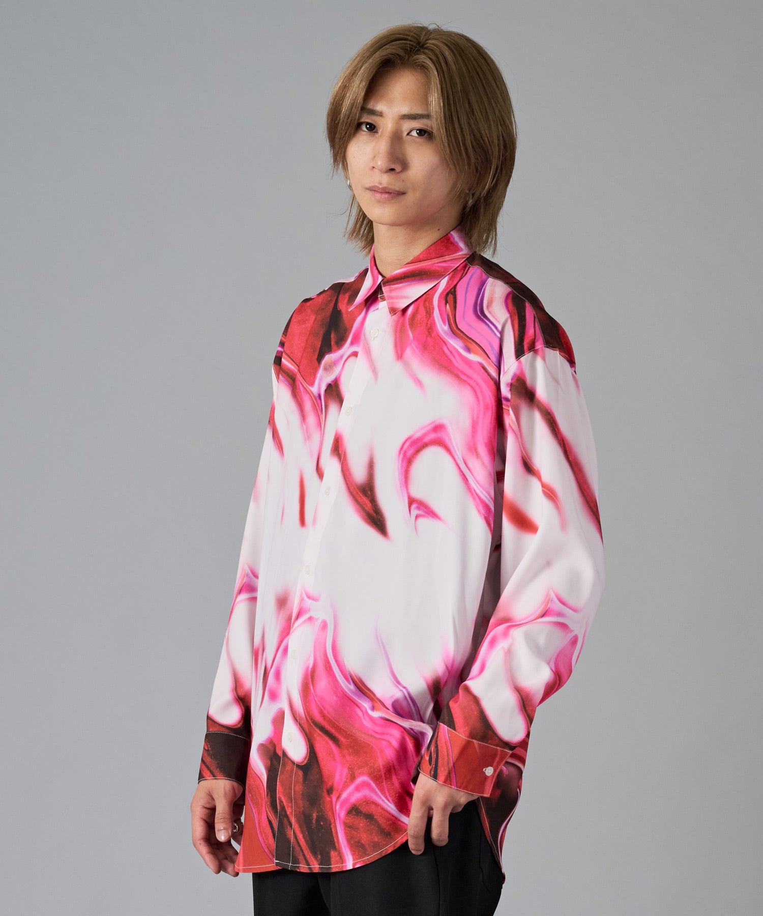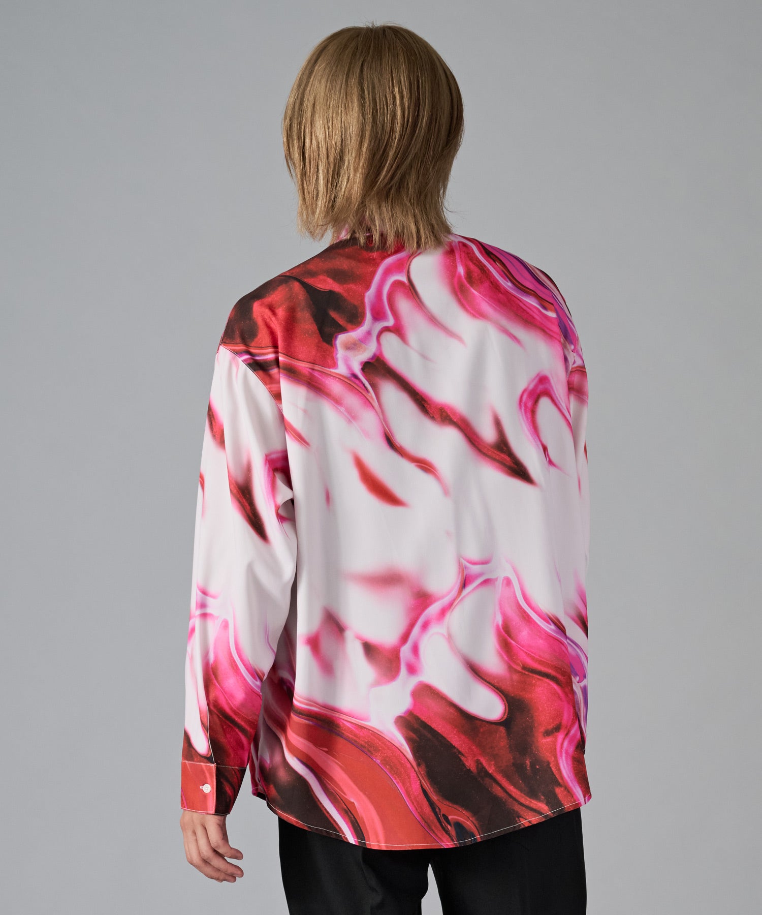 マーブル柄をプリントしたオーバーサイズの長袖シャツです