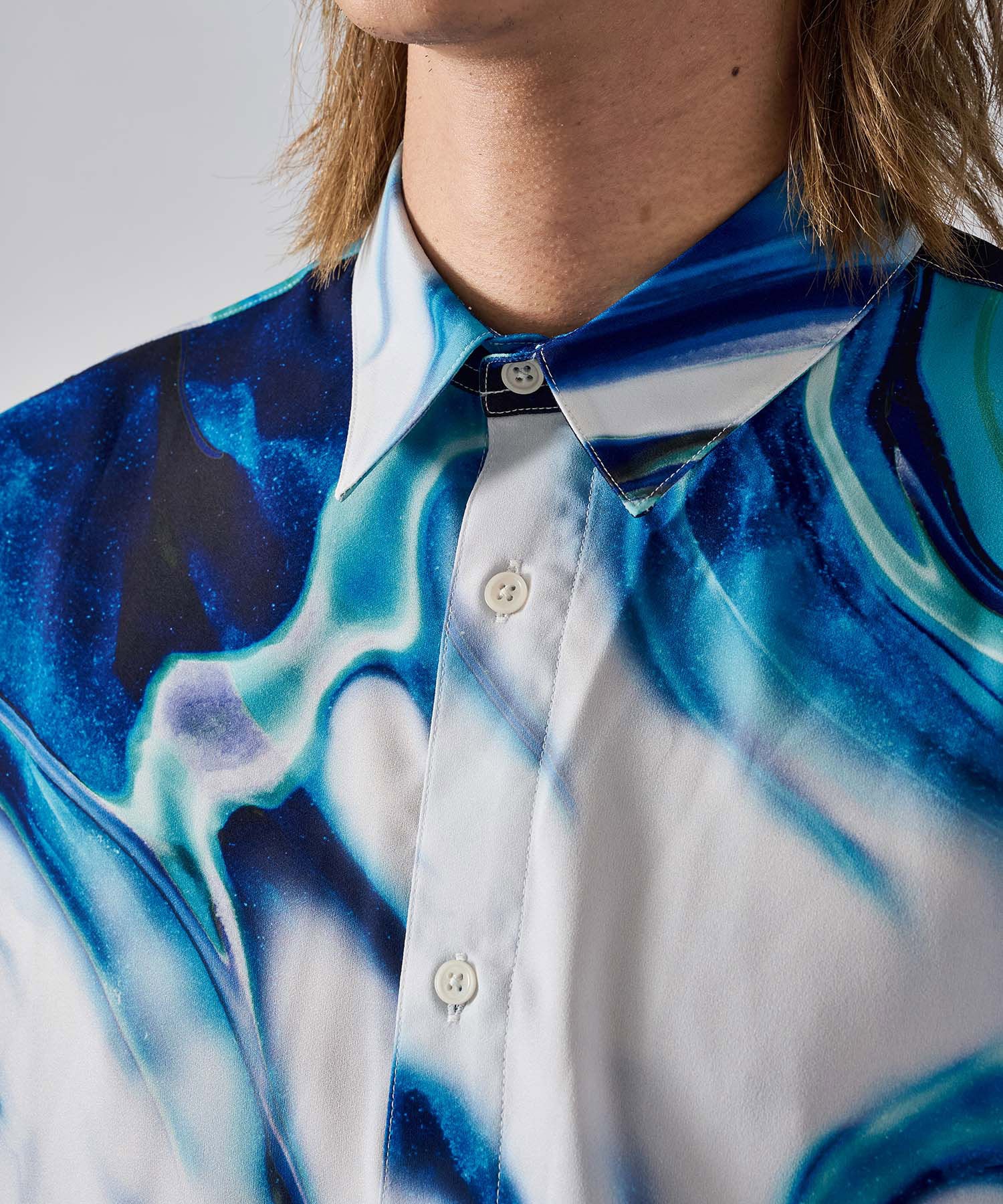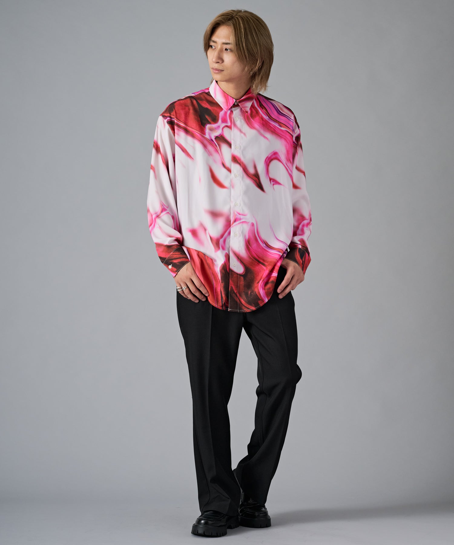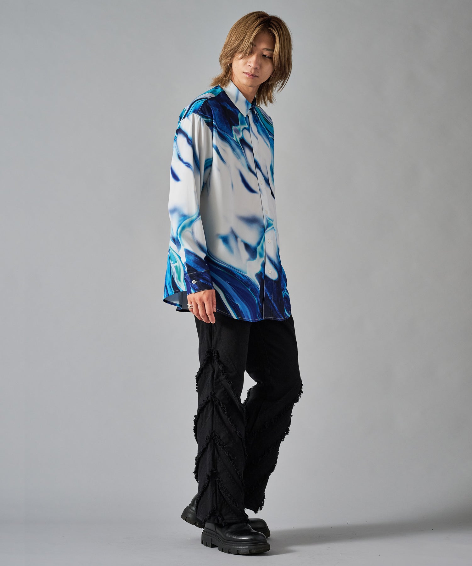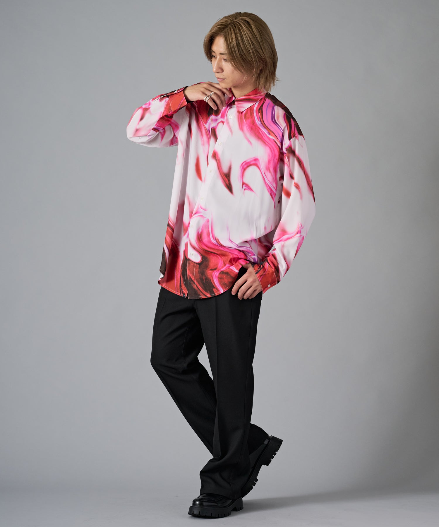 マーブル柄をプリントしたオーバーサイズの長袖シャツです