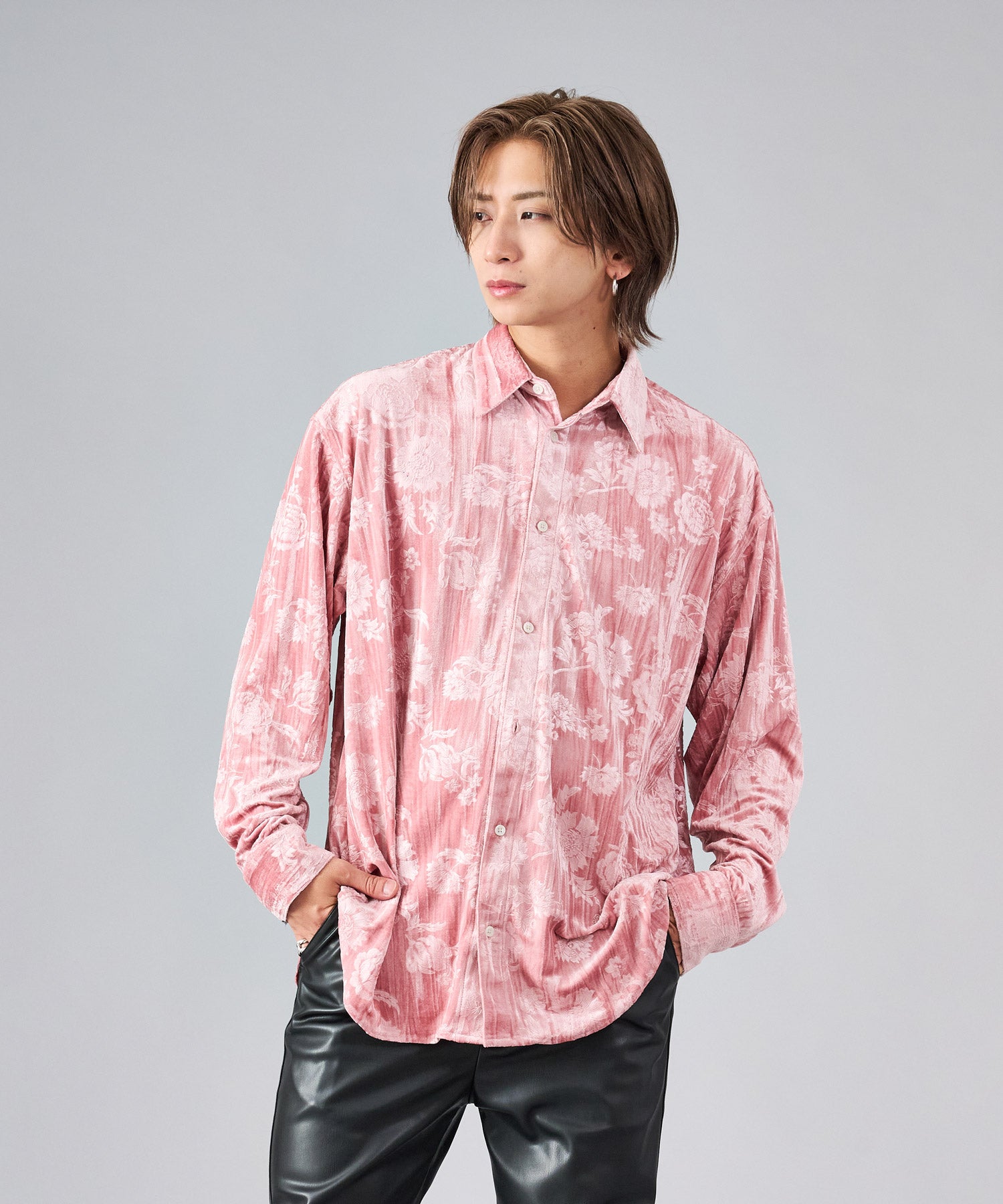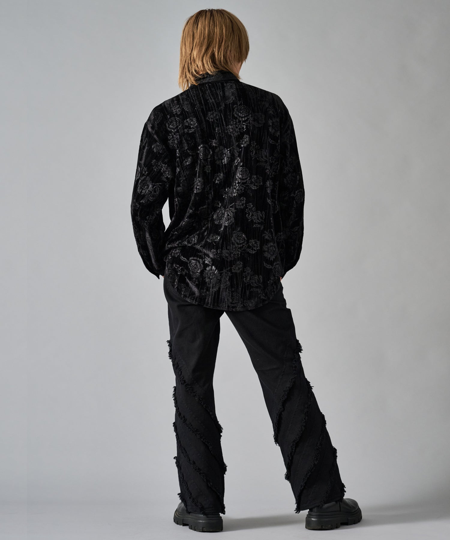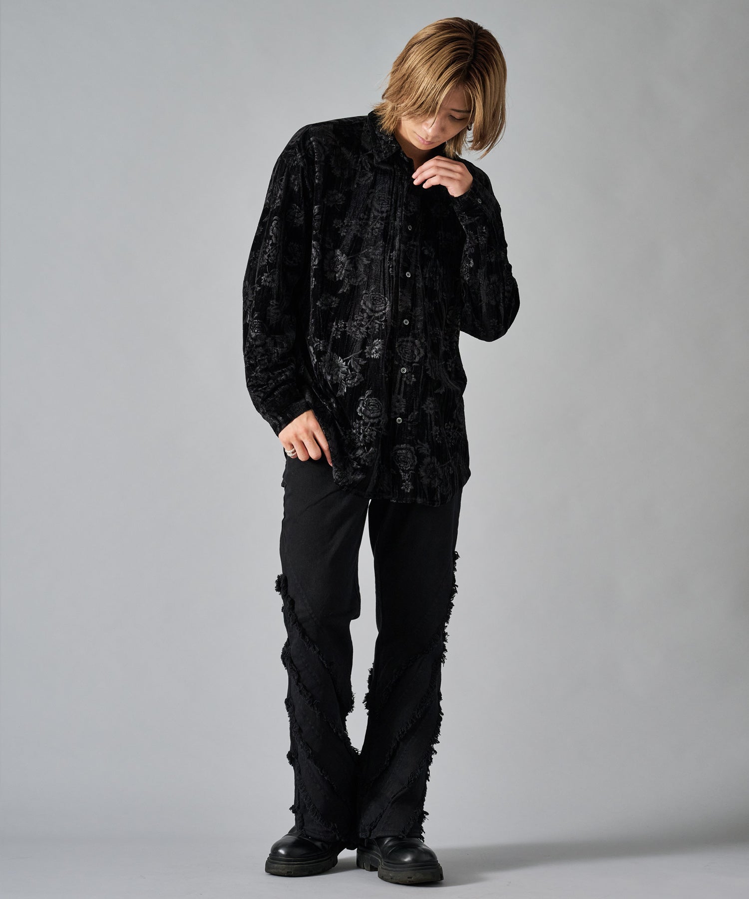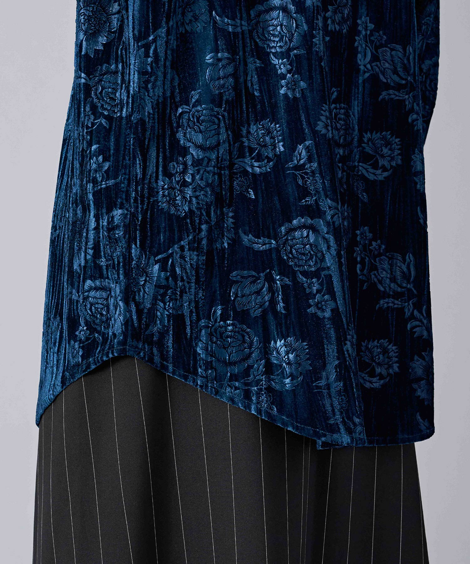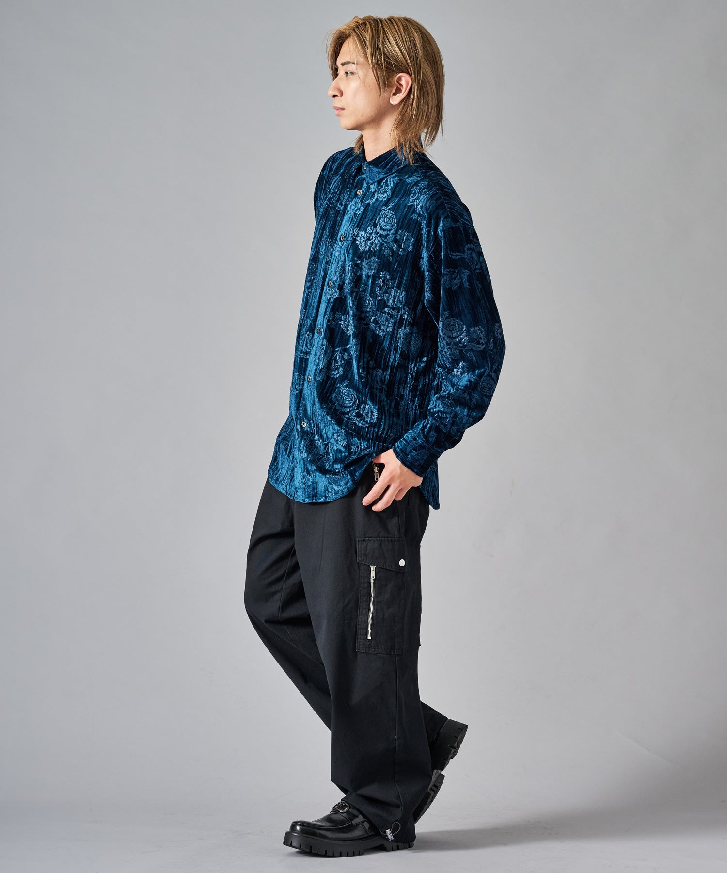 ベロアに花柄を型押しした長袖シャツです ■detail型押しした花柄が、光の角度によって浮かび上がる雰囲気がクールなデザインです ■fabricベロアはその起毛だった表面が独特の光沢を放ち、ソフトなタッチと温もりを感じる代表的な季節感ある素材です ■stylingスラックスタイプで合わせてモードな雰囲気も楽しめ、ワークパンツでカジュアルな着回しもでき、この素材一つコーデに加えるだけでシーズンを先取りできるアイテムです |