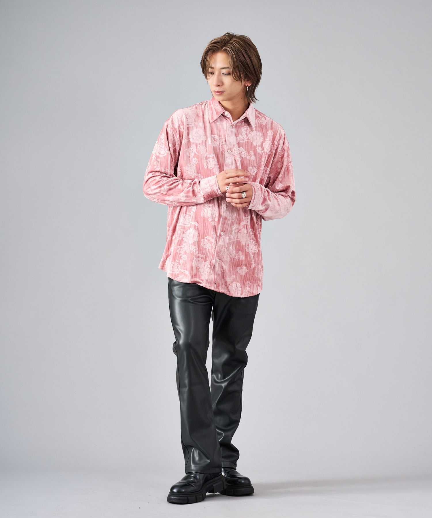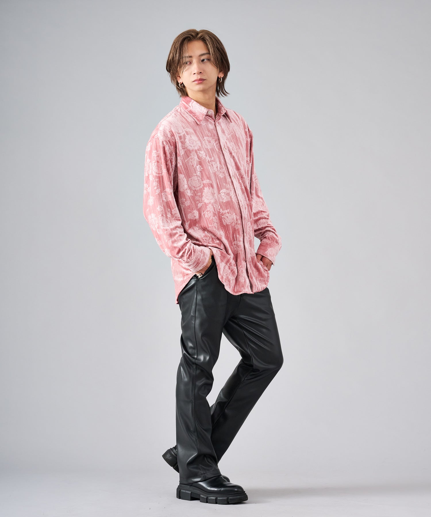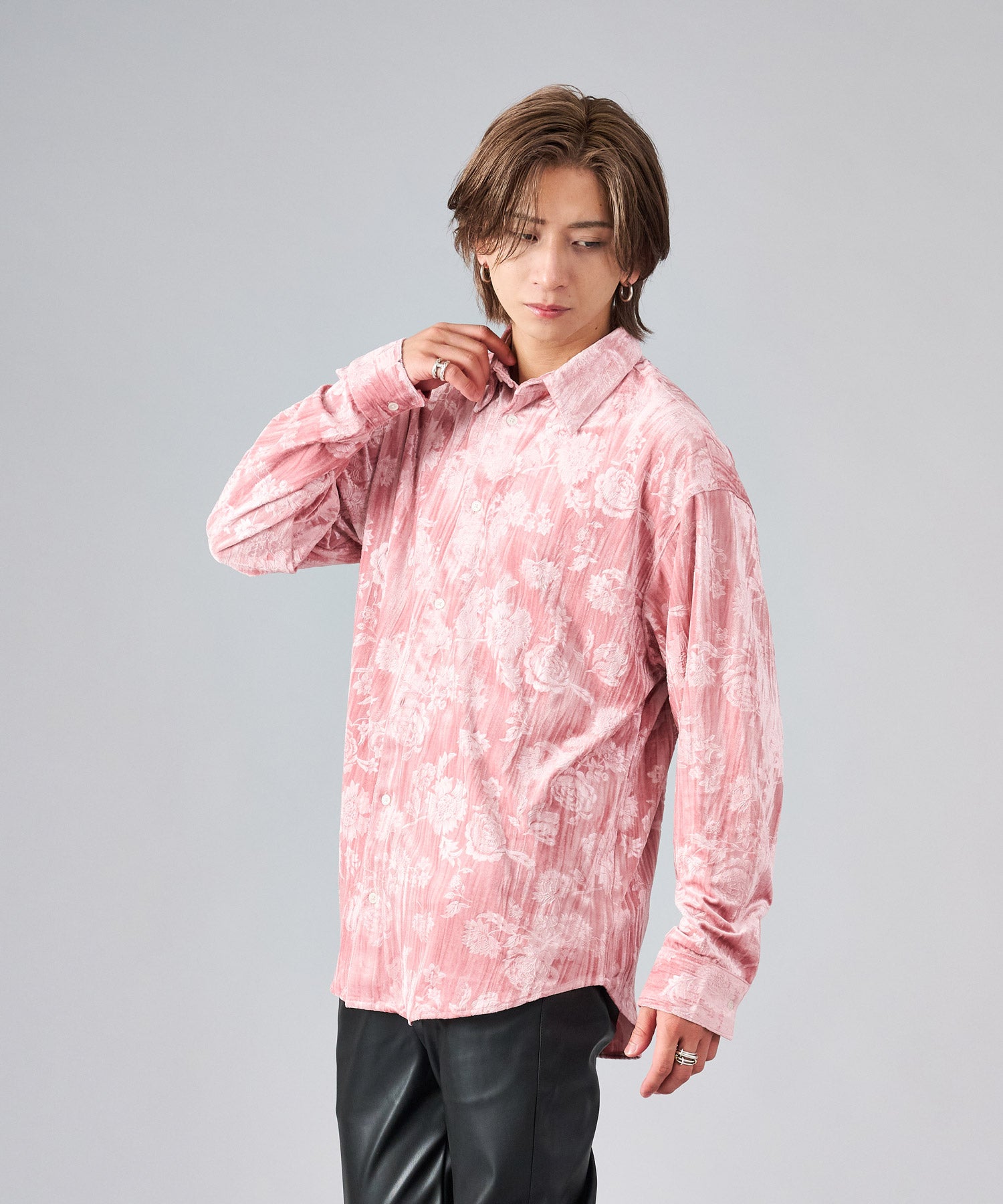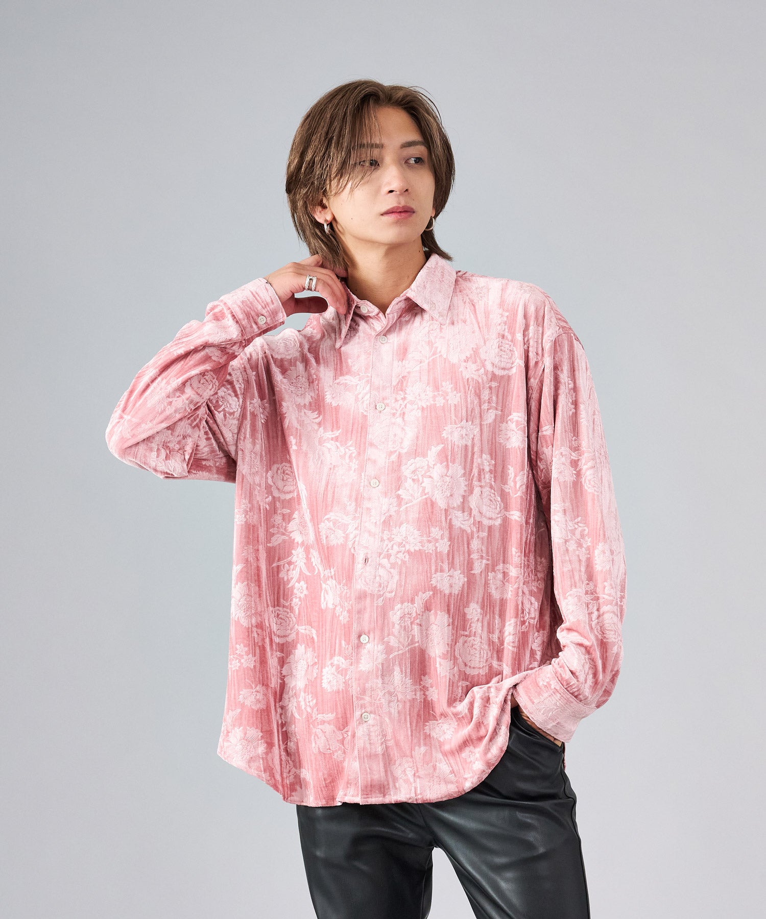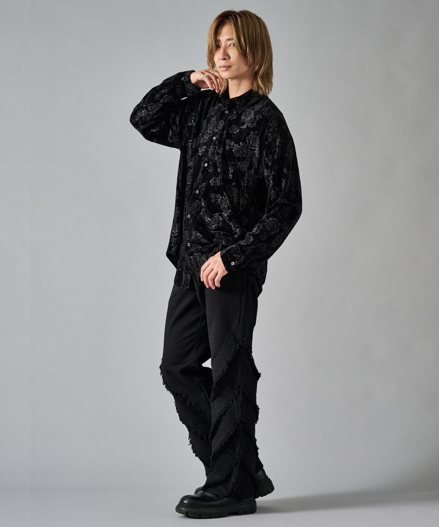 ベロアに花柄を型押しした長袖シャツです ■detail型押しした花柄が、光の角度によって浮かび上がる雰囲気がクールなデザインです ■fabricベロアはその起毛だった表面が独特の光沢を放ち、ソフトなタッチと温もりを感じる代表的な季節感ある素材です ■stylingスラックスタイプで合わせてモードな雰囲気も楽しめ、ワークパンツでカジュアルな着回しもでき、この素材一つコーデに加えるだけでシーズンを先取りできるアイテムです |