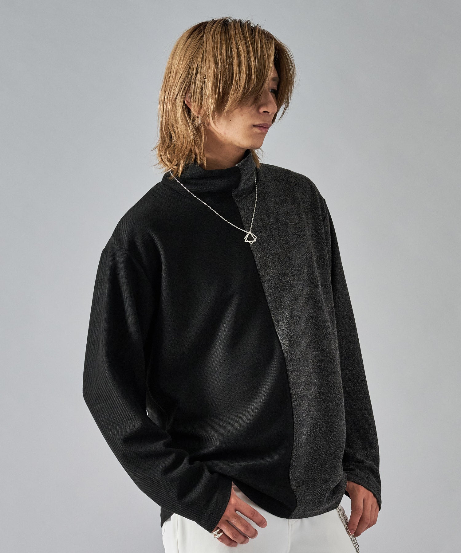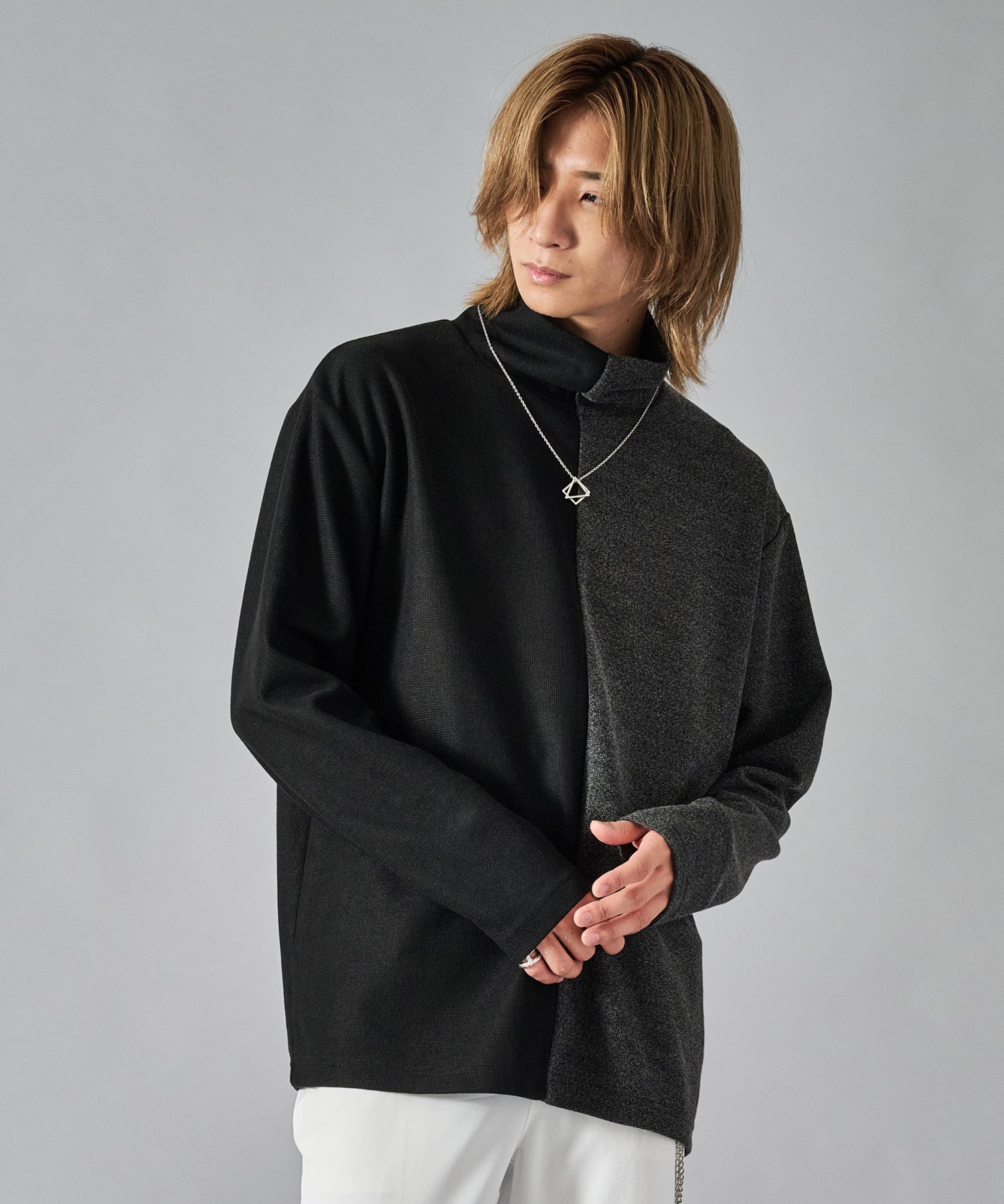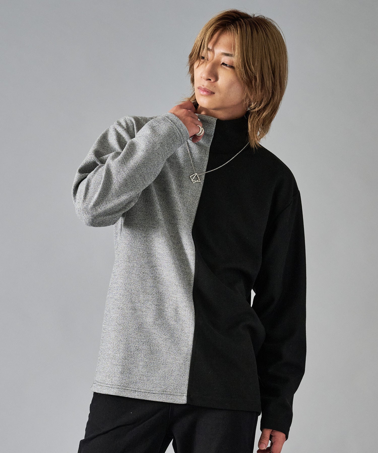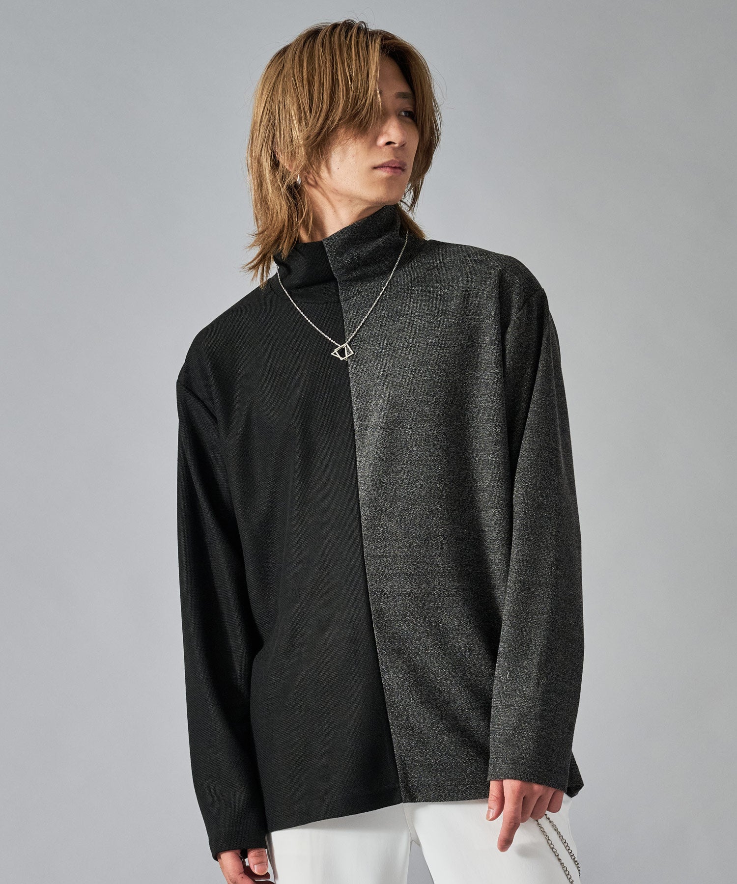 タートルの襟元にはネックレスが付属しており、首周りを一段と引き立ててくれます