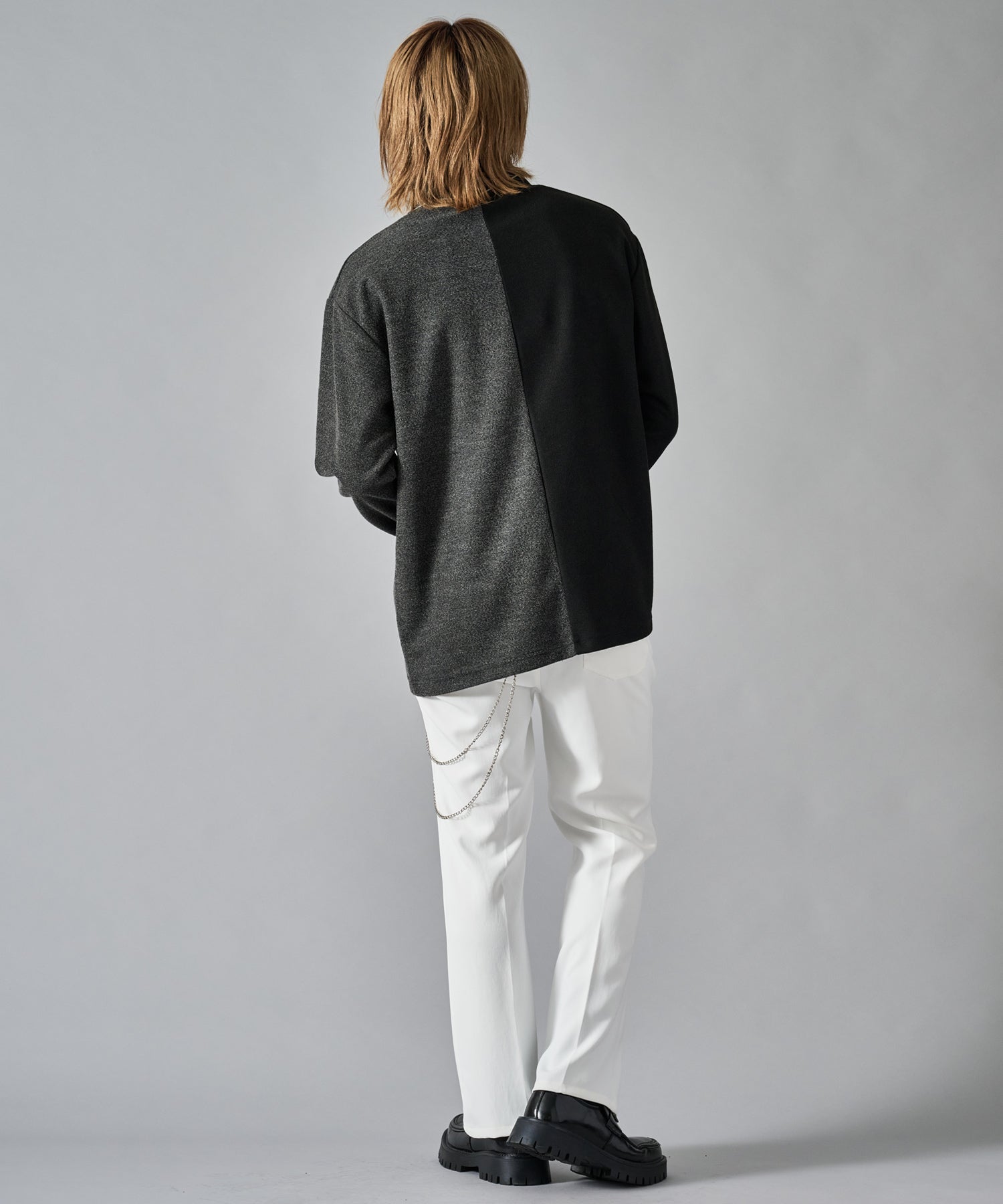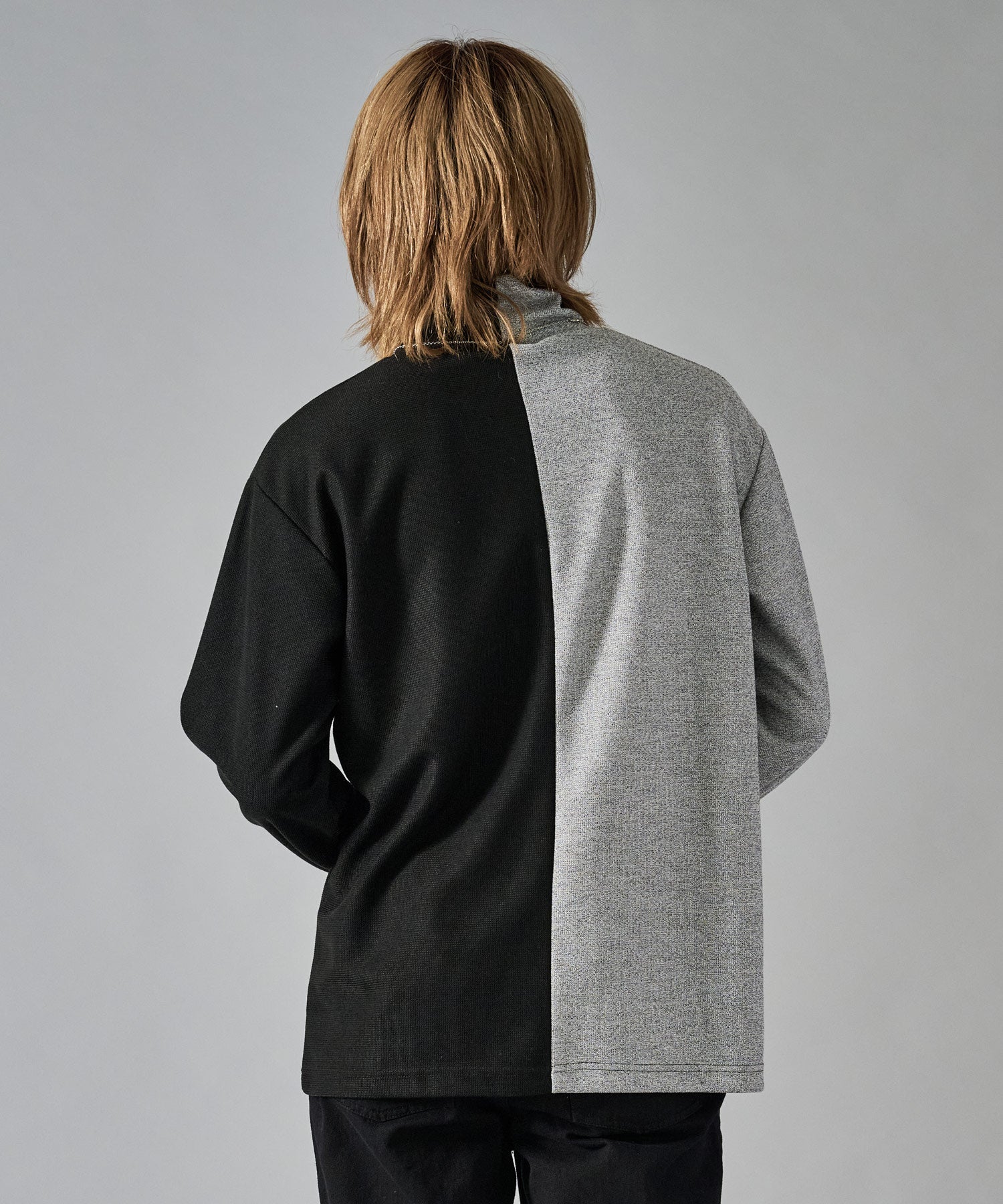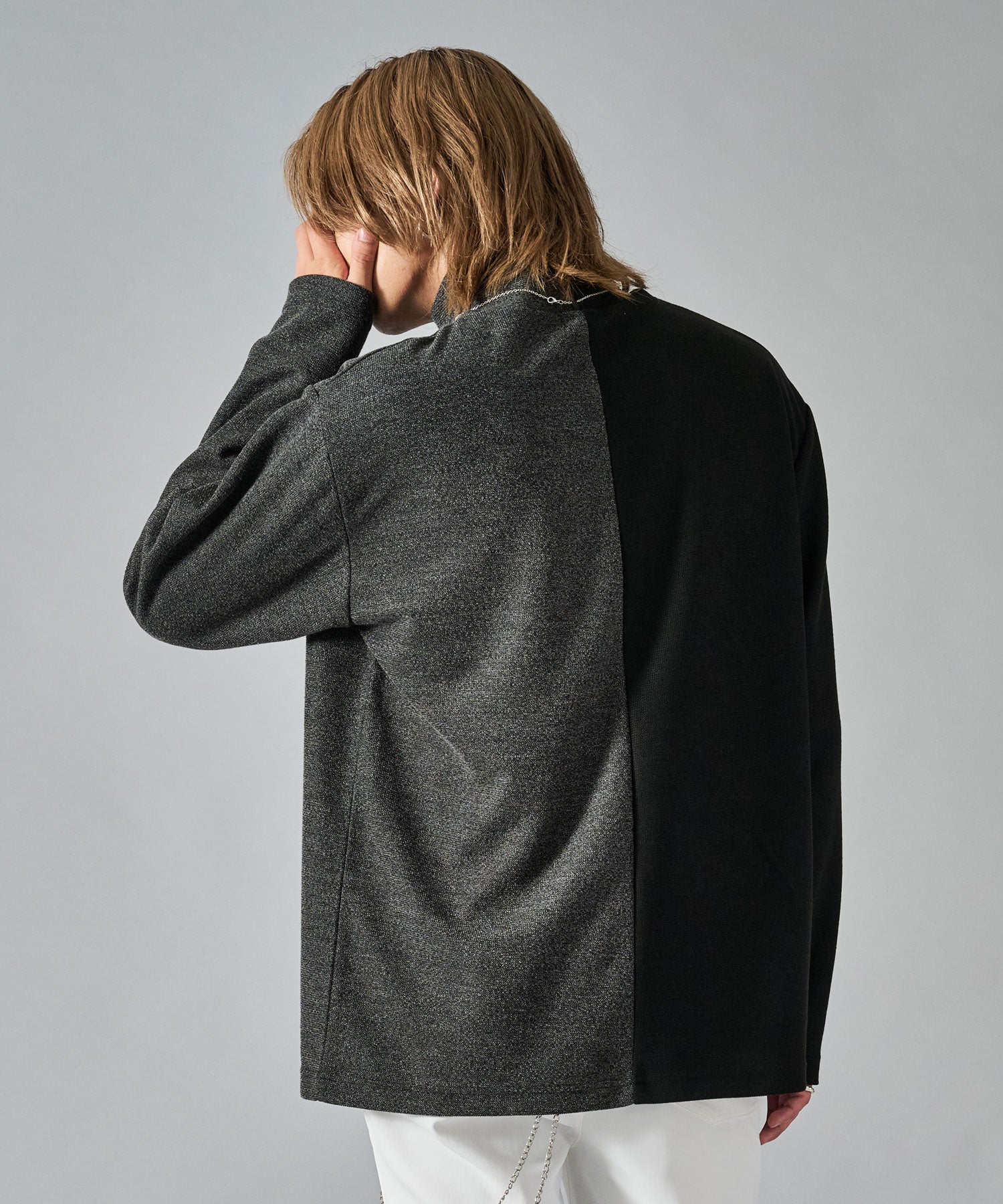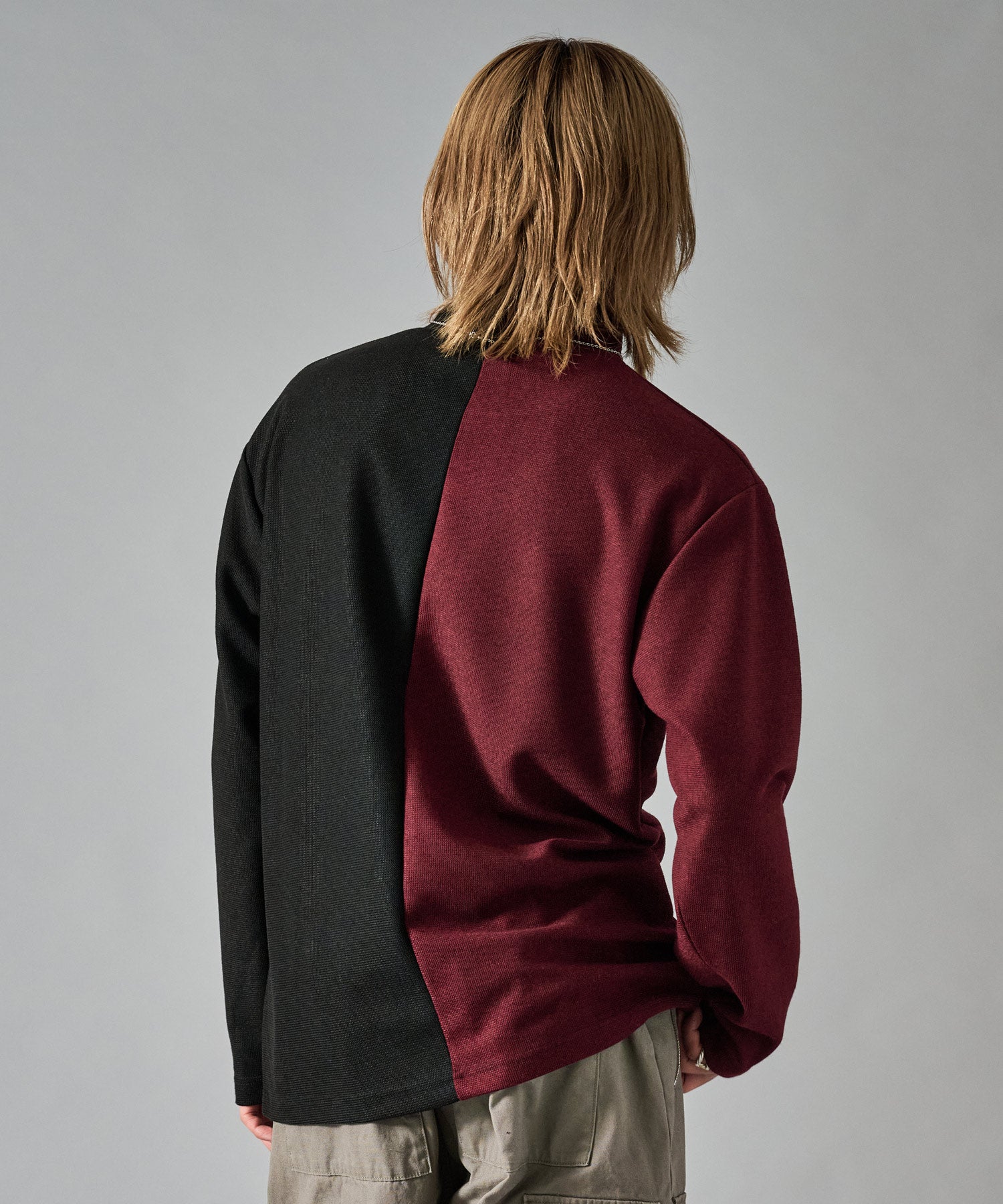 大胆な切り替えが印象的で一枚でも存在感あるロンTです