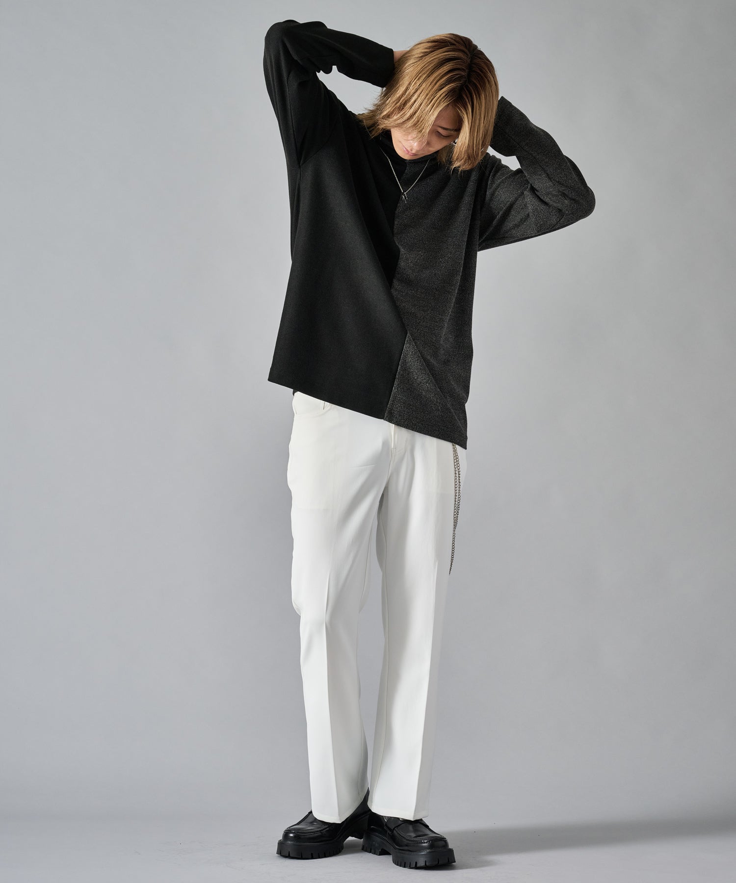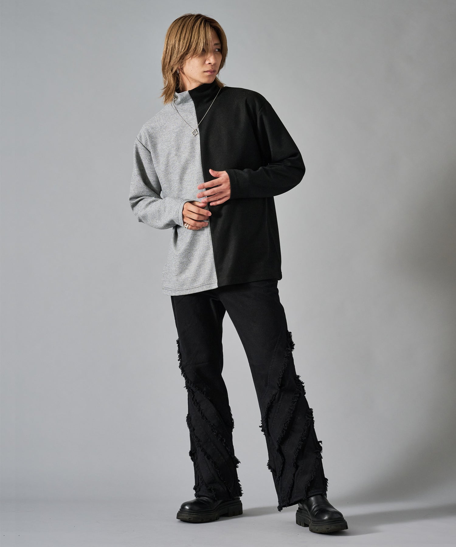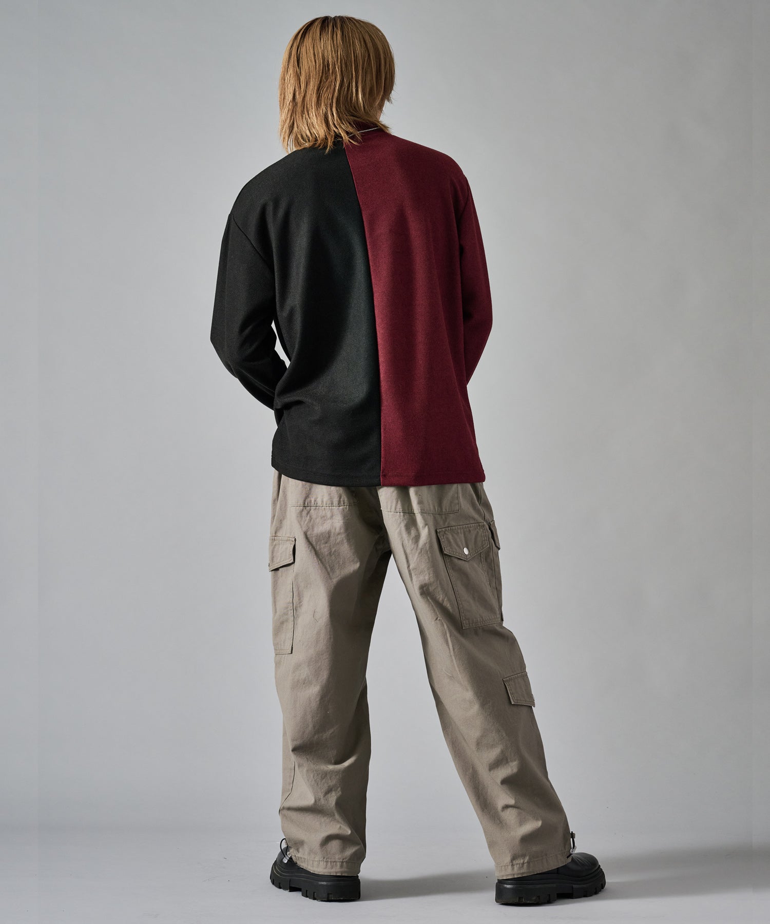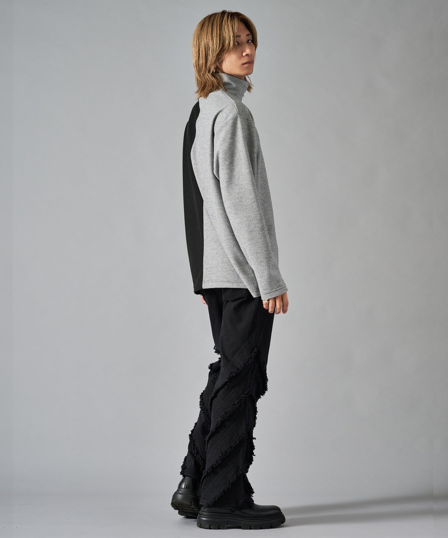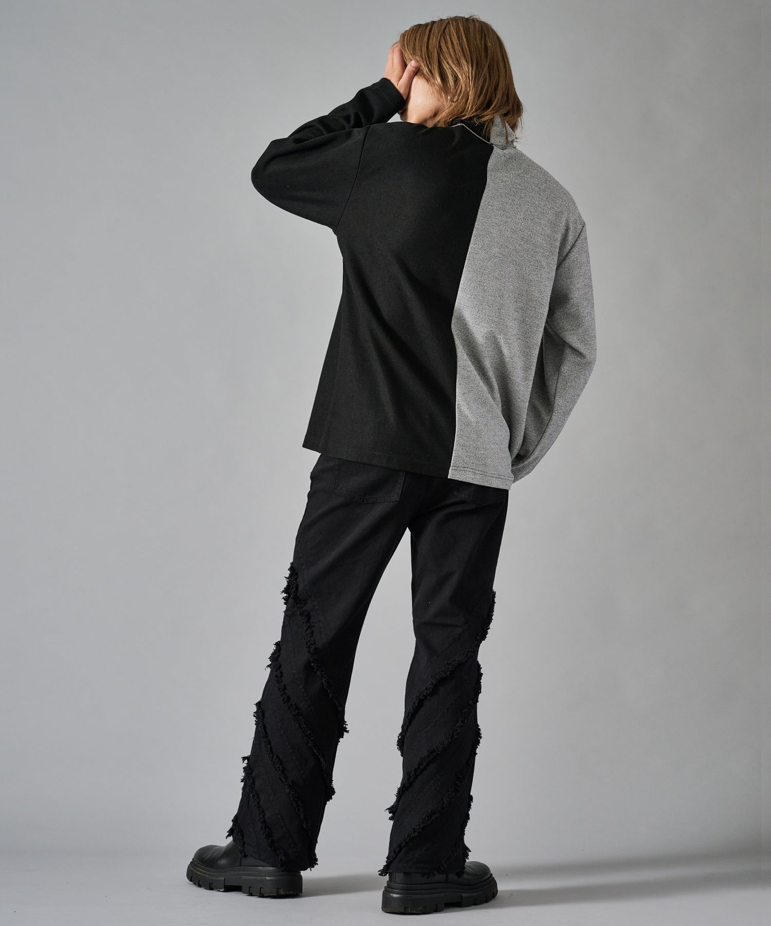 大胆な切り替えが印象的で一枚でも存在感あるロンTです