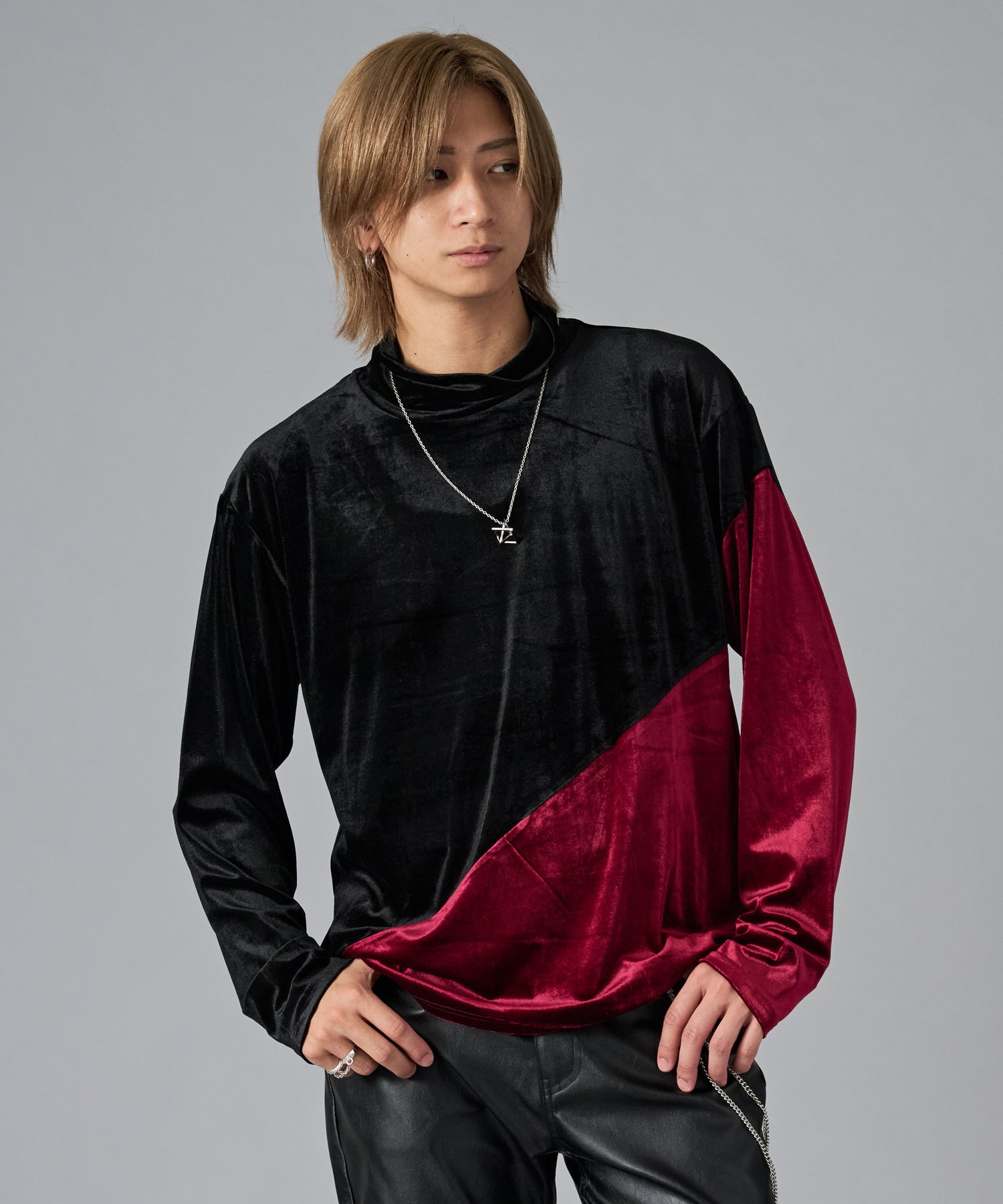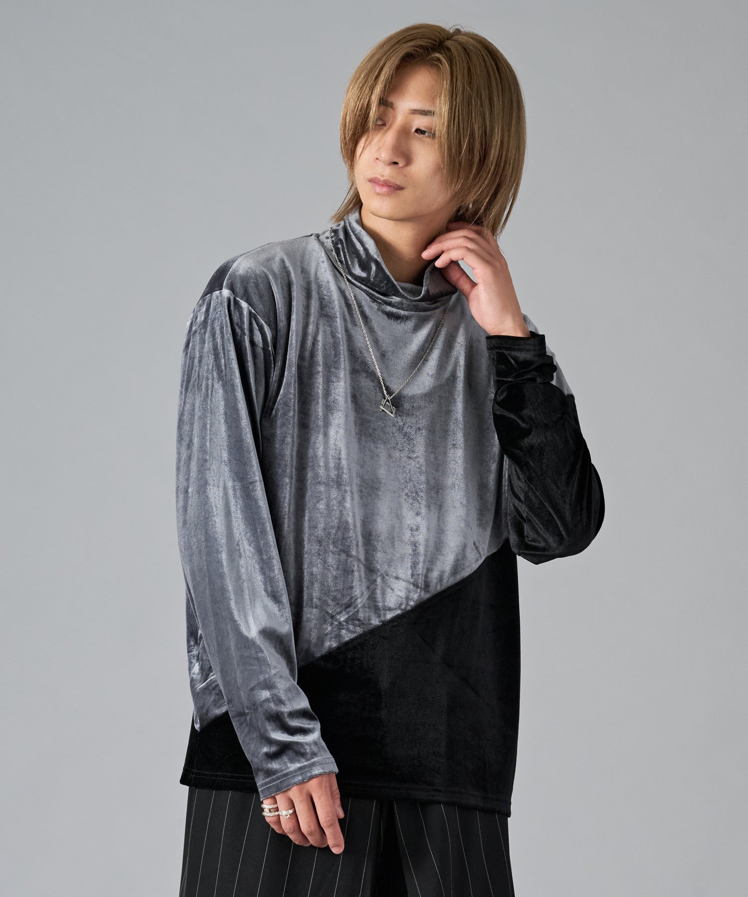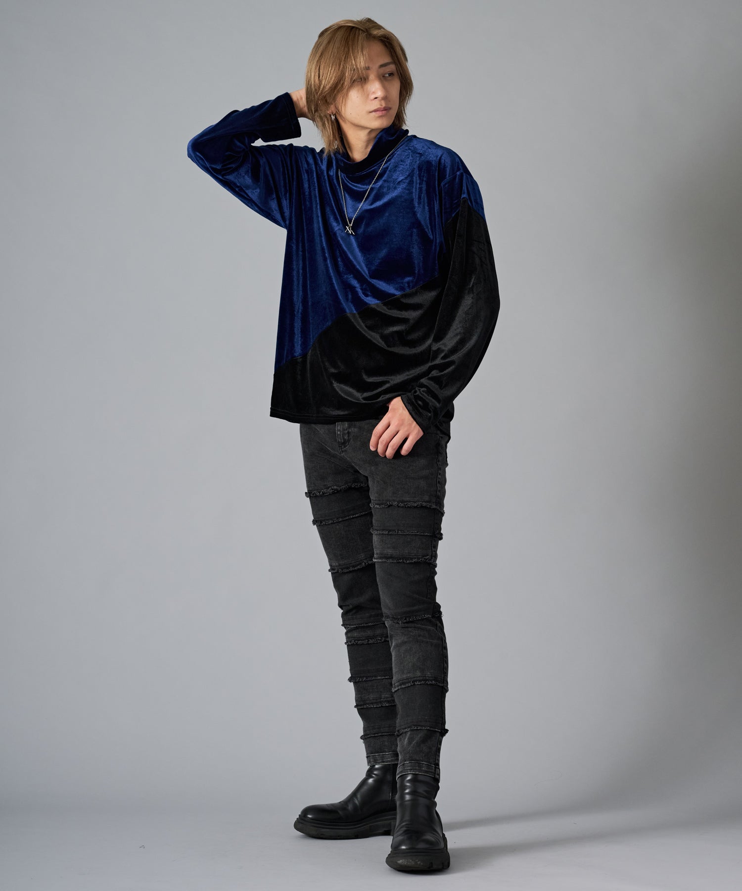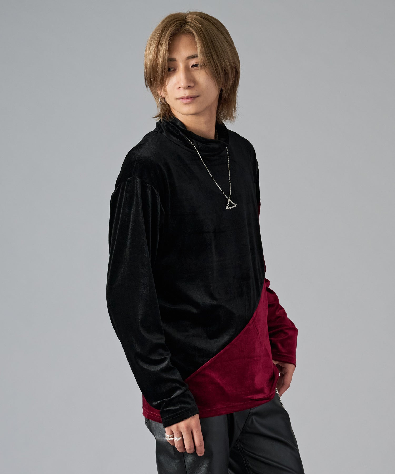 大胆な切り替えが印象的で一枚でも存在感あるロンTです
