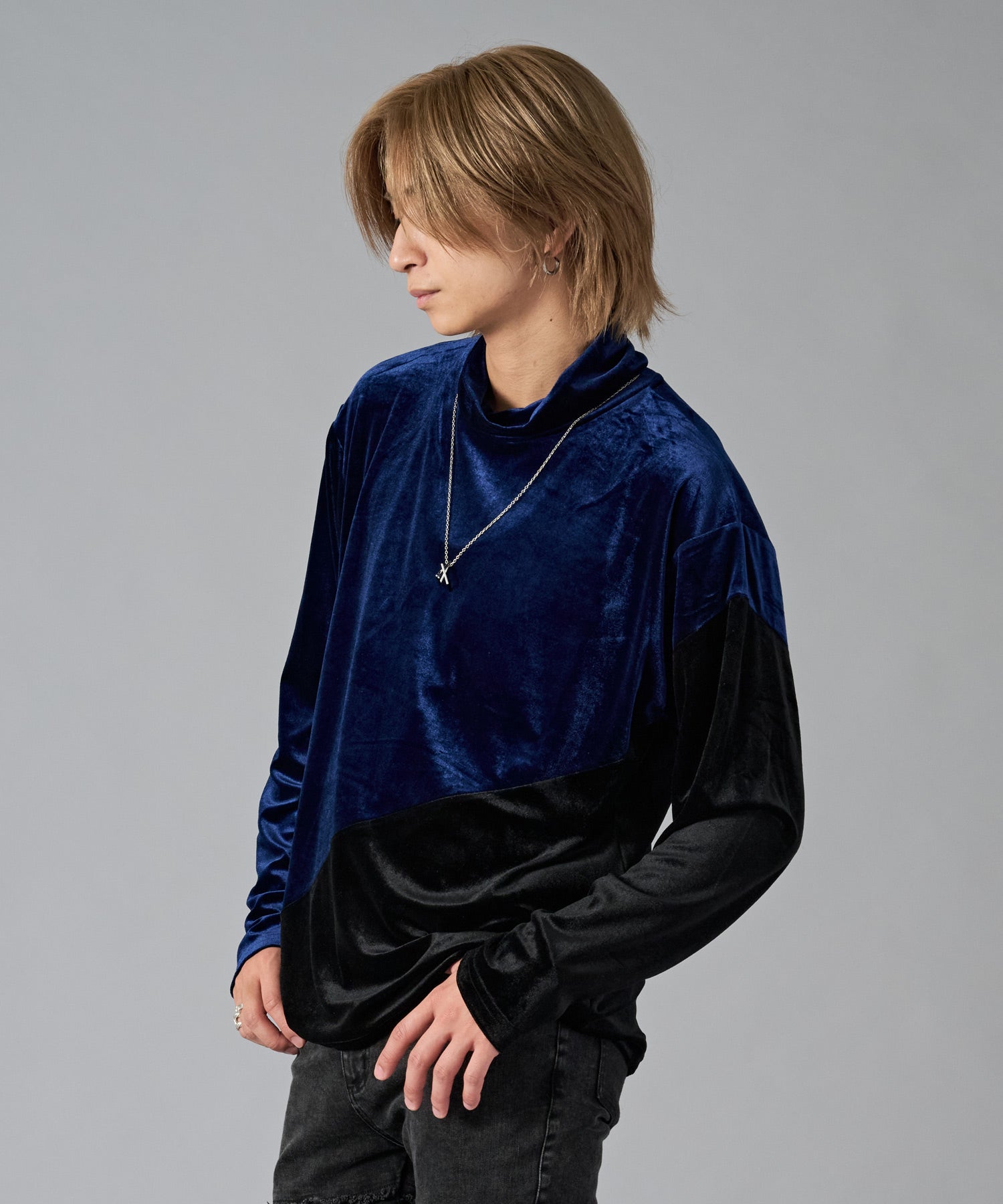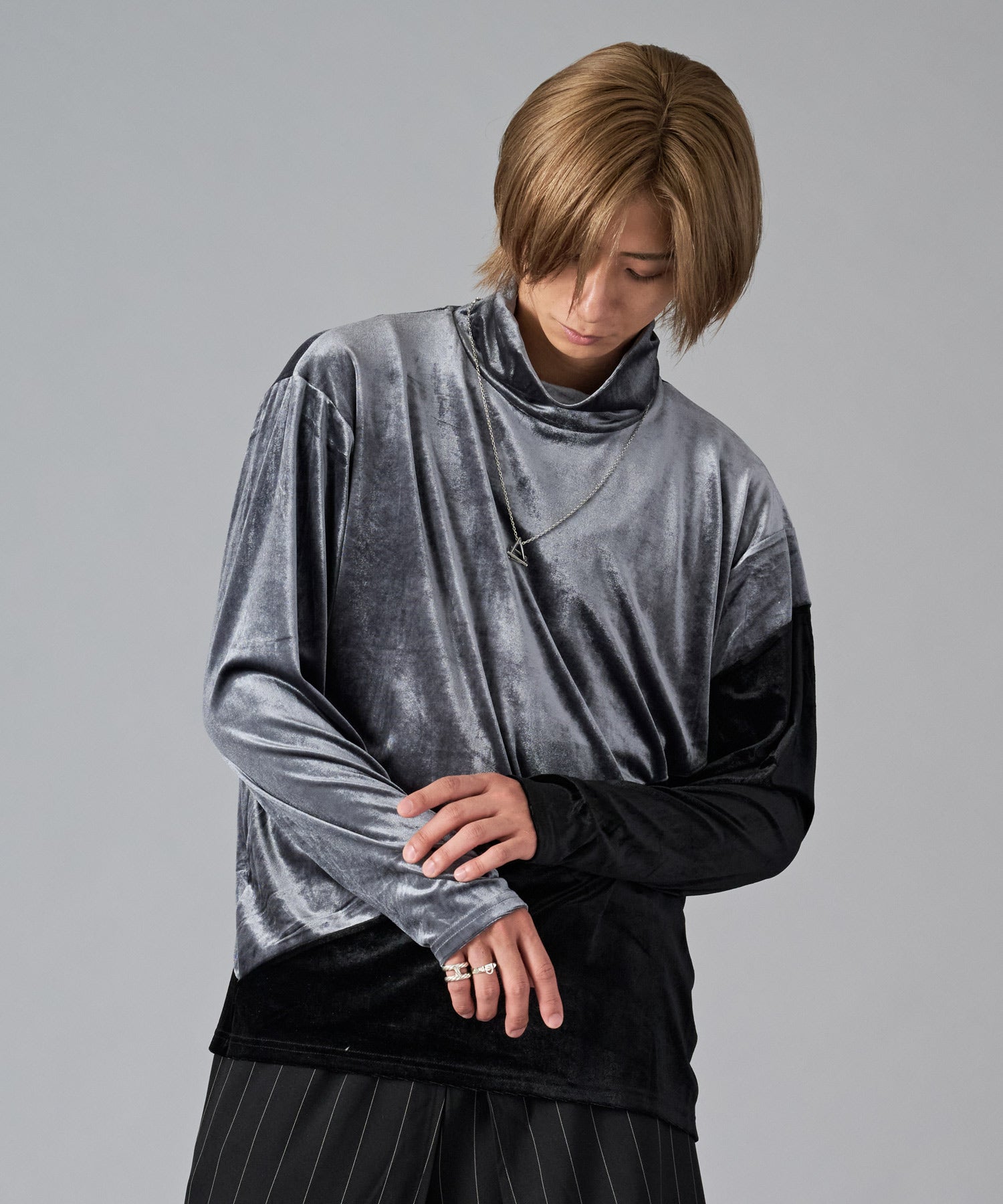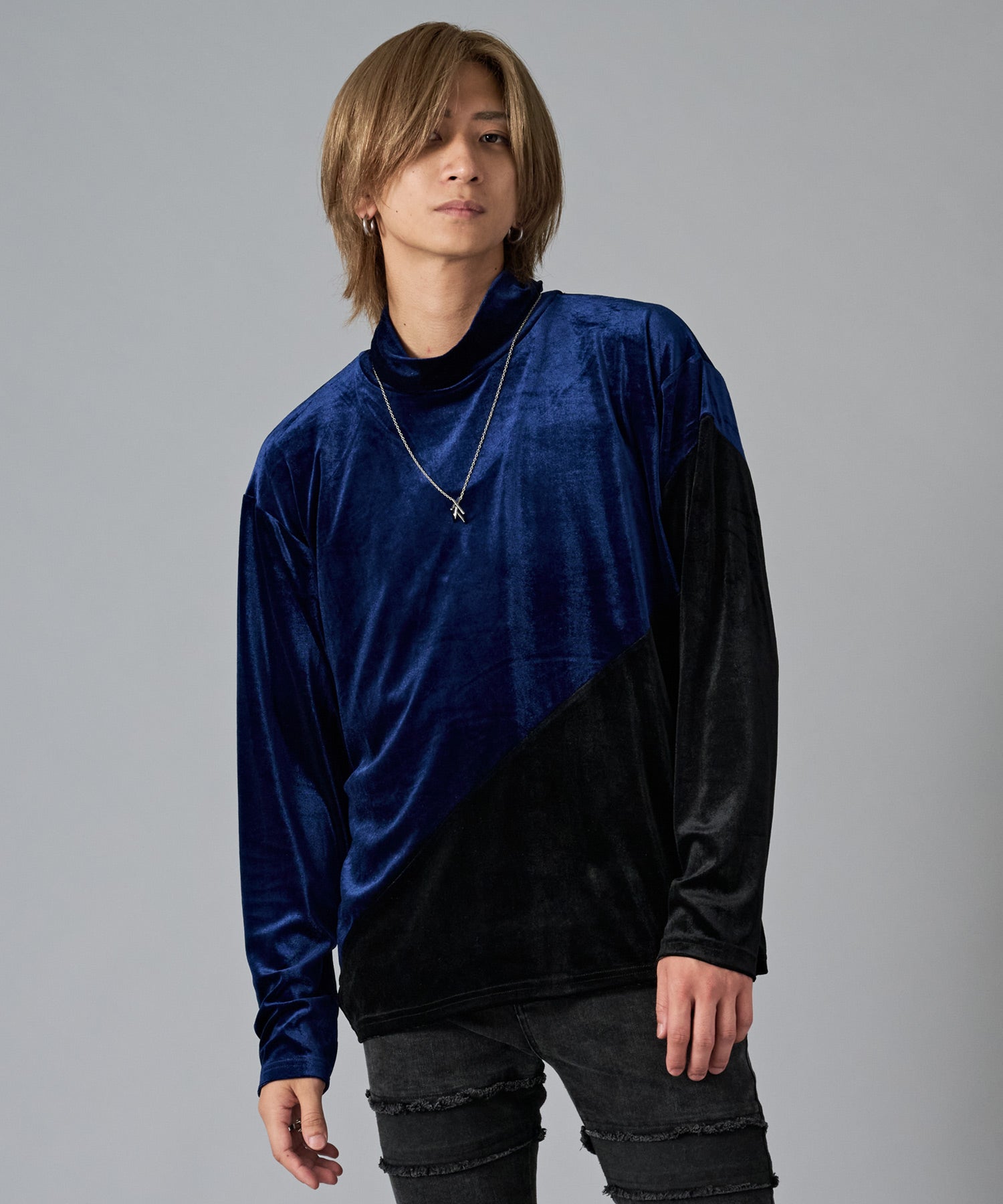 大胆な切り替えが印象的で一枚でも存在感あるロンTです