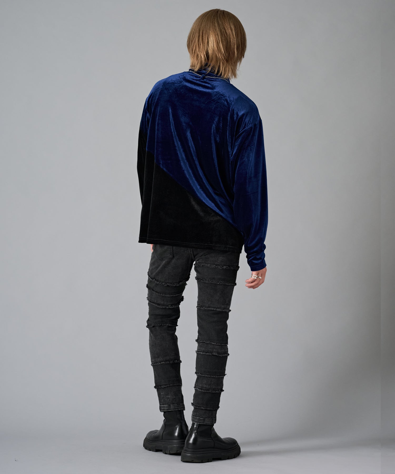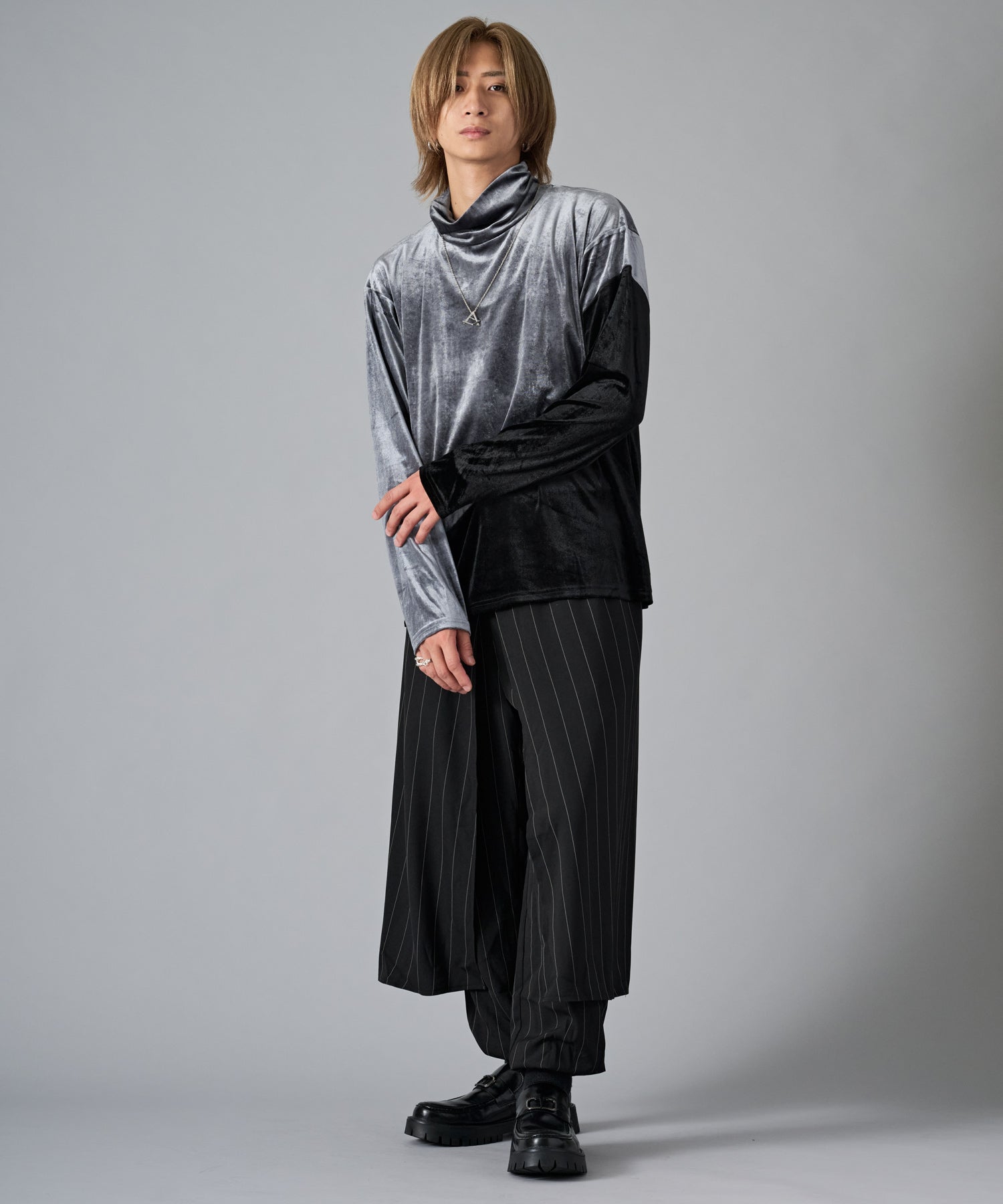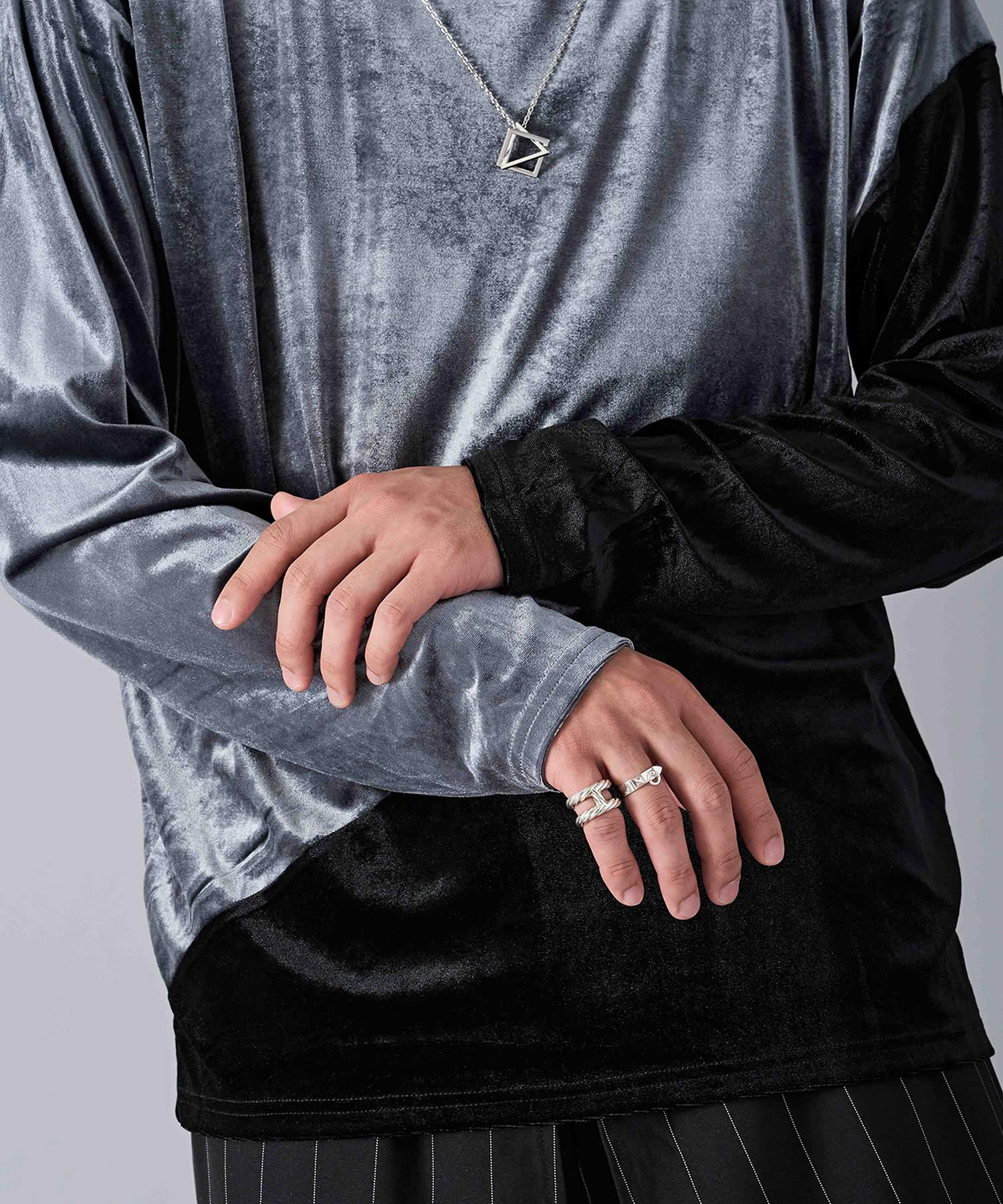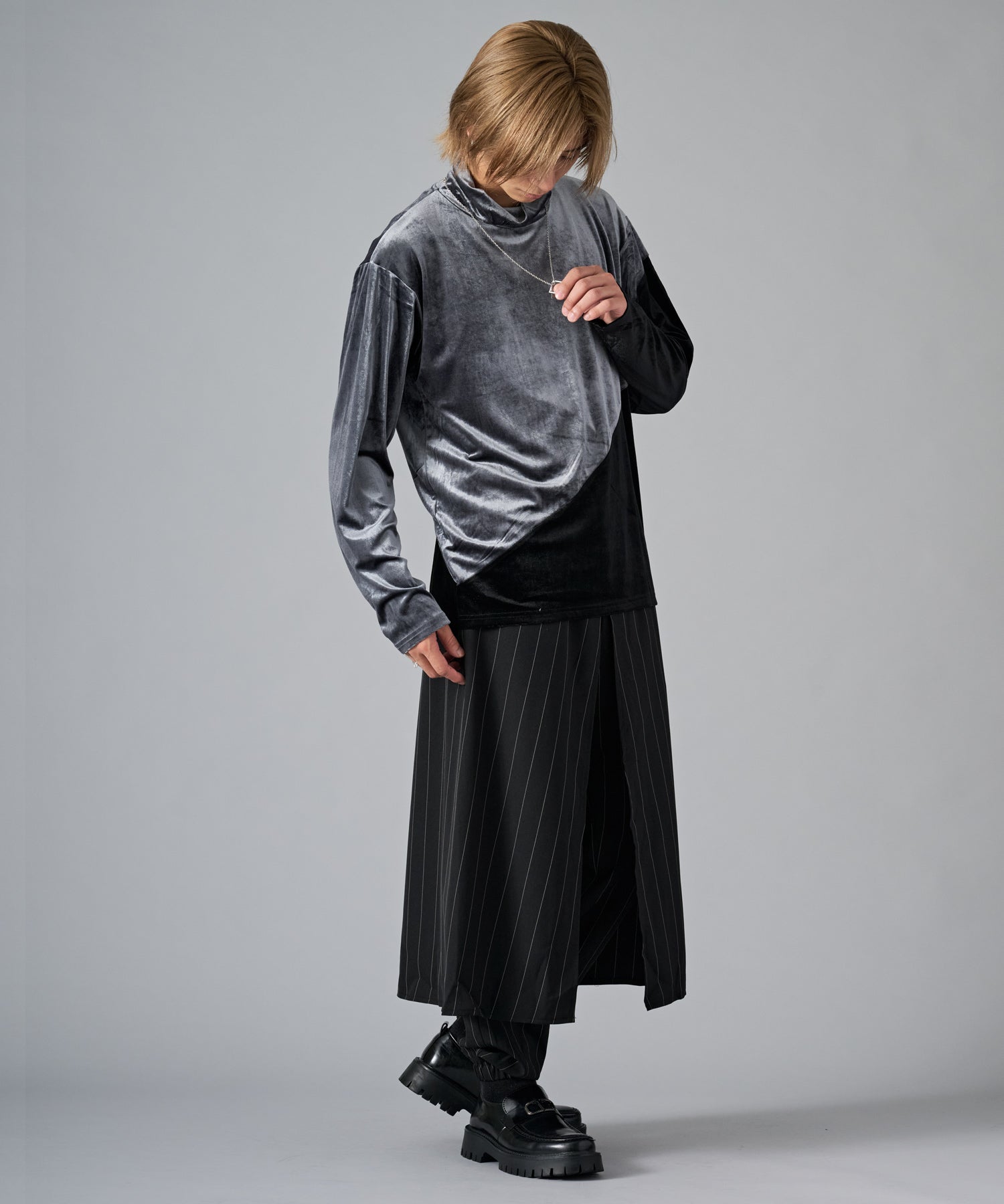 大胆な切り替えが印象的で一枚でも存在感あるロンTです
