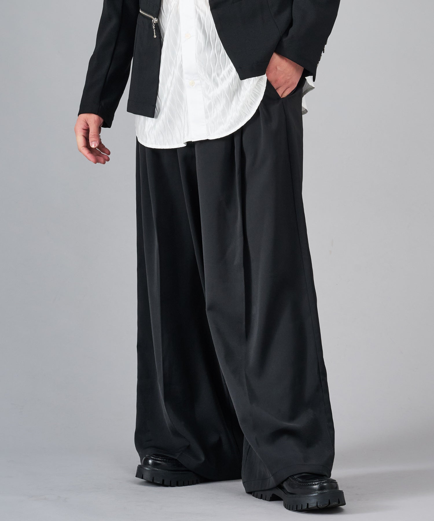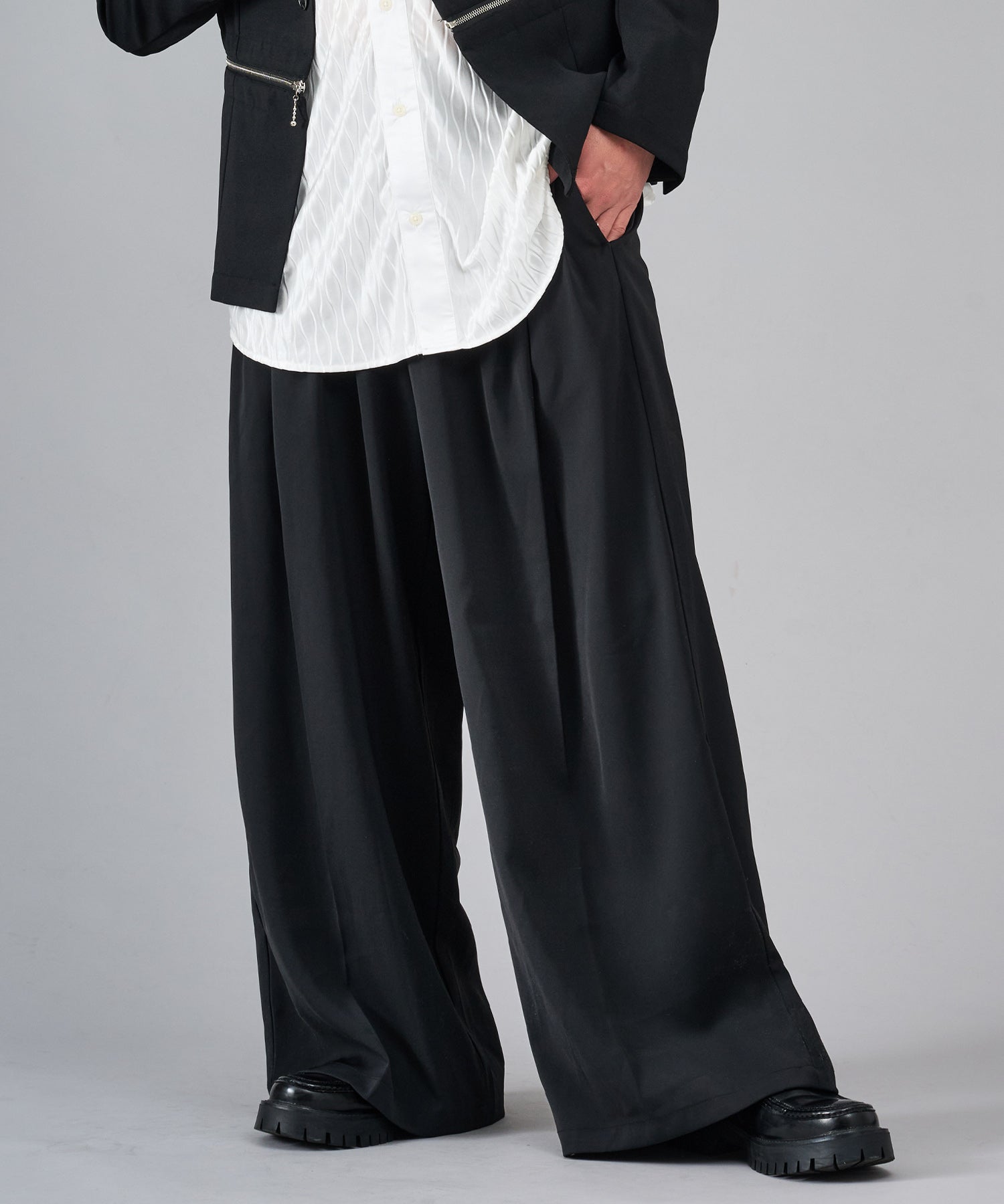 旬な着こなしができる極太のワイドシルエットパンツです