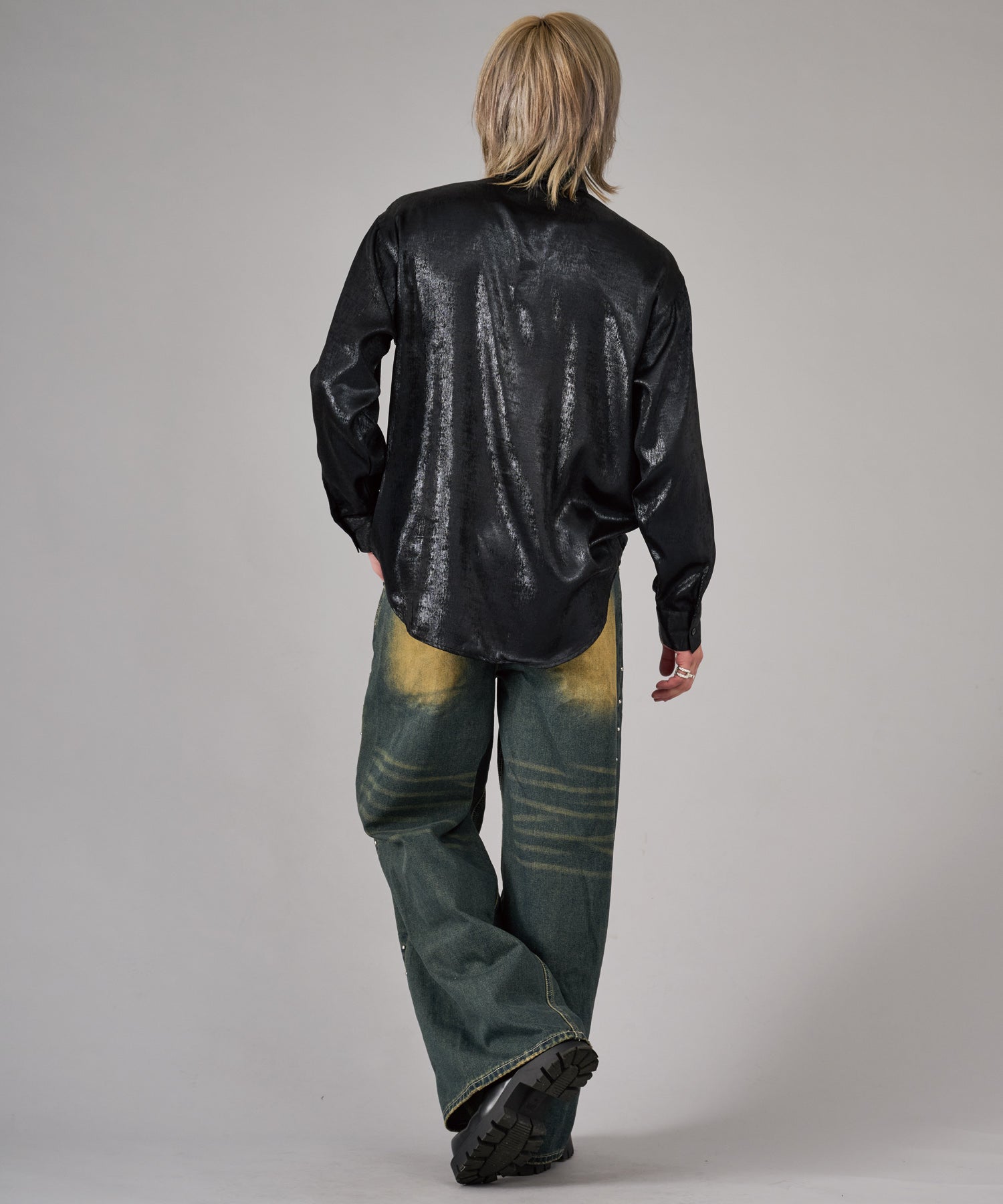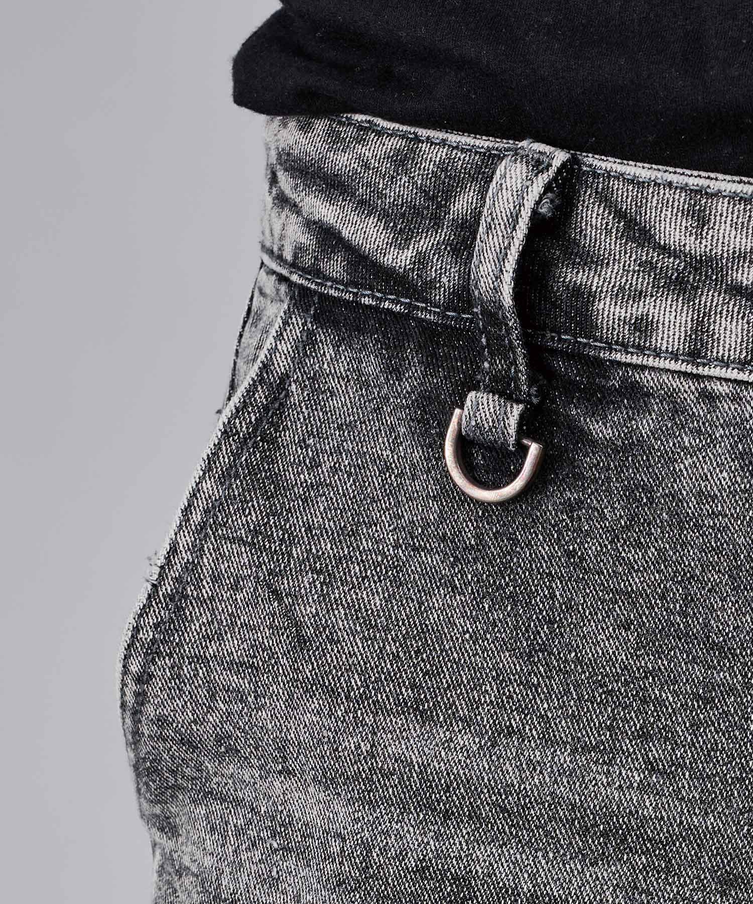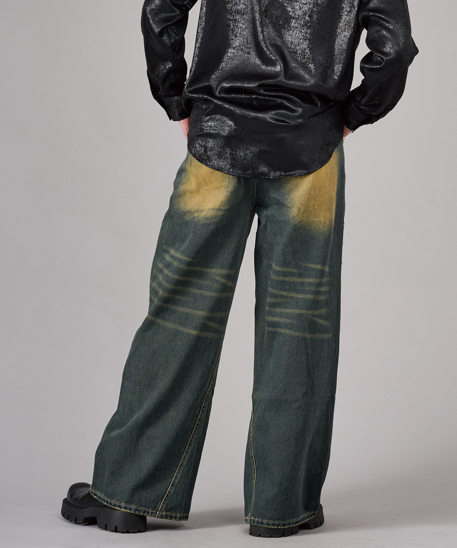 オーバーダイやケミカルなど幾重にも加工を施しているデニムの存在感が印象的で、フロント、バック各所の色落ちがどの角度から見てもパンツのアクセントになっています