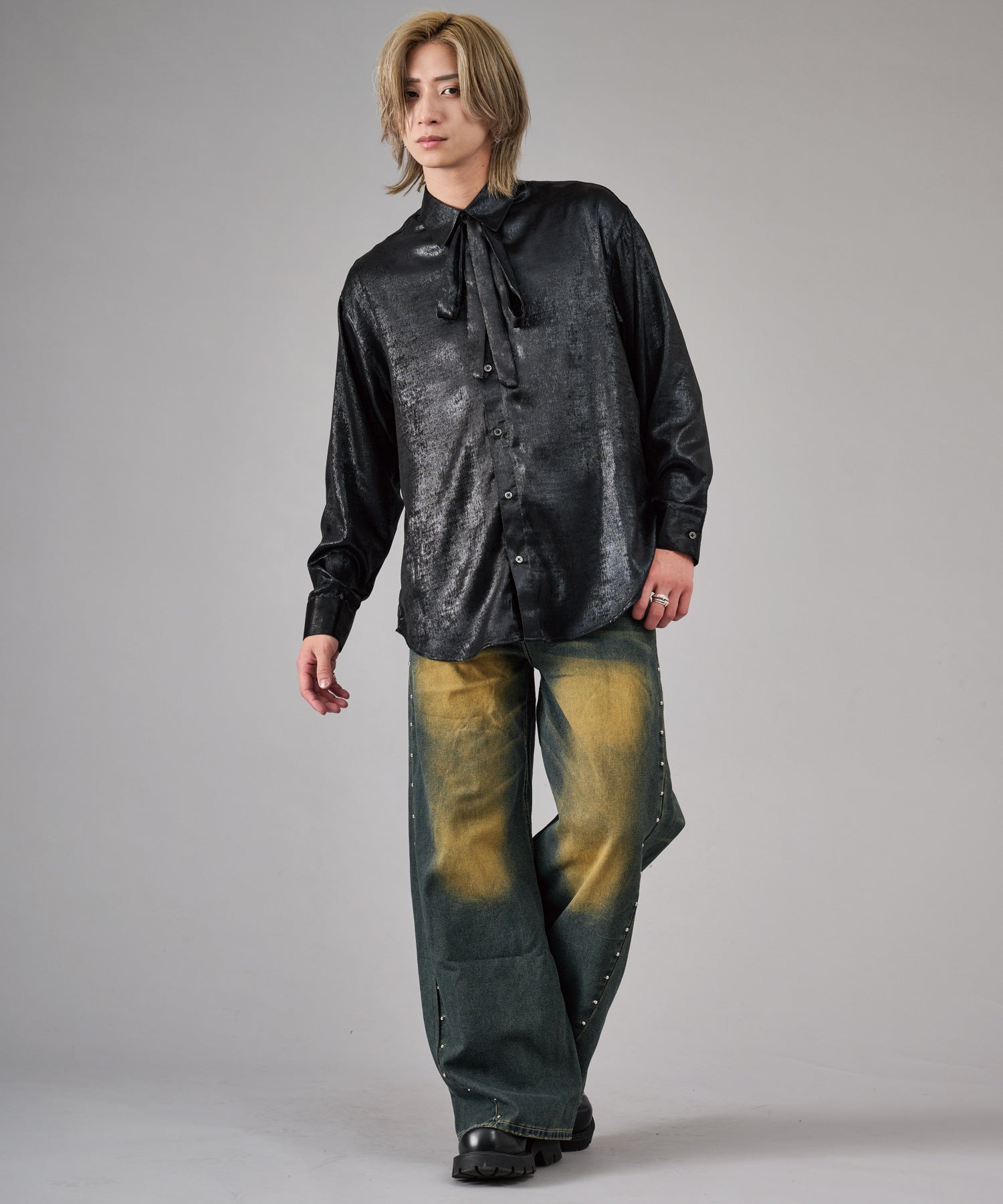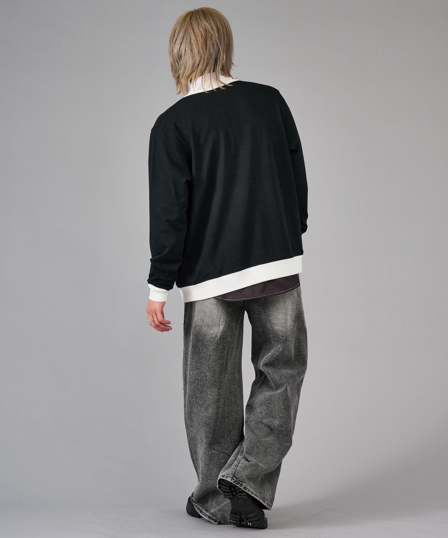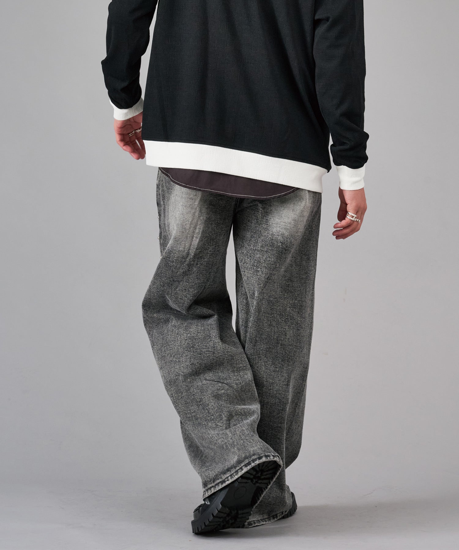 オーバーダイやケミカルなど幾重にも加工を施しているデニムの存在感が印象的で、フロント、バック各所の色落ちがどの角度から見てもパンツのアクセントになっています