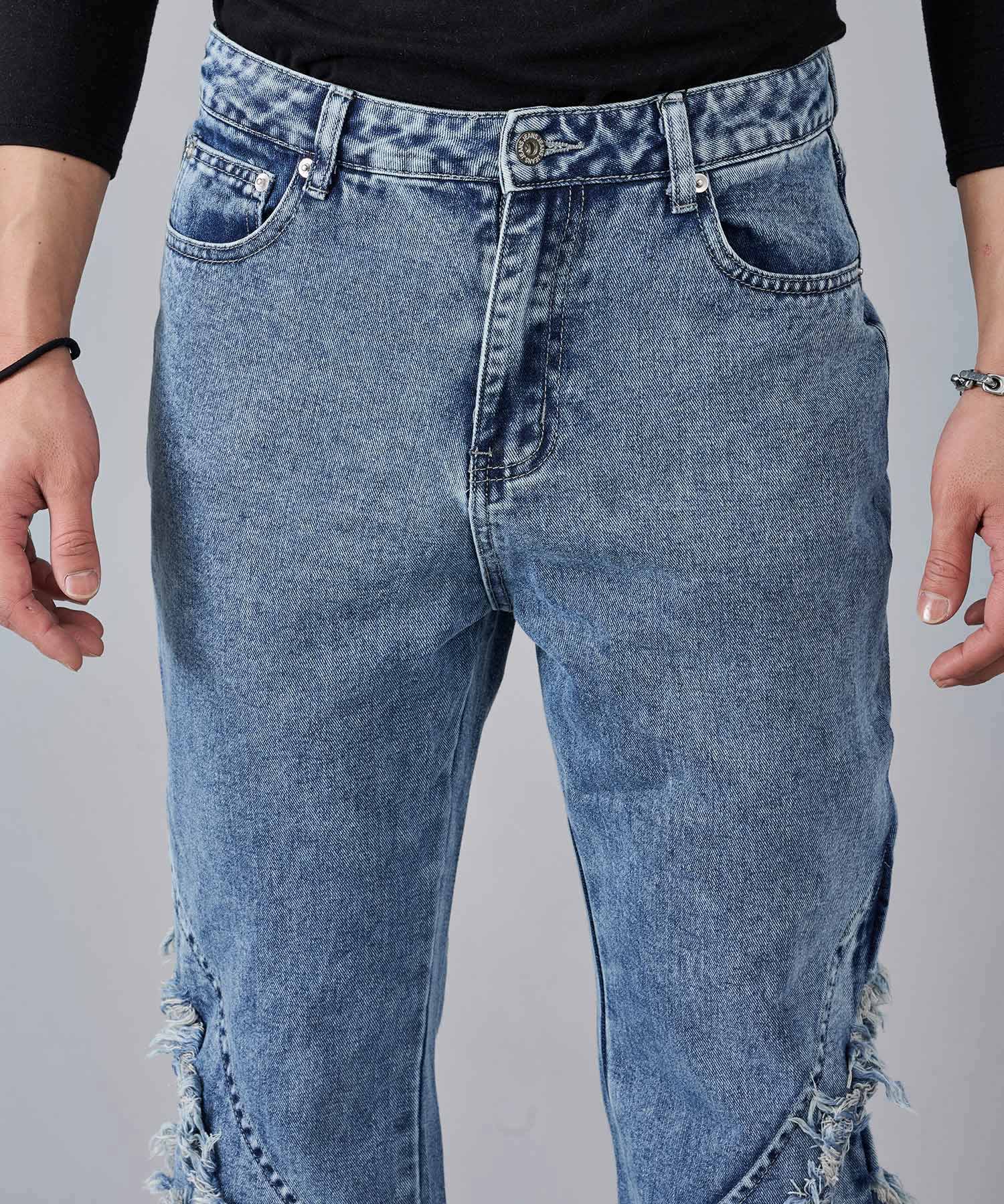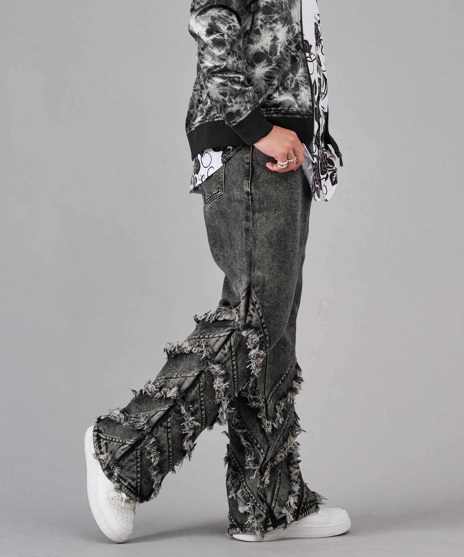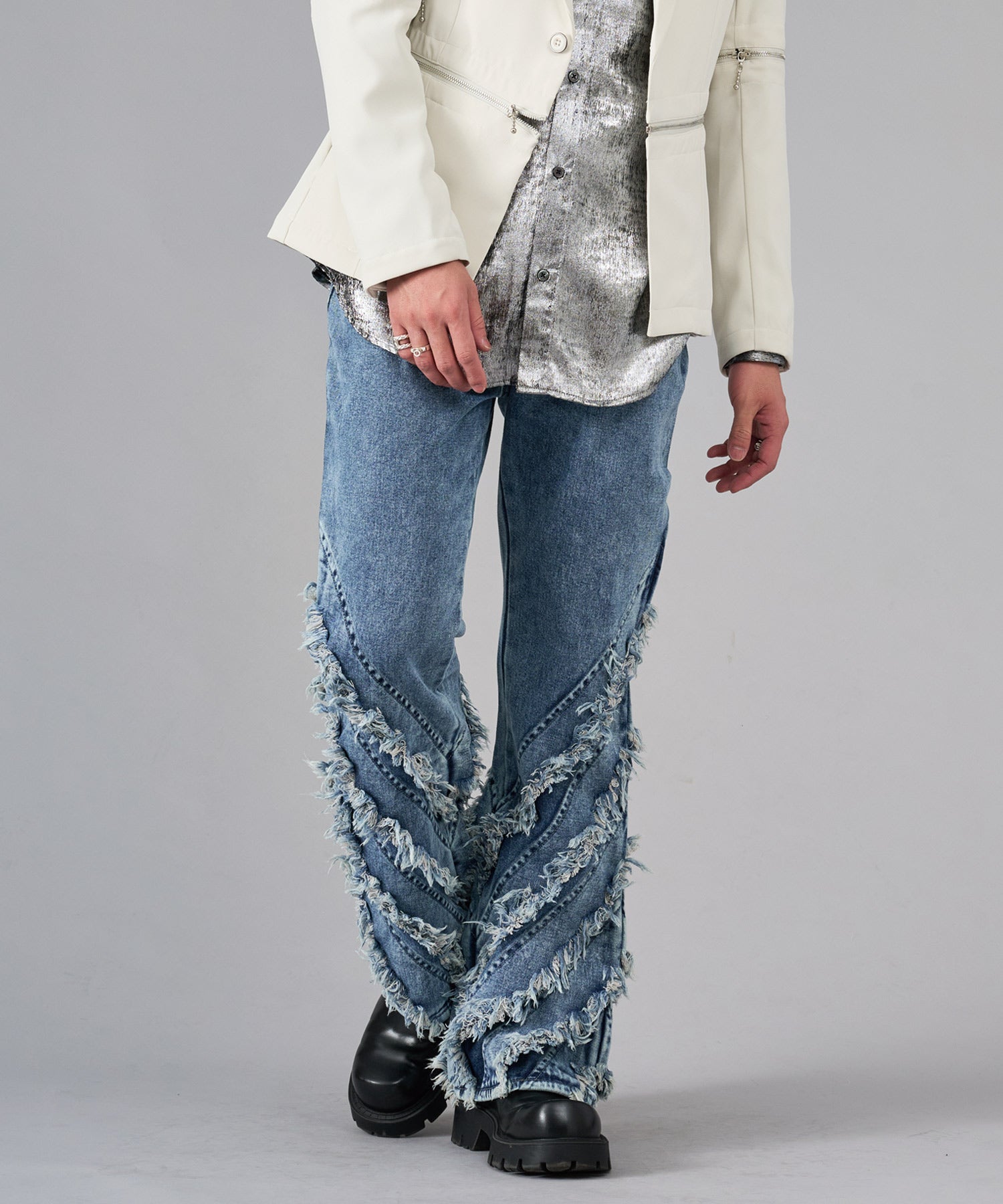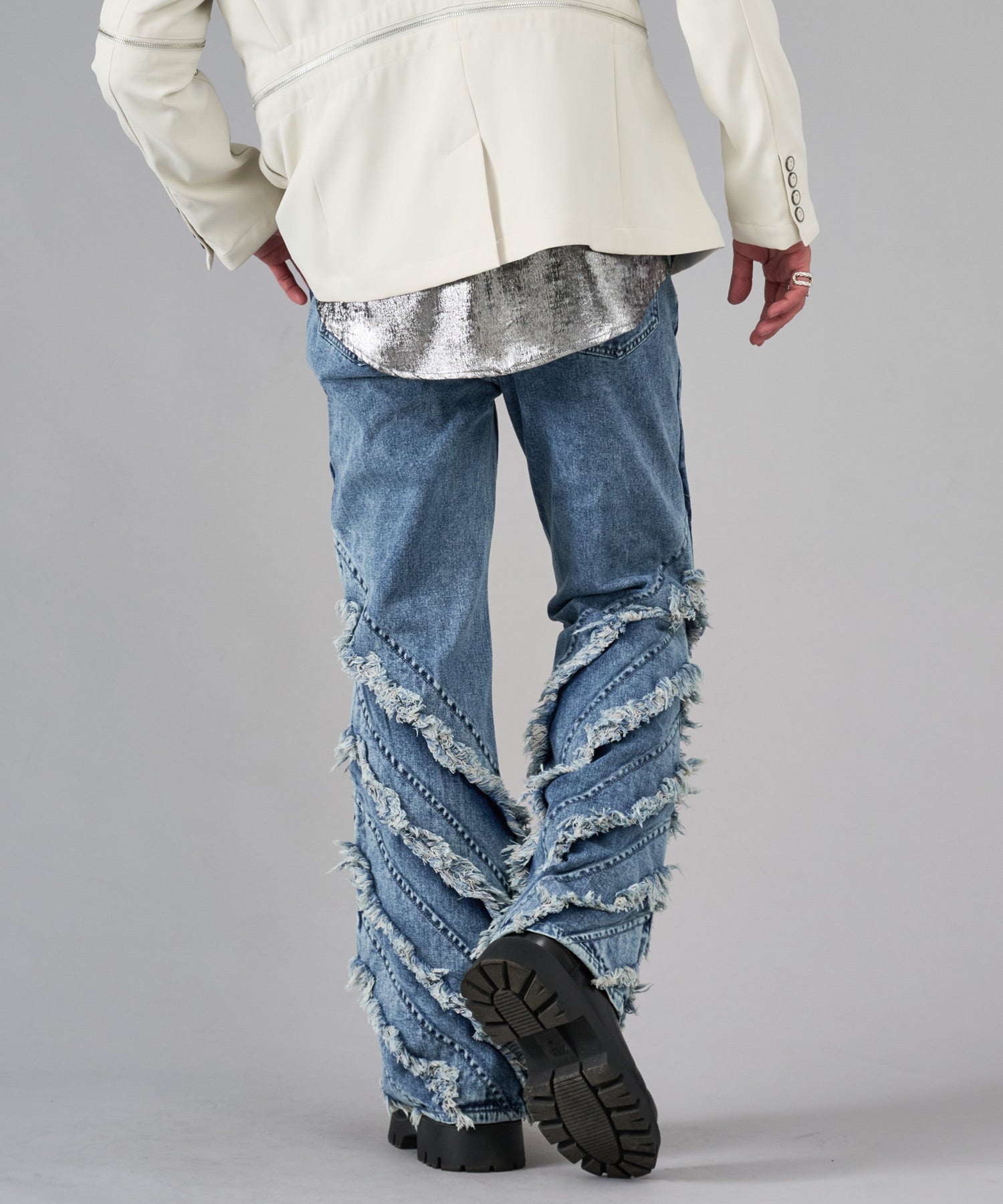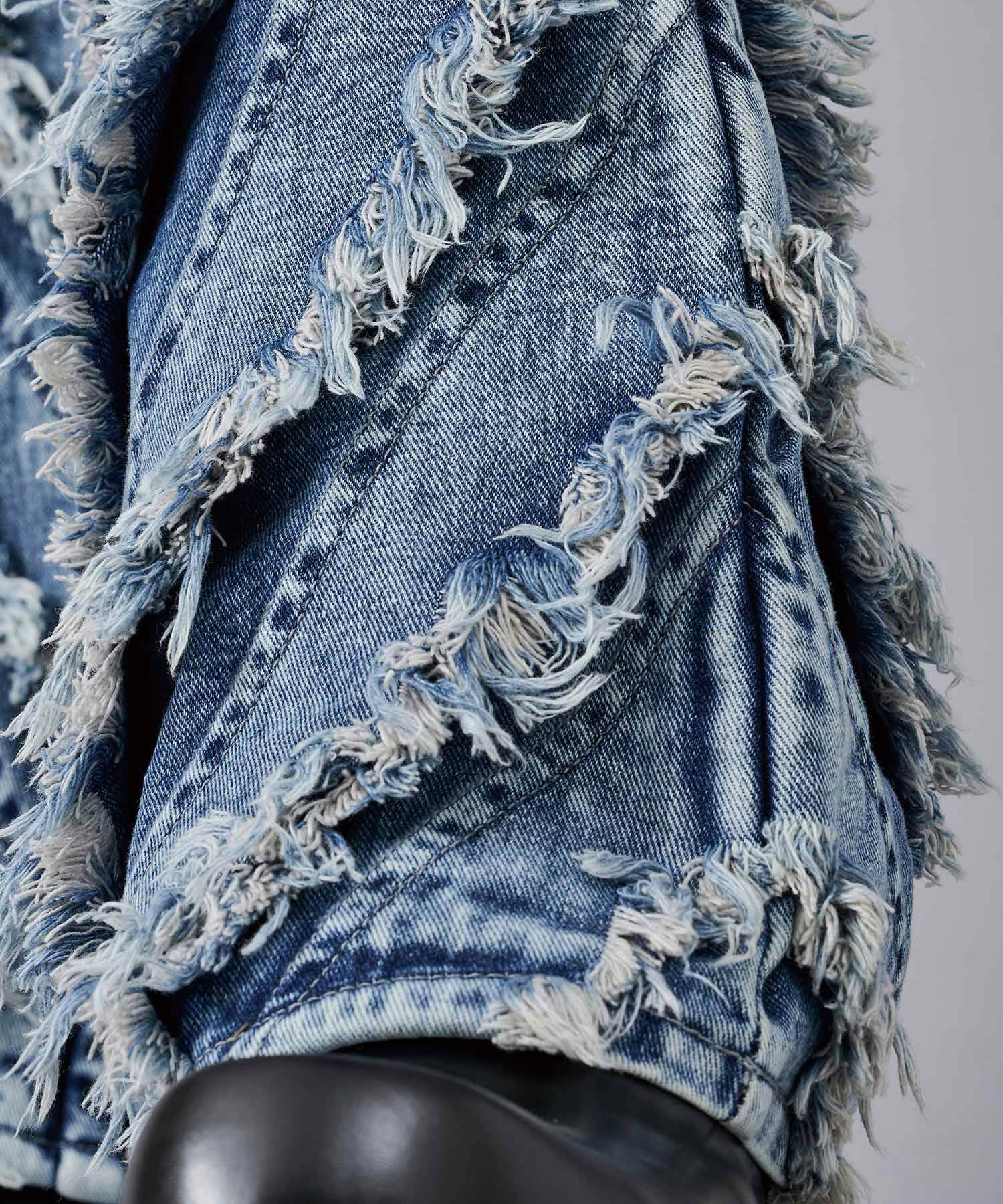 デニムのケミカルウォッシュは今正にトレンドの素材で、フリンジがより引き立つピッタリの素材です