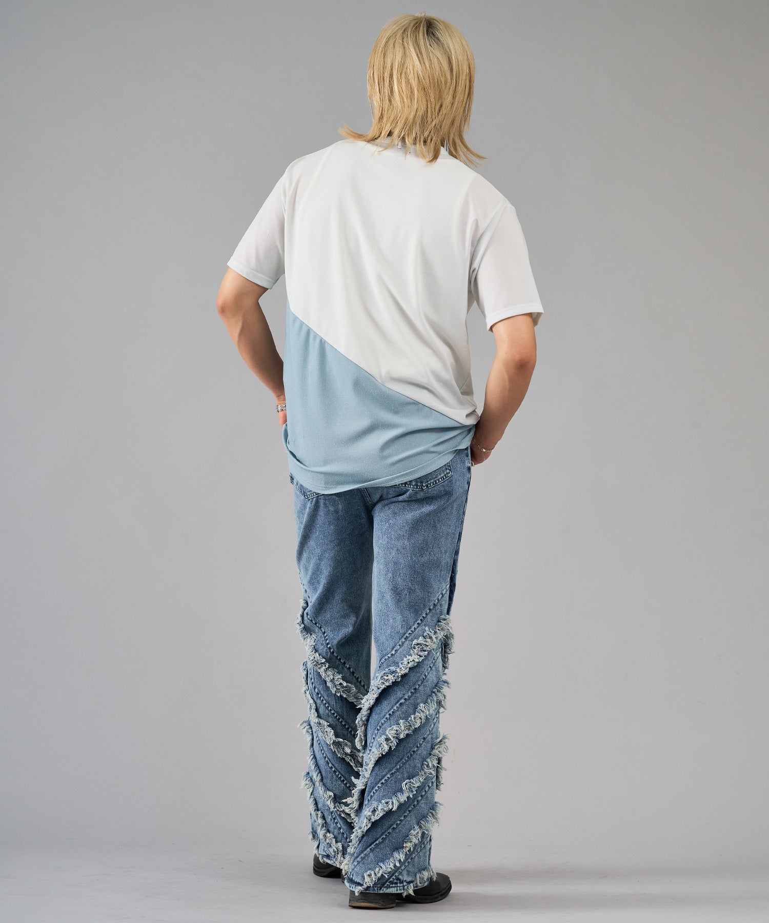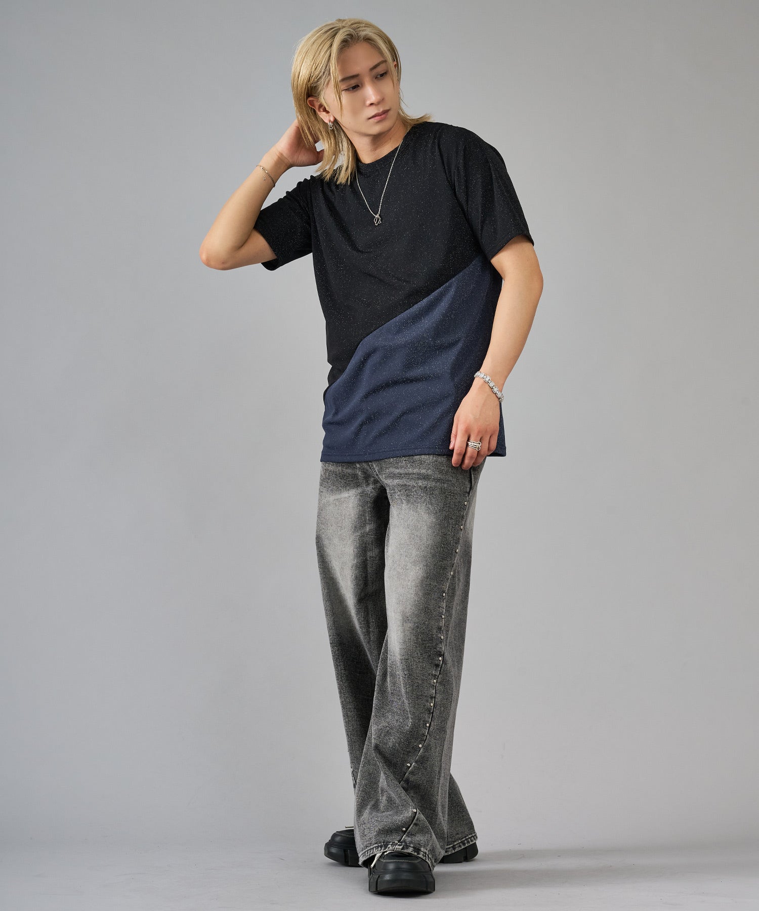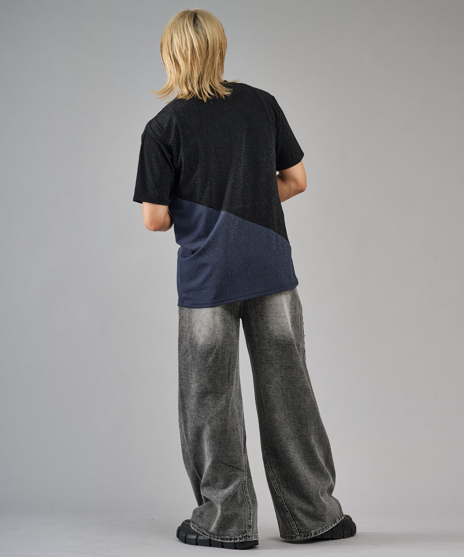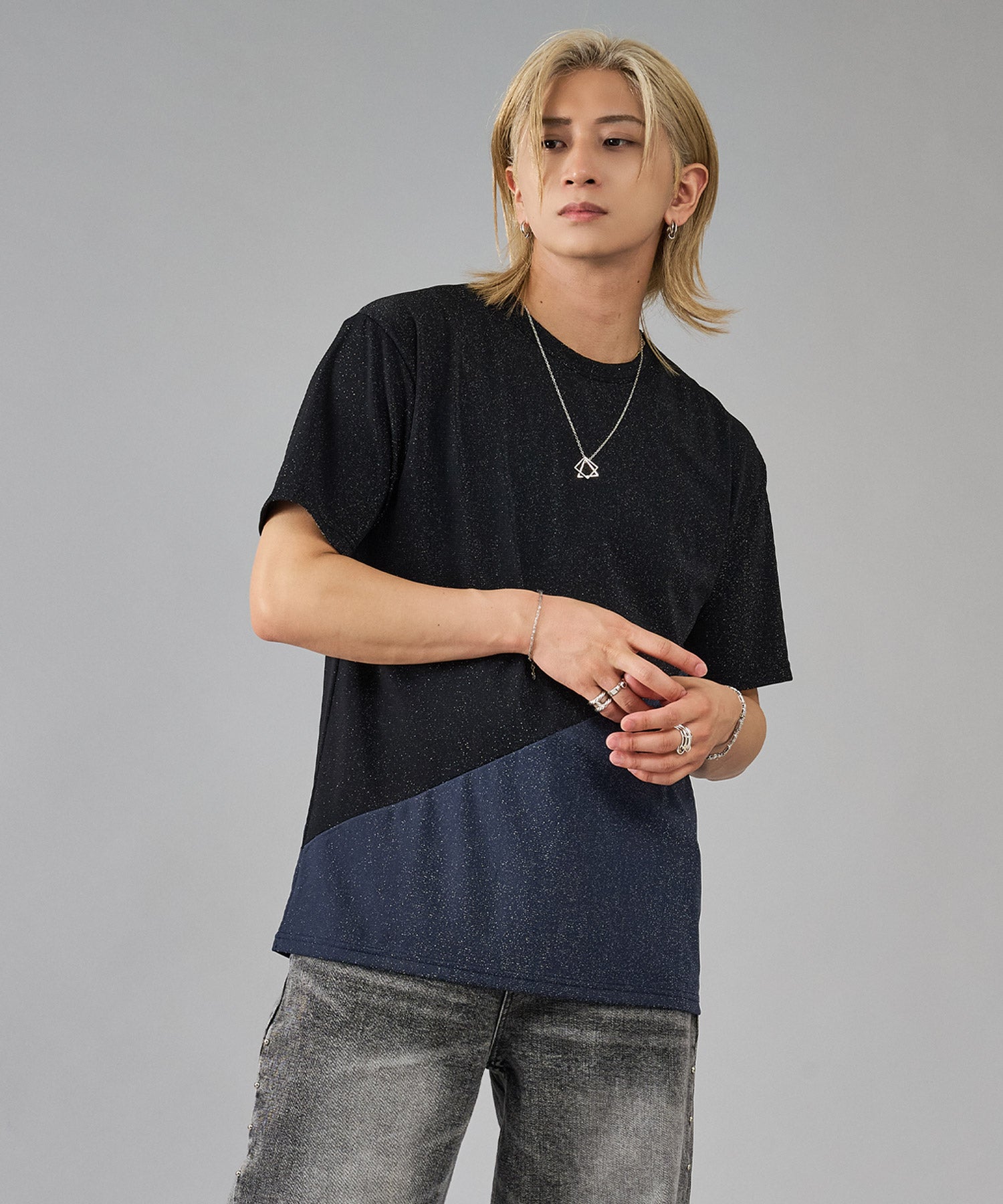 表面がパール調にキラキラし生地を配色で切り替えたデザイン