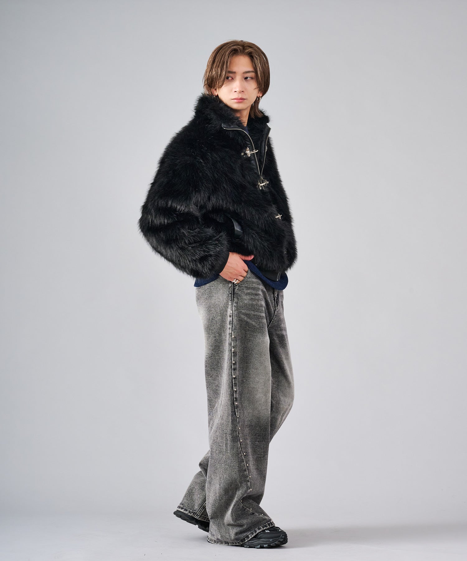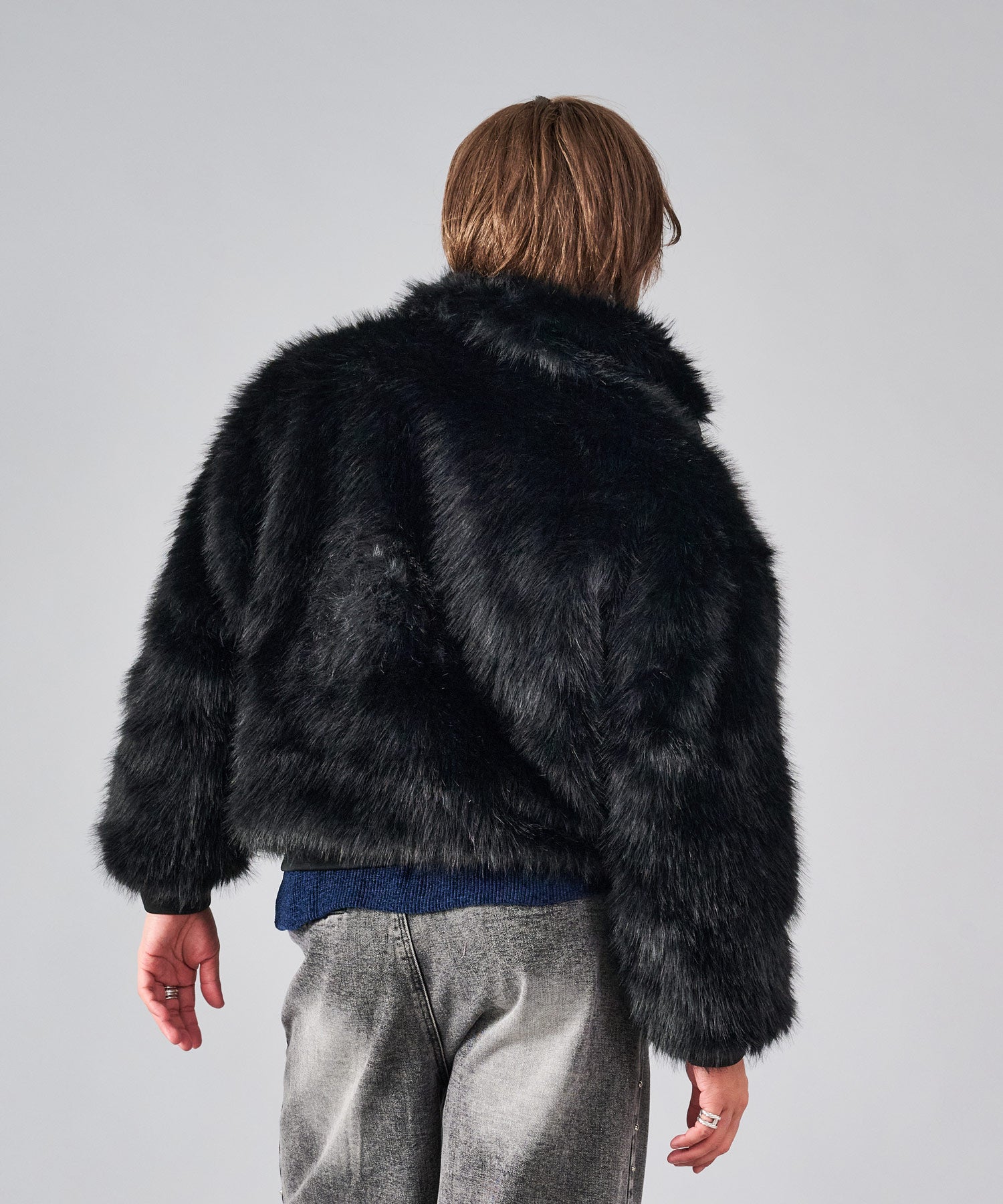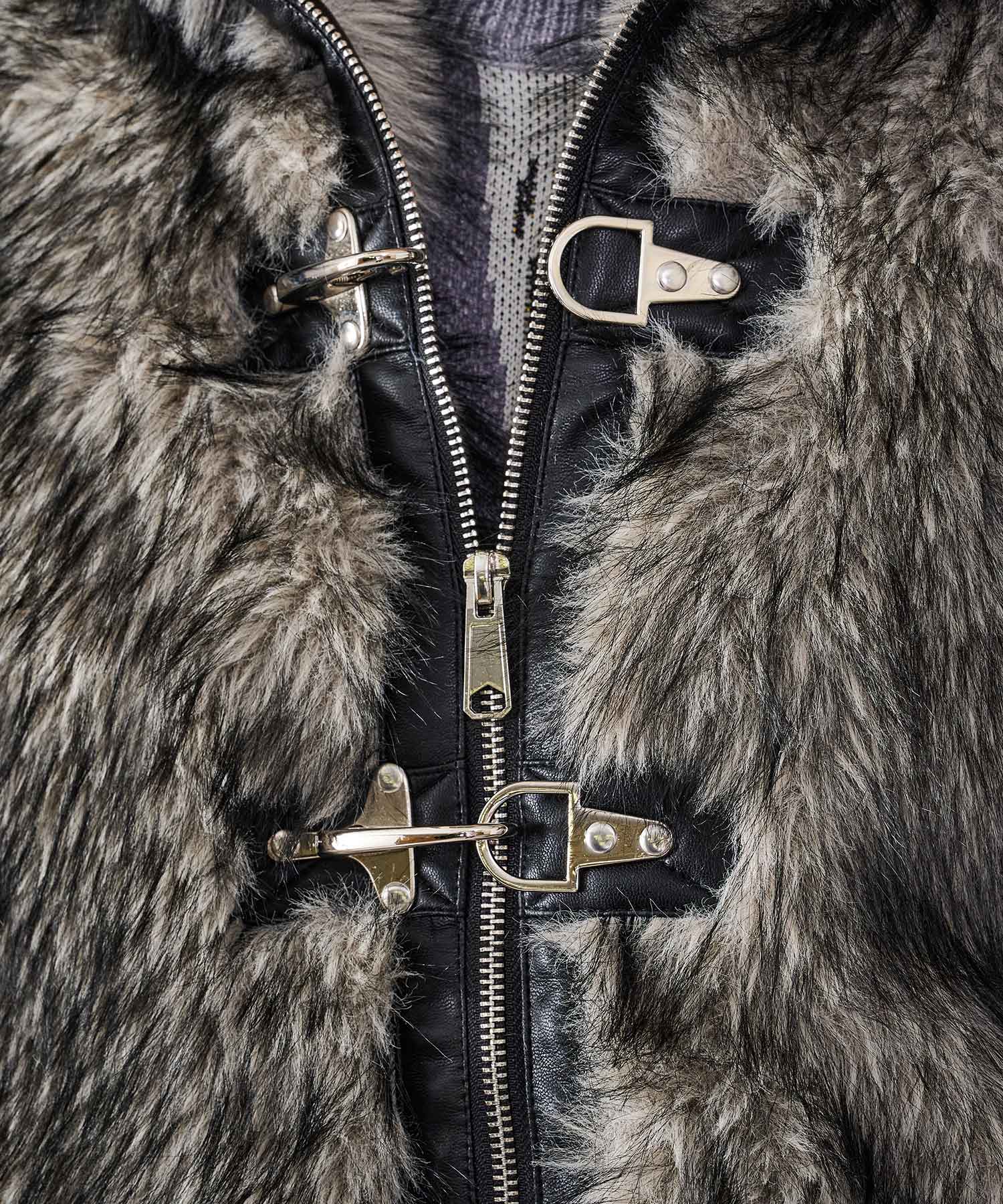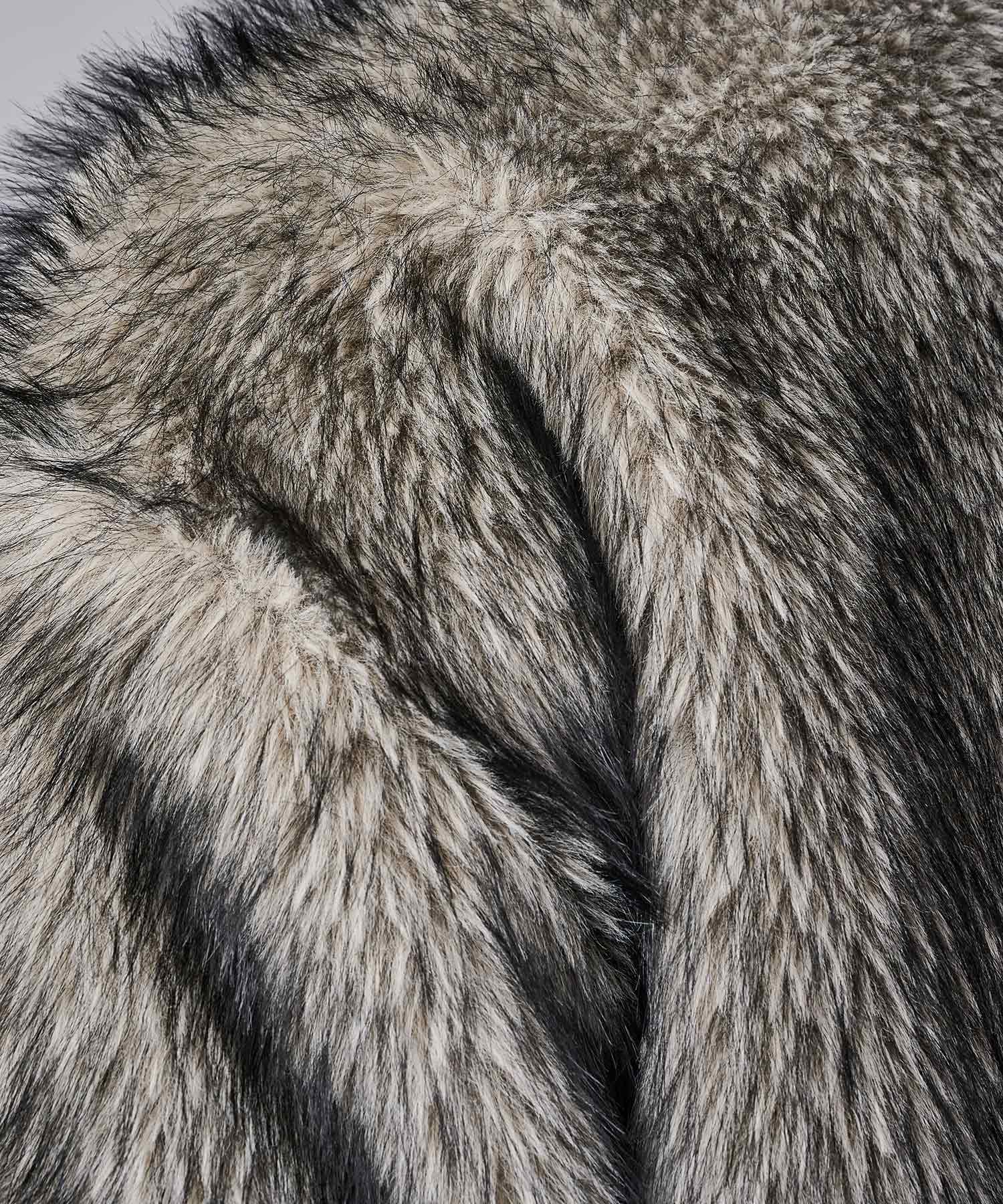 毛足の長いストレートファーを使用し、発色や風合いがフェイクとは感じさせない程の上質感を醸し出しています。そのエアリーな風合いだからこそ軽くて暖かく羽織れます。