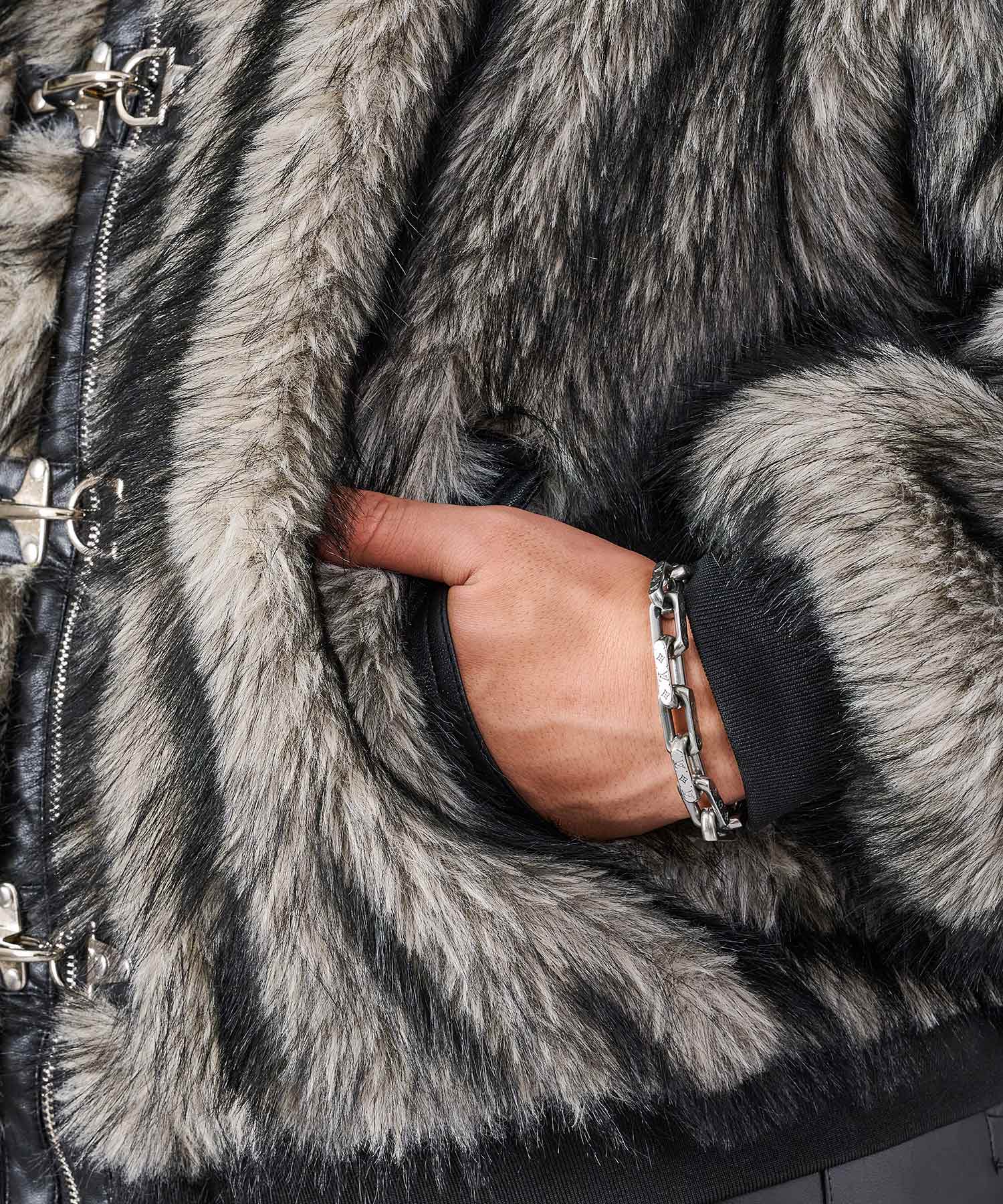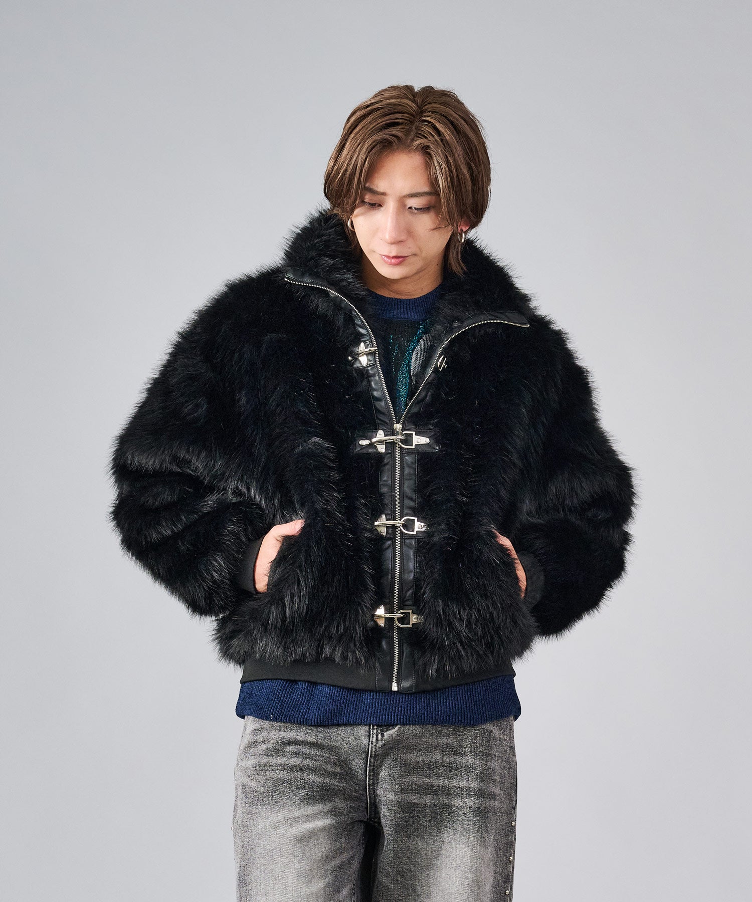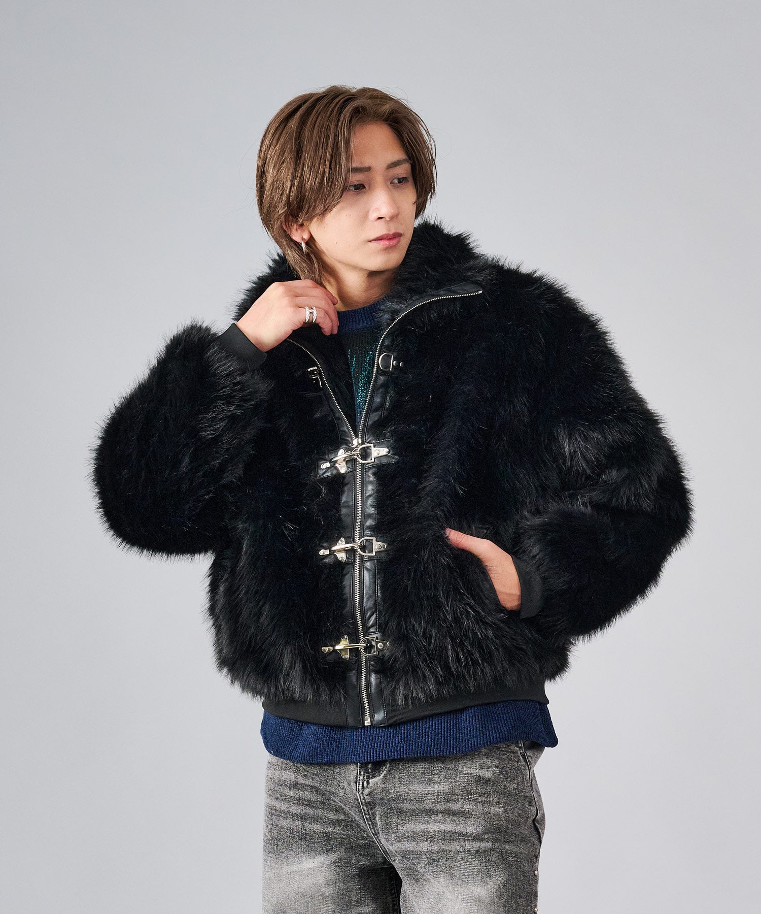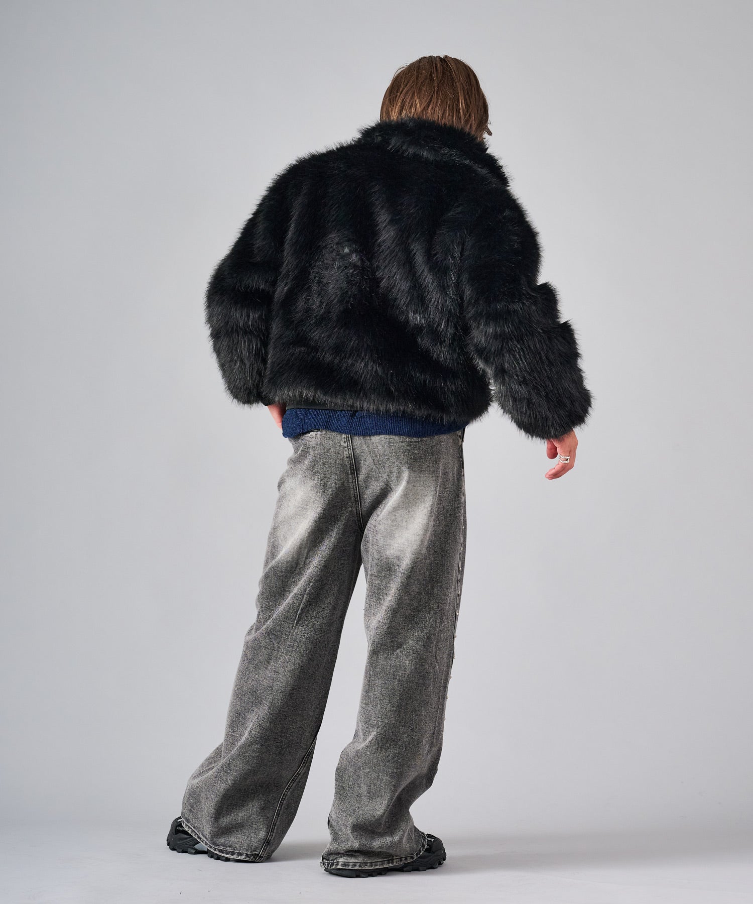 毛足の長いストレートファーを使用し、発色や風合いがフェイクとは感じさせない程の上質感を醸し出しています。そのエアリーな風合いだからこそ軽くて暖かく羽織れます。