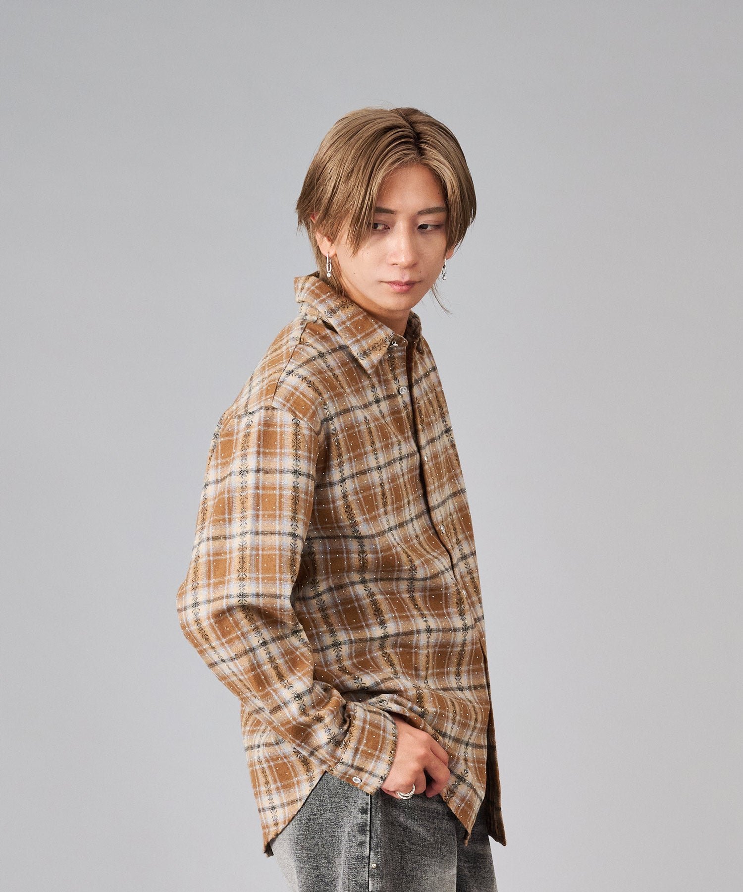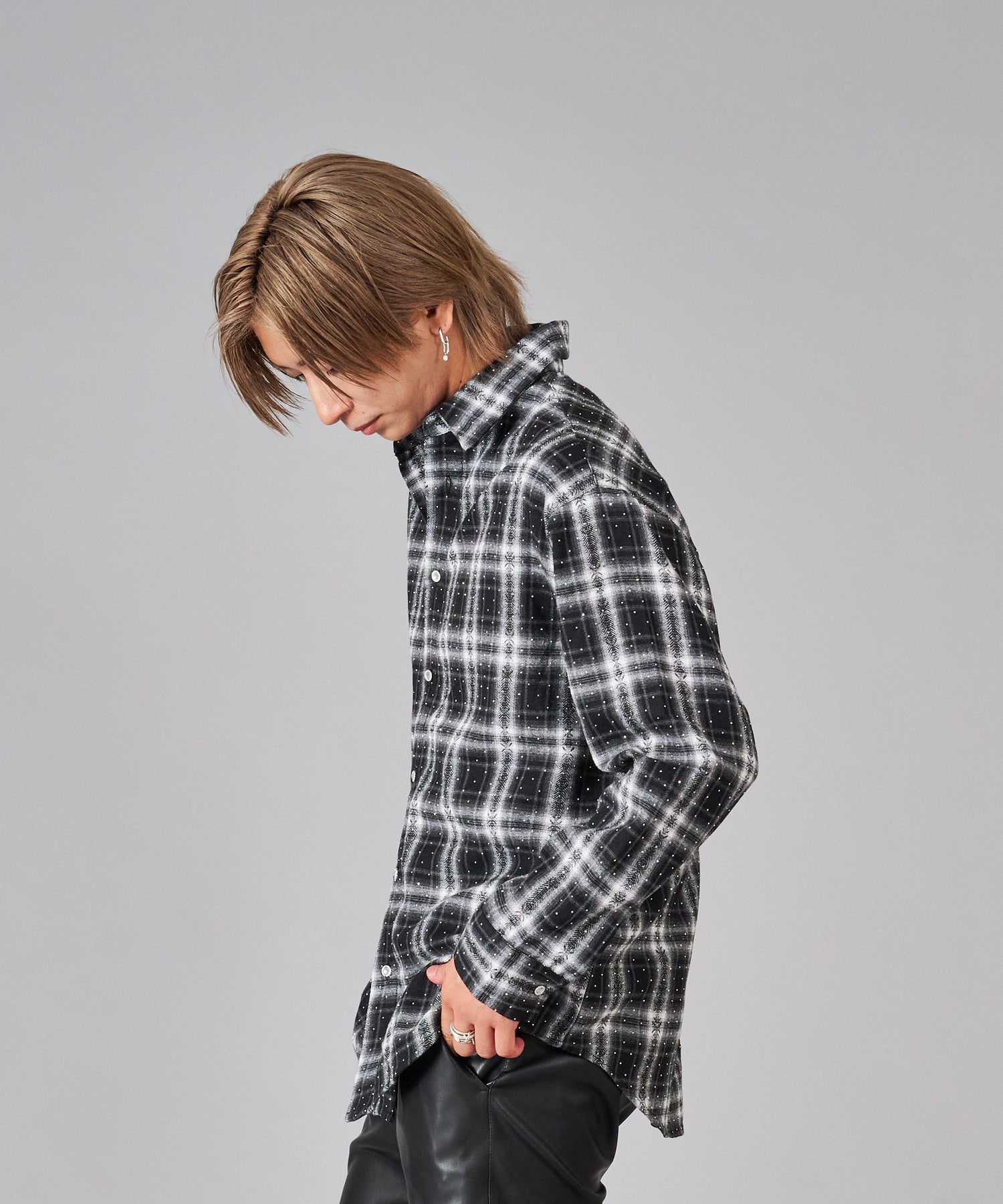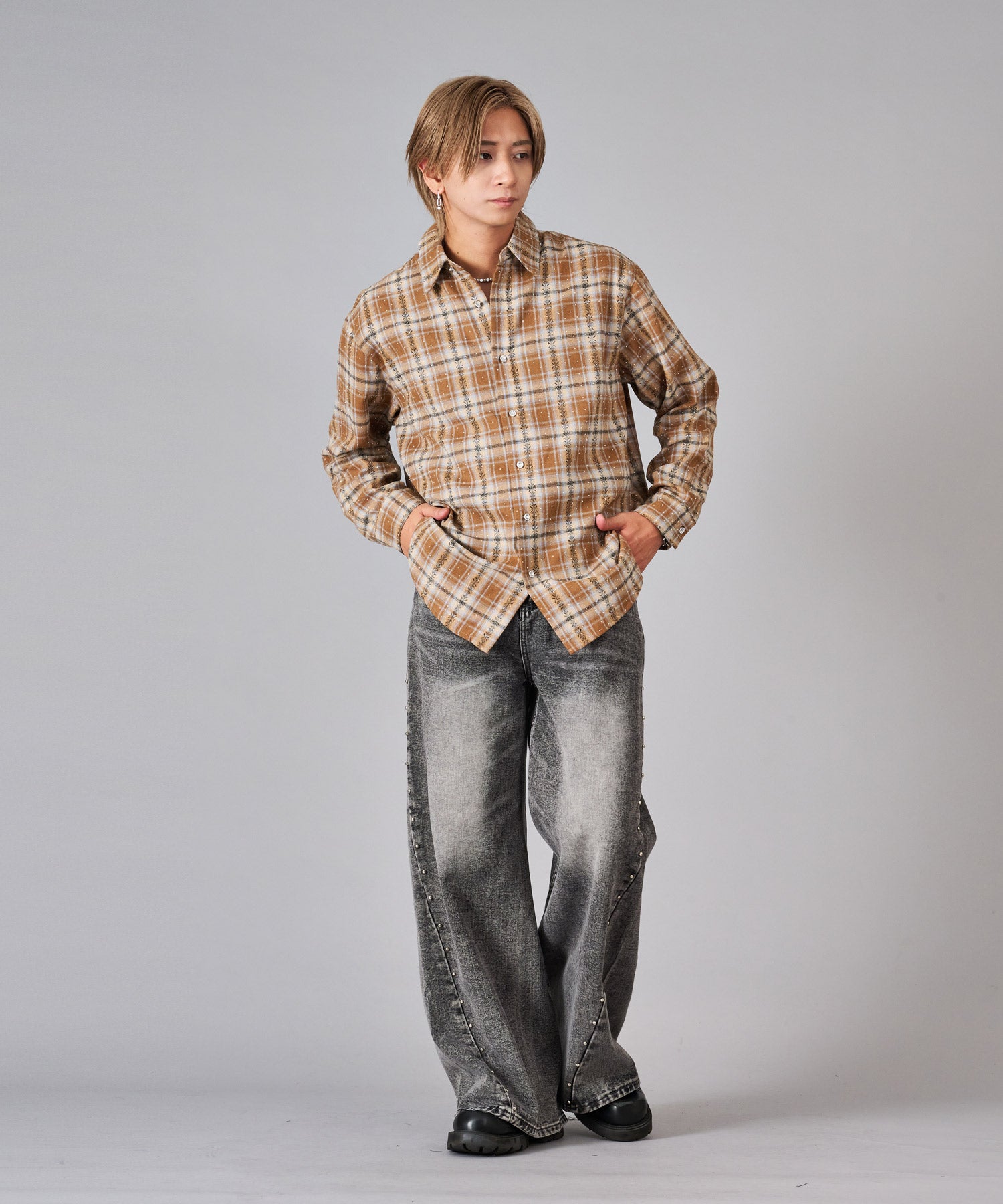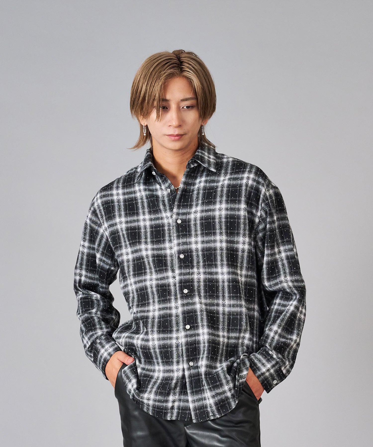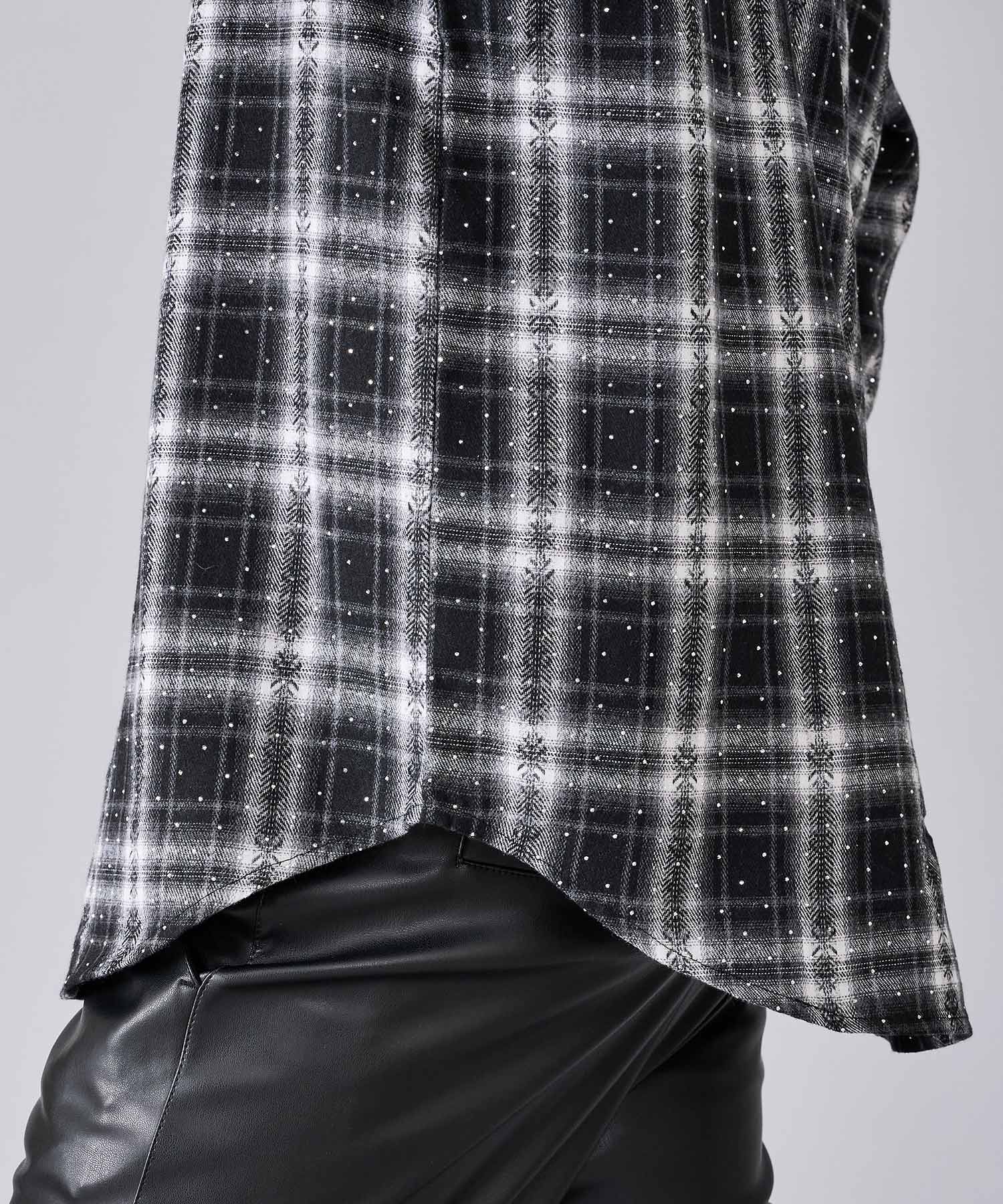 ウィンドウペンを重ねたオーセンティックなチェック柄。綿とポリエステルの混紡素材なので、カジュアルさとしなやかさがあり、優しい肌触り。