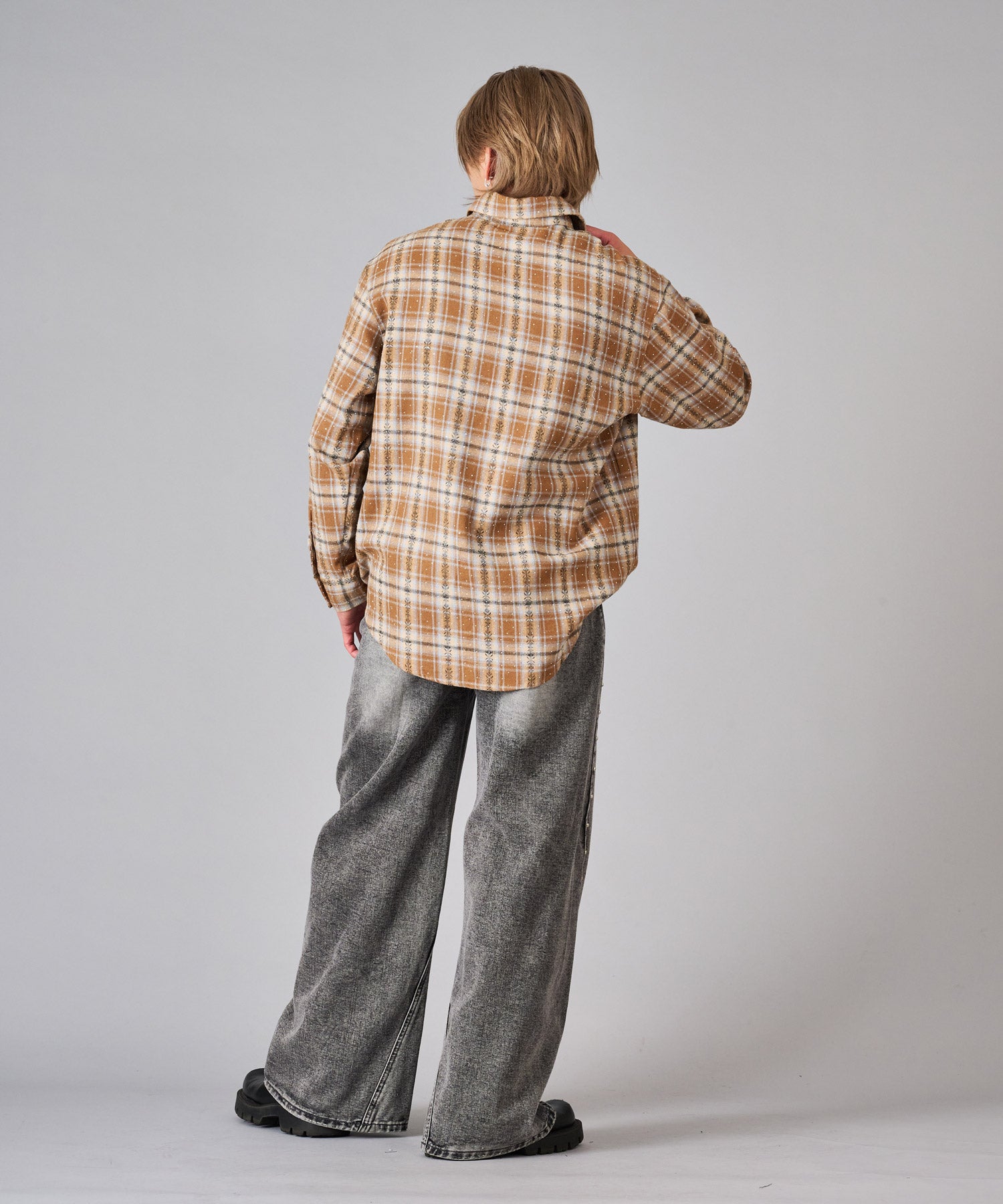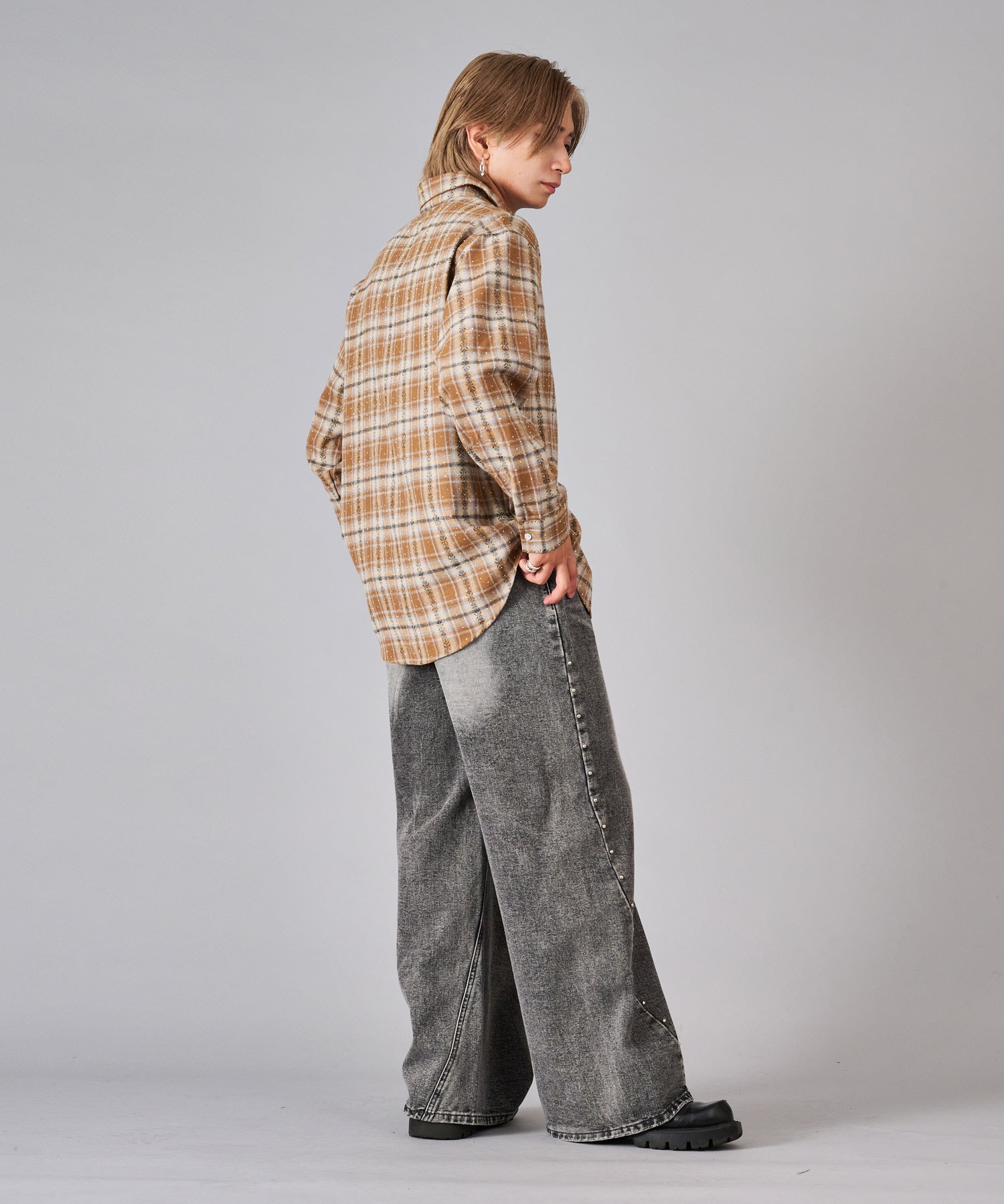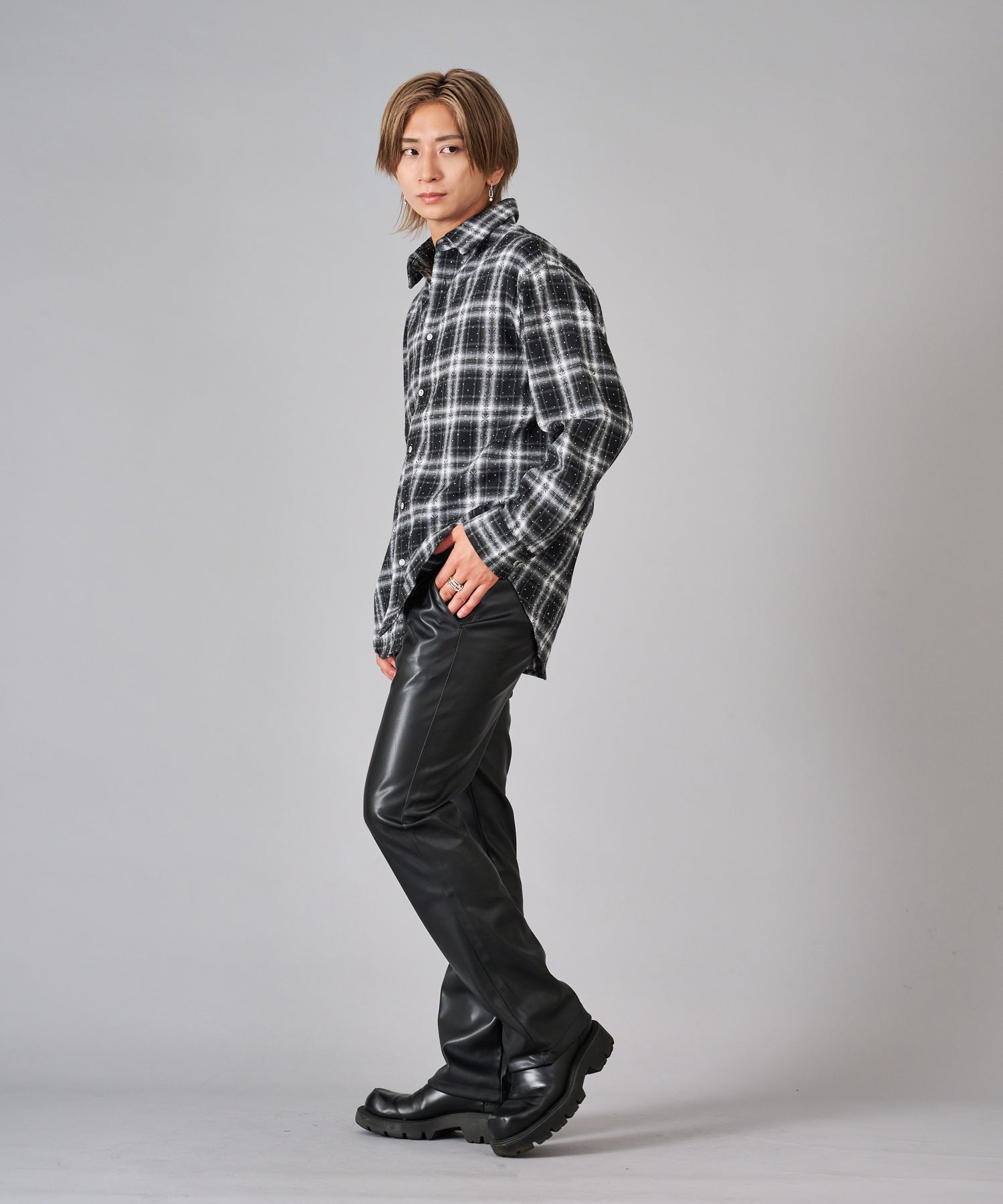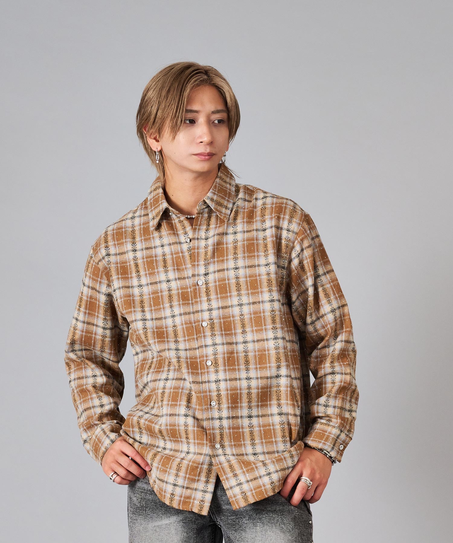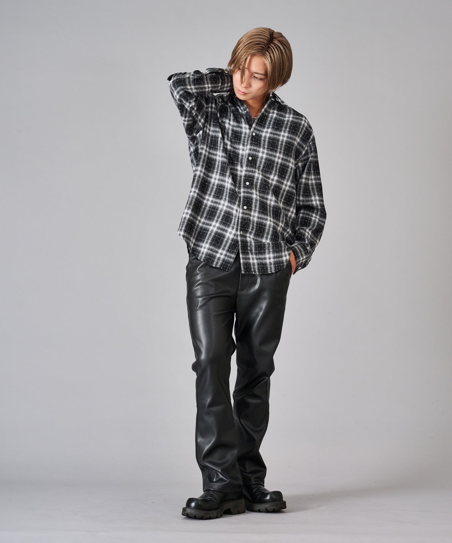 ウィンドウペンを重ねたオーセンティックなチェック柄。綿とポリエステルの混紡素材なので、カジュアルさとしなやかさがあり、優しい肌触り。