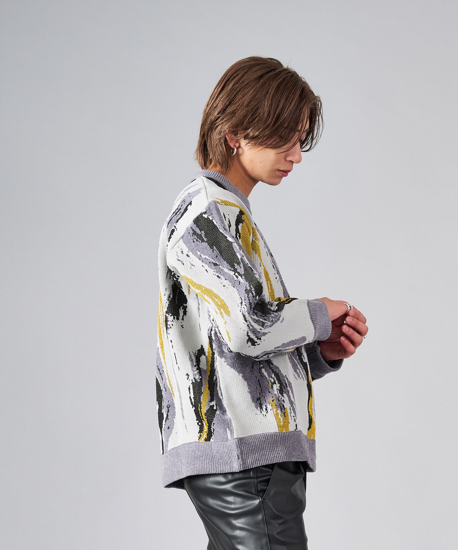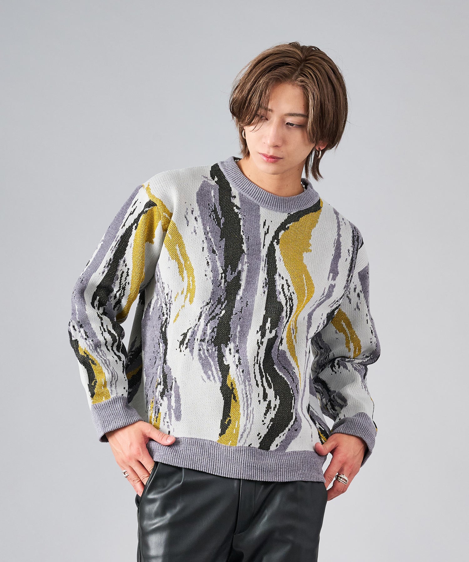 ジャガードのクルーネックセーター